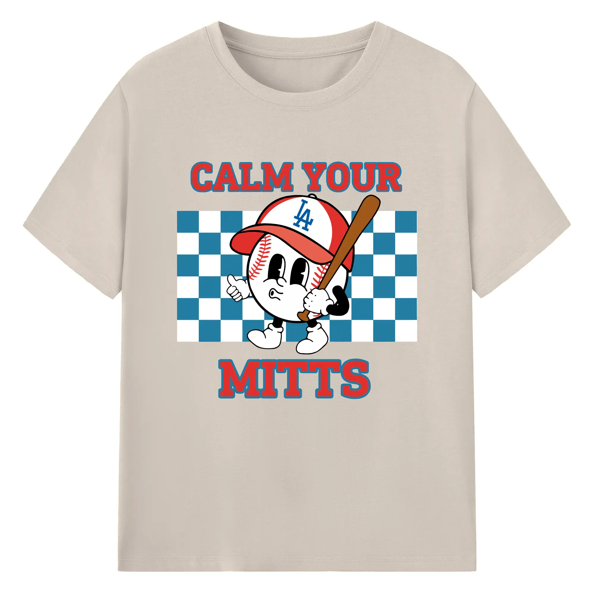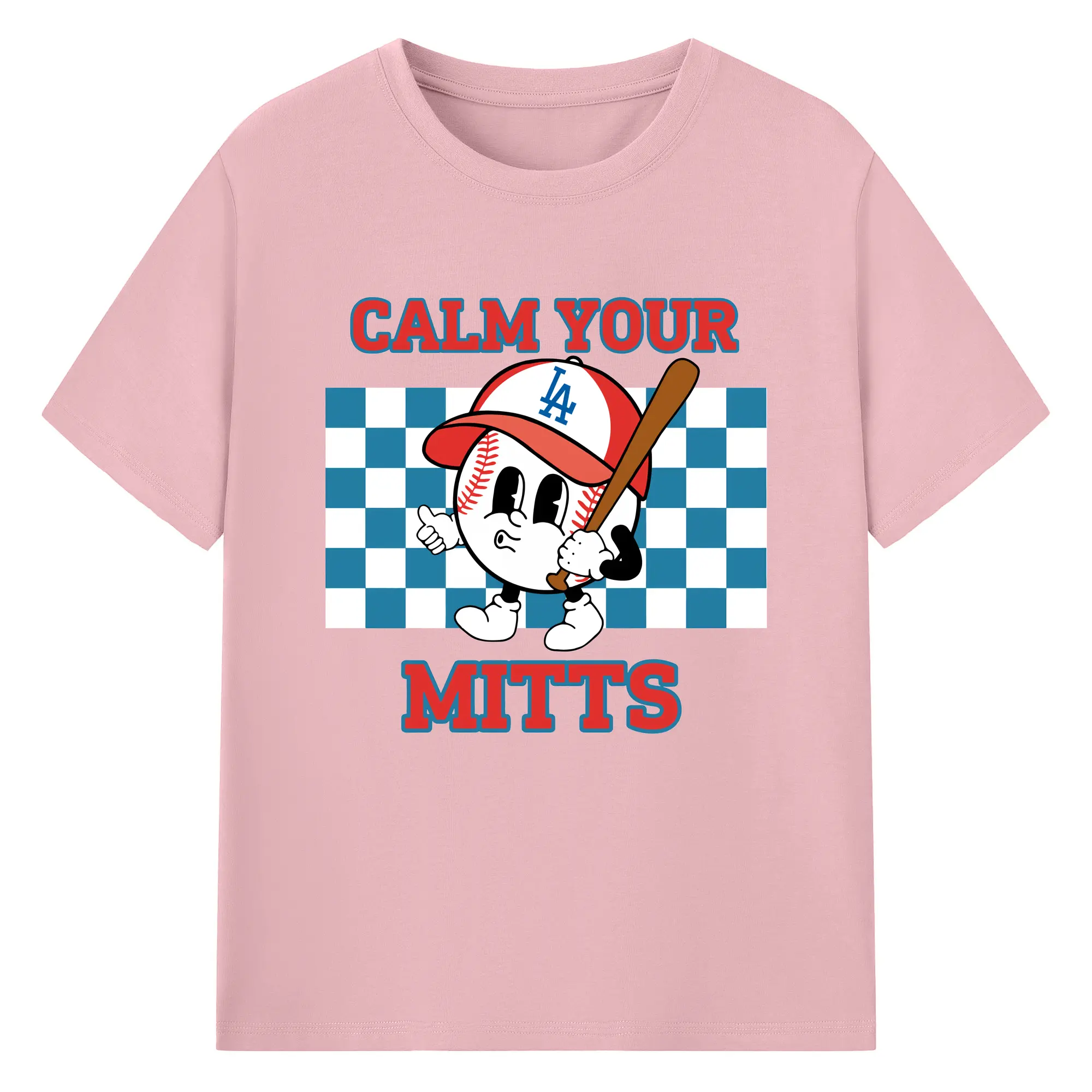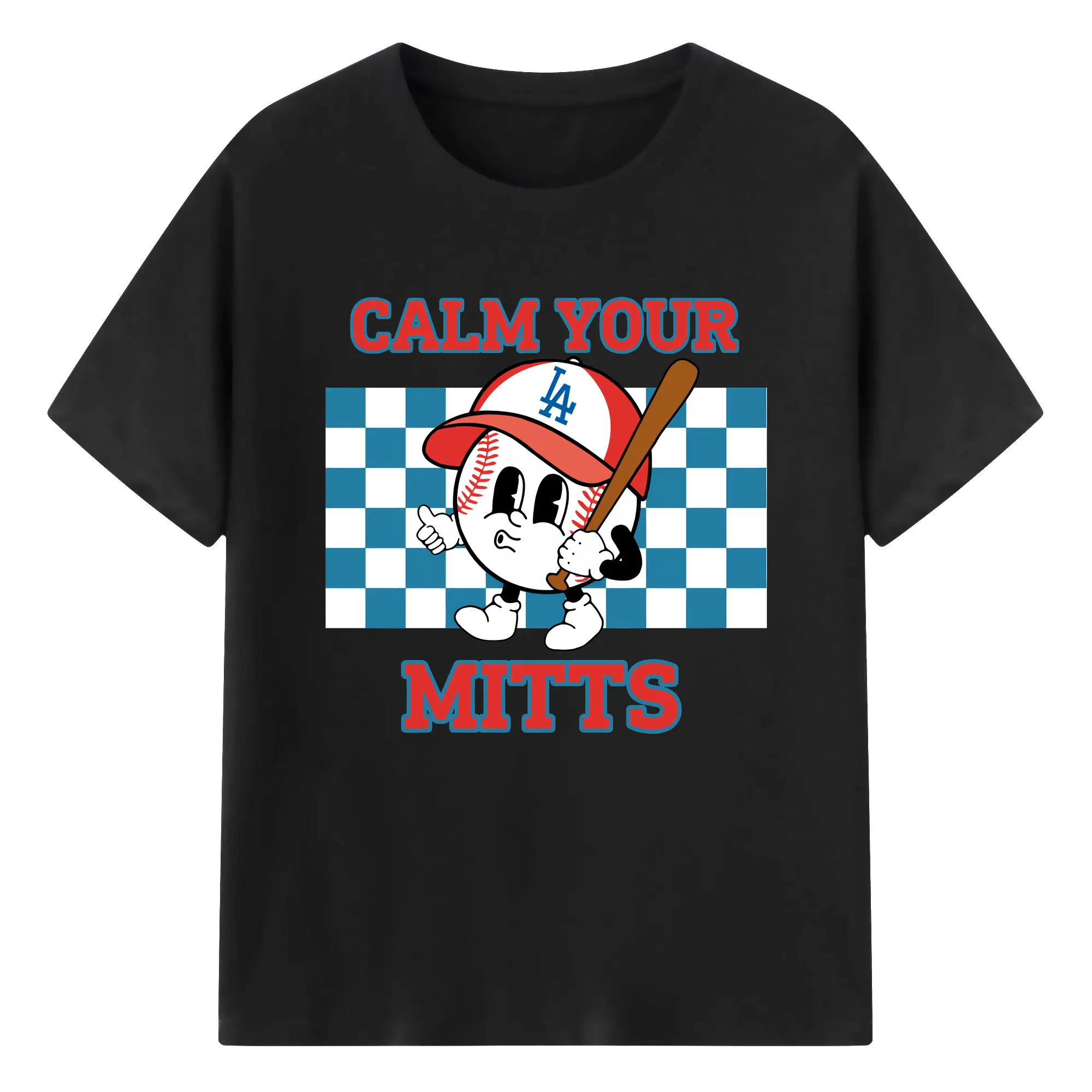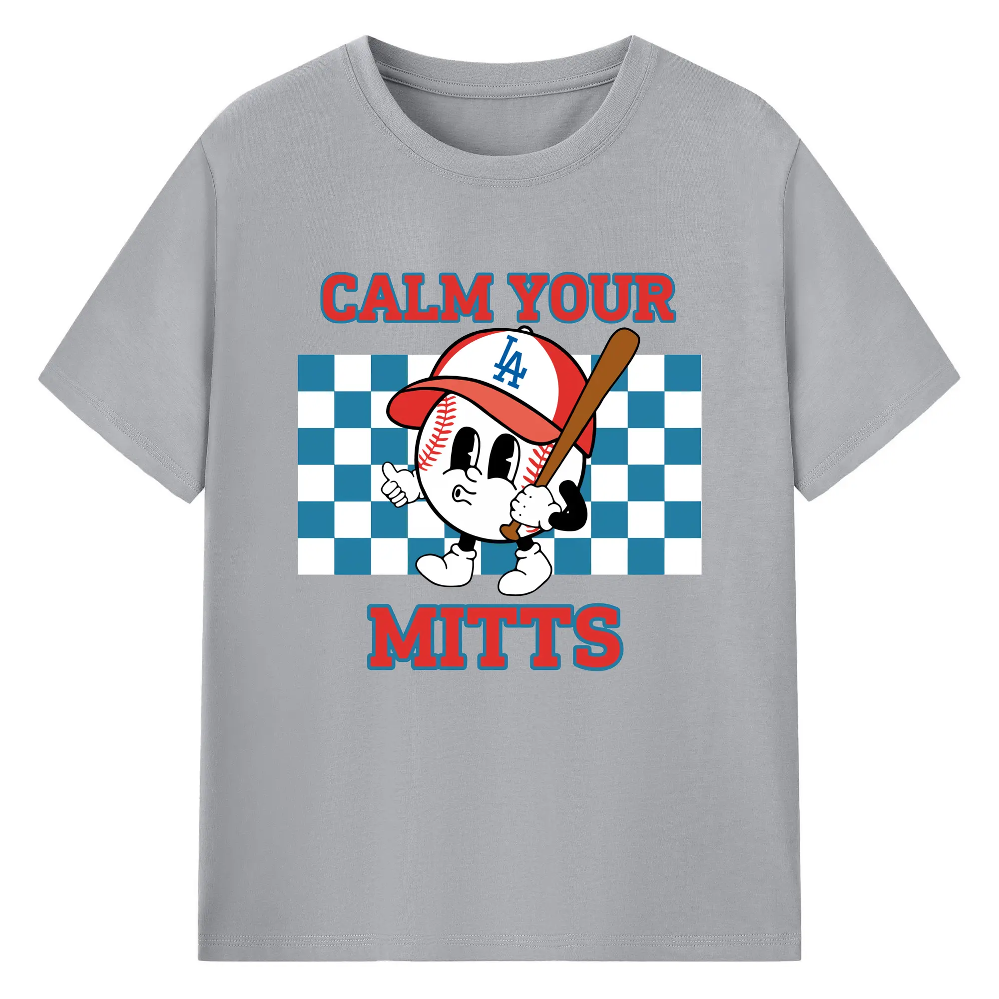 Baseball Calm Your Mitts Los Angeles Dodgers - 180g Cotton T-Shirt With Front Heat Transfer Print – Soft, Lightweight, Fitted Design – Comfortable Casual Wear For Sports & Everyday Use