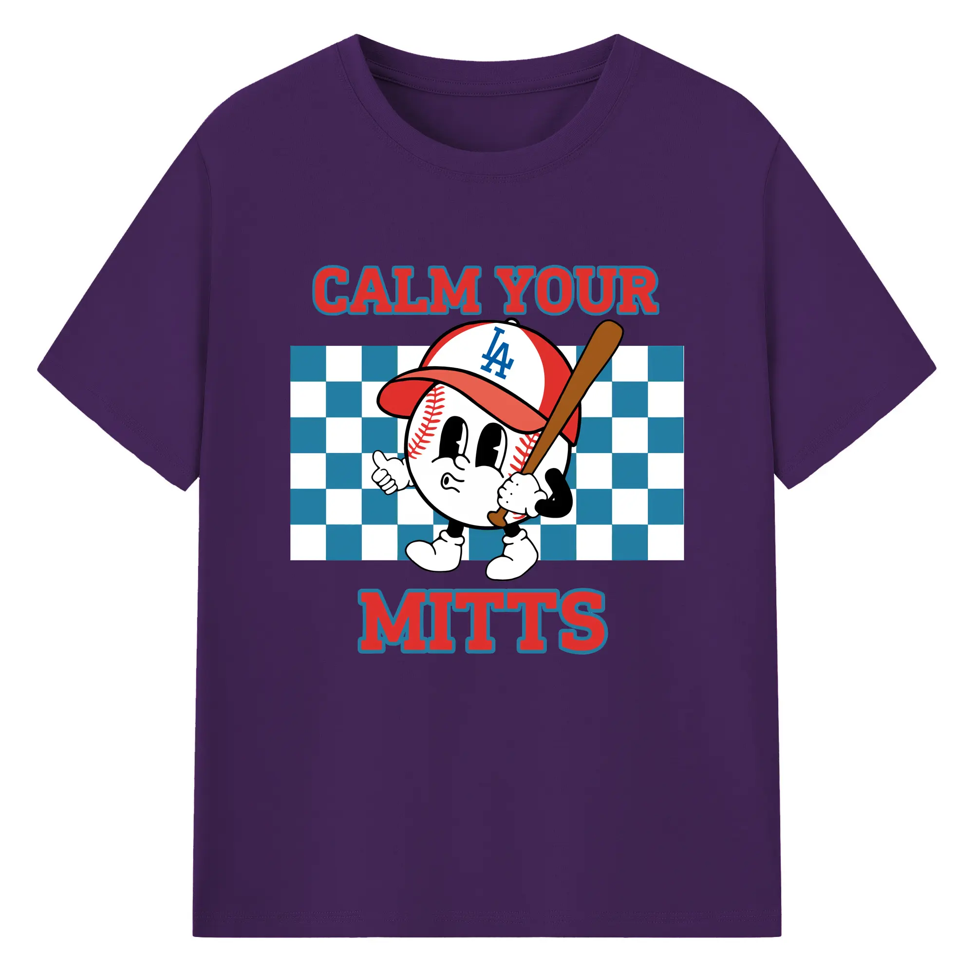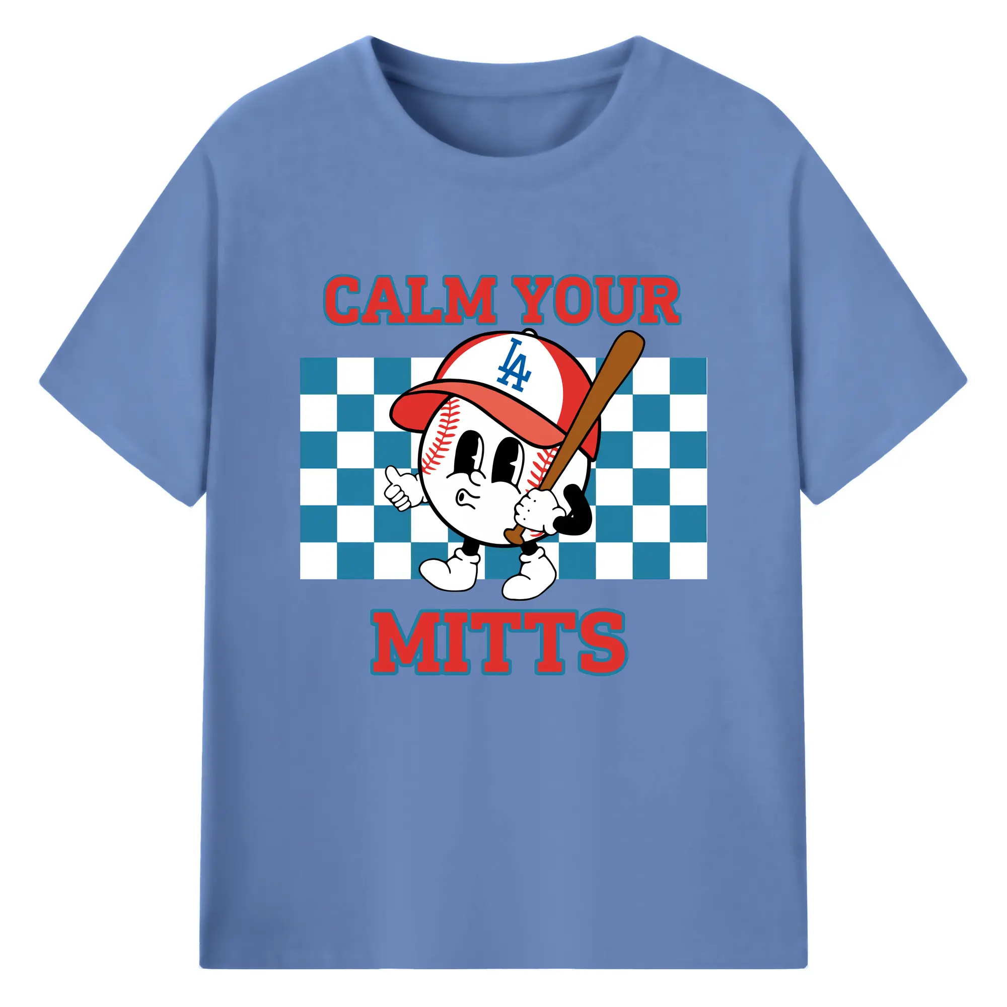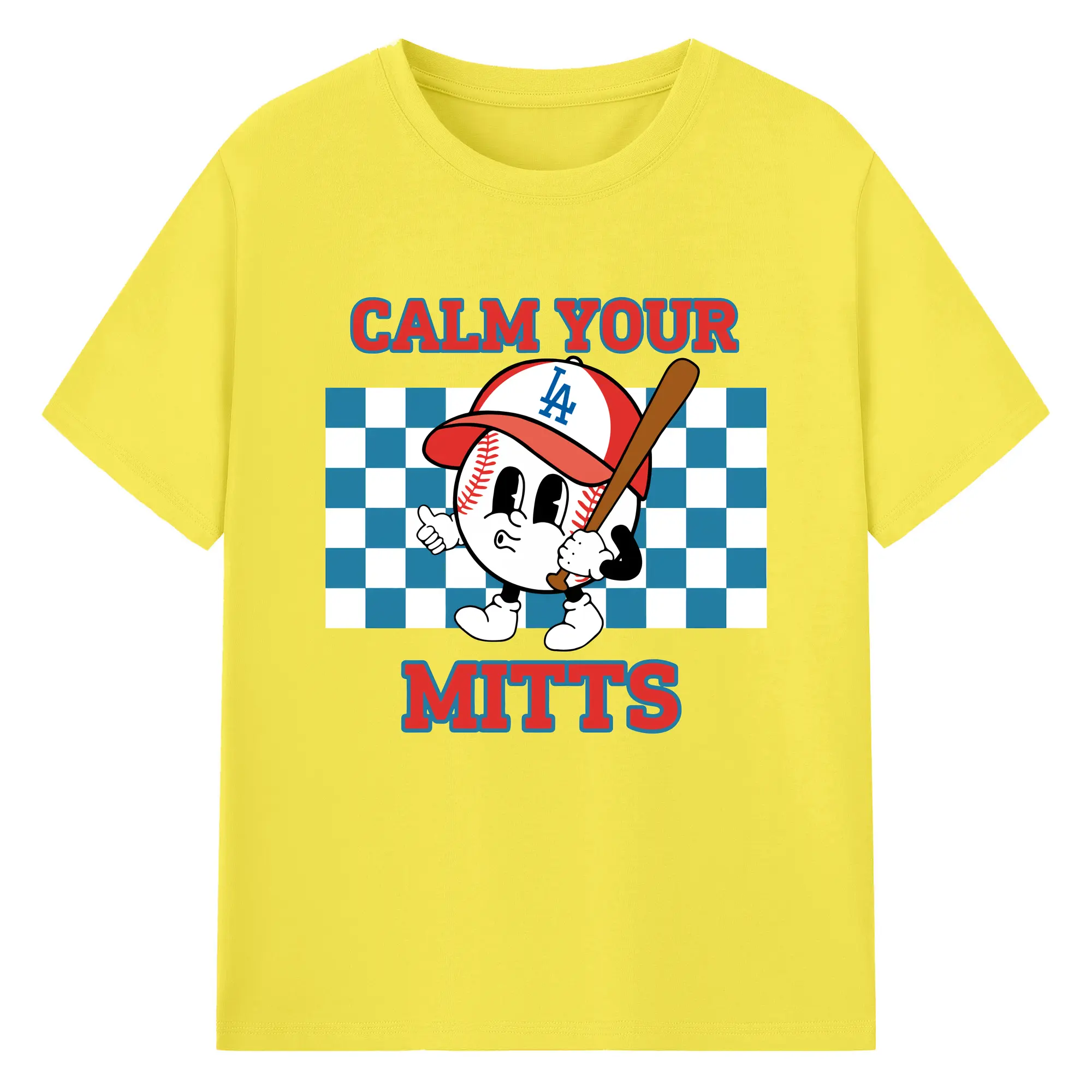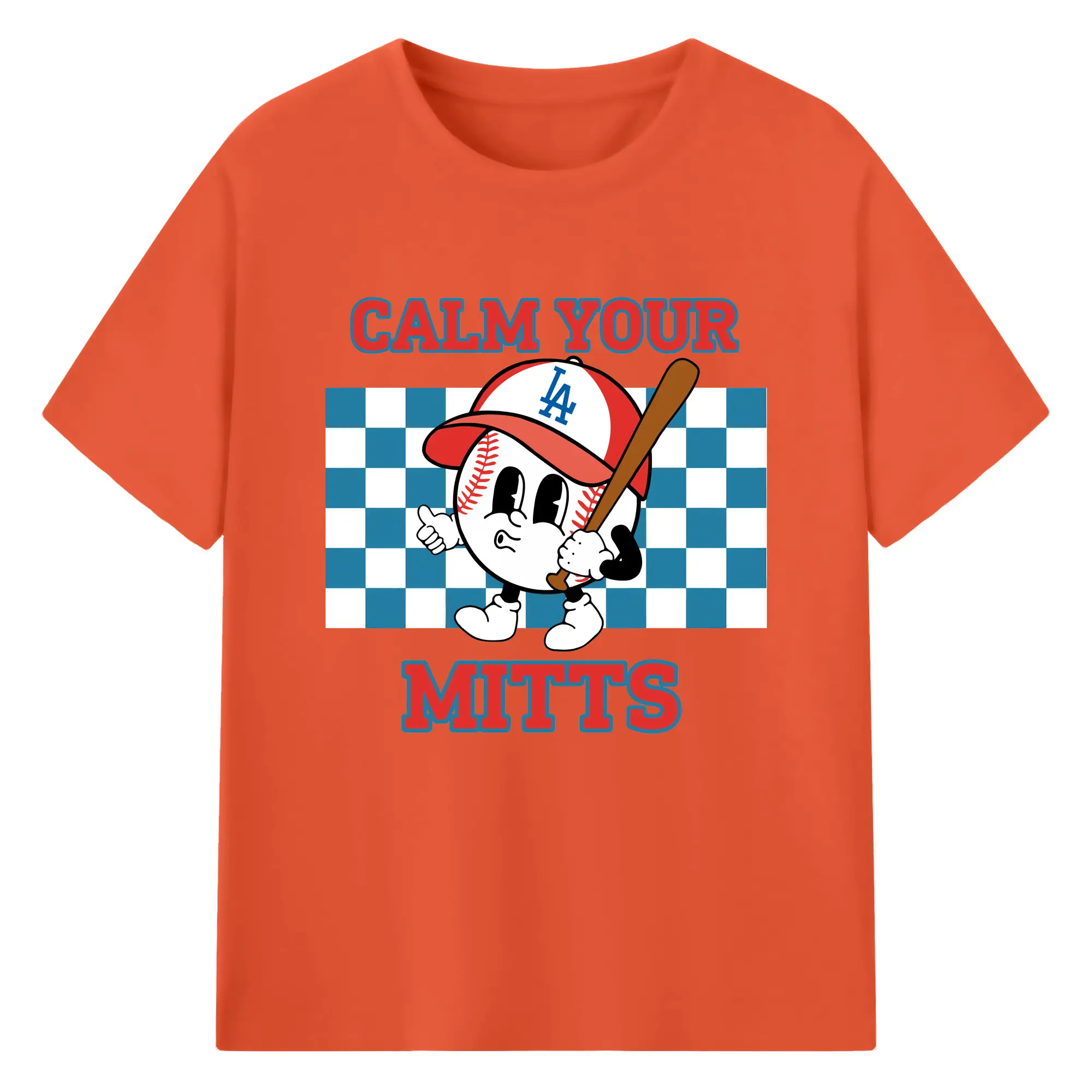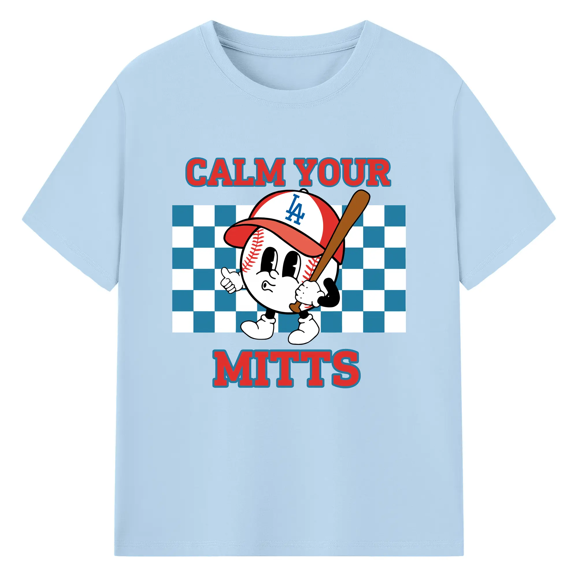 Baseball Calm Your Mitts Los Angeles Dodgers - 180g Cotton T-Shirt With Front Heat Transfer Print – Soft, Lightweight, Fitted Design – Comfortable Casual Wear For Sports & Everyday Use
