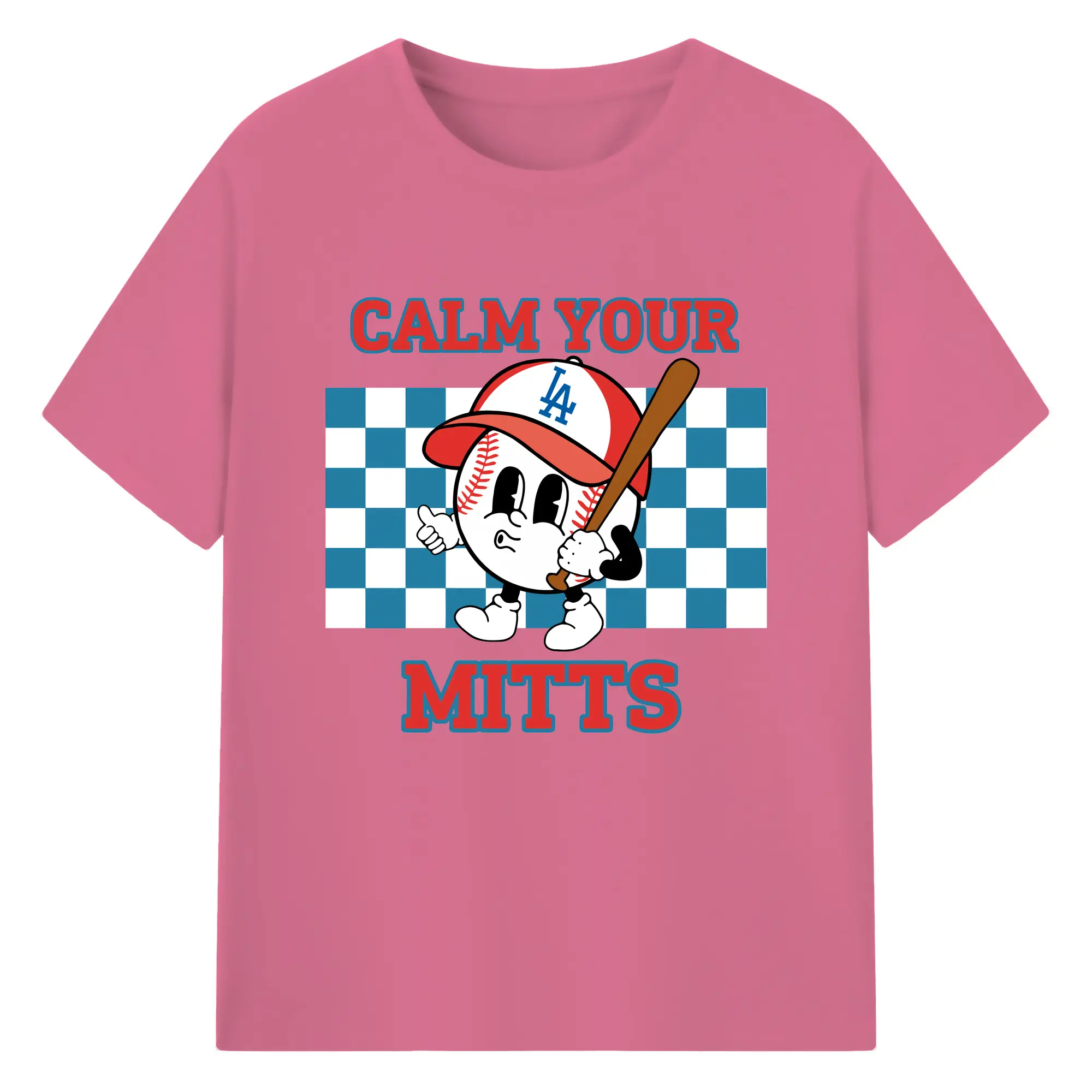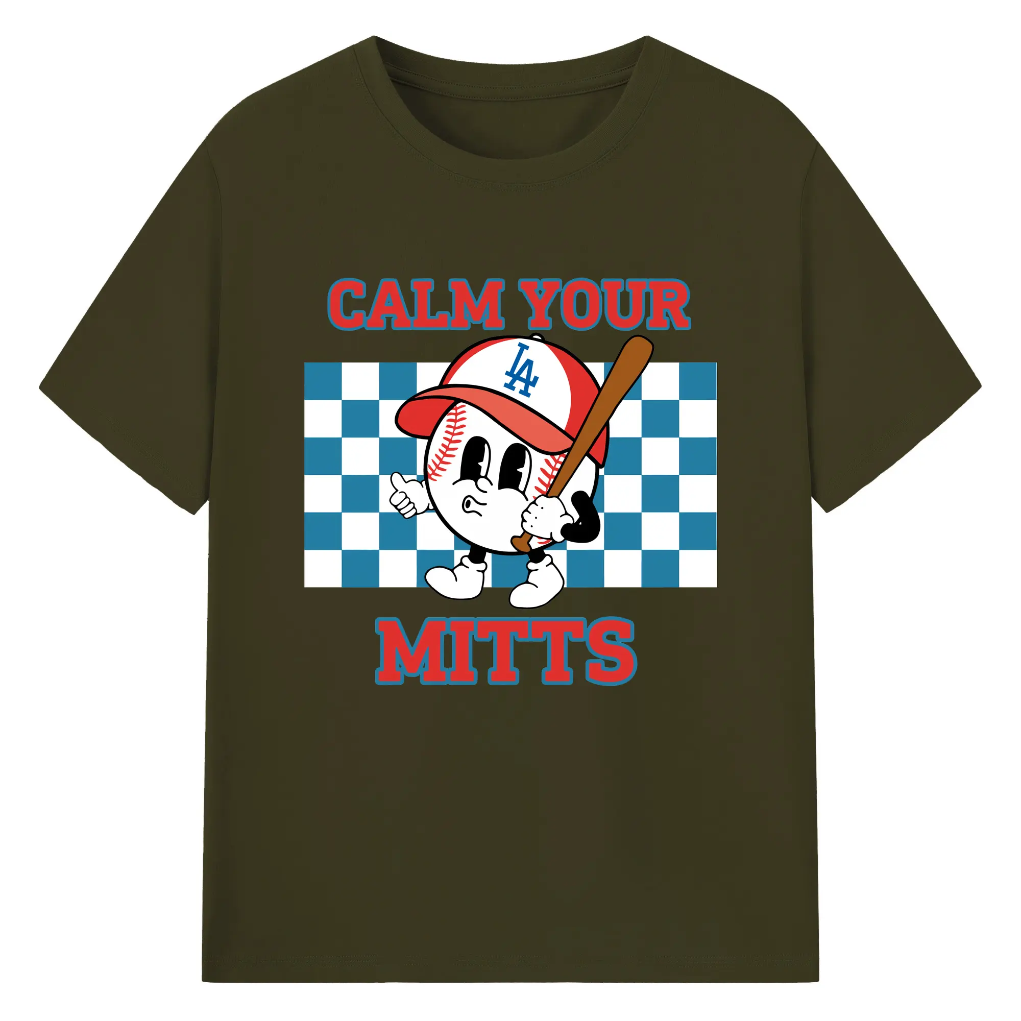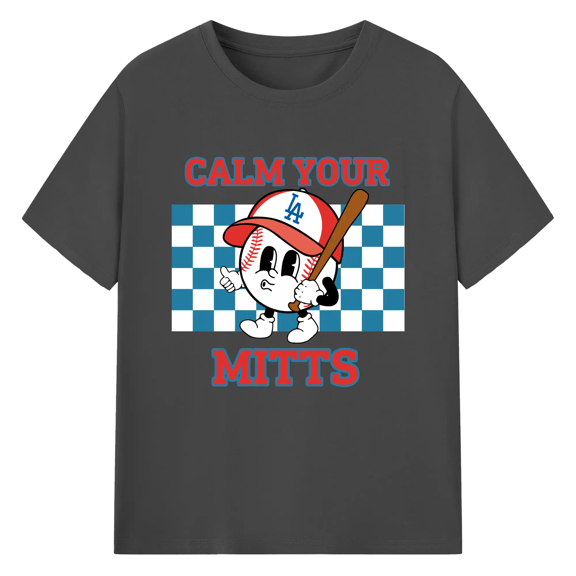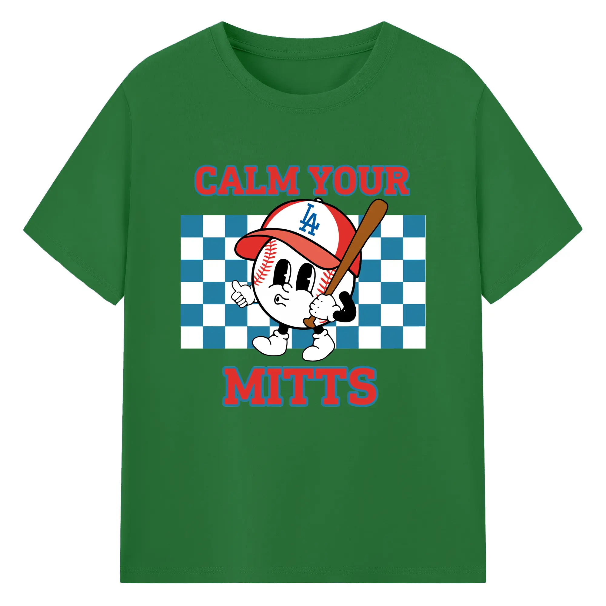 Baseball Calm Your Mitts Los Angeles Dodgers - 180g Cotton T-Shirt With Front Heat Transfer Print – Soft, Lightweight, Fitted Design – Comfortable Casual Wear For Sports & Everyday Use