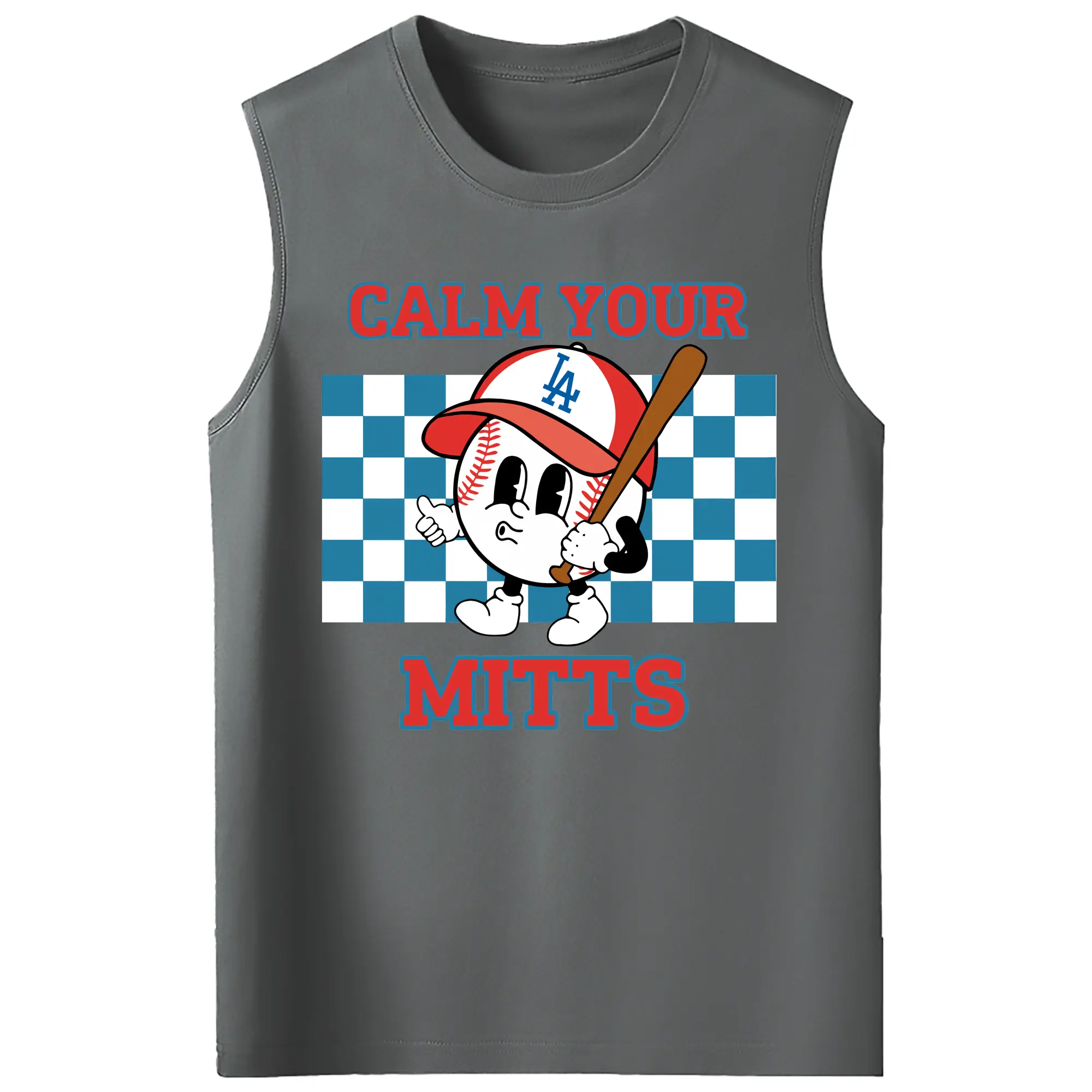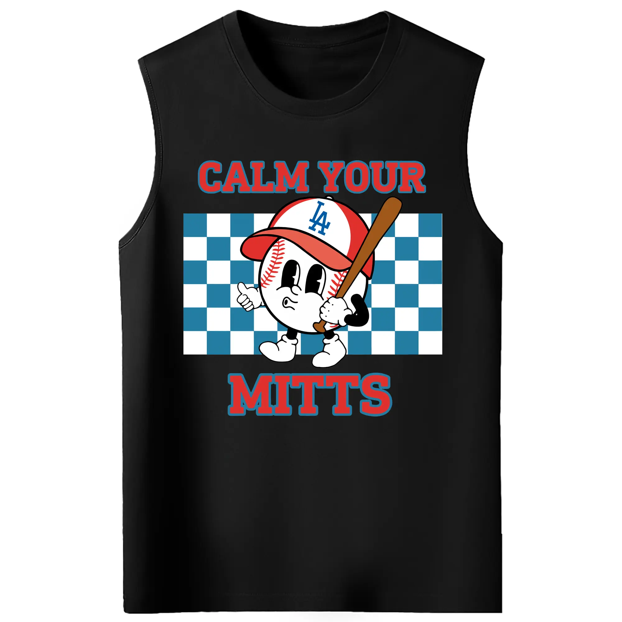 Baseball Calm Your Mitts Los Angeles Dodgers - 210g Combed Cotton Tank Top With Front Heat Transfer Print – Soft, Lightweight, Fitted Design – Stylish & Comfortable Casual Wear For Sports & Everyday Use