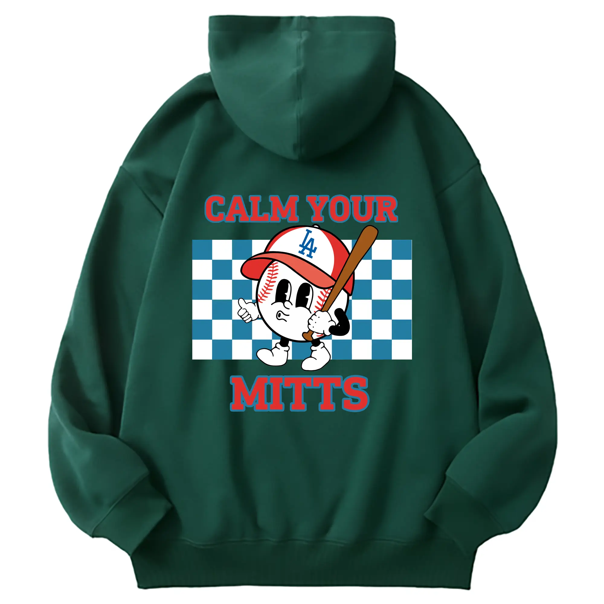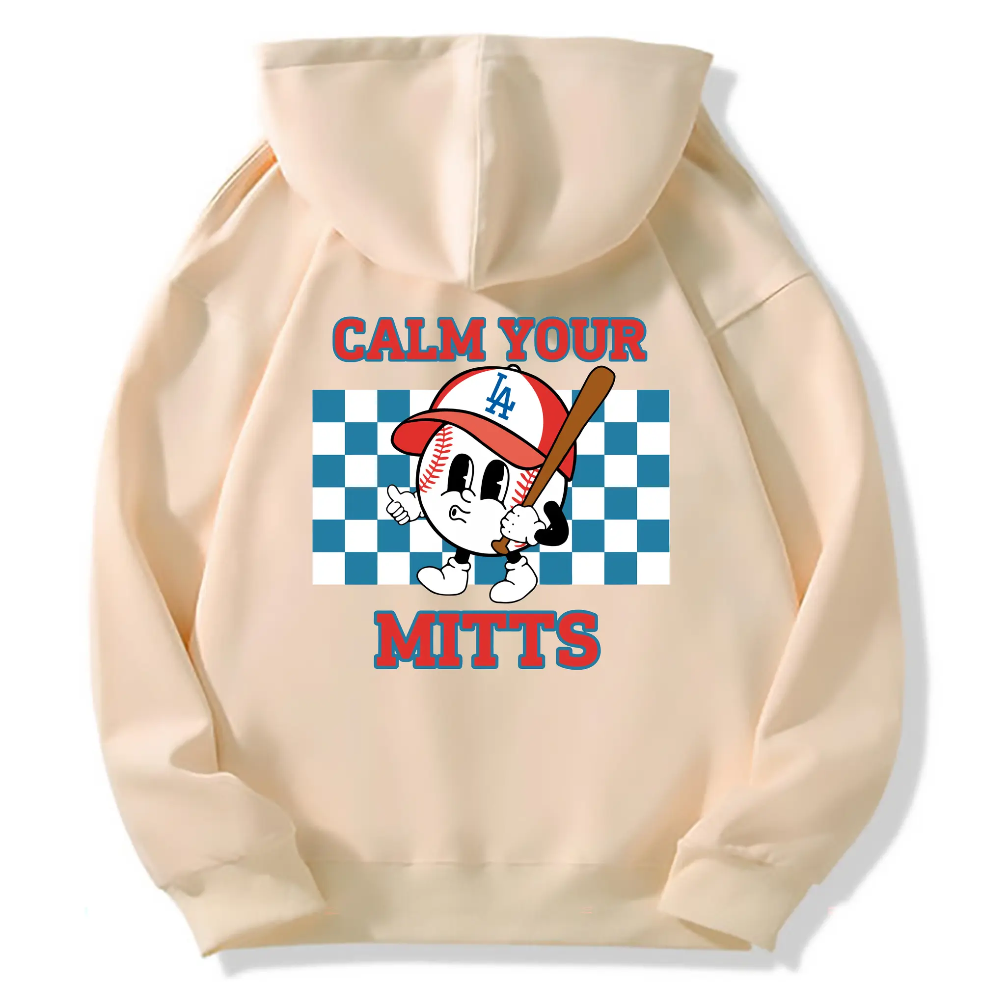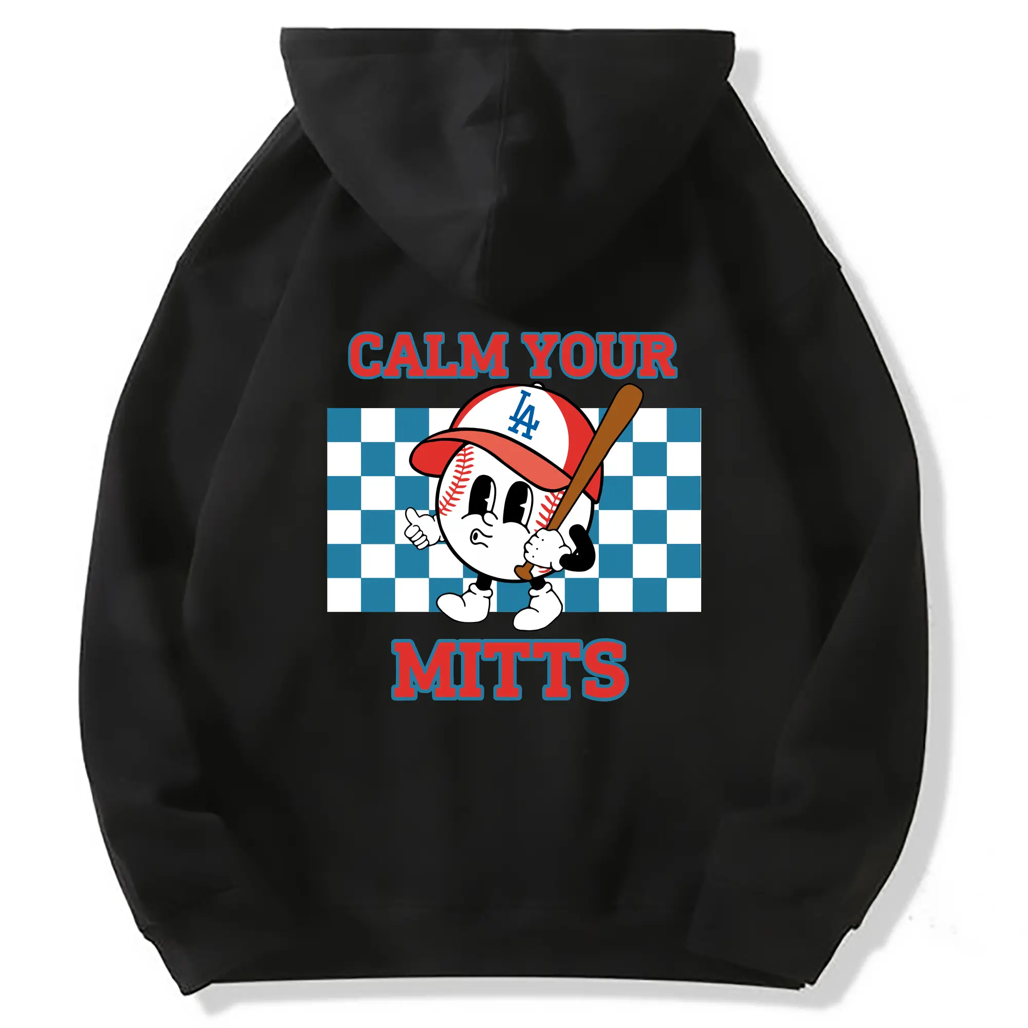 Baseball Calm Your Mitts Los Angeles Dodgers - Premium Hoodie With Back Heat Transfer Print – 56.1% Cotton, 43.9% Polyester – Soft, Durable & Stylish – Perfect For Sports, Casual & Everyday Wear
