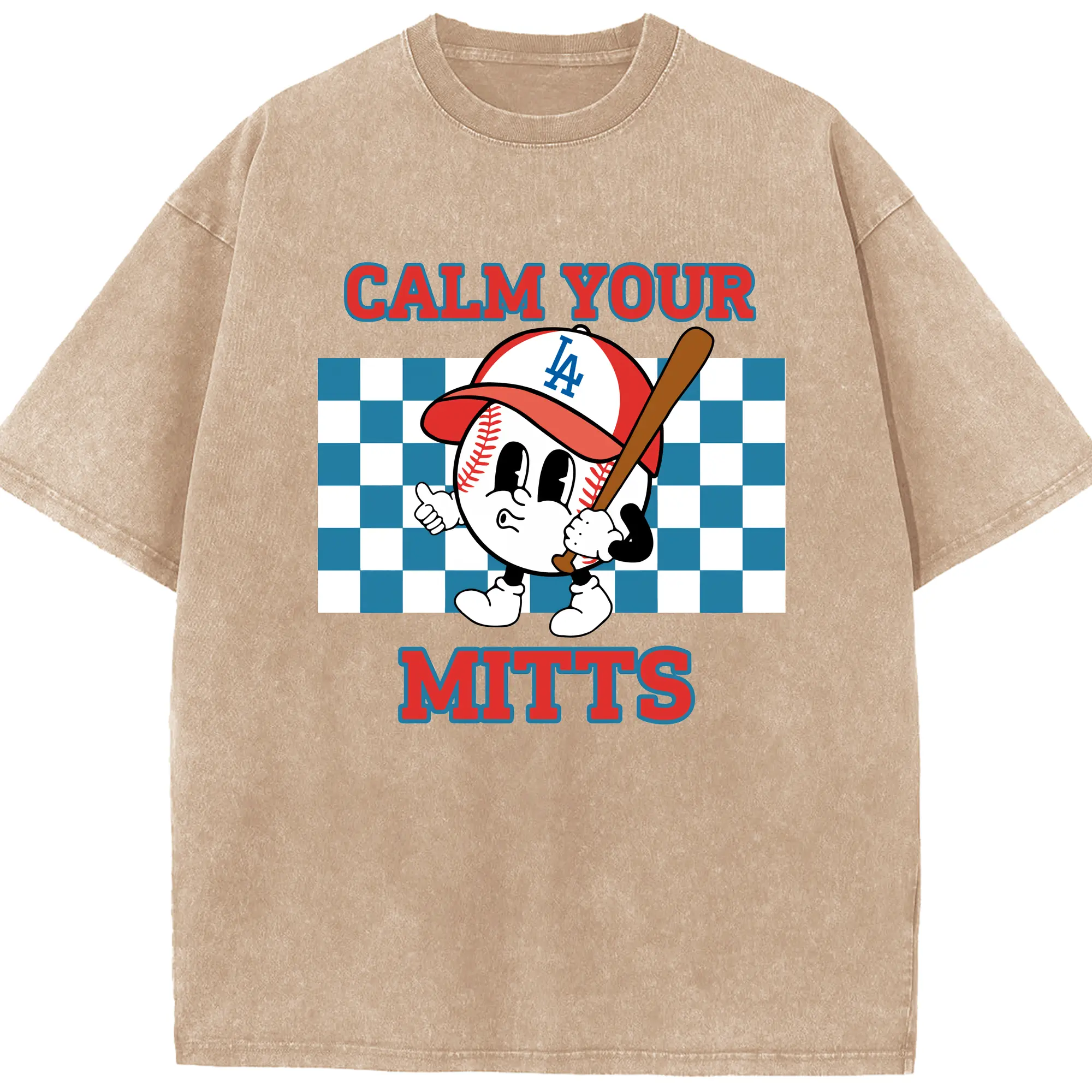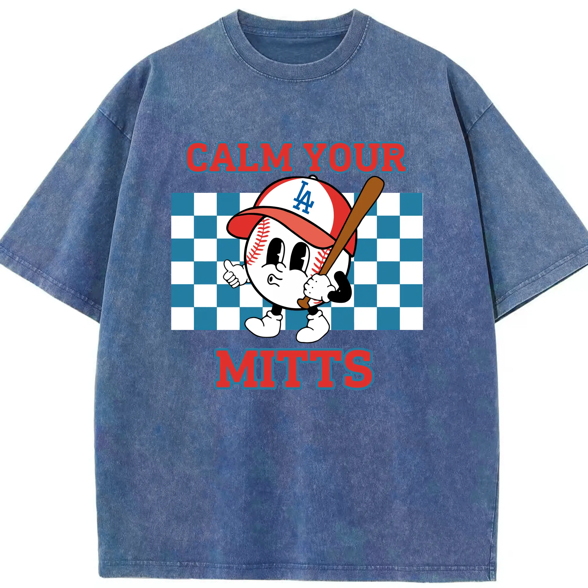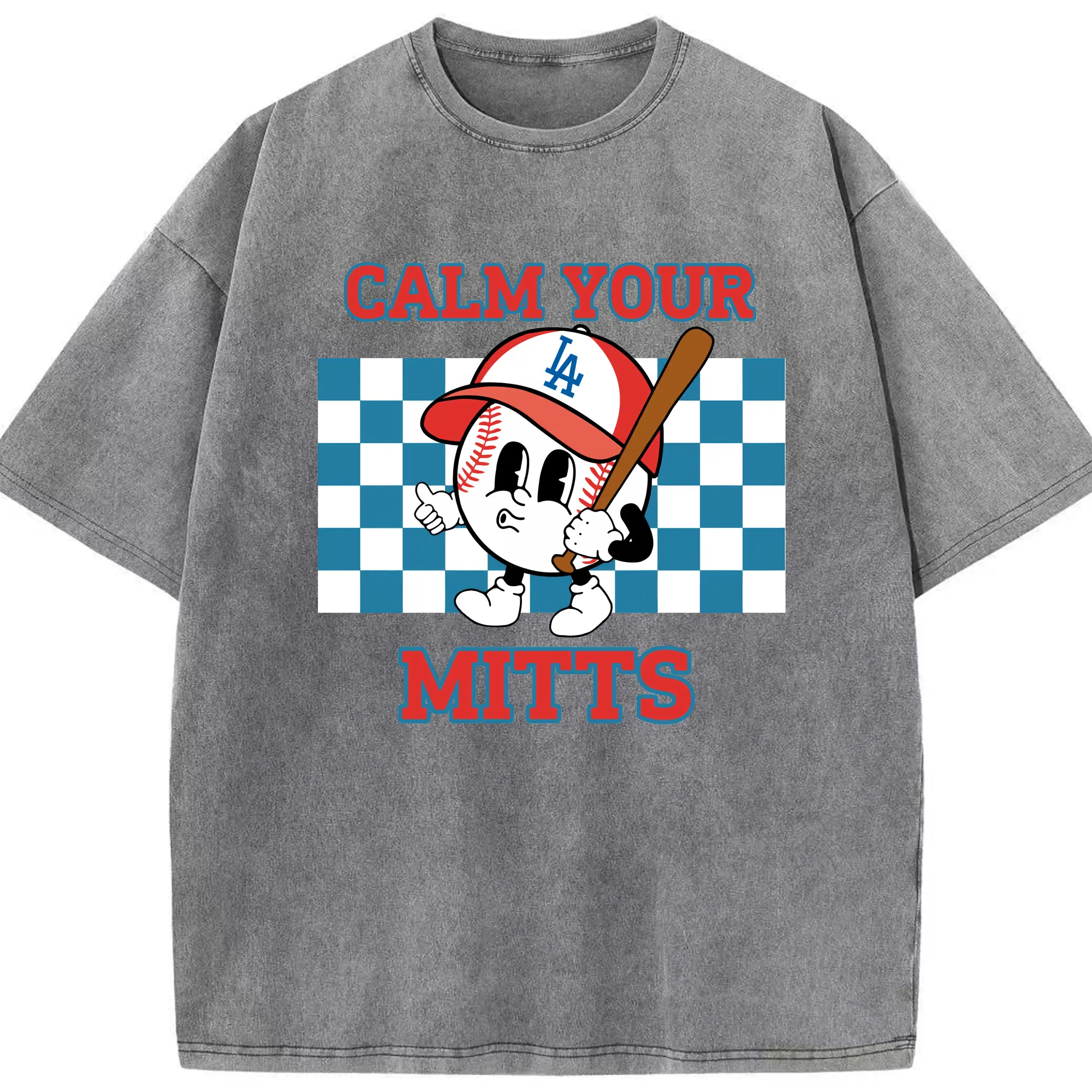 Baseball Calm Your Mitts Los Angeles Dodgers - Washed Vintage Look 230g Cotton Oversized T-Shirt With Front Heat Transfer Print – Soft, Lightweight, Stylish Fit – Comfortable Casual Wear For Sports & Everyday Use