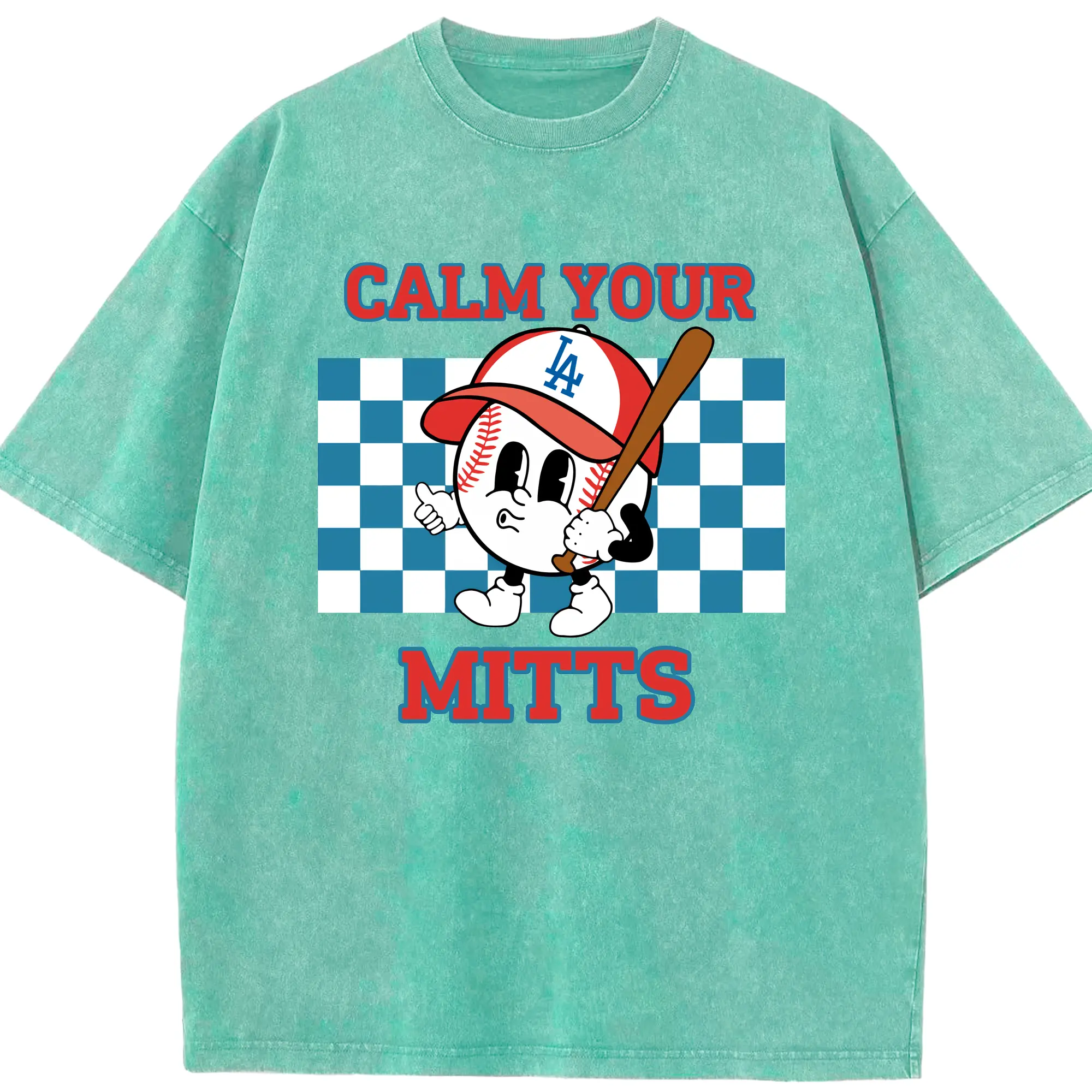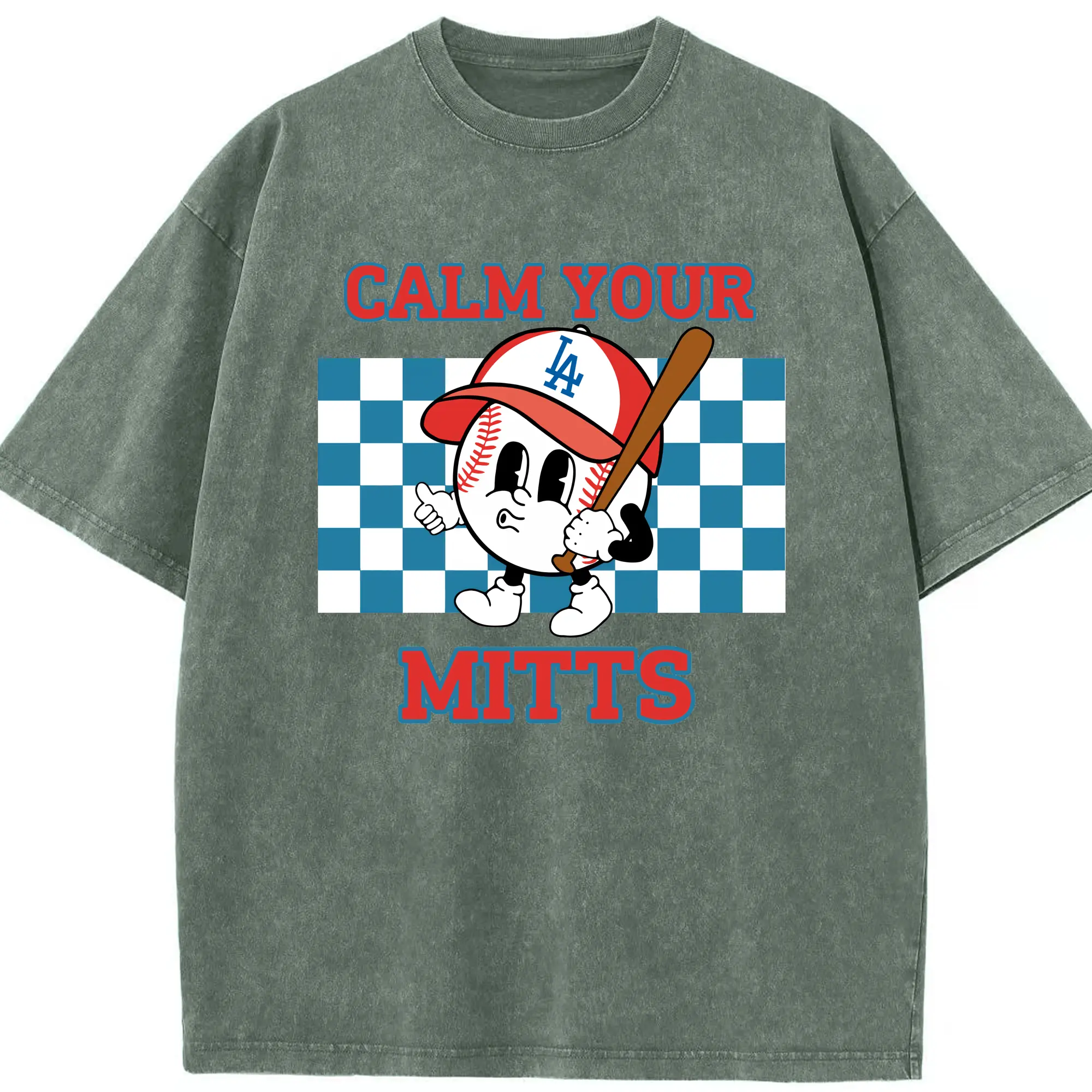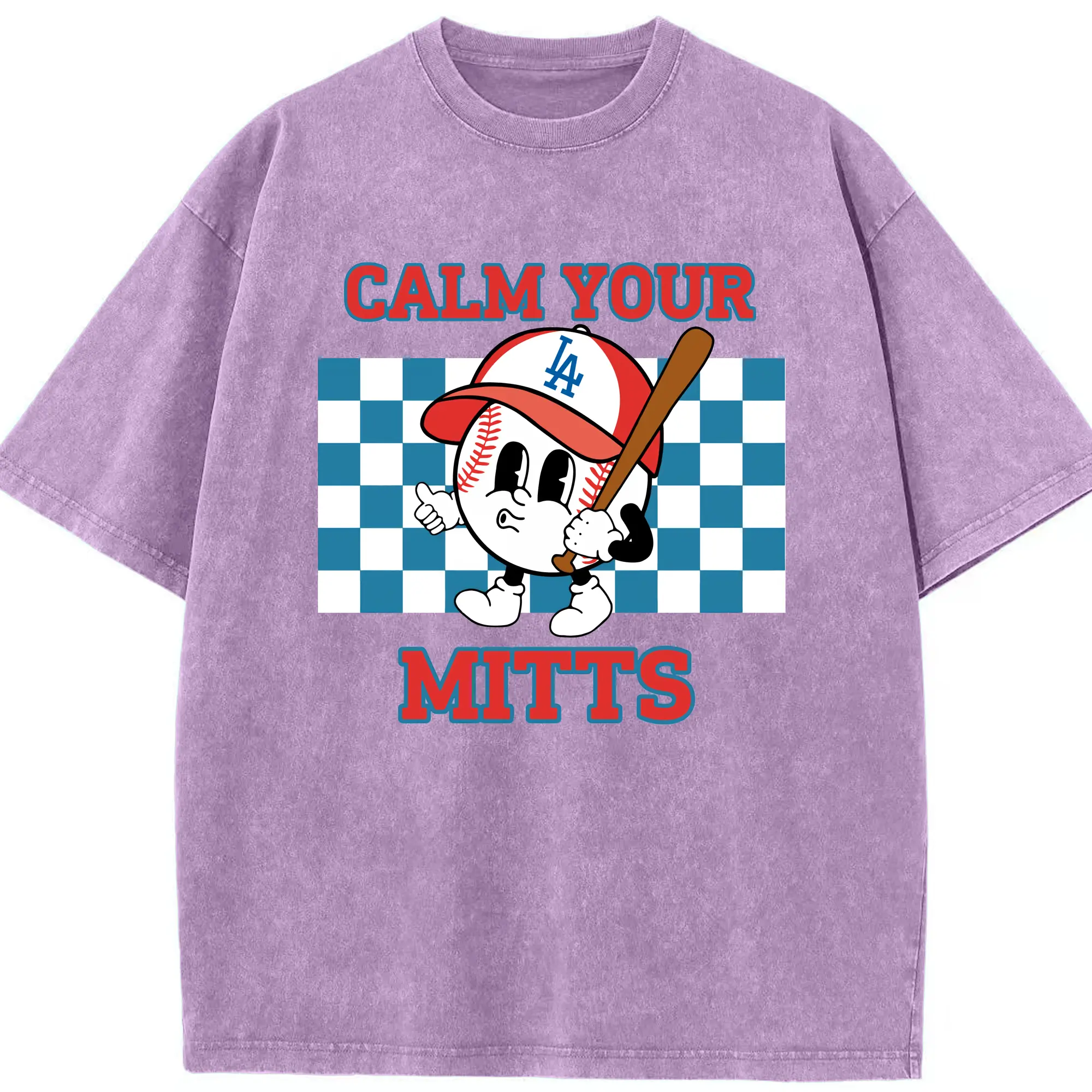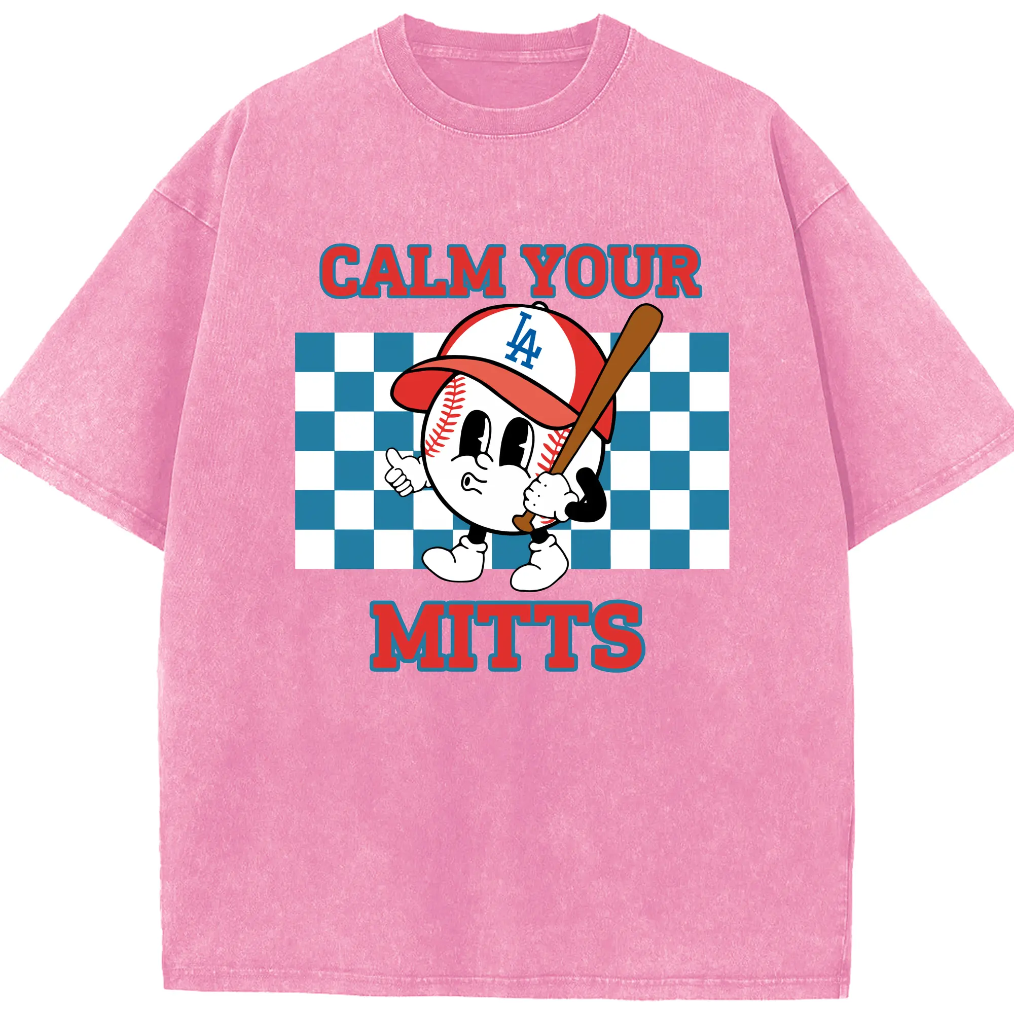 Baseball Calm Your Mitts Los Angeles Dodgers - Washed Vintage Look 230g Cotton Oversized T-Shirt With Front Heat Transfer Print – Soft, Lightweight, Stylish Fit – Comfortable Casual Wear For Sports & Everyday Use