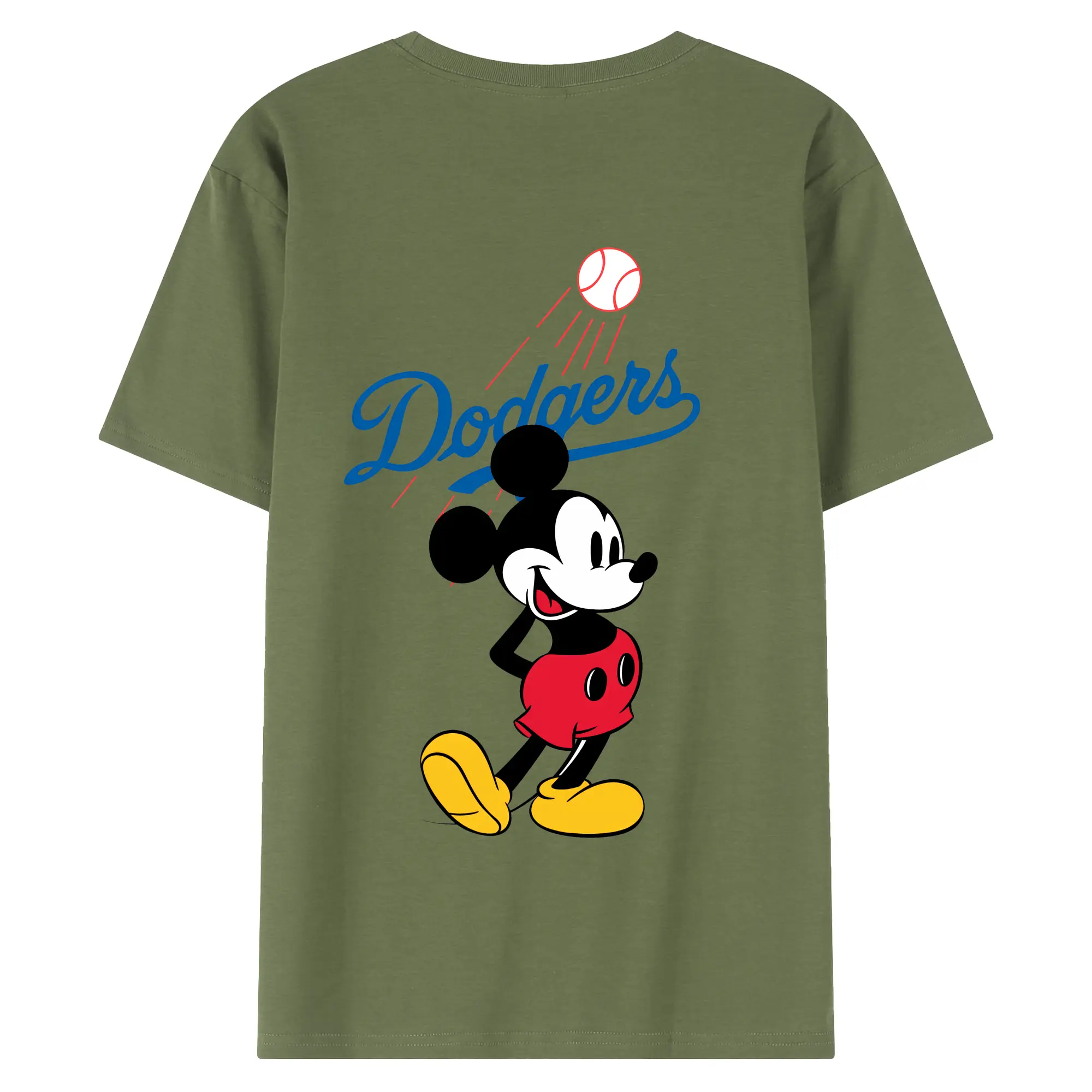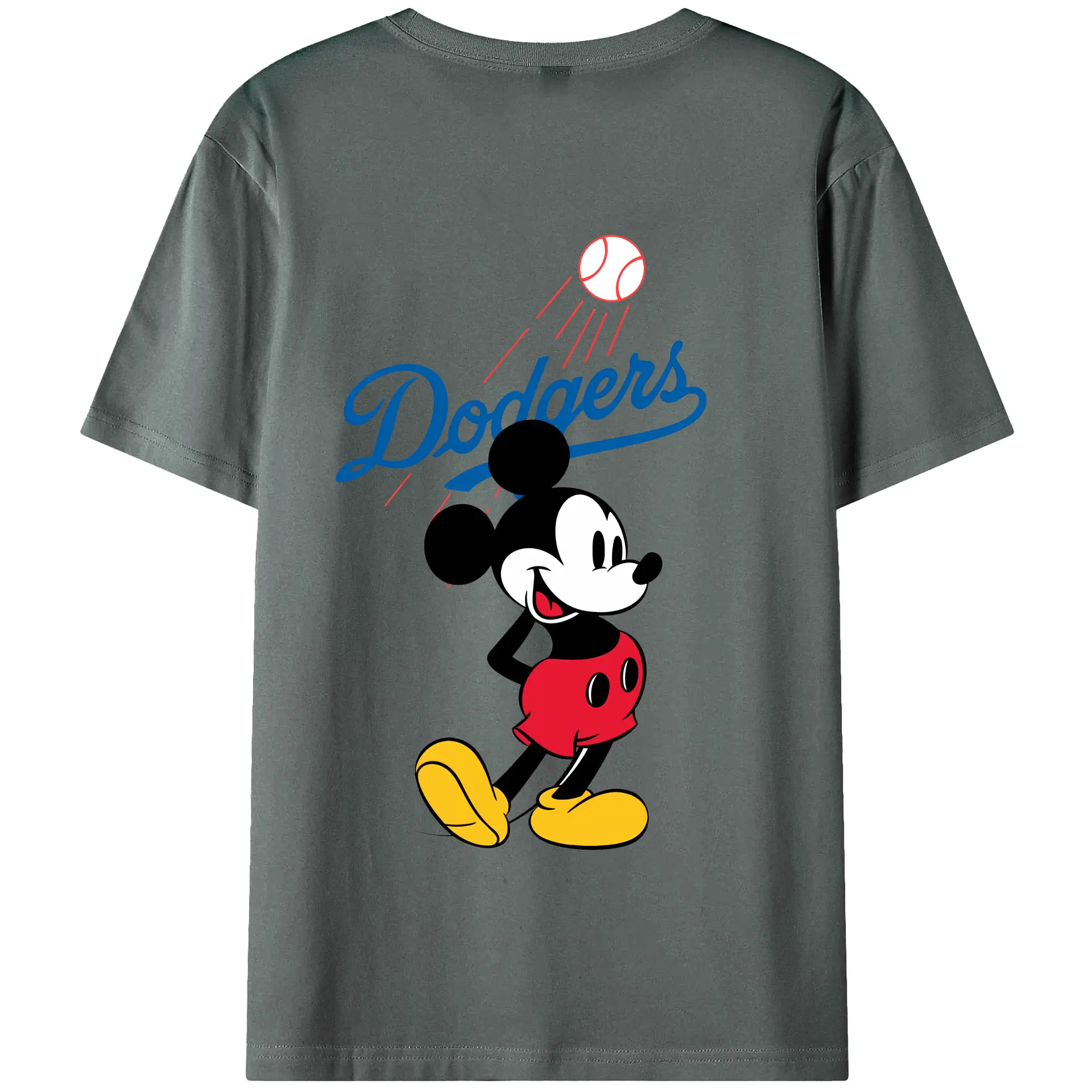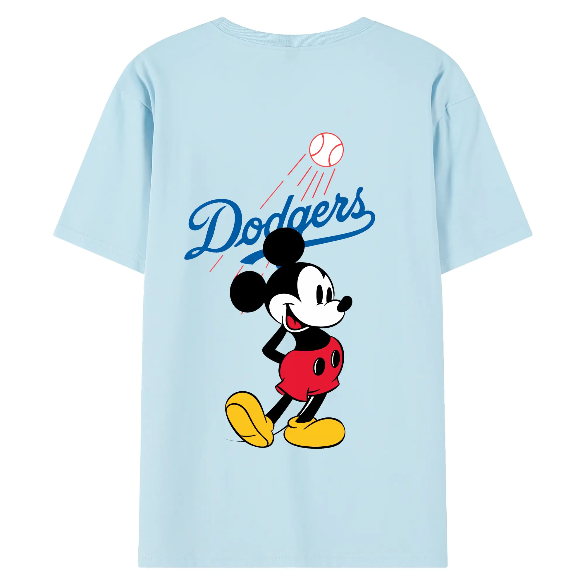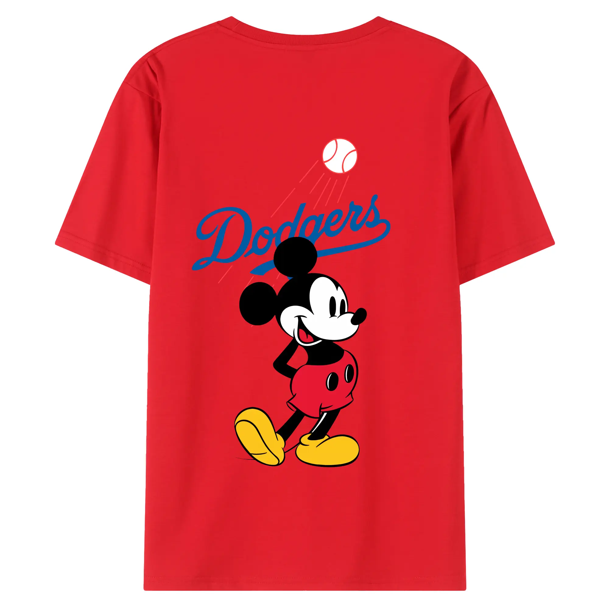 Baseball Mickey Mouse Los Angeles Dodgers - 180g Combed Cotton T-Shirt With Back Heat Transfer Print – Soft, Lightweight, Fitted Design – Stylish Casual Wear For Sports & Everyday Use