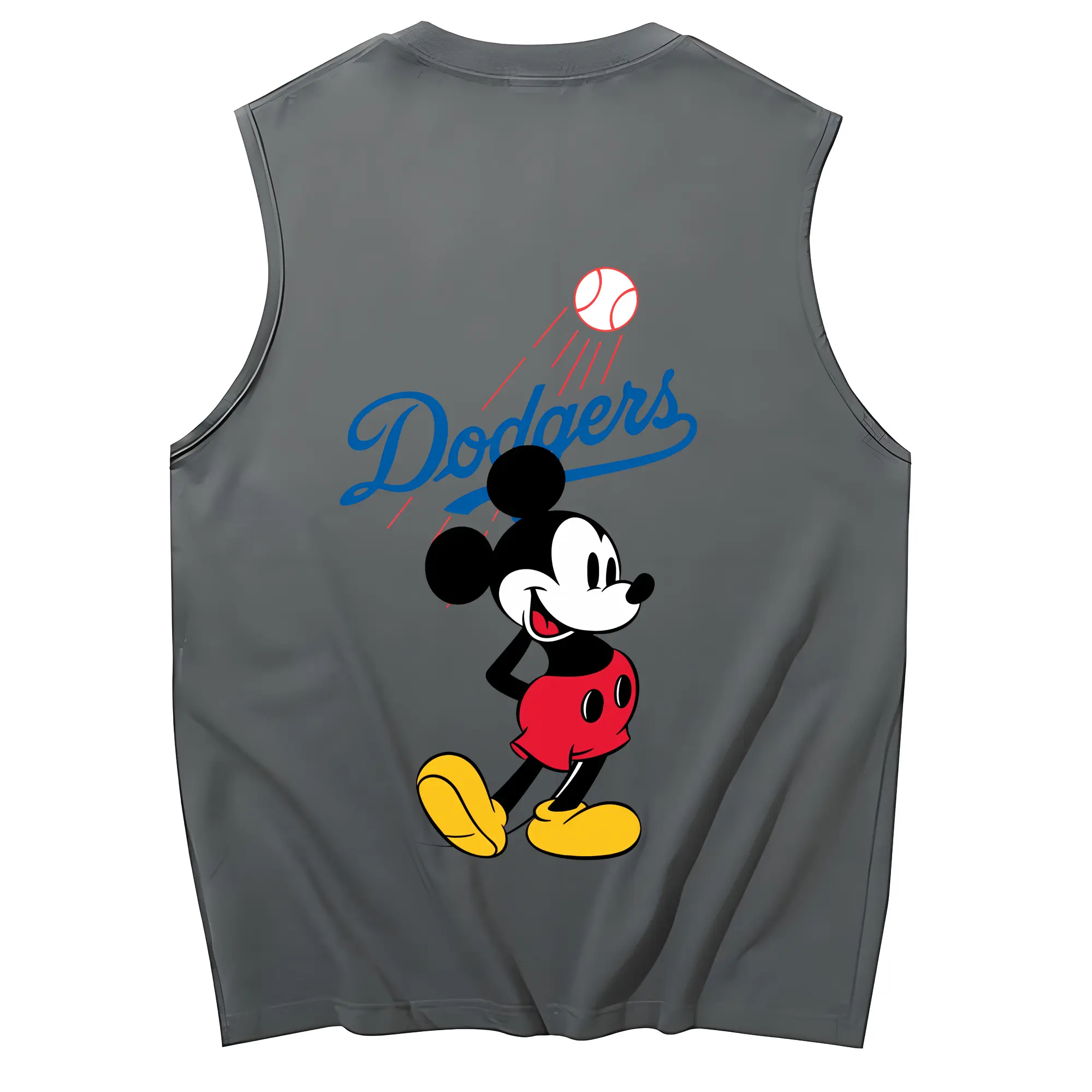 Baseball Mickey Mouse Los Angeles Dodgers - 230g Pure Cotton Tank Top With Back Heat Transfer Print – Soft, Lightweight, Fitted Design – Stylish & Comfortable Casual Wear For Sports & Everyday Use