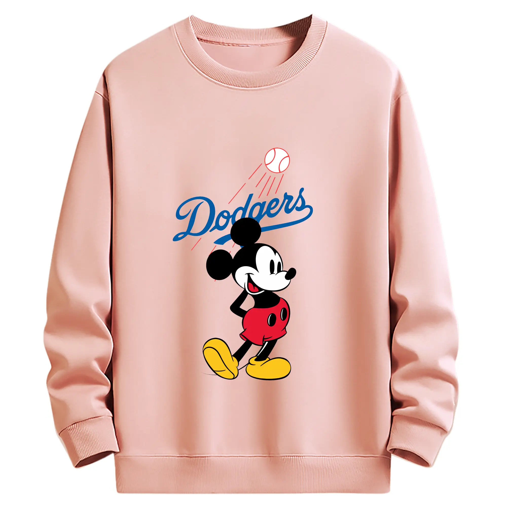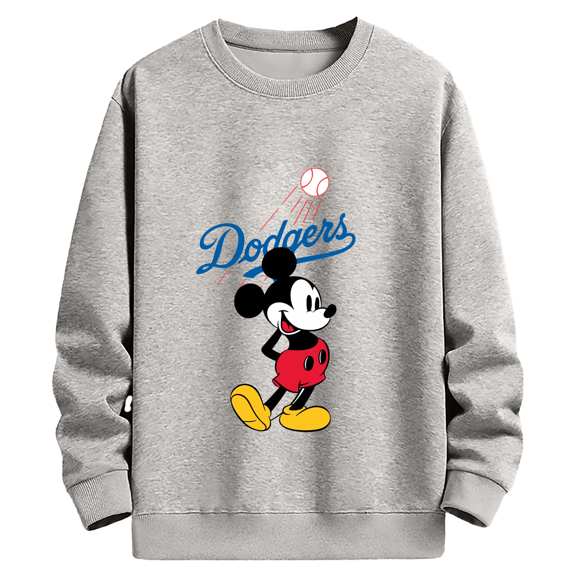 Baseball Mickey Mouse Los Angeles Dodgers - Kids Crewneck Sweatshirt With Front Heat Transfer Print – 80% Cotton 20% Polyester – Soft, Durable & Comfortable – Ideal For Sports, Casual Wear & Everyday Activities