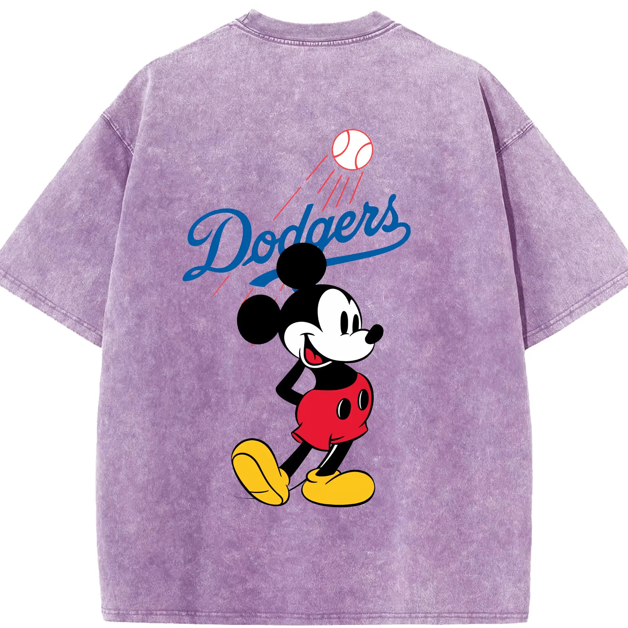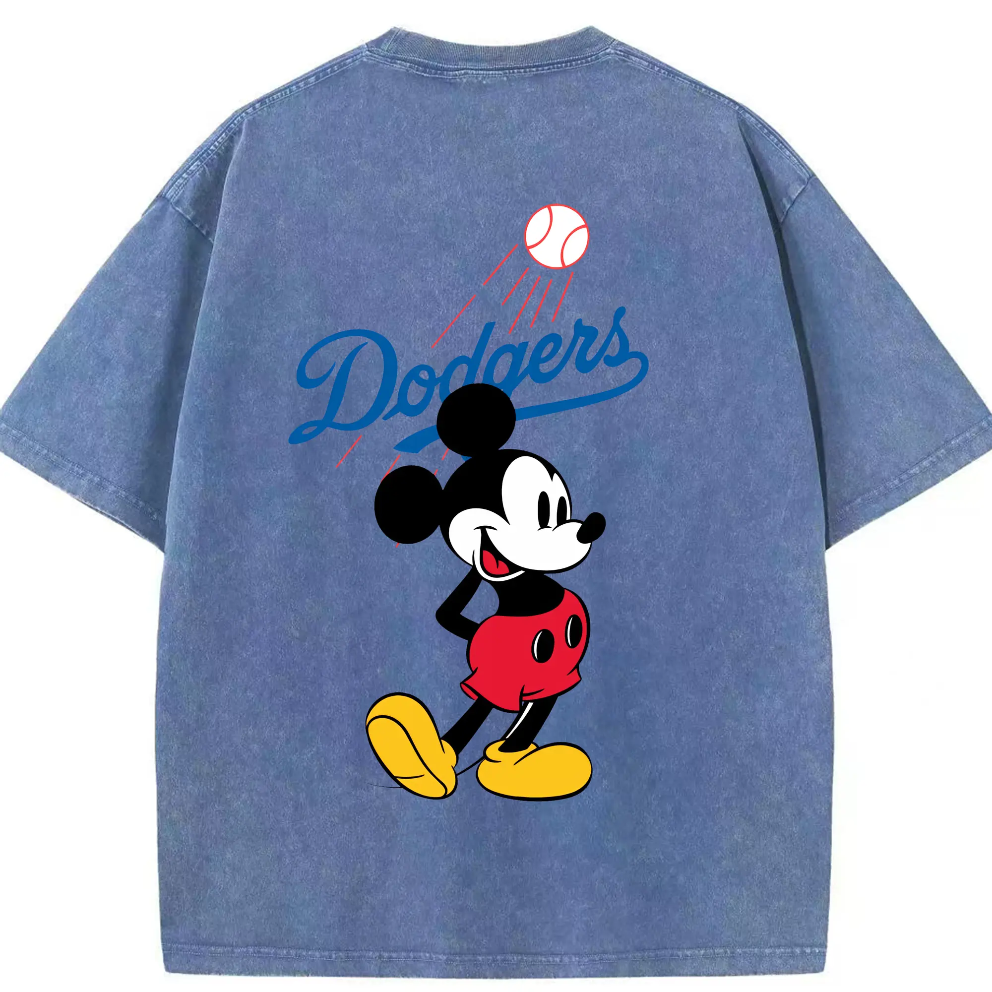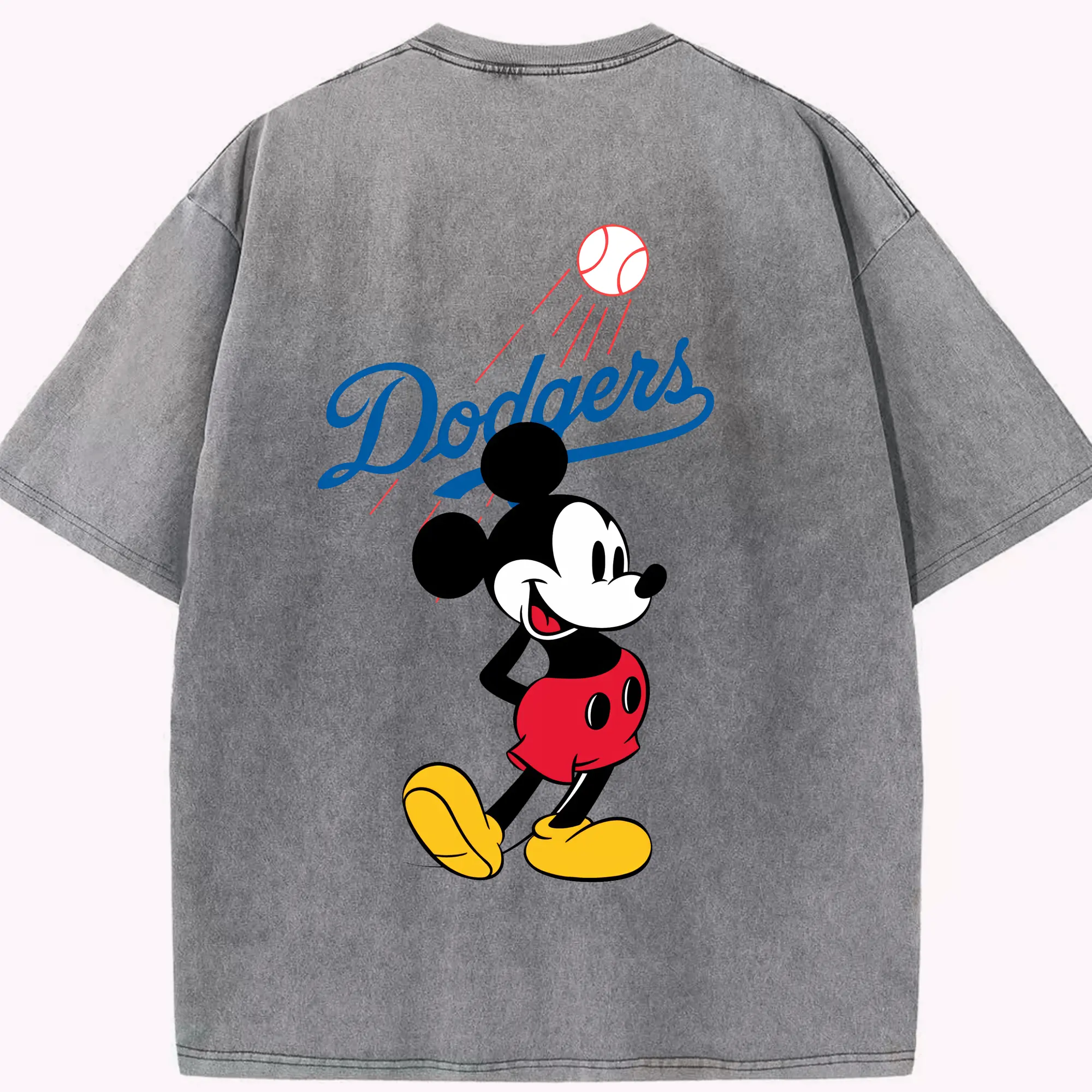Baseball Mickey Mouse Los Angeles Dodgers - Washed Vintage 230g Cotton Oversized T-Shirt With Back Heat Transfer Print – Soft, Lightweight & Stylish – Comfortable Casual Wear For Sports & Everyday Use