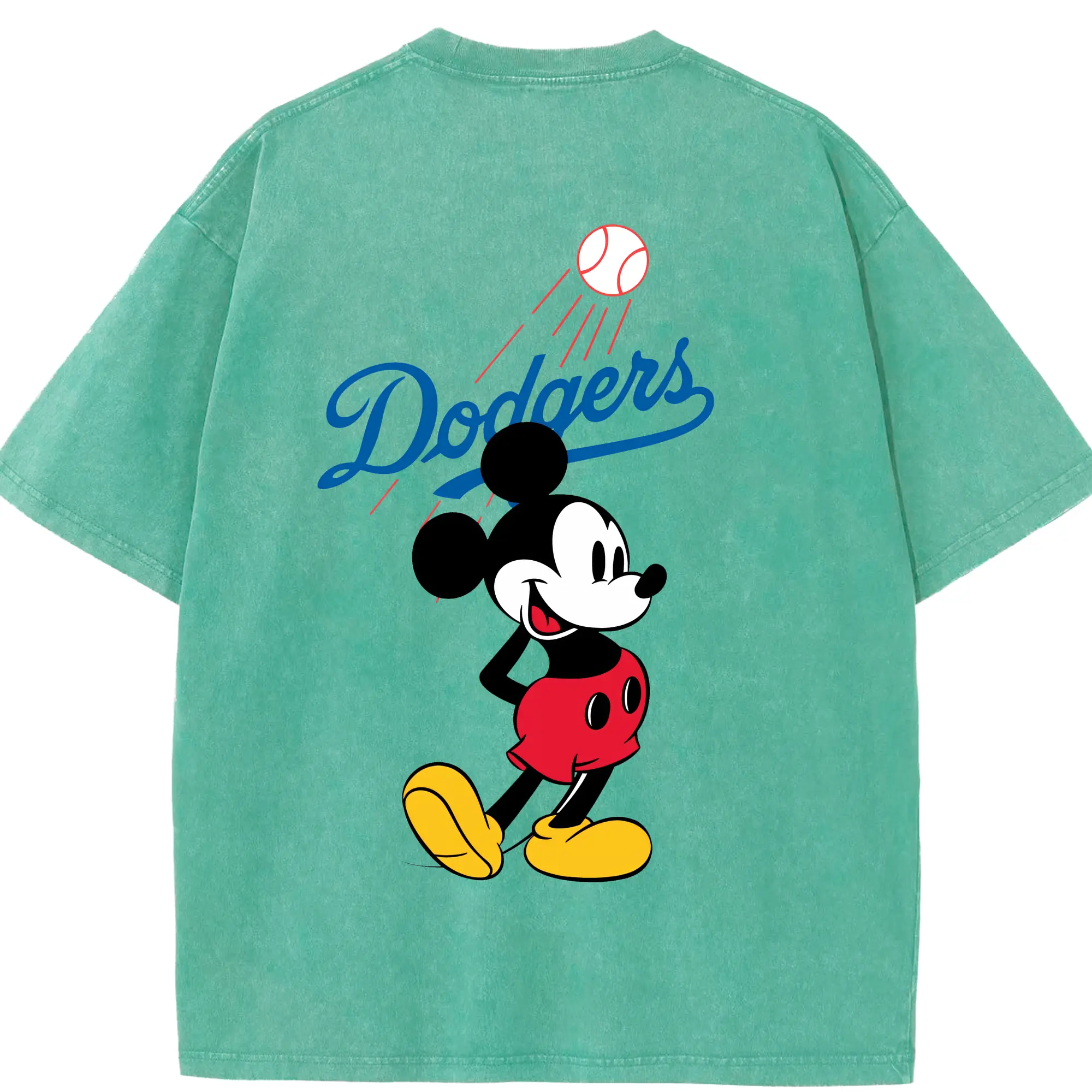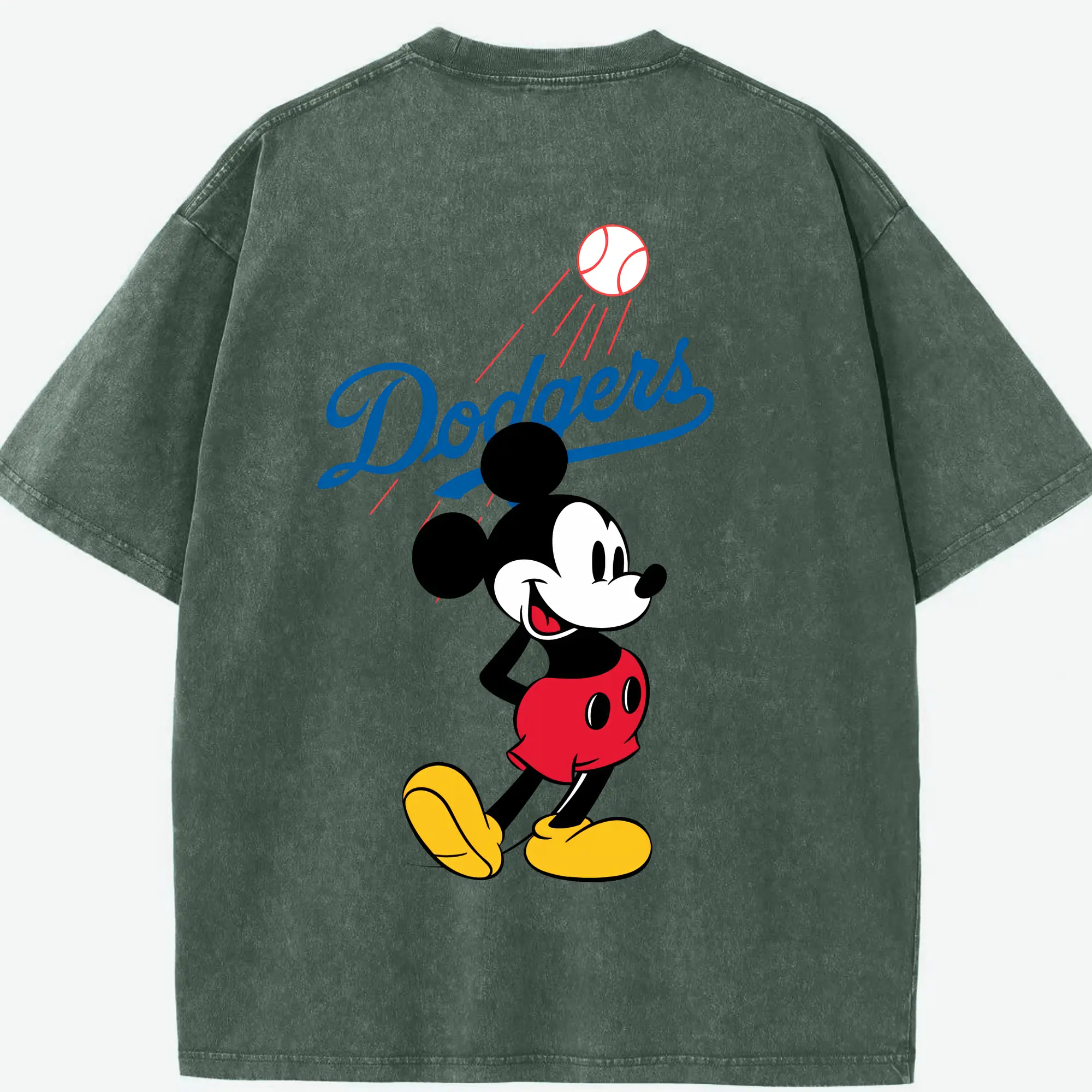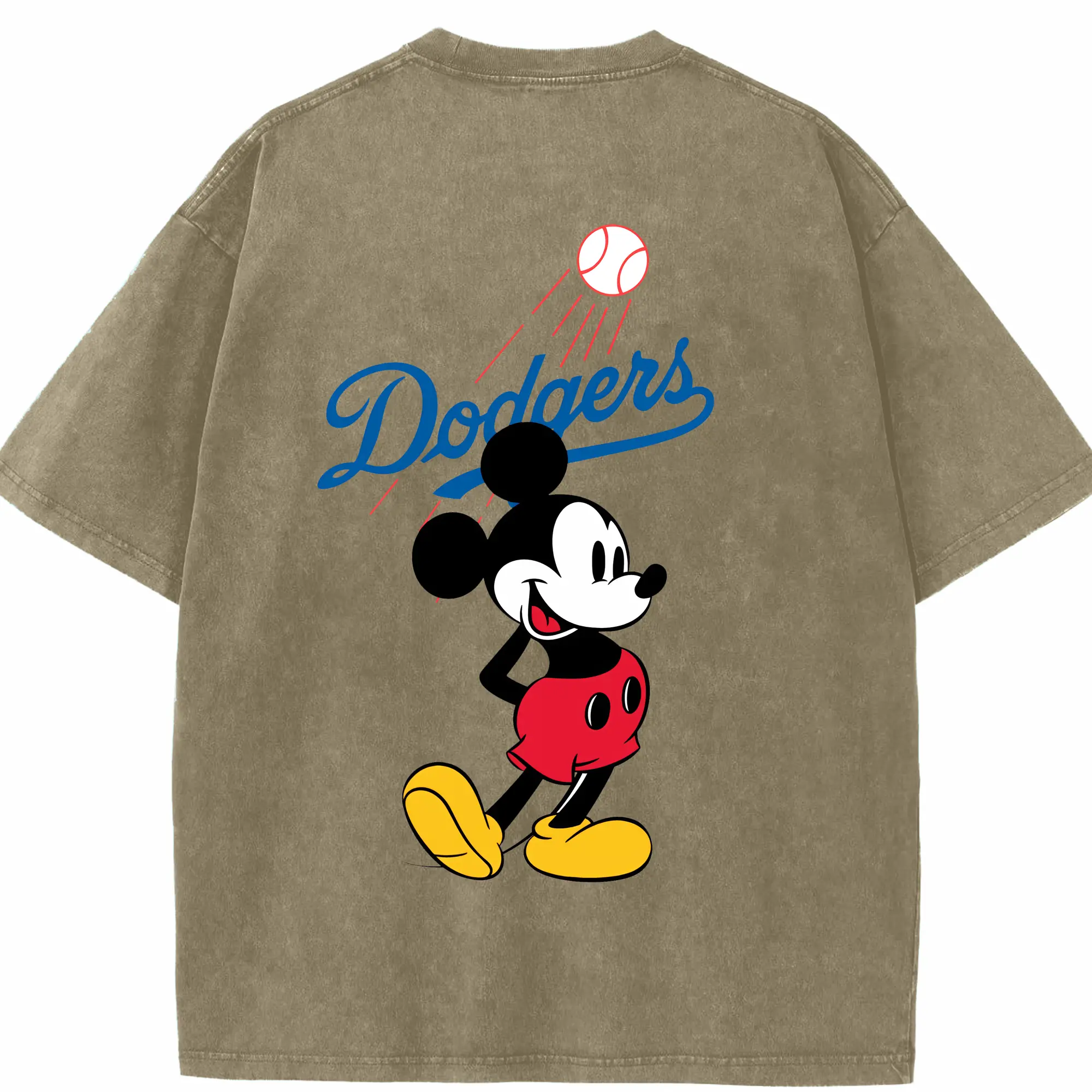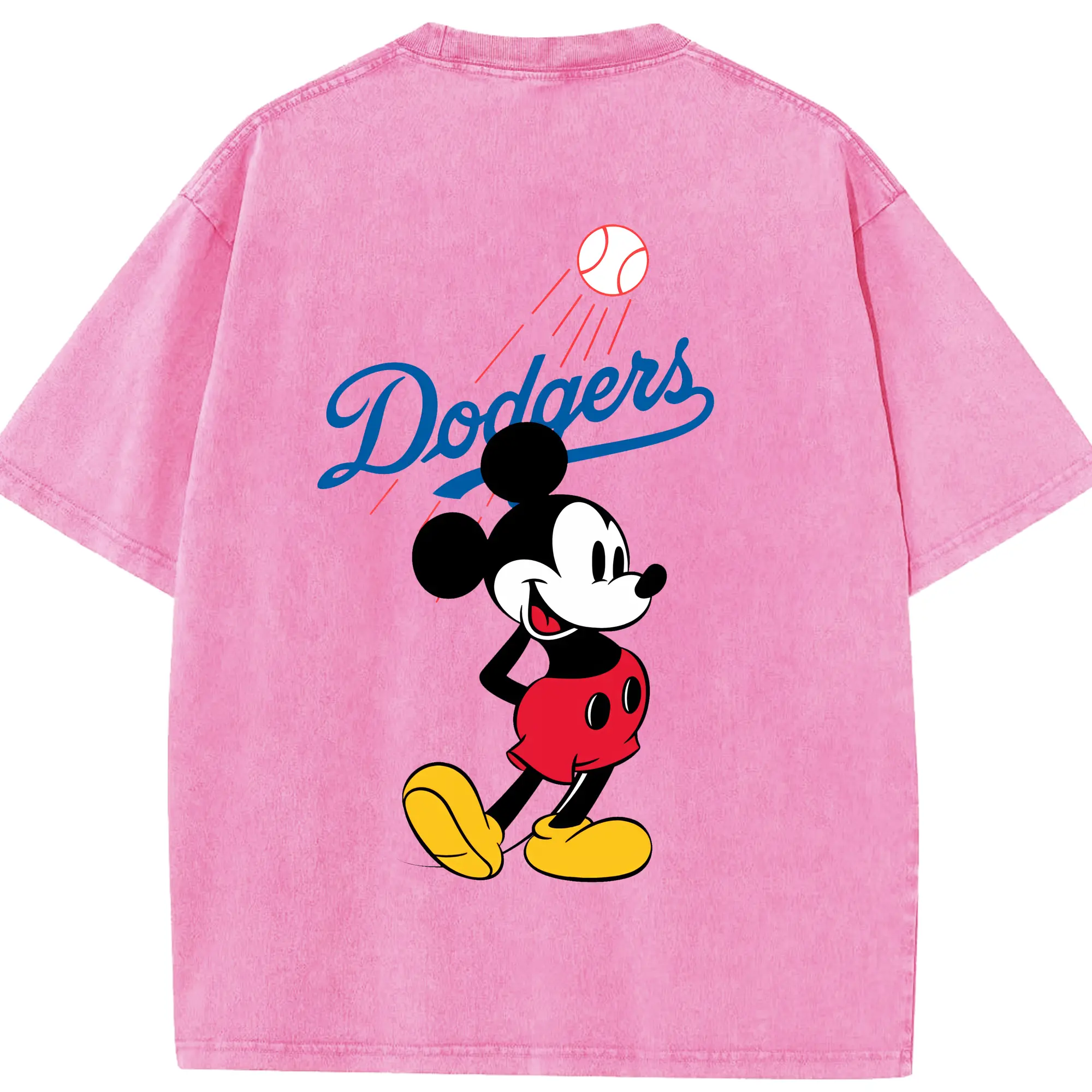 Baseball Mickey Mouse Los Angeles Dodgers - Washed Vintage 230g Cotton Oversized T-Shirt With Back Heat Transfer Print – Soft, Lightweight & Stylish – Comfortable Casual Wear For Sports & Everyday Use