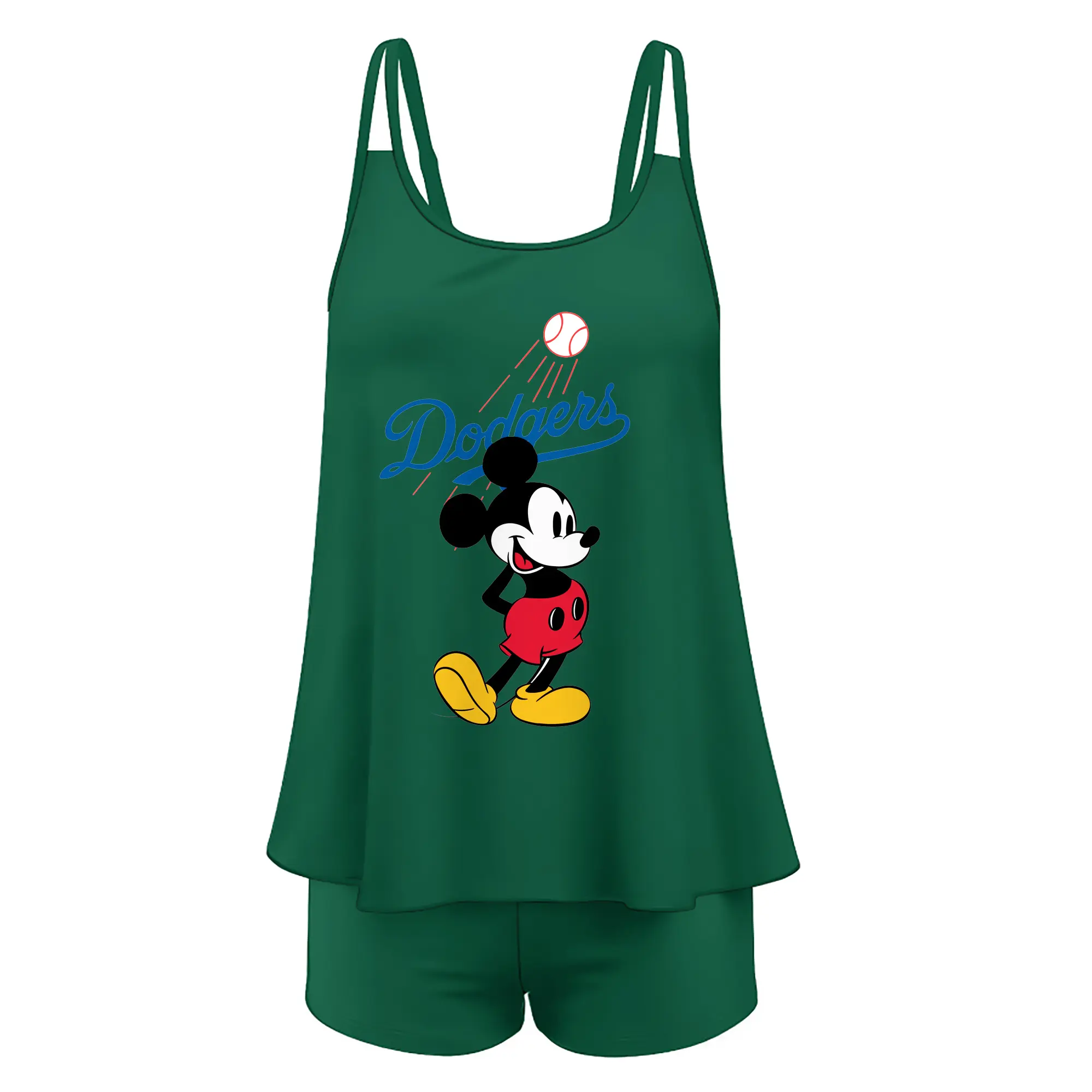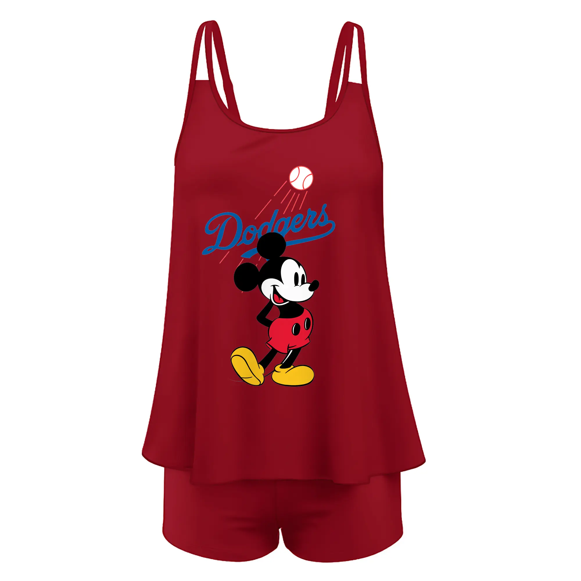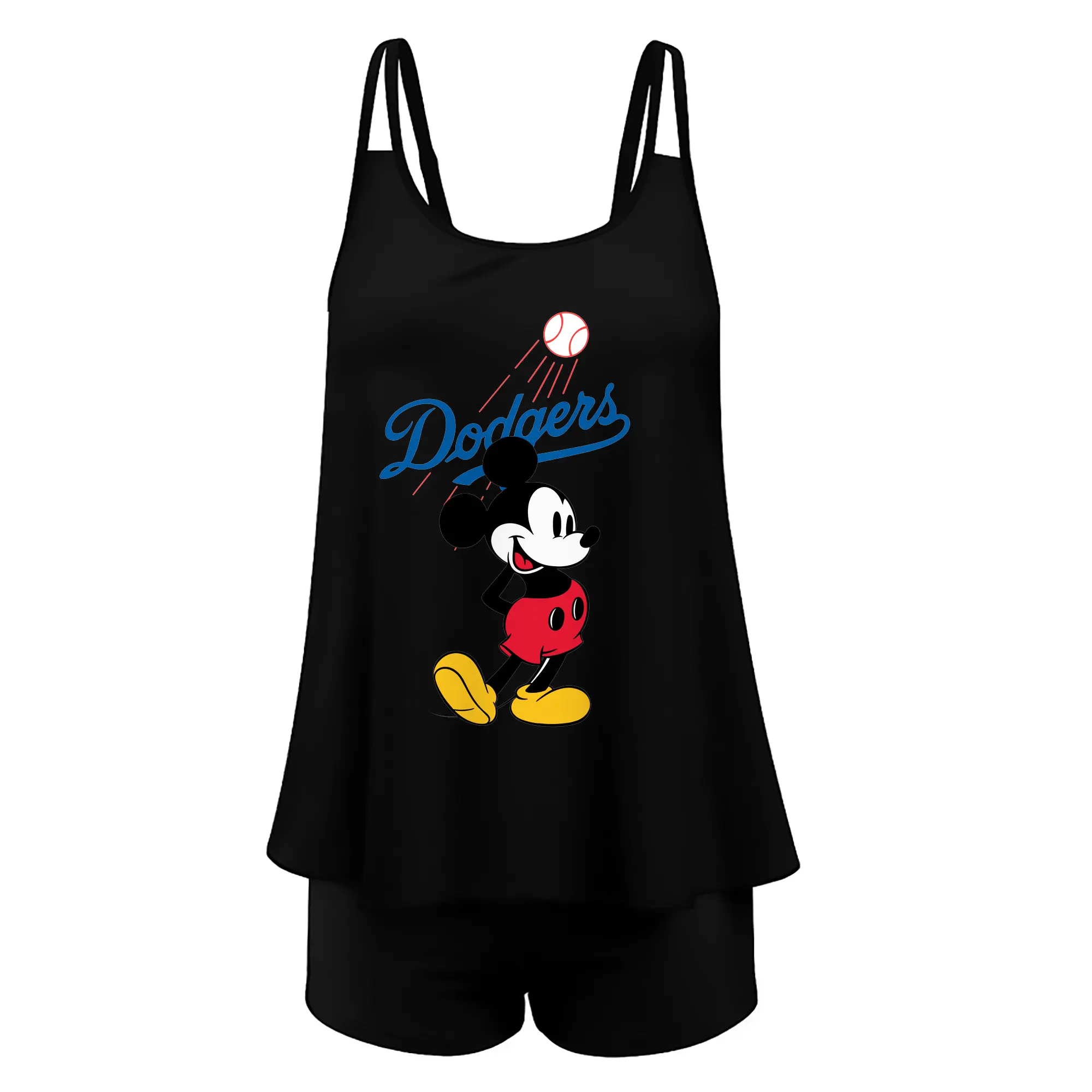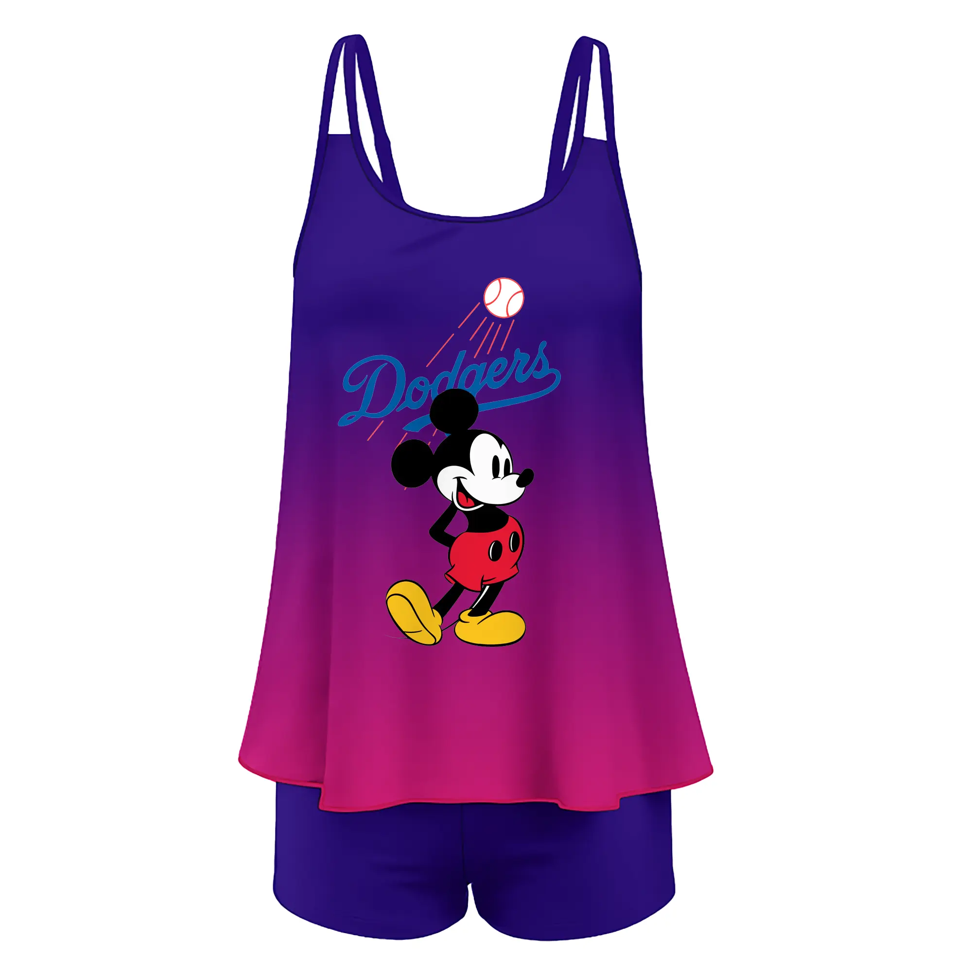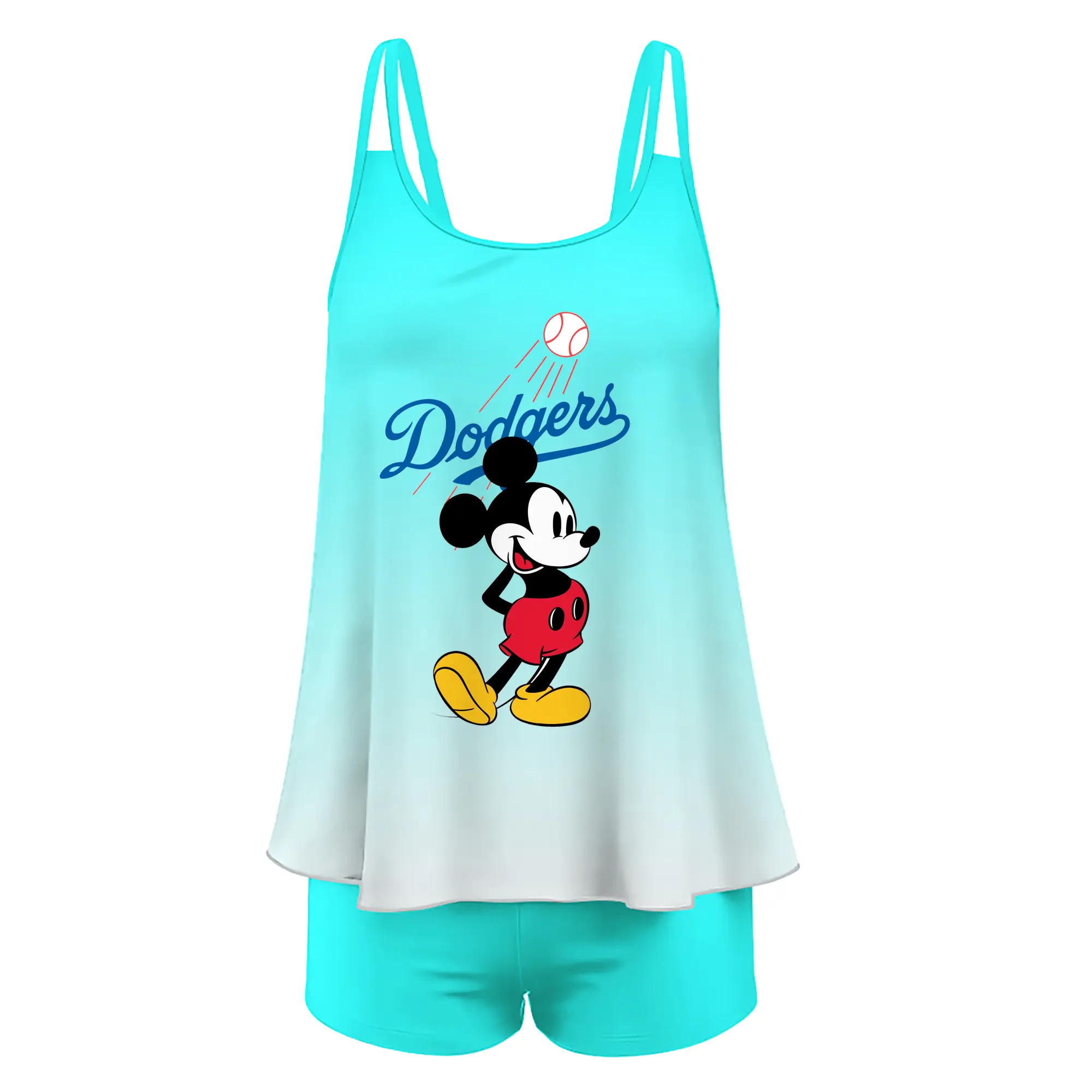 Baseball Mickey Mouse Los Angeles Dodgers - Women’s Heat Transfer Printed Two-Piece Swimsuit Set – Sexy Double Strap Bandeau Top & Boyshort Bottoms, Soft Nylon-Spandex – Perfect for Beach, Pool & Vacation