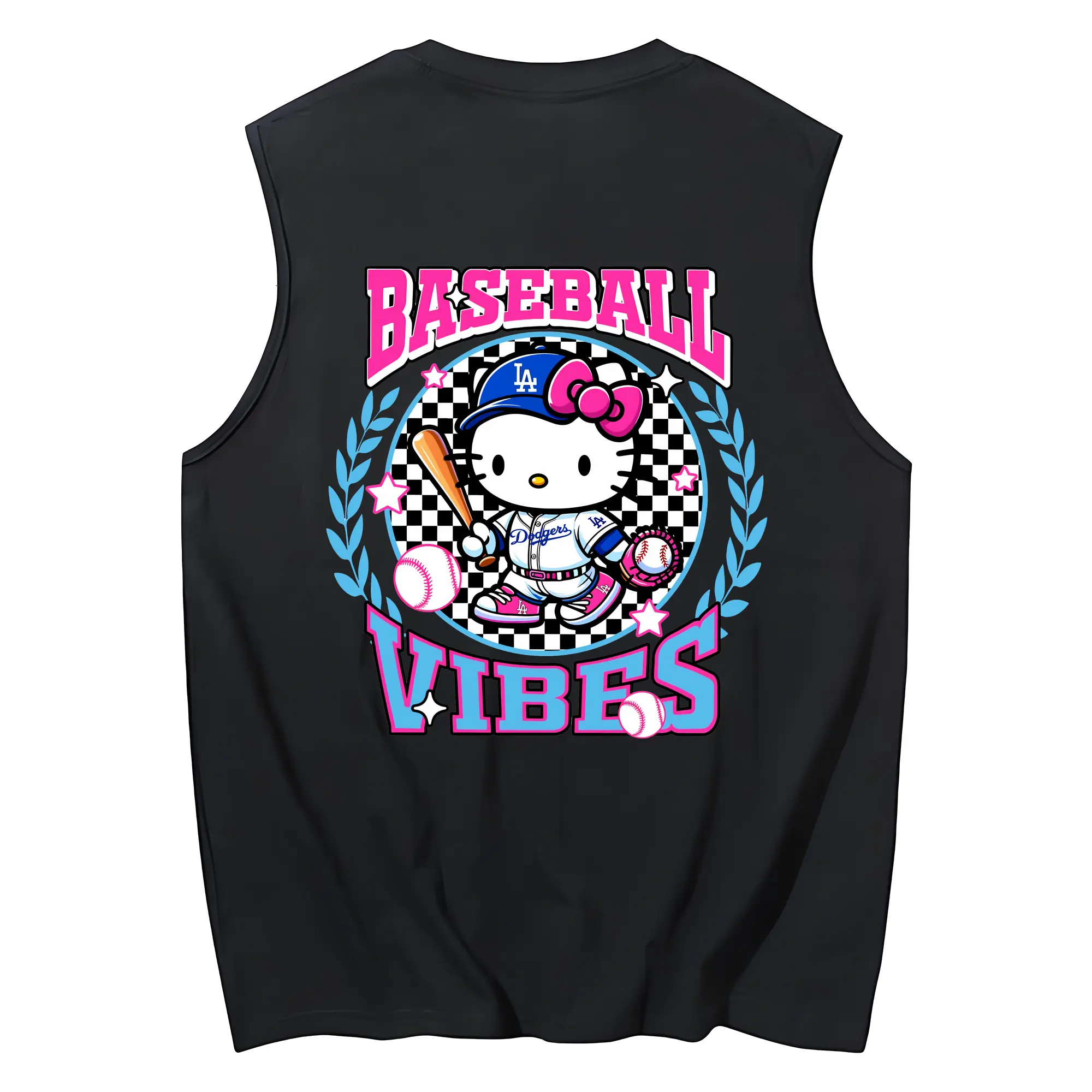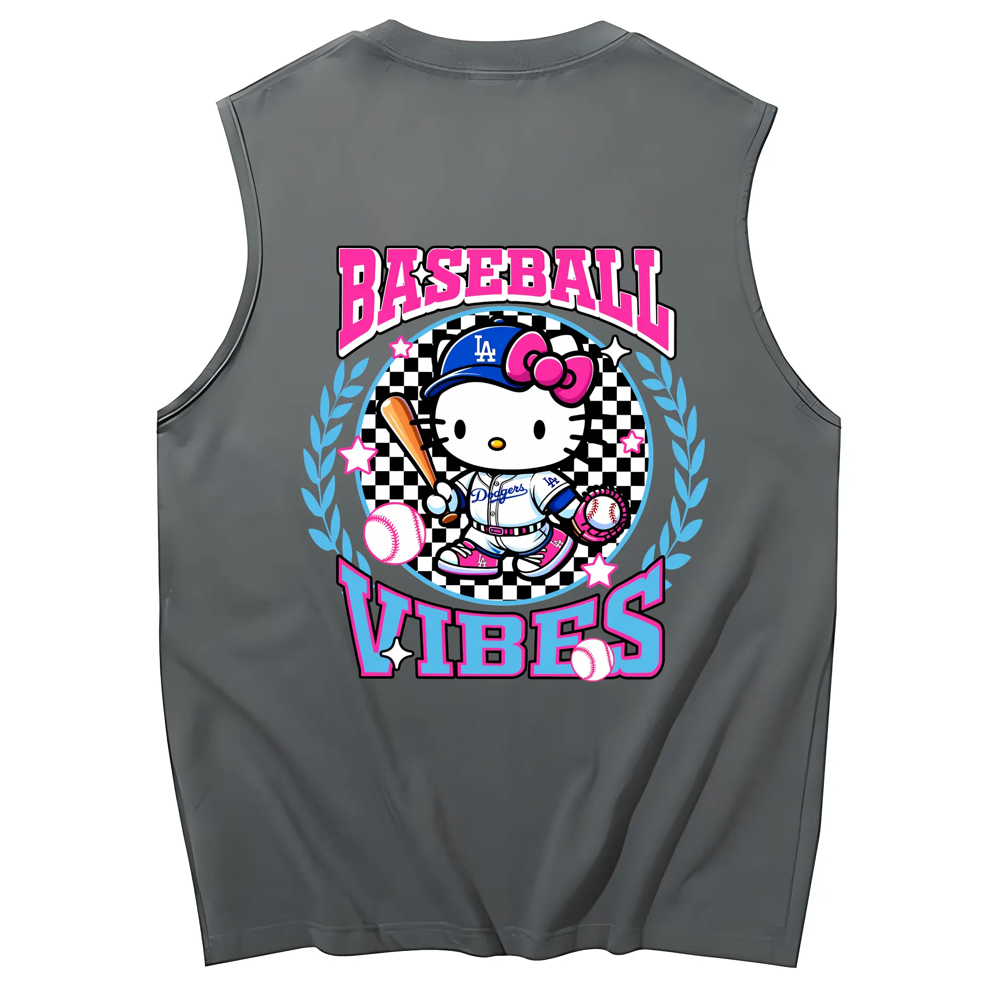 Baseball Vibes Hello Kitty Los Angeles Dodgers - 230g Pure Cotton Tank Top With Back Heat Transfer Print – Soft, Lightweight, Fitted Design – Stylish & Comfortable Casual Wear For Sports & Everyday Use
