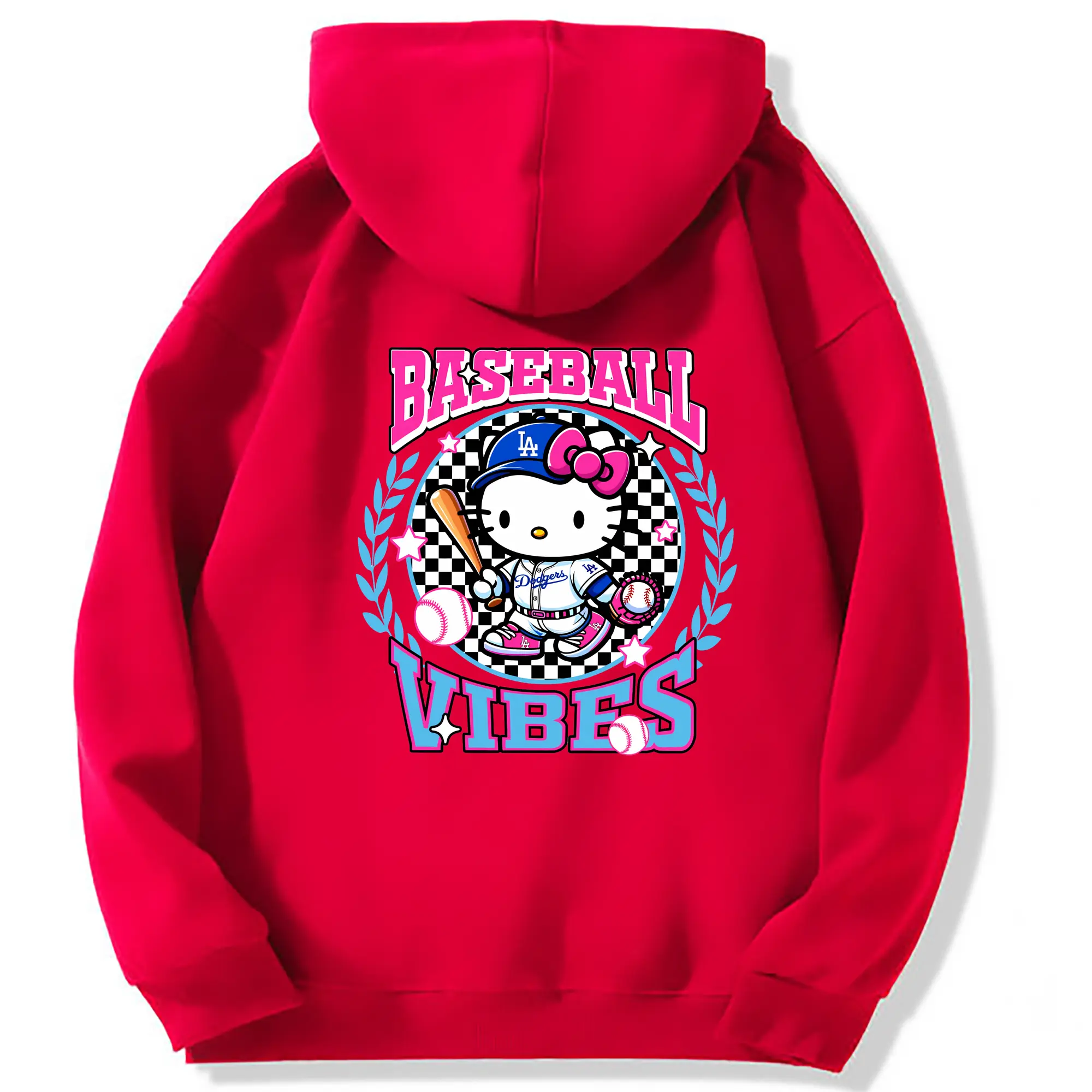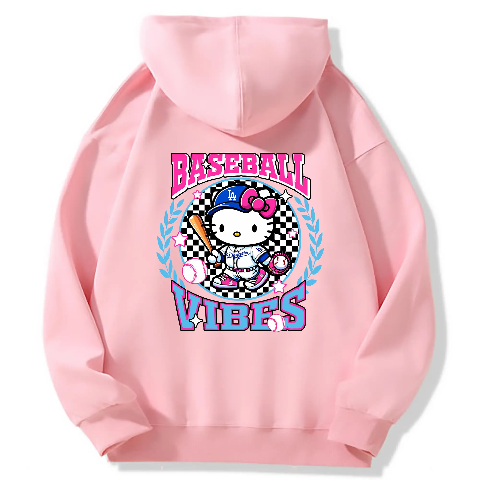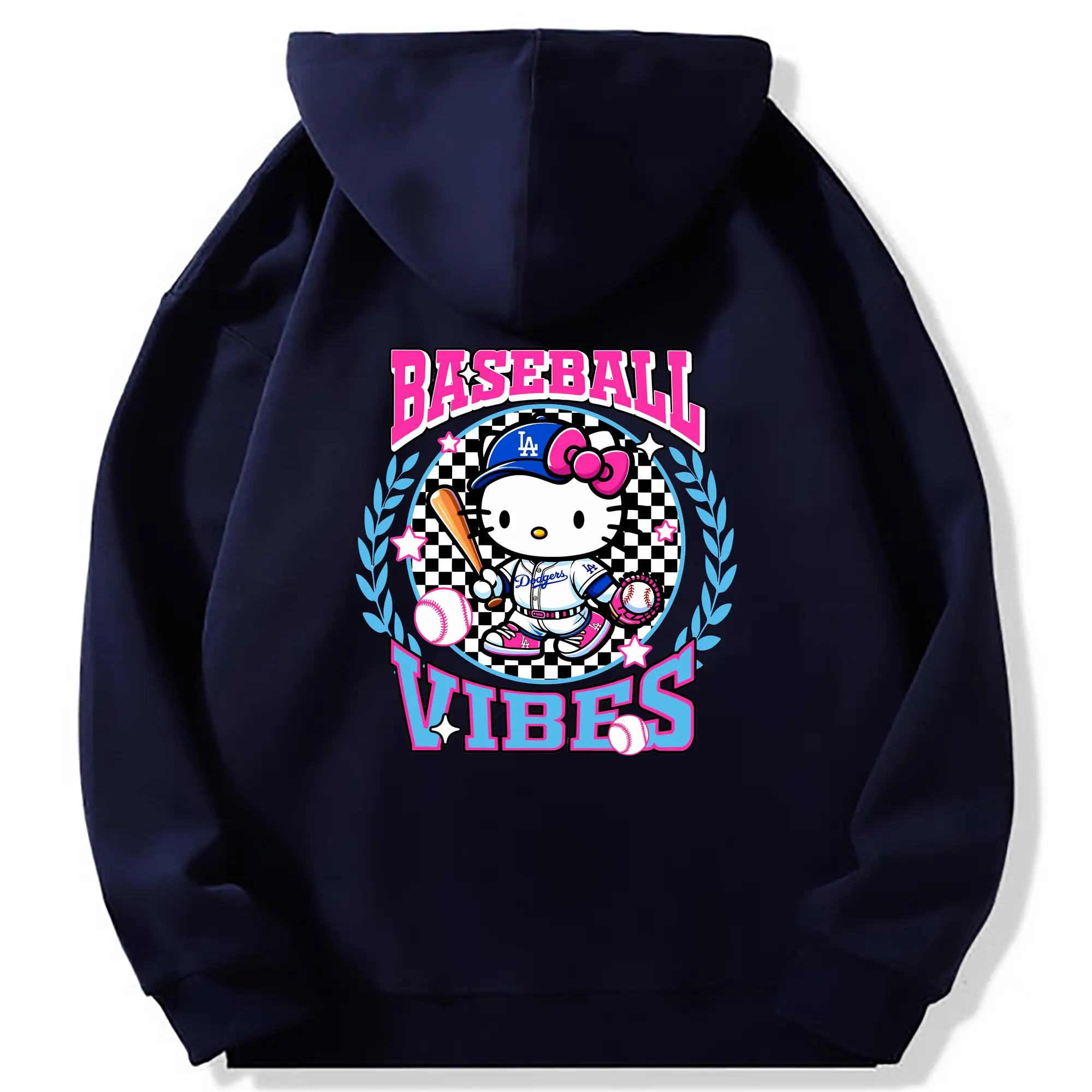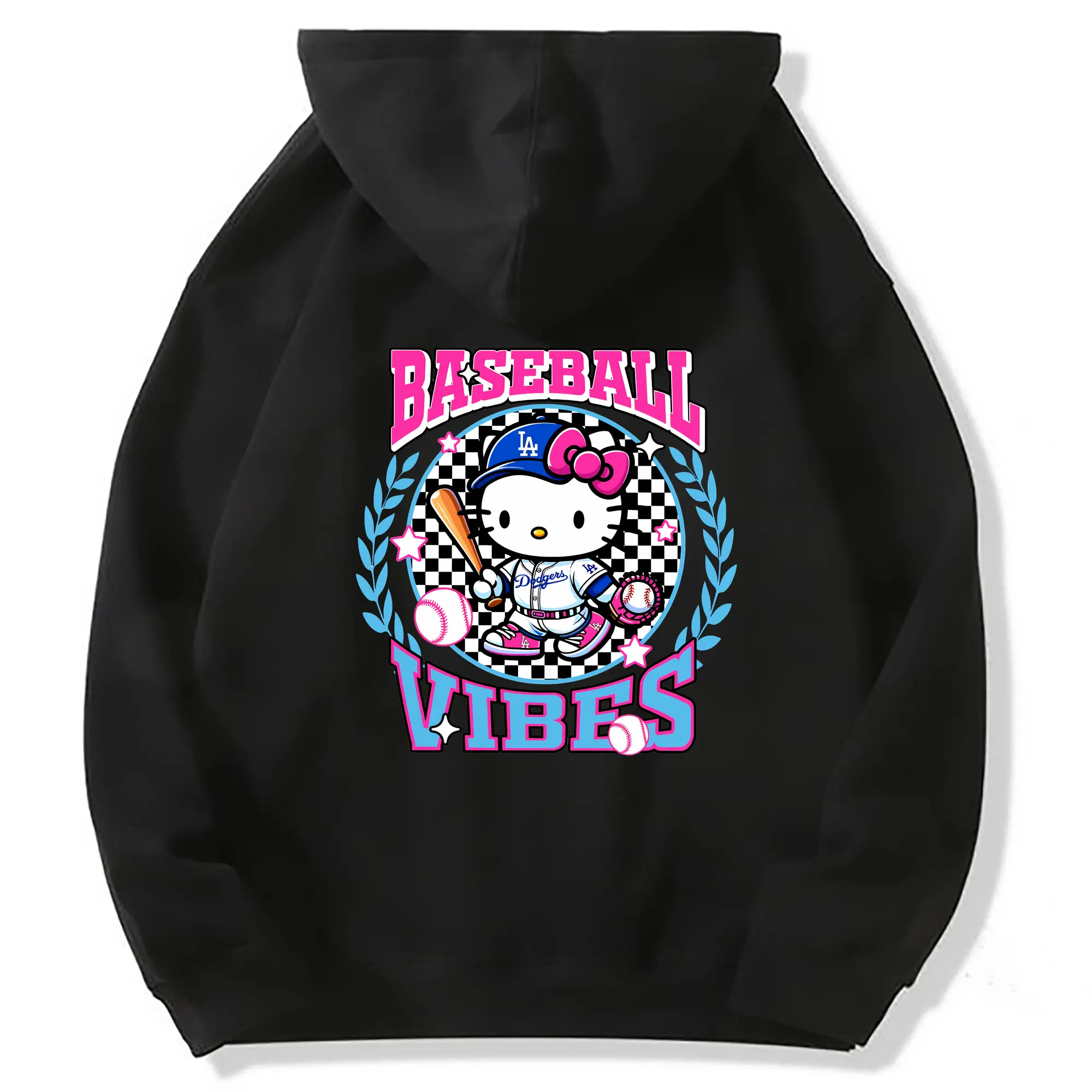 Baseball Vibes Hello Kitty Los Angeles Dodgers - Premium Hoodie With Back Heat Transfer Print – 56.1% Cotton, 43.9% Polyester – Soft, Durable & Stylish – Perfect For Sports, Casual & Everyday Wear