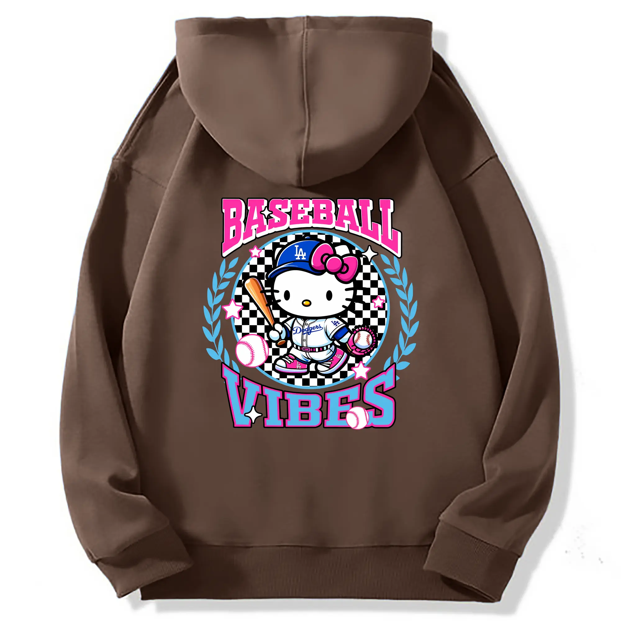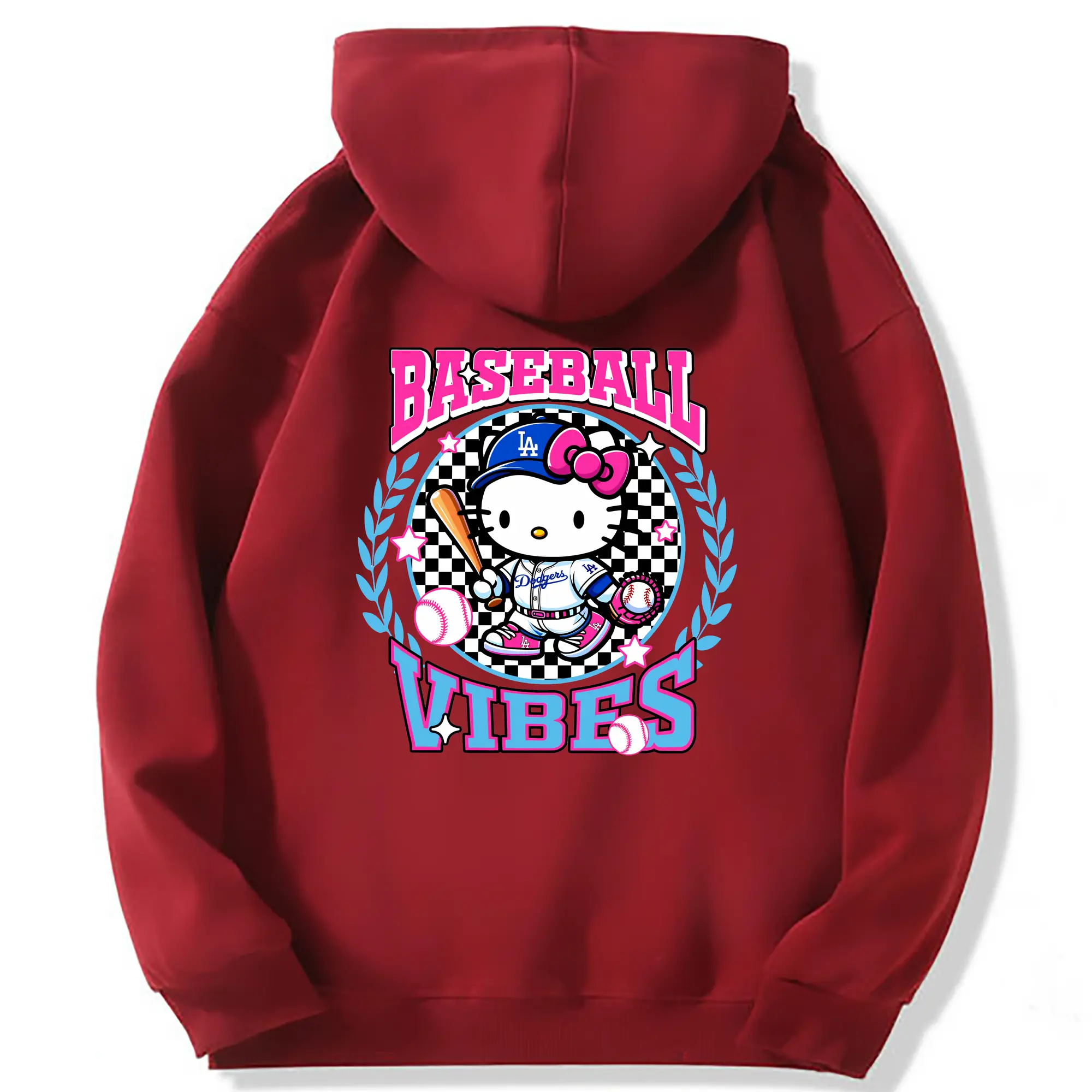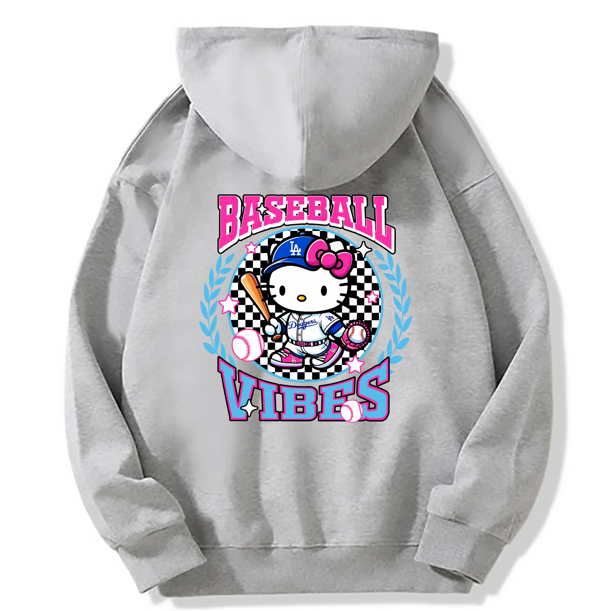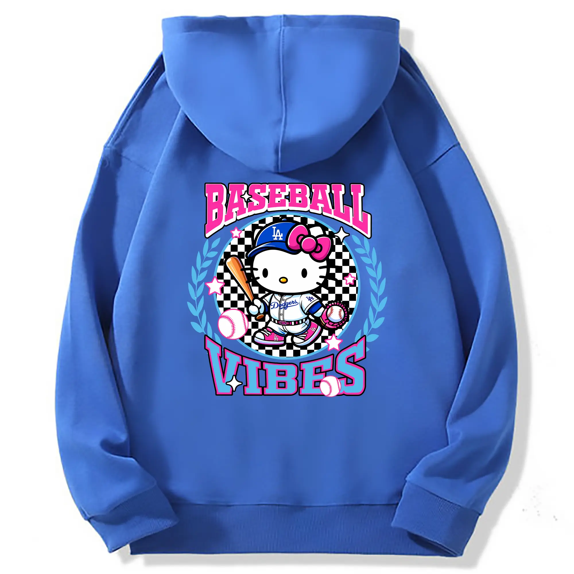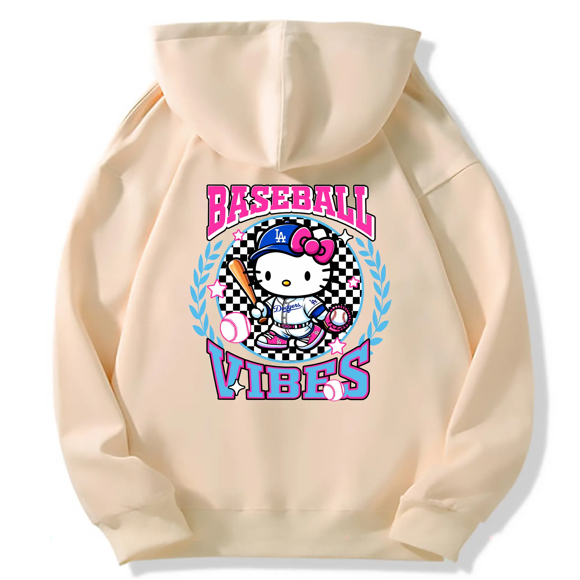 Baseball Vibes Hello Kitty Los Angeles Dodgers - Premium Hoodie With Back Heat Transfer Print – 56.1% Cotton, 43.9% Polyester – Soft, Durable & Stylish – Perfect For Sports, Casual & Everyday Wear
