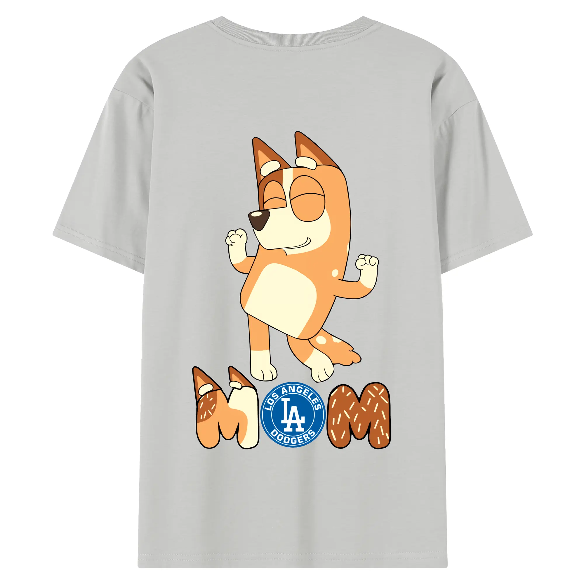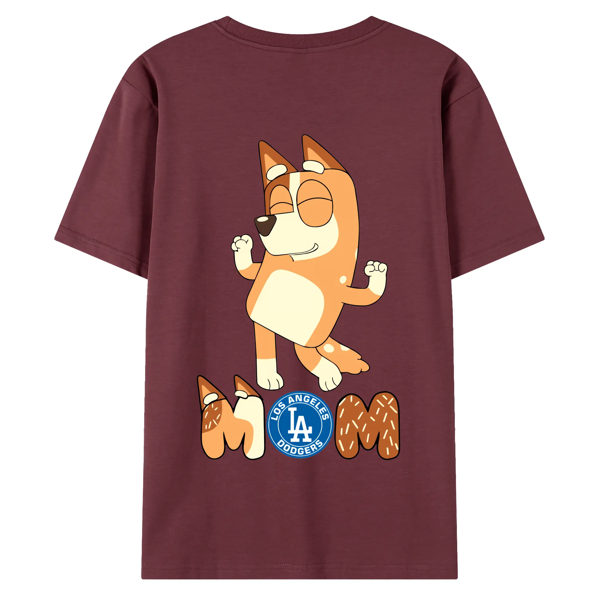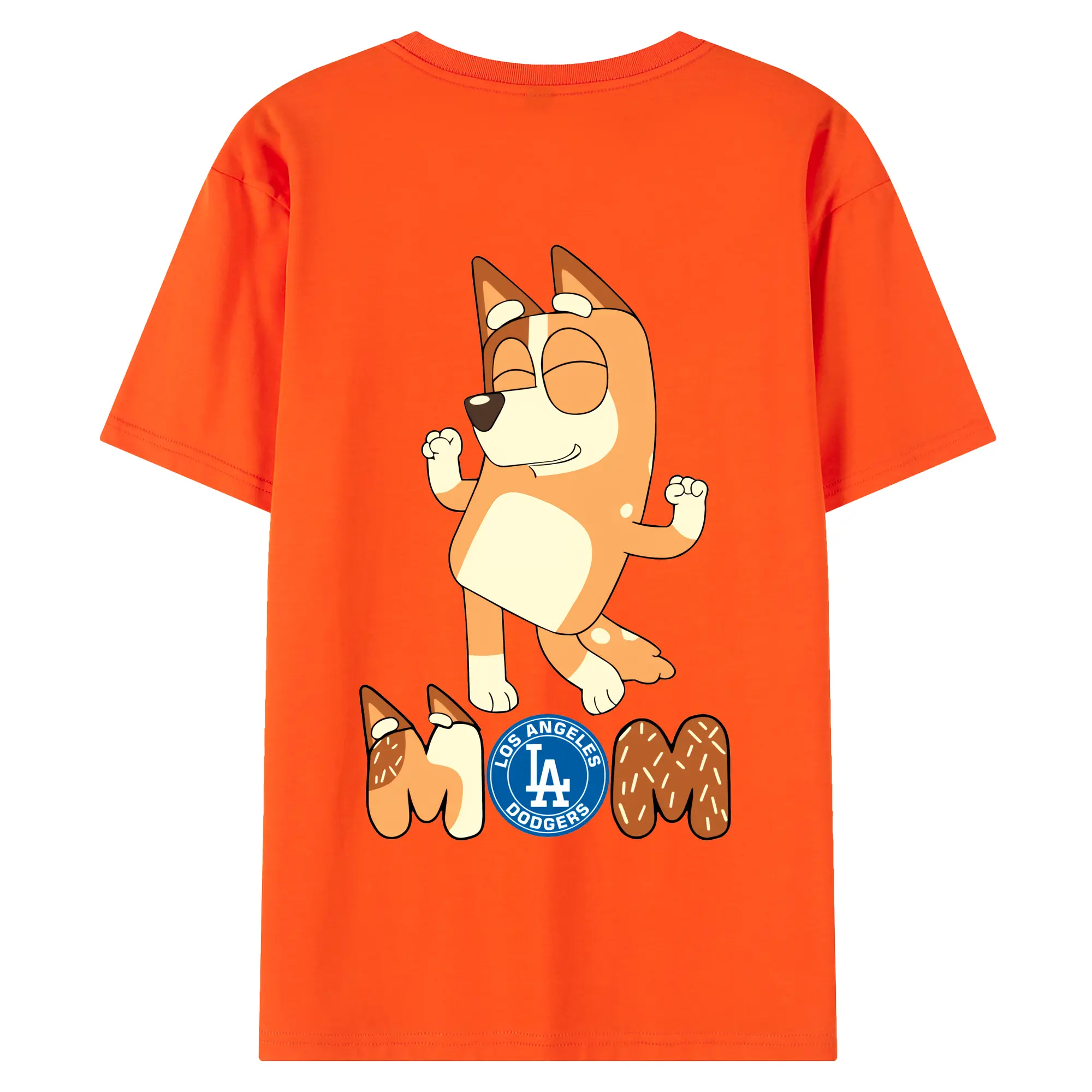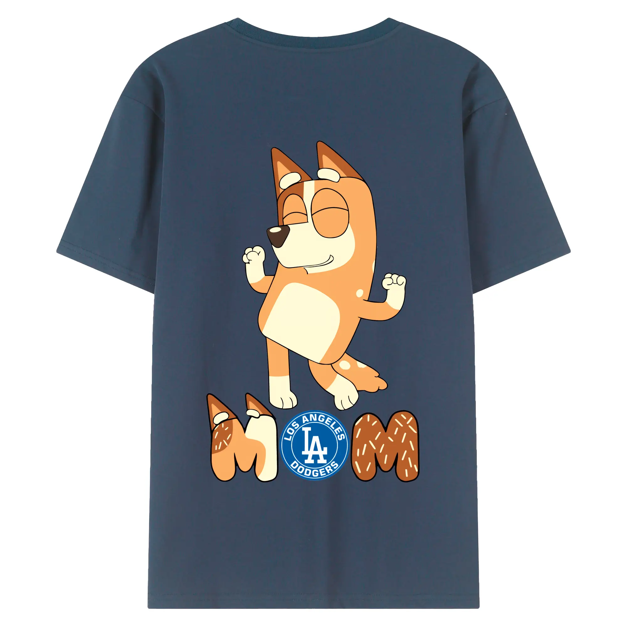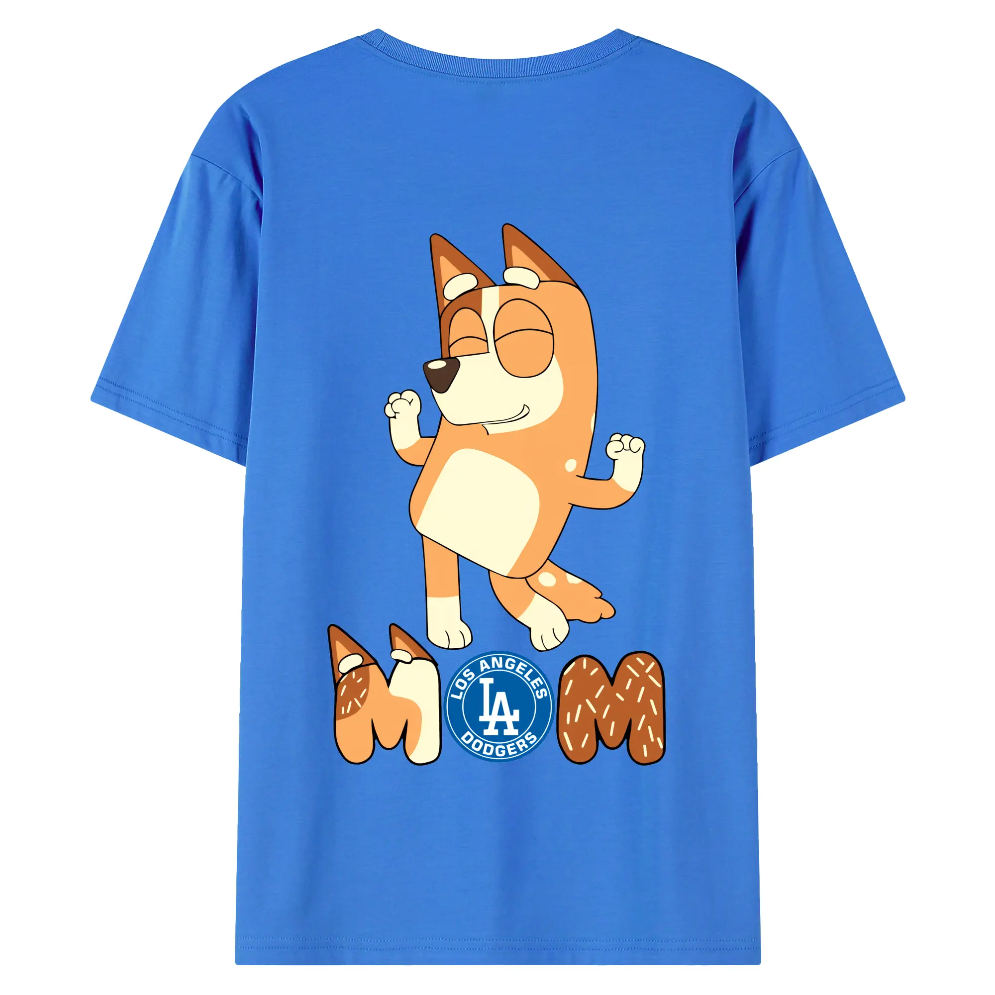 Bluey Mom Los Angeles Dodgers Baseball - 180g Combed Cotton T-Shirt With Back Heat Transfer Print – Soft, Lightweight, Fitted Design – Stylish Casual Wear For Sports & Everyday Use