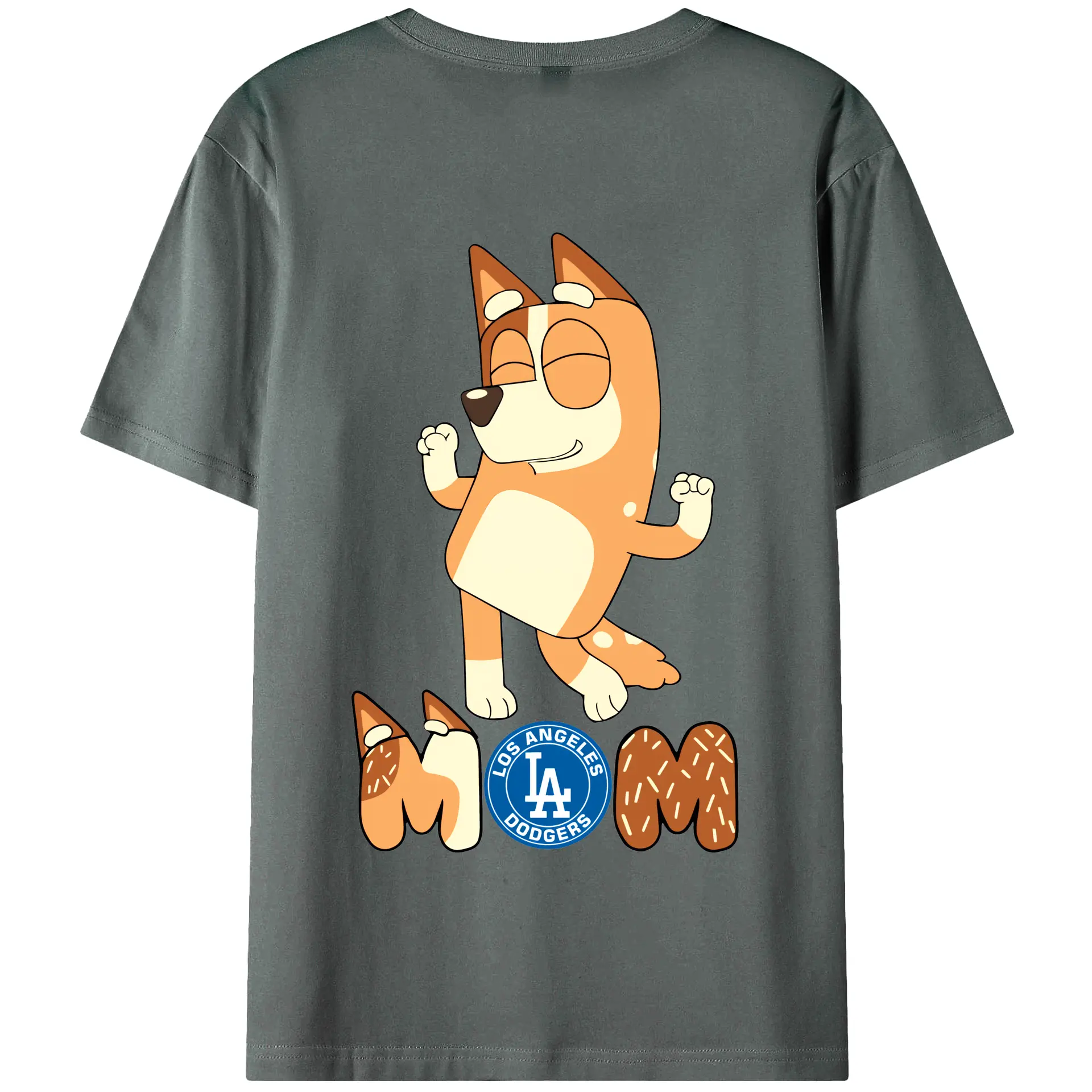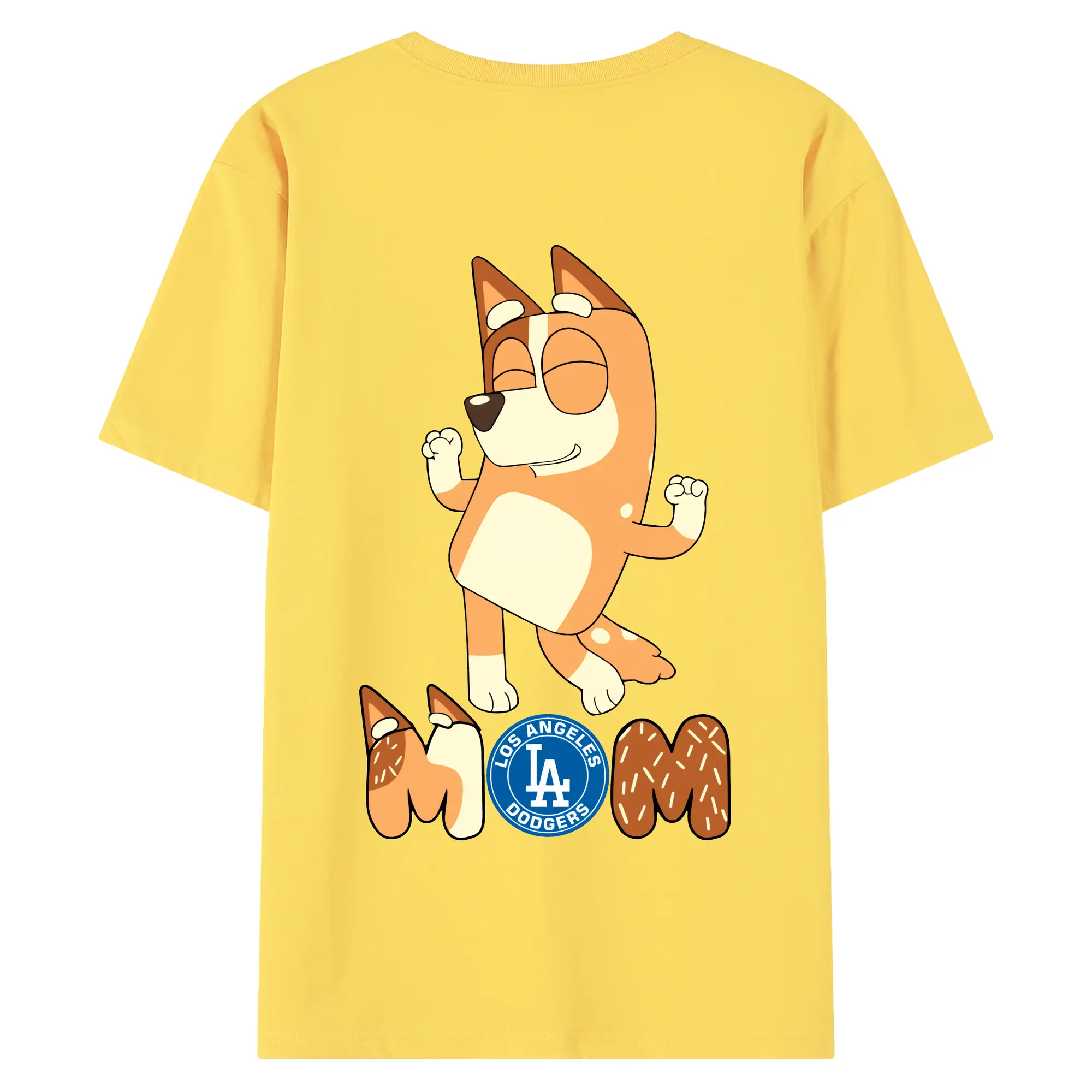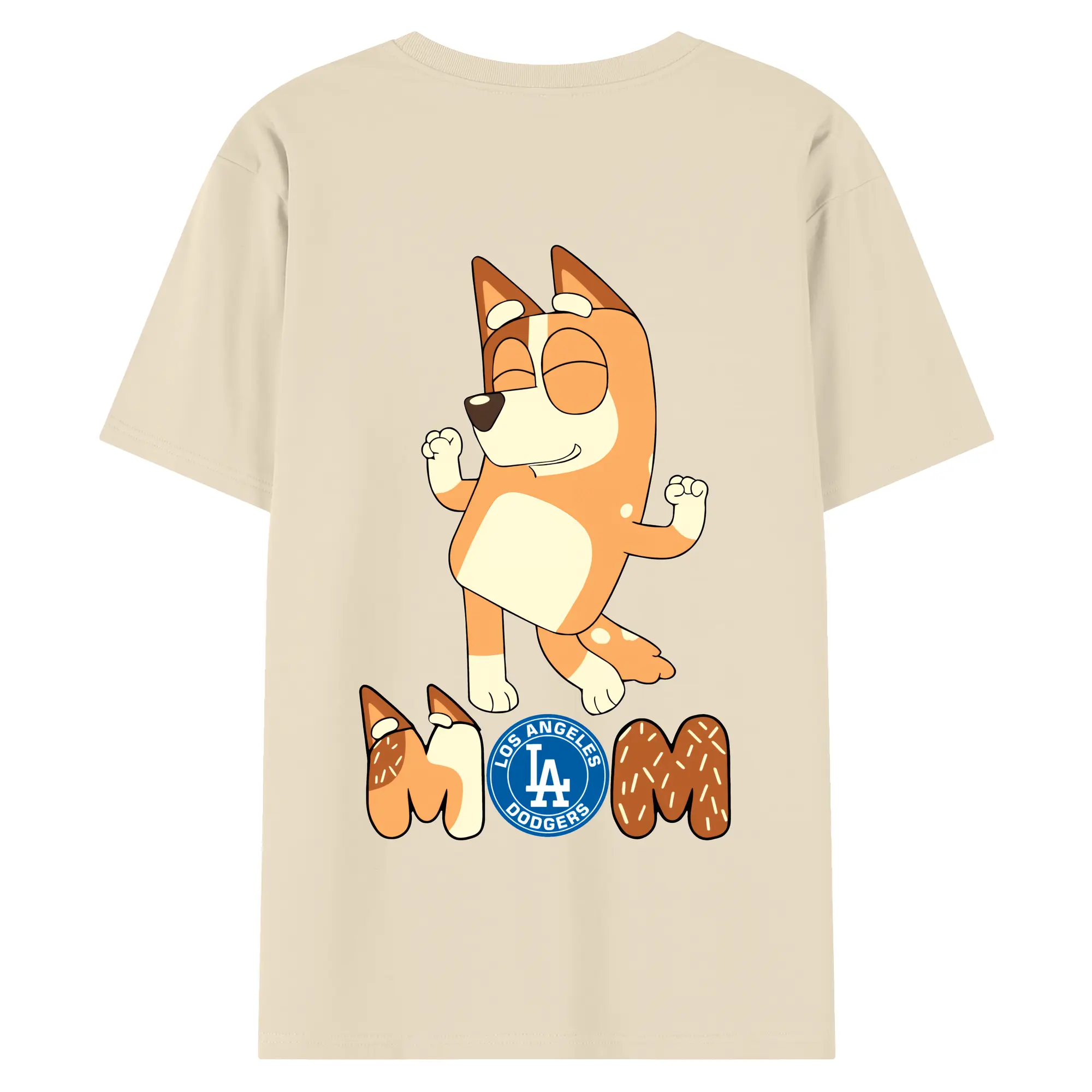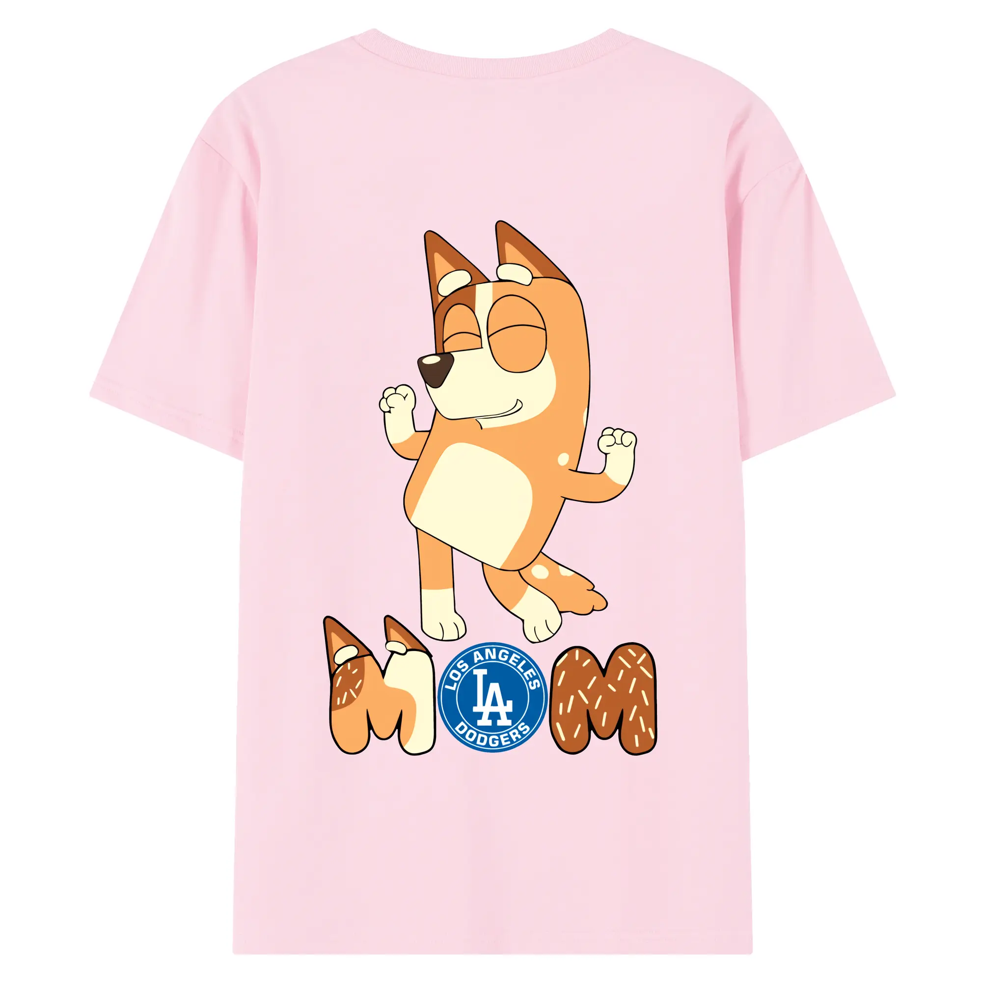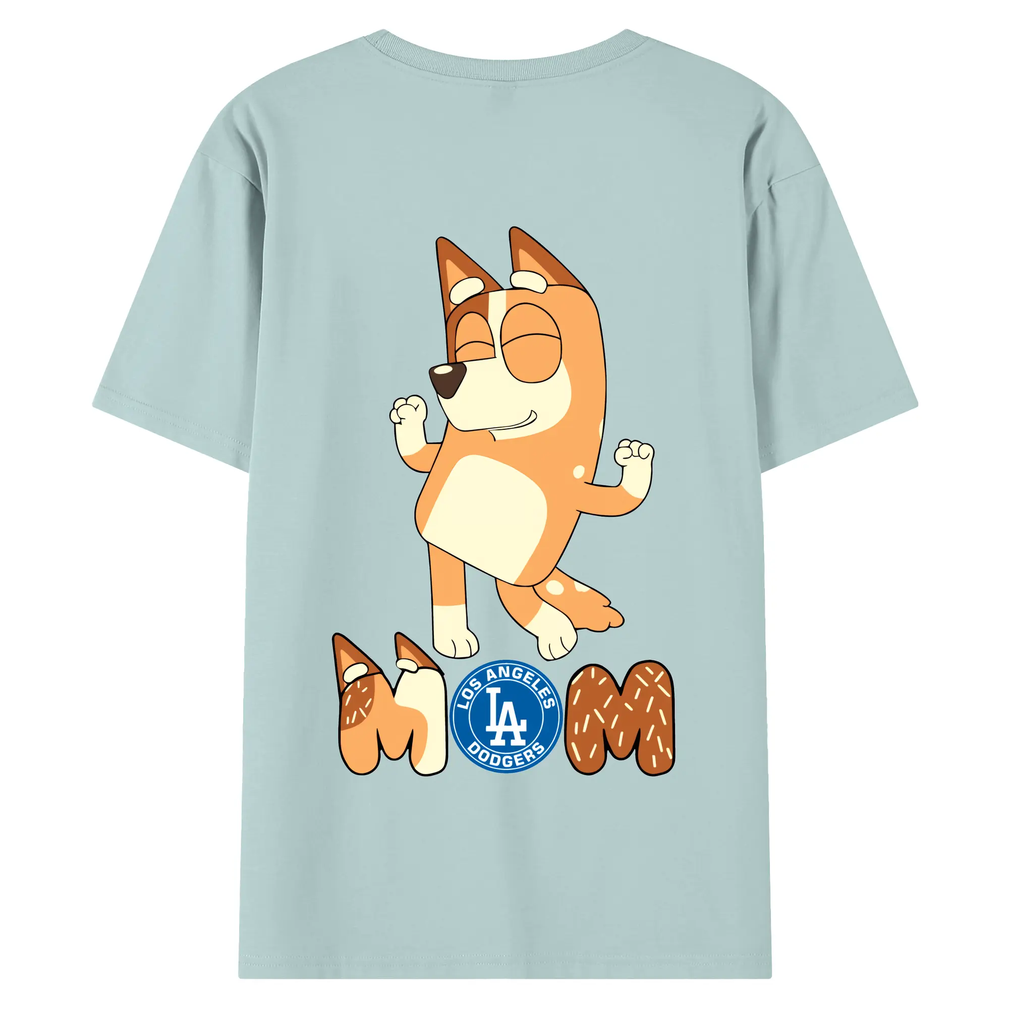 Bluey Mom Los Angeles Dodgers Baseball - 180g Combed Cotton T-Shirt With Back Heat Transfer Print – Soft, Lightweight, Fitted Design – Stylish Casual Wear For Sports & Everyday Use