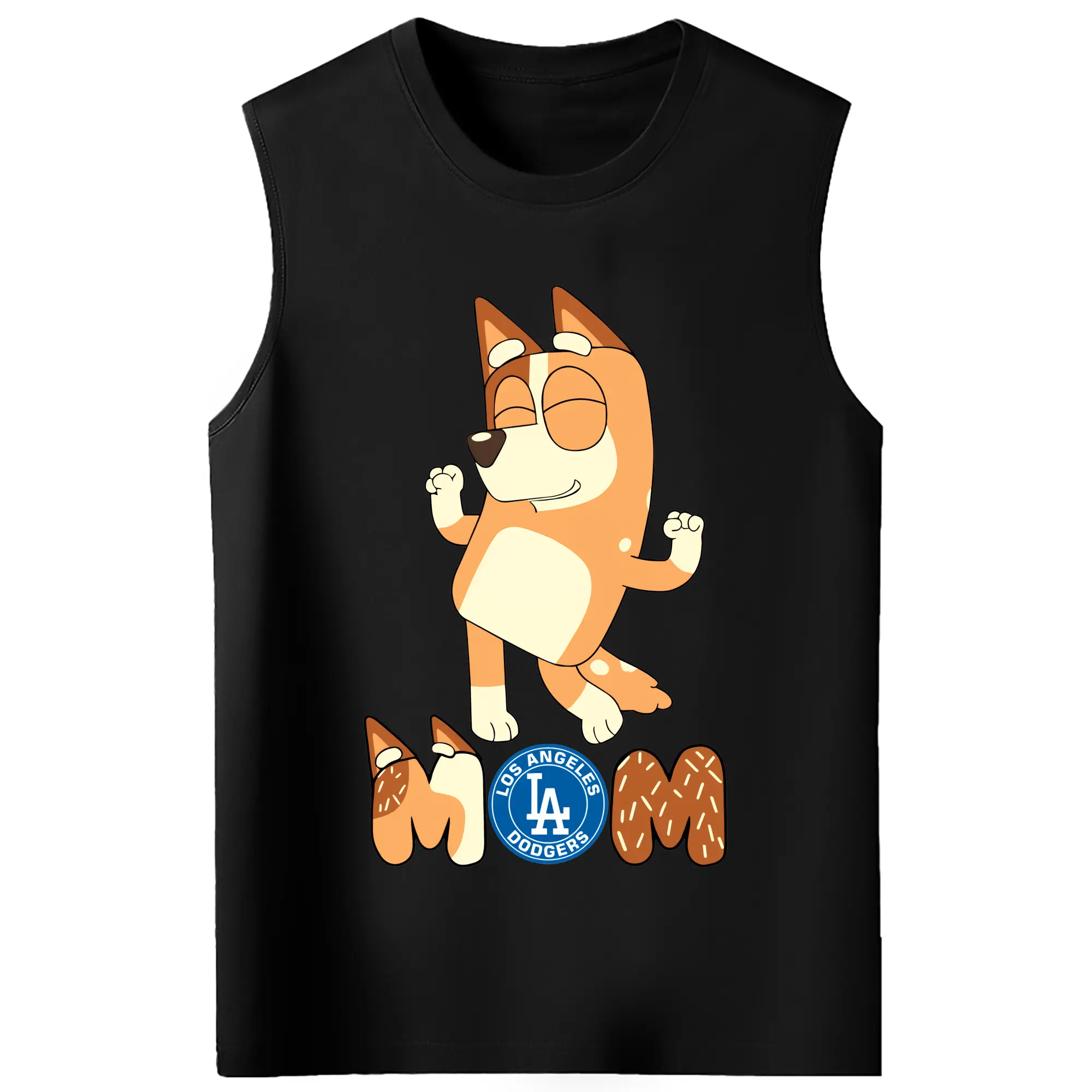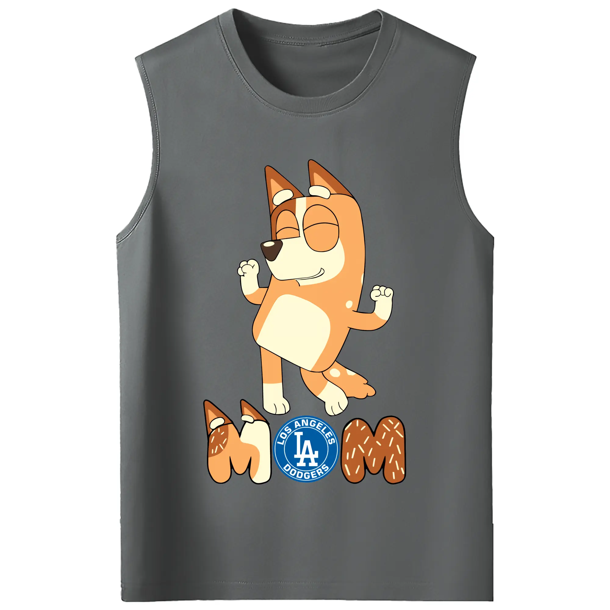 Bluey Mom Los Angeles Dodgers Baseball - 210g Combed Cotton Tank Top With Front Heat Transfer Print – Soft, Lightweight, Fitted Design – Stylish & Comfortable Casual Wear For Sports & Everyday Use