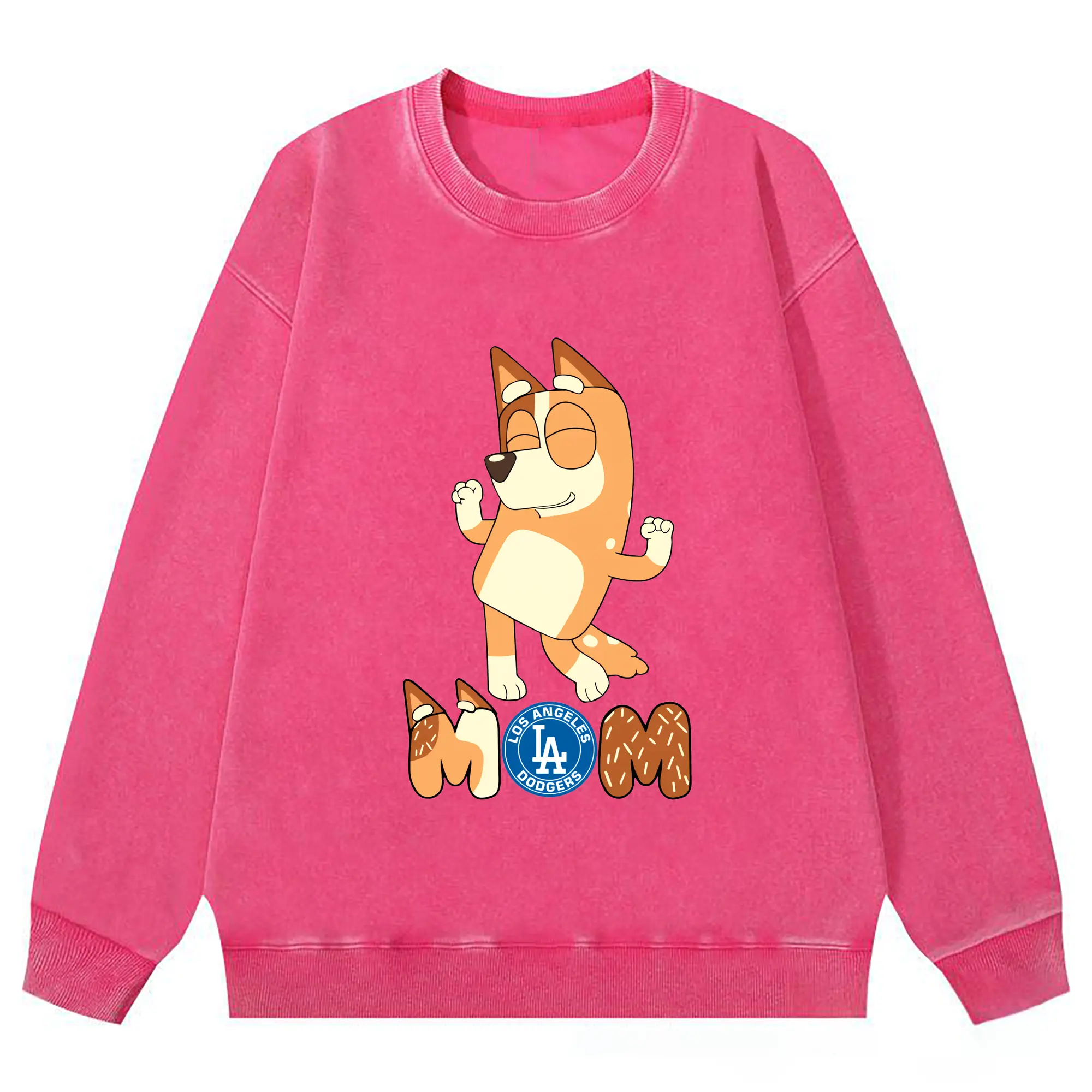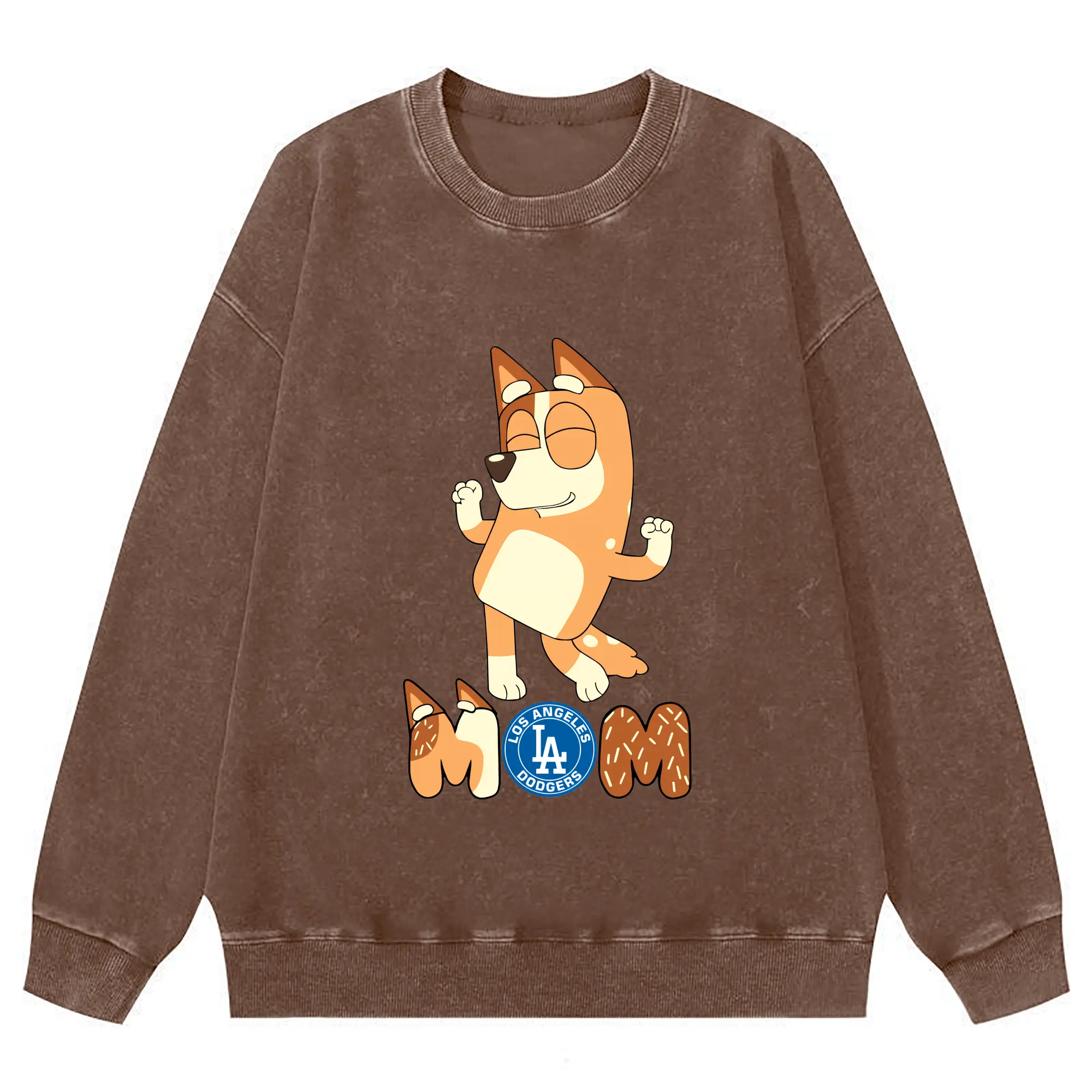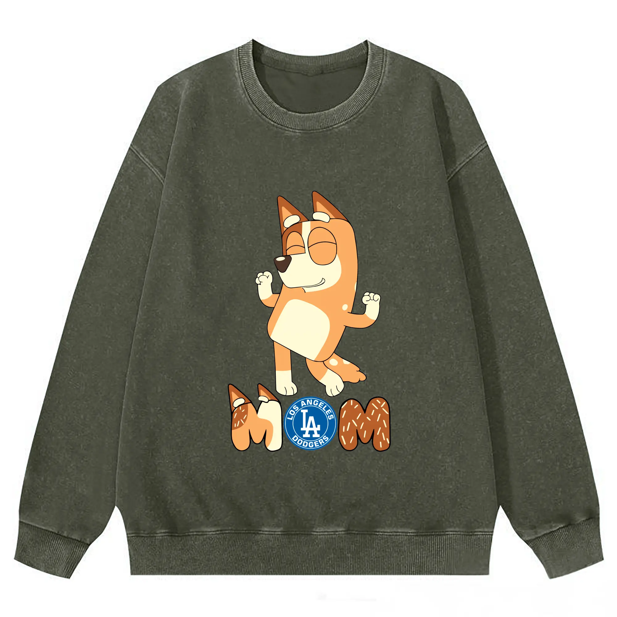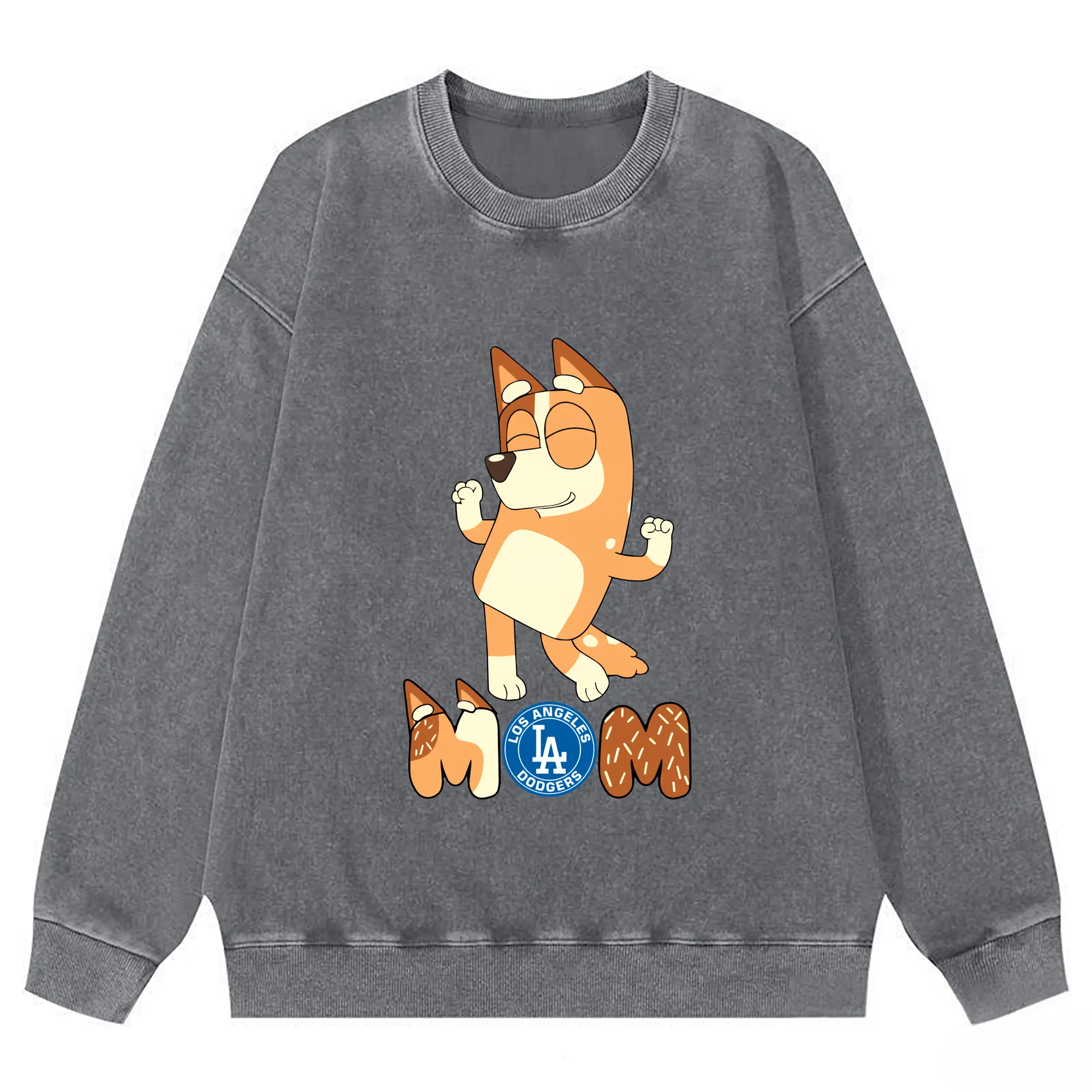 Bluey Mom Los Angeles Dodgers Baseball - Washed Wax-Dyed Vintage Crewneck Sweatshirt – 80% Cotton, 20% Polyester – Soft, Durable & Stylish – Ideal For Sports, Casual & Everyday Wear