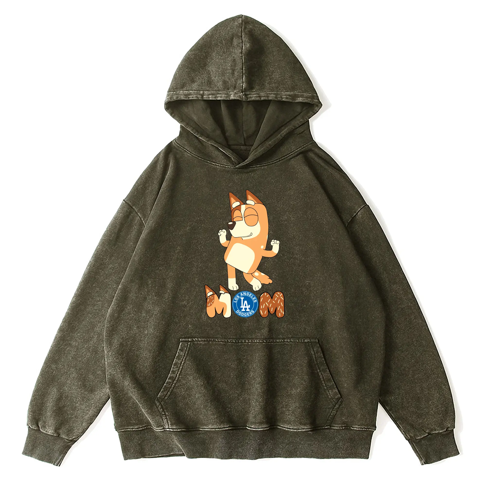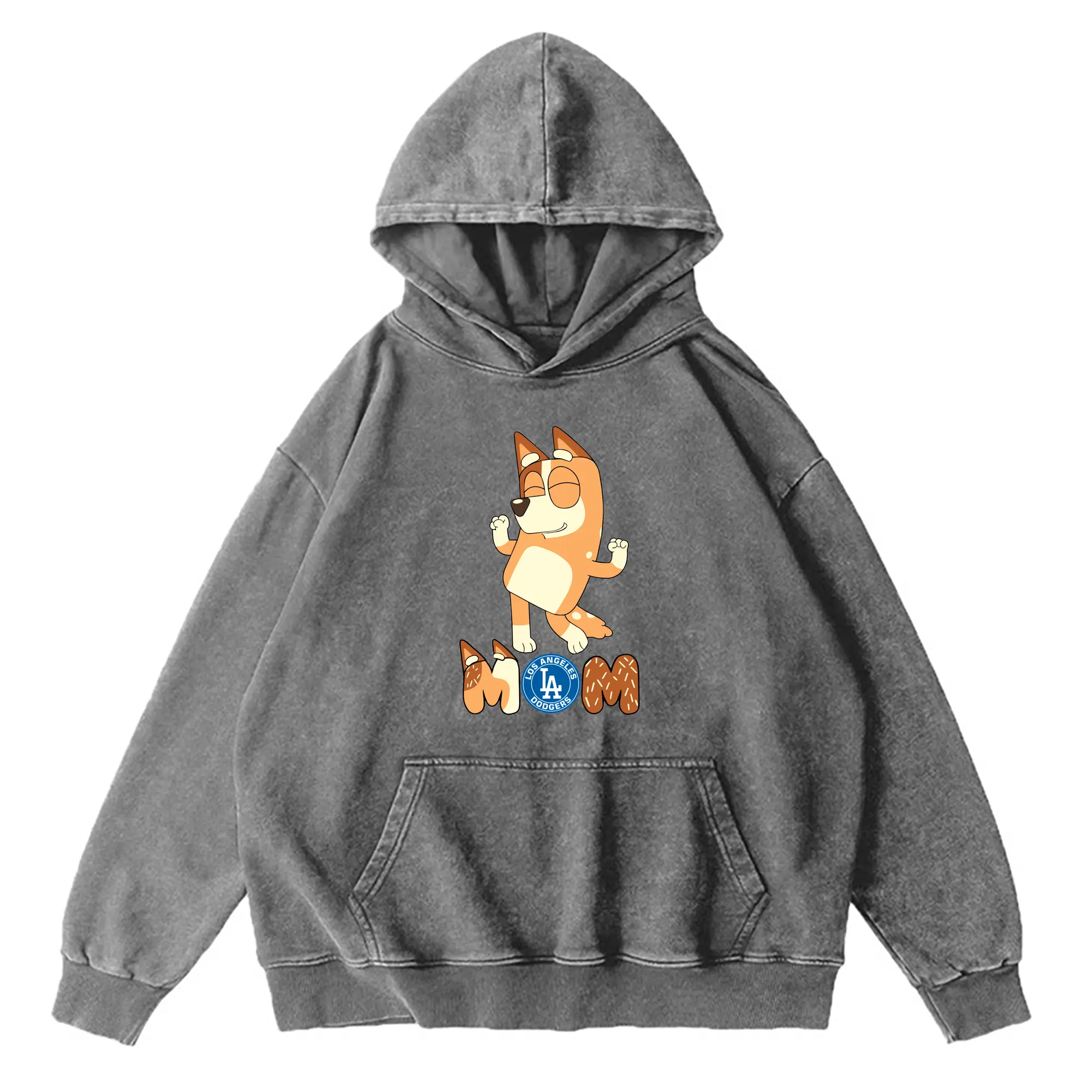 Bluey Mom Los Angeles Dodgers Baseball - Vintage Washed Wax-Dyed Hoodie – 80% Cotton, 20% Polyester – Soft, Durable & Stylish – Perfect For Sports, Casual & Everyday Wear