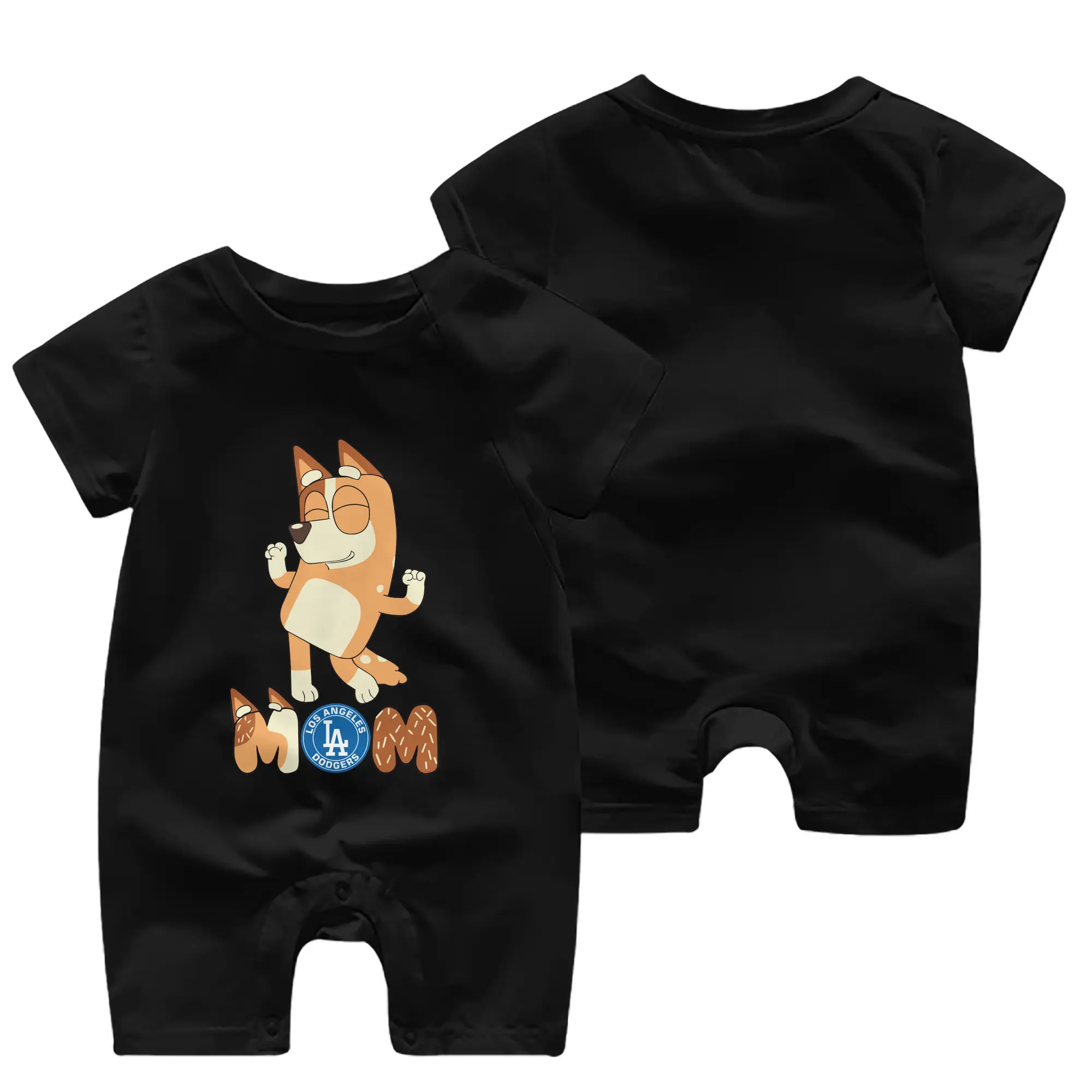 Bluey Mom Los Angeles Dodgers Baseball - Baby Short Sleeve Onesie – 100% Cotton Soft & Breathable Digital Print Romper – Double-Sided Print, Snap Closure For Easy Diaper Changes – Comfortable For Boys & Girls
