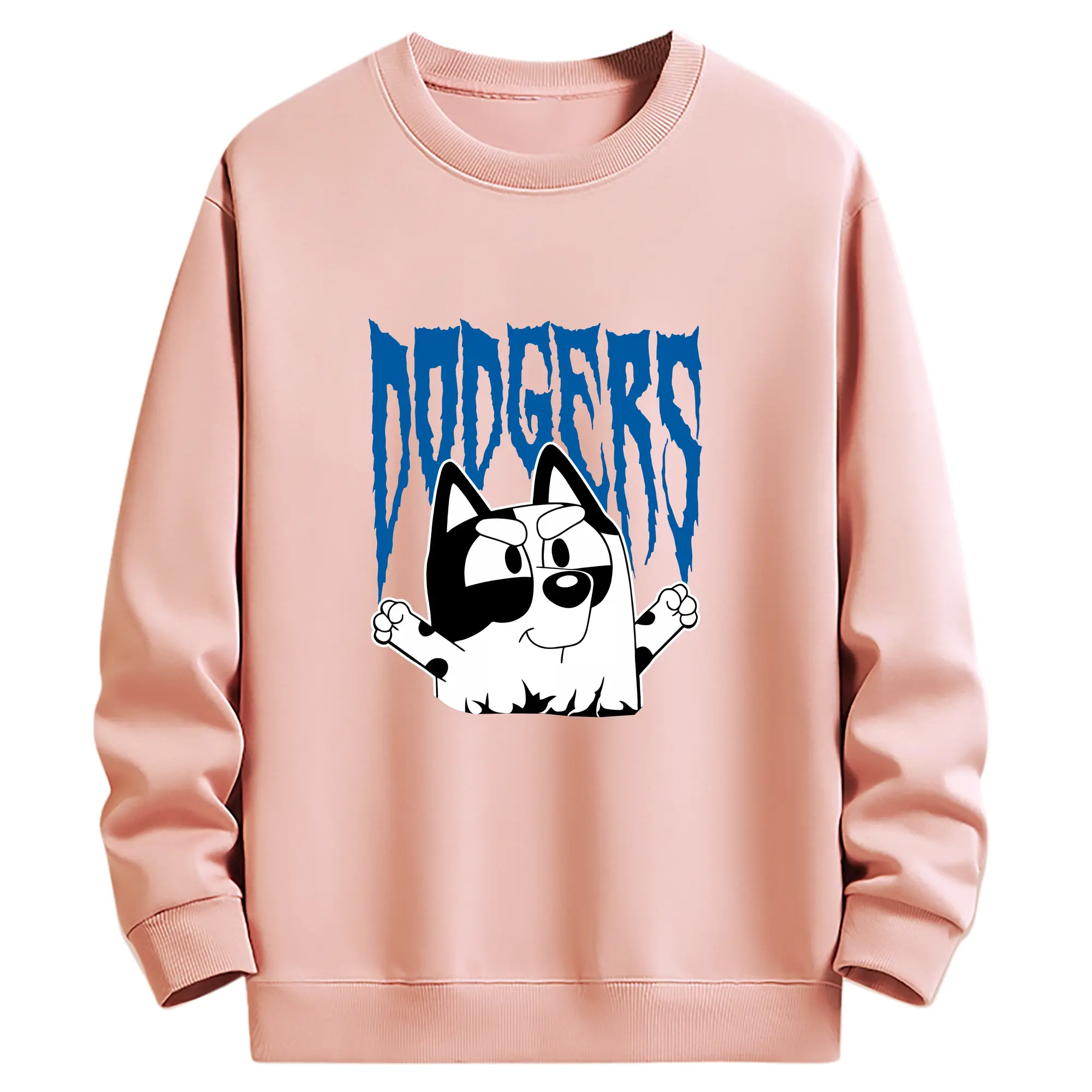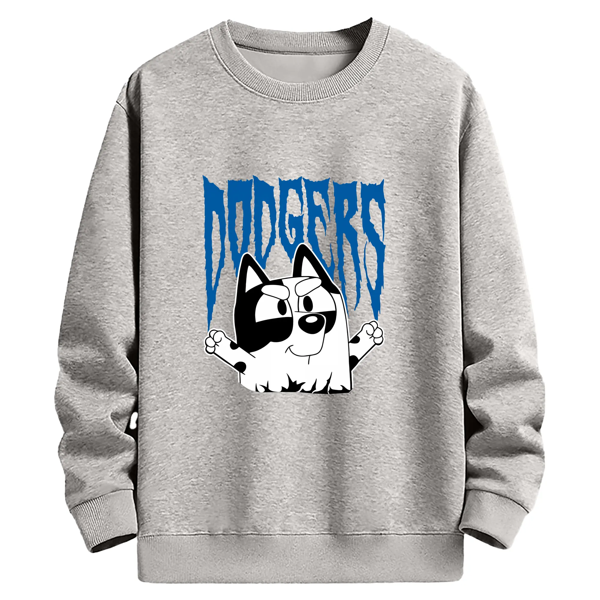 Bluey Muffin Los Angeles Dodgers MLB - Kids Crewneck Sweatshirt With Front Heat Transfer Print – 80% Cotton 20% Polyester – Soft, Durable & Comfortable – Ideal For Sports, Casual Wear & Everyday Activities