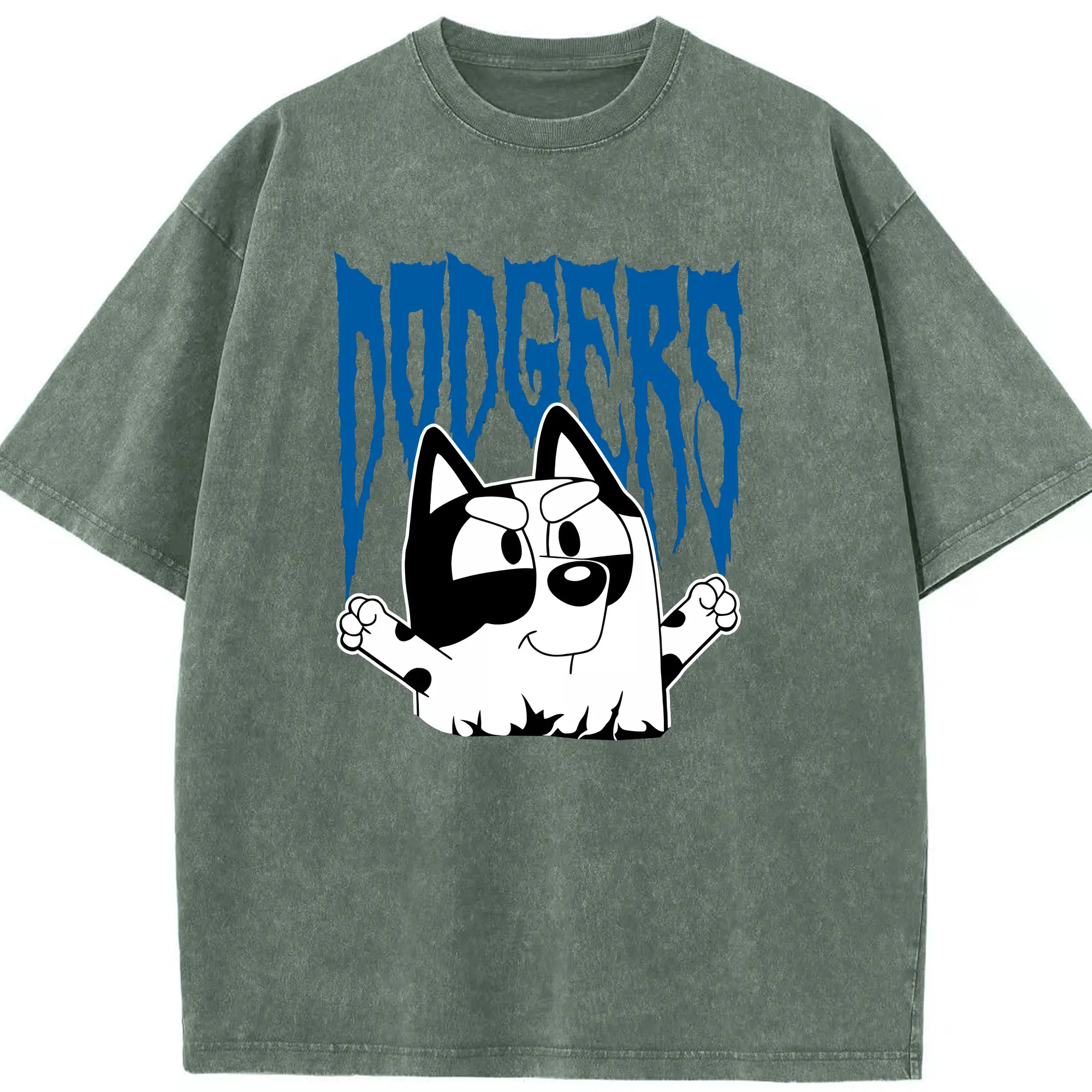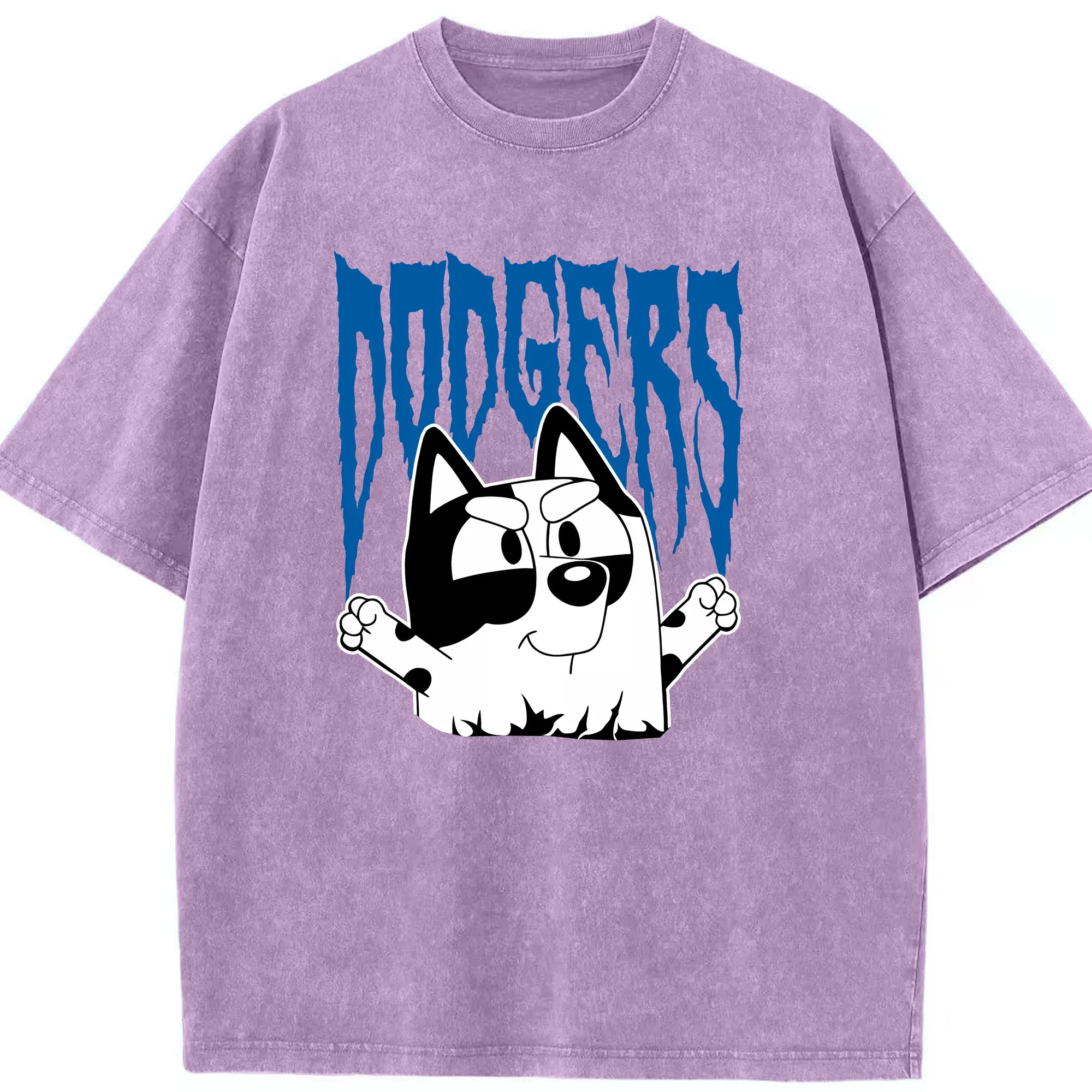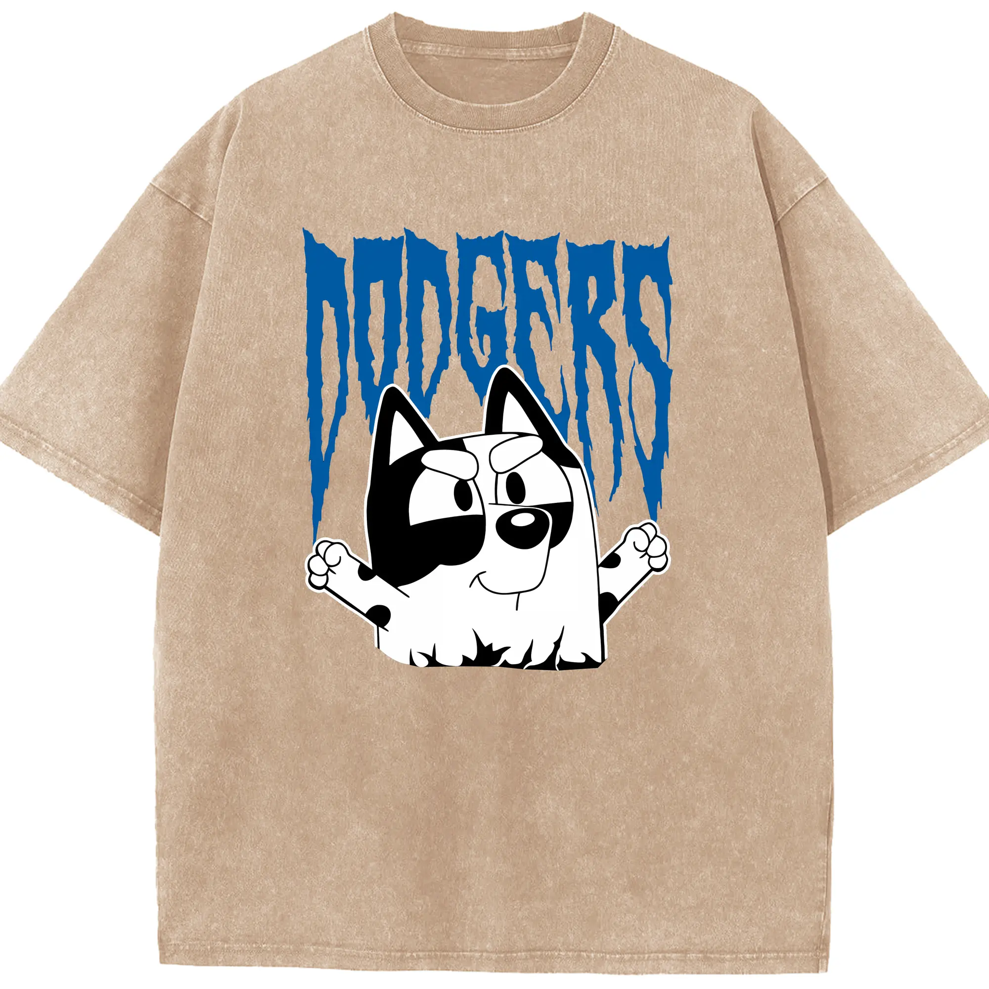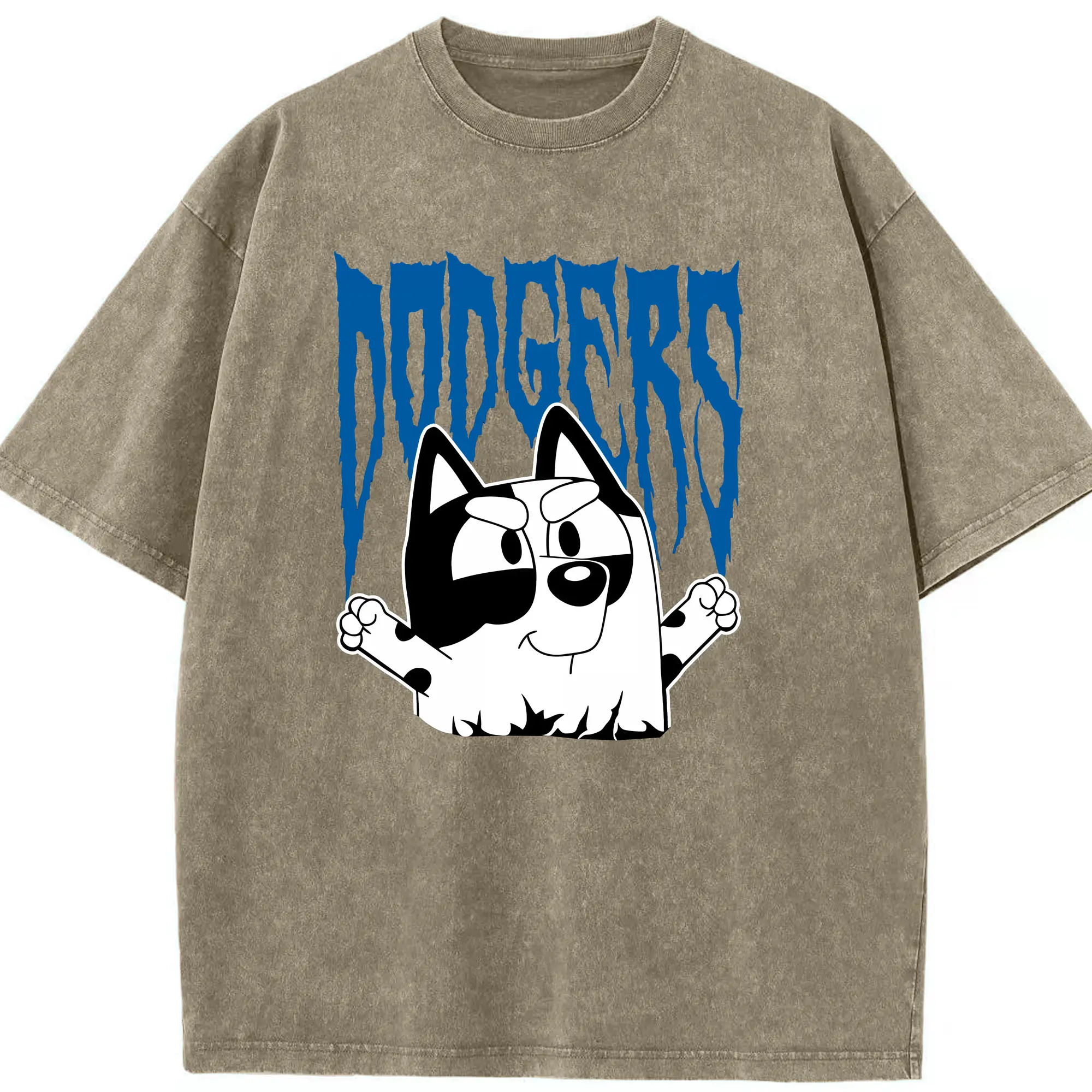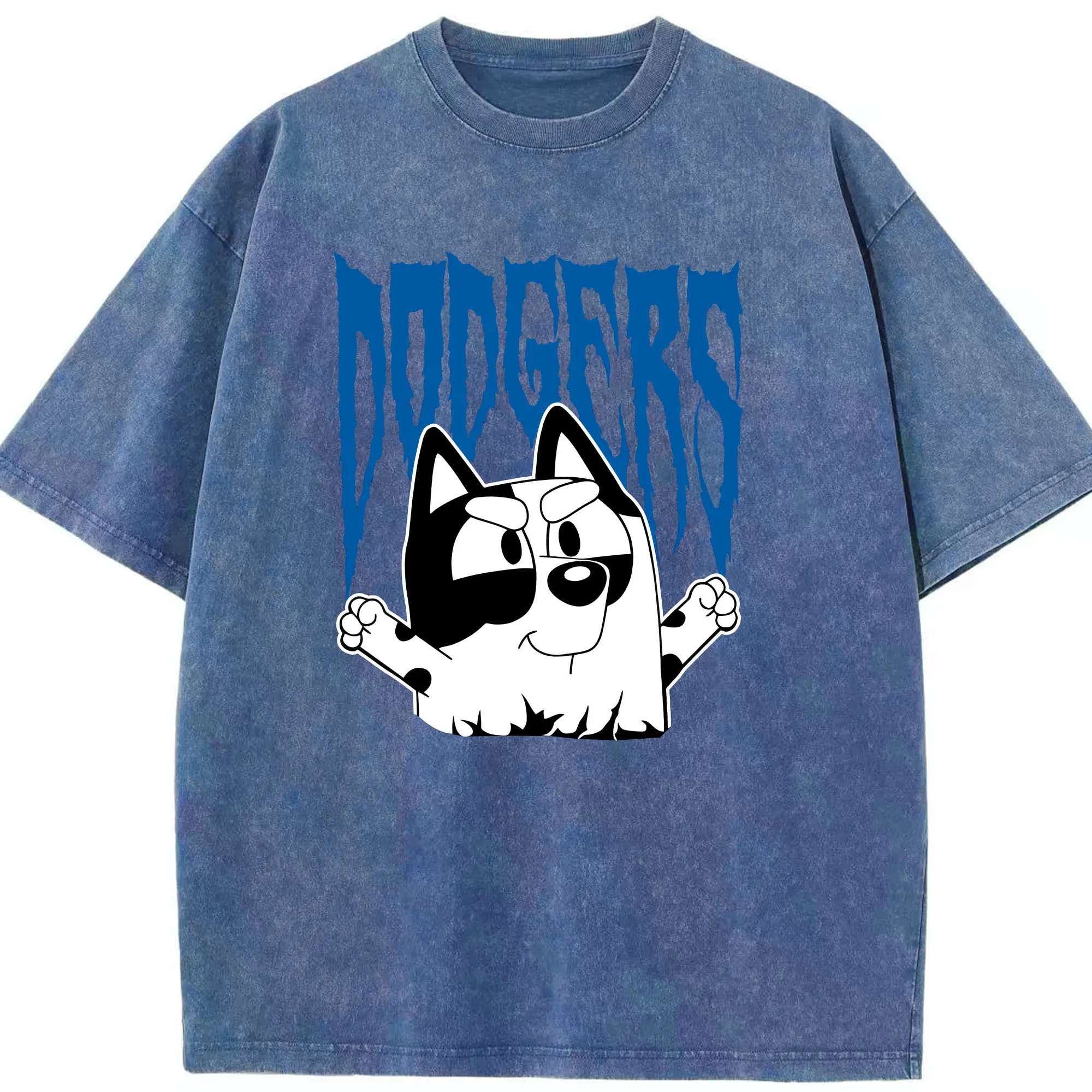 Bluey Muffin Los Angeles Dodgers MLB - Washed Vintage Look 230g Cotton Oversized T-Shirt With Front Heat Transfer Print – Soft, Lightweight, Stylish Fit – Comfortable Casual Wear For Sports & Everyday Use