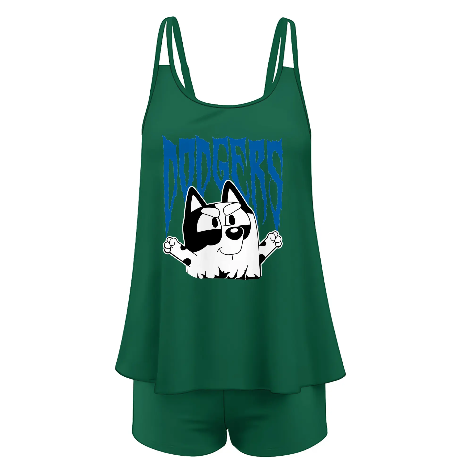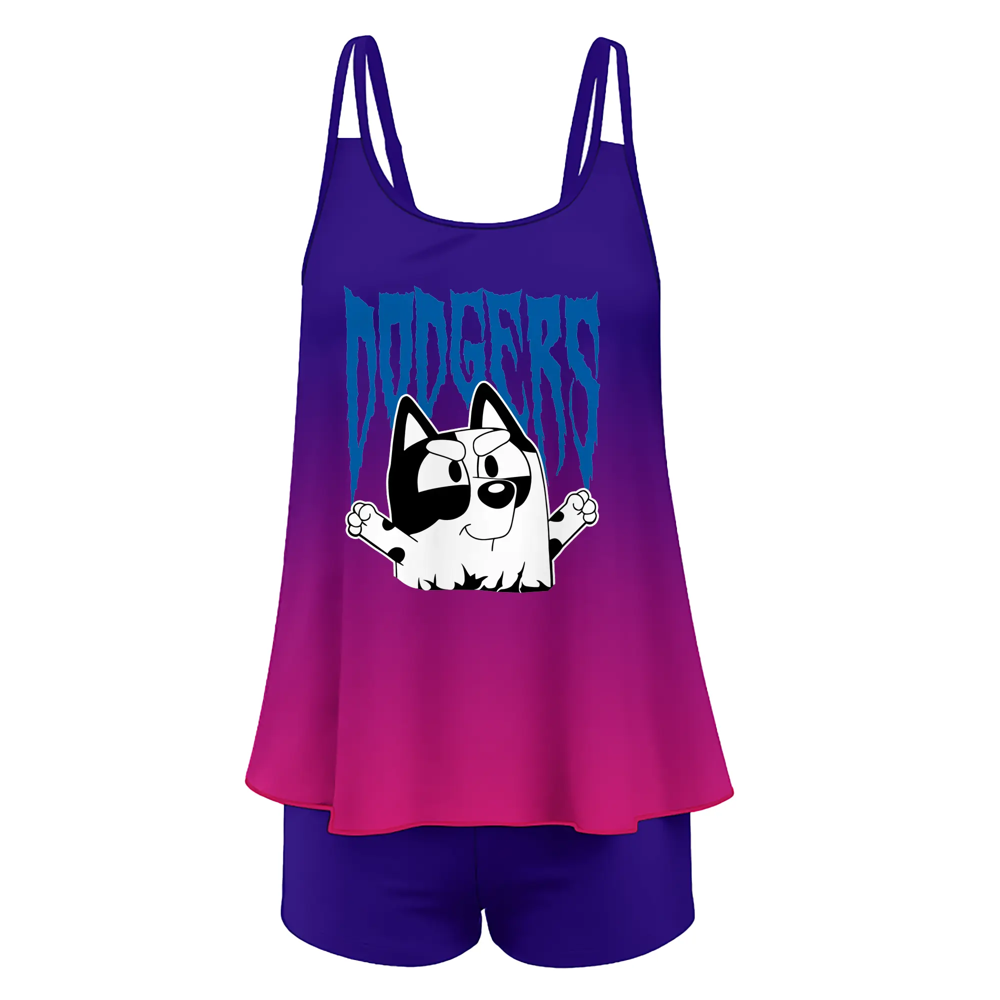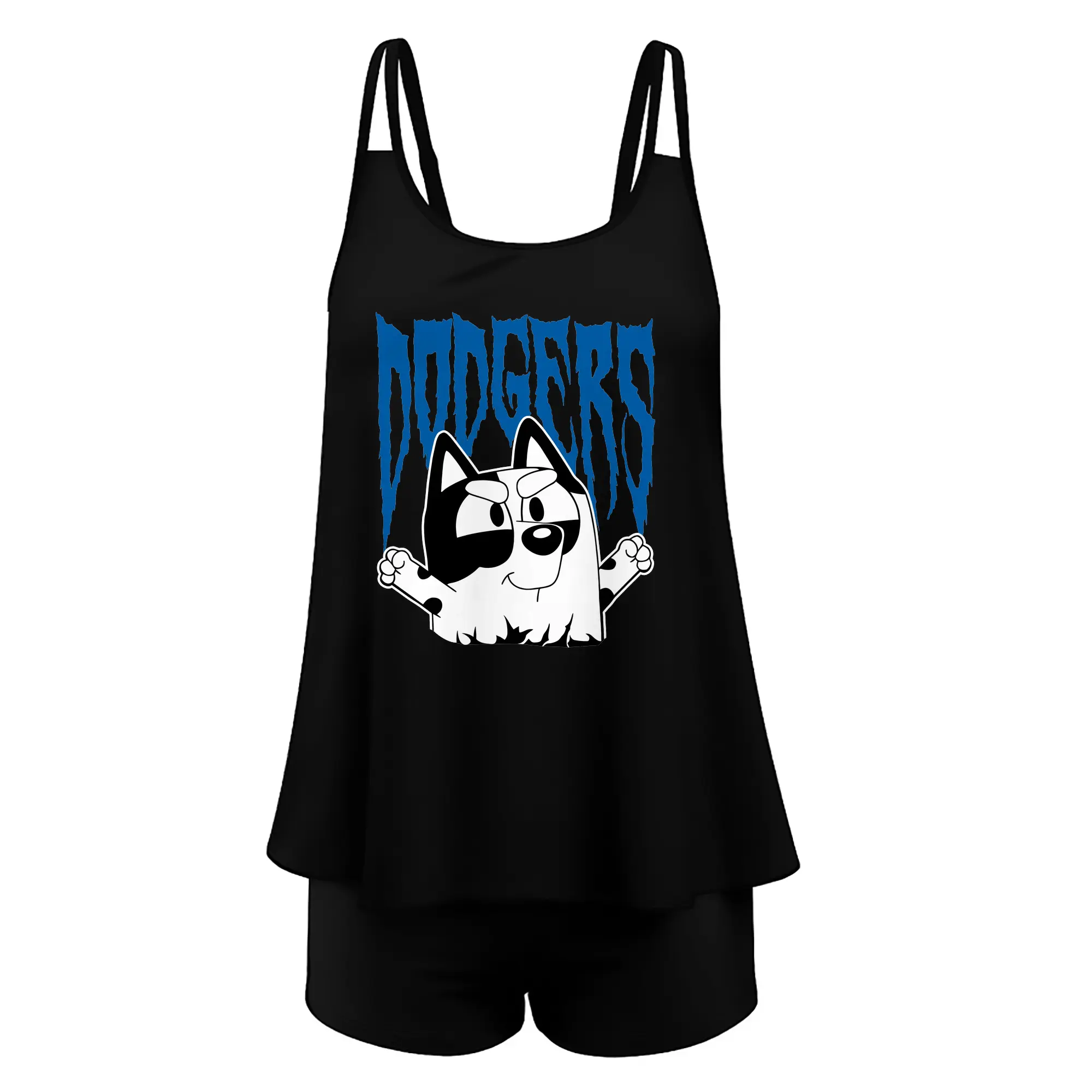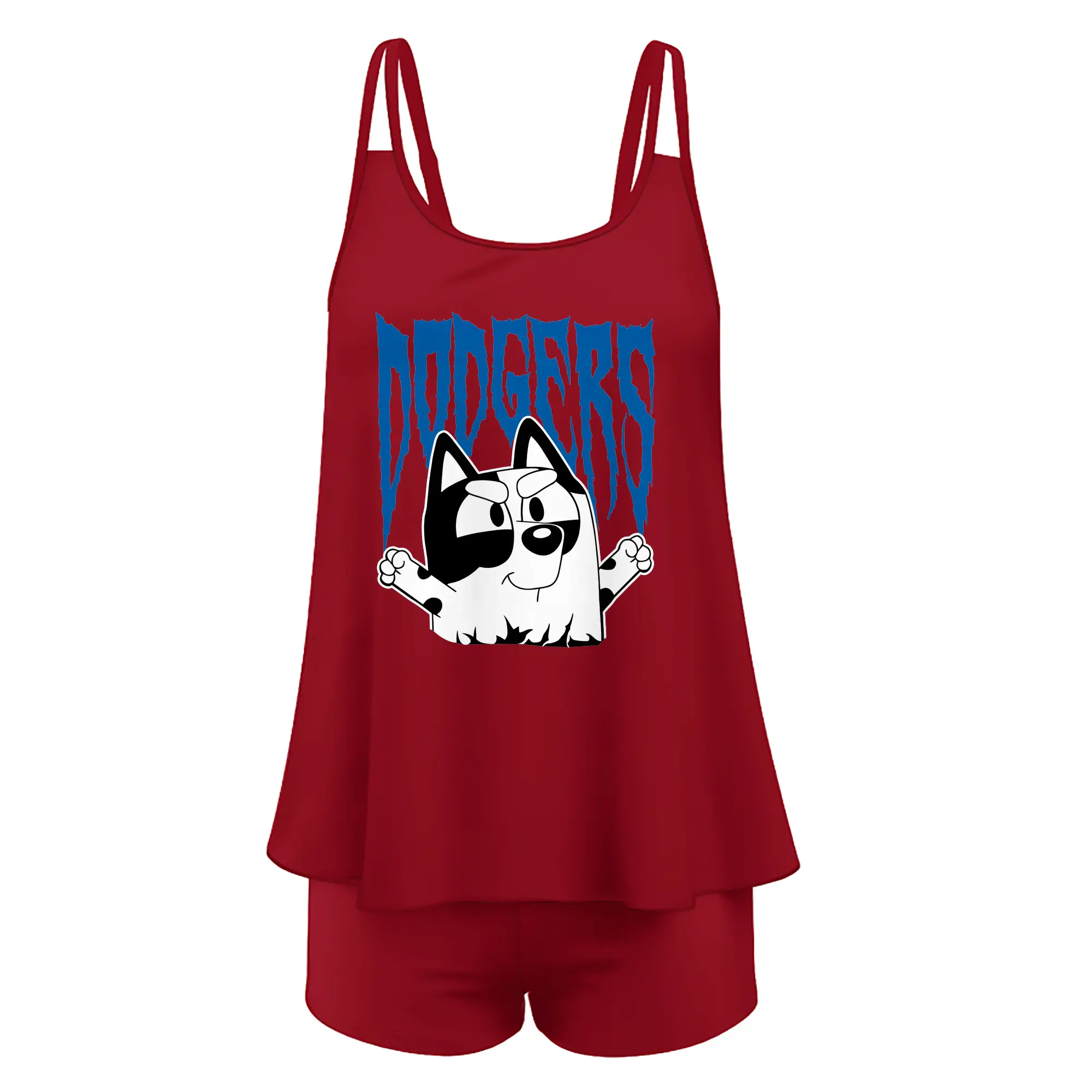 Bluey Muffin Los Angeles Dodgers MLB - Women’s Heat Transfer Printed Two-Piece Swimsuit Set – Sexy Double Strap Bandeau Top & Boyshort Bottoms, Soft Nylon-Spandex – Perfect for Beach, Pool & Vacation