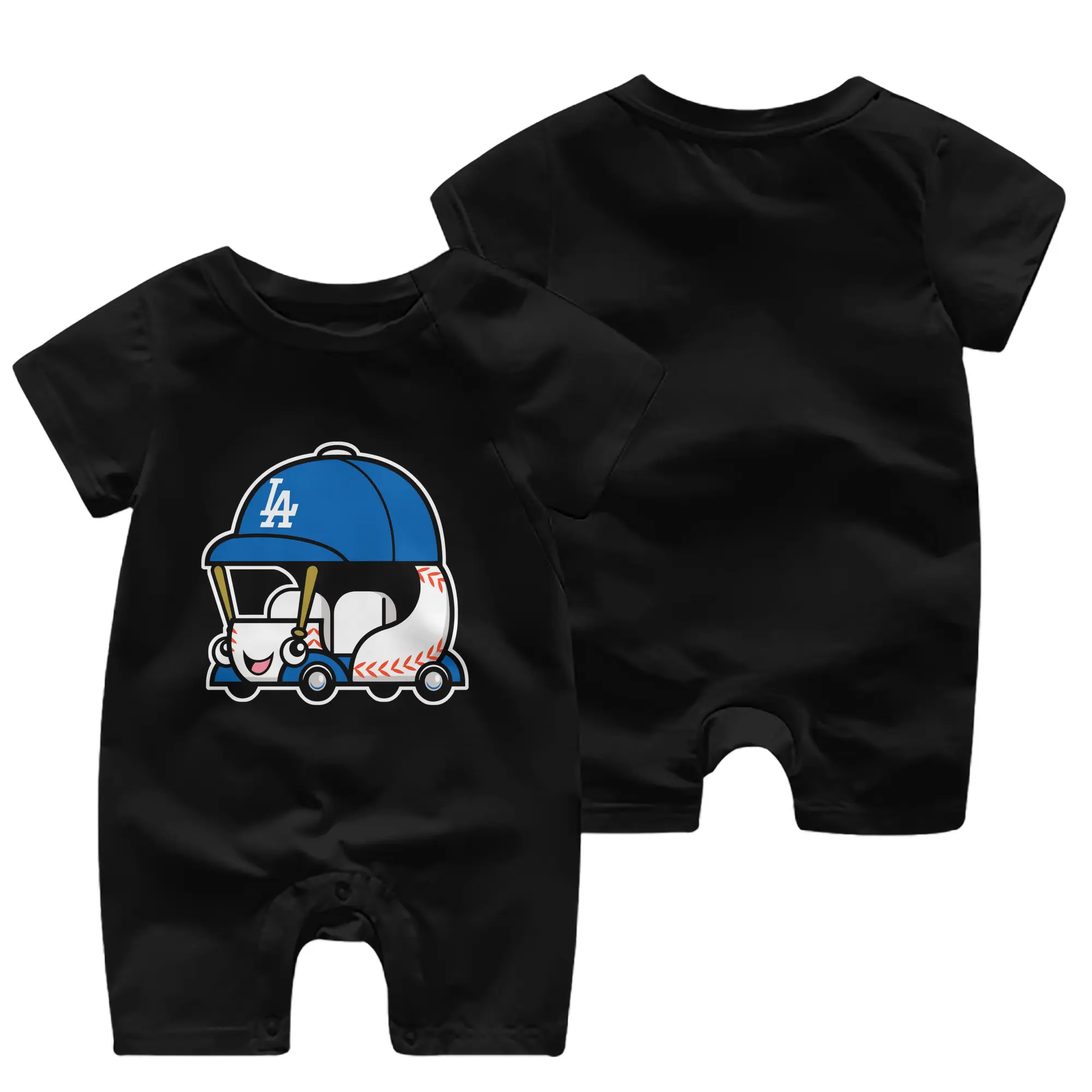 Cute Dodgers Bullpen Car Baseball - Baby Short Sleeve Onesie – 100% Cotton Soft & Breathable Digital Print Romper – Double-Sided Print, Snap Closure For Easy Diaper Changes – Comfortable For Boys & Girls