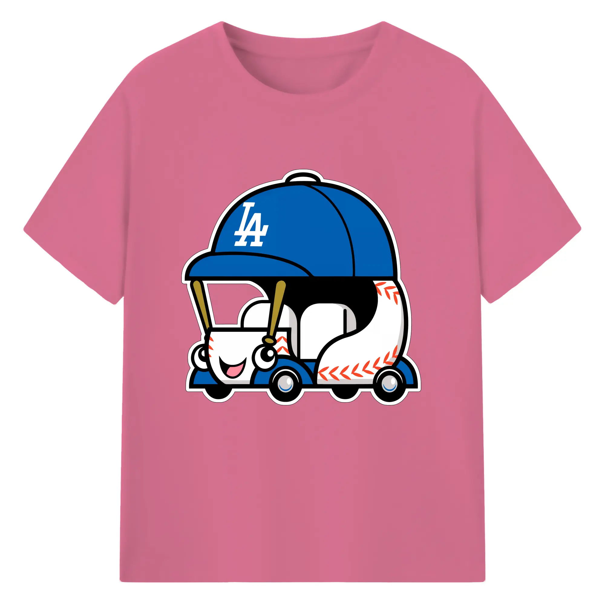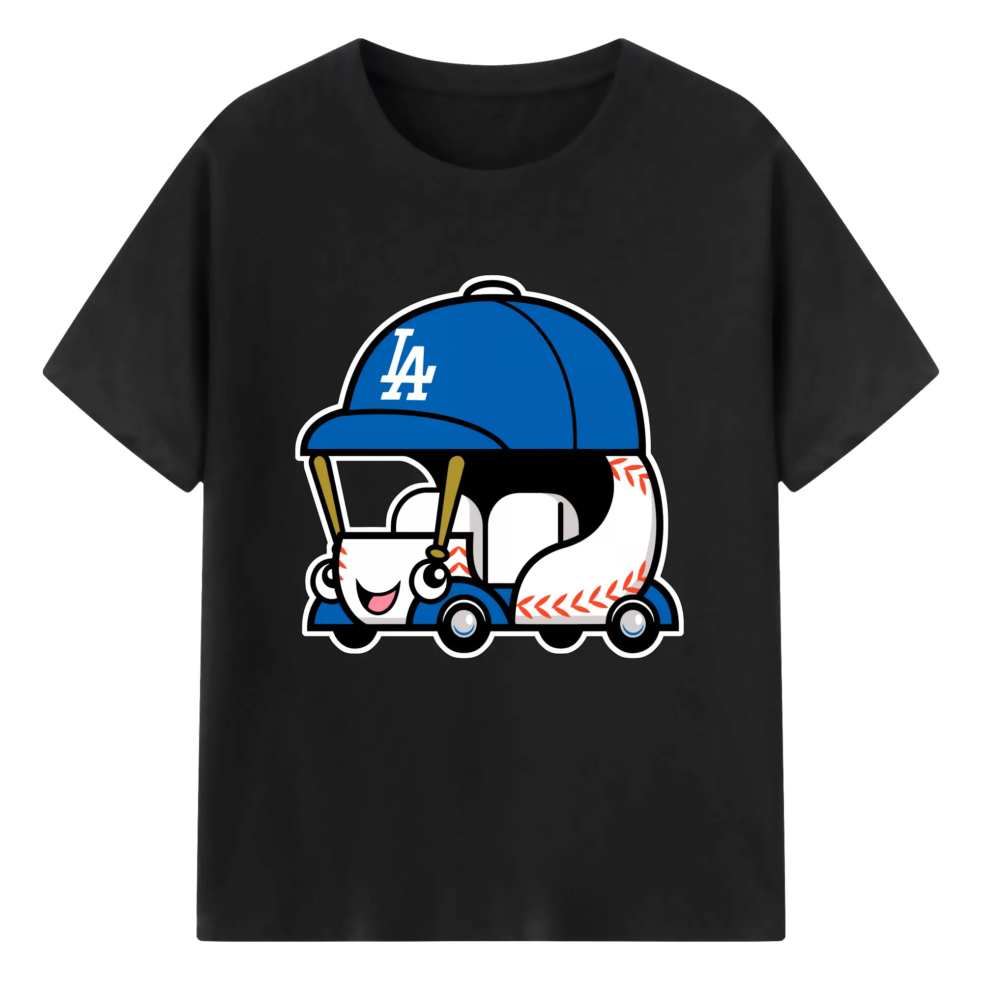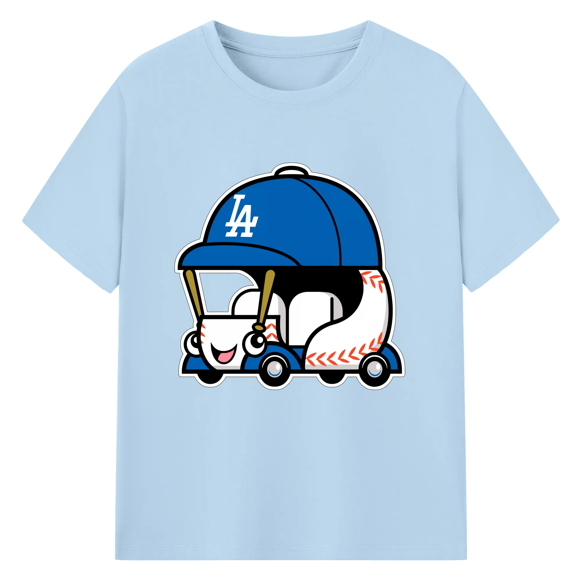 Cute Dodgers Bullpen Car Baseball - 180g Cotton T-Shirt With Front Heat Transfer Print – Soft, Lightweight, Fitted Design – Comfortable Casual Wear For Sports & Everyday Use