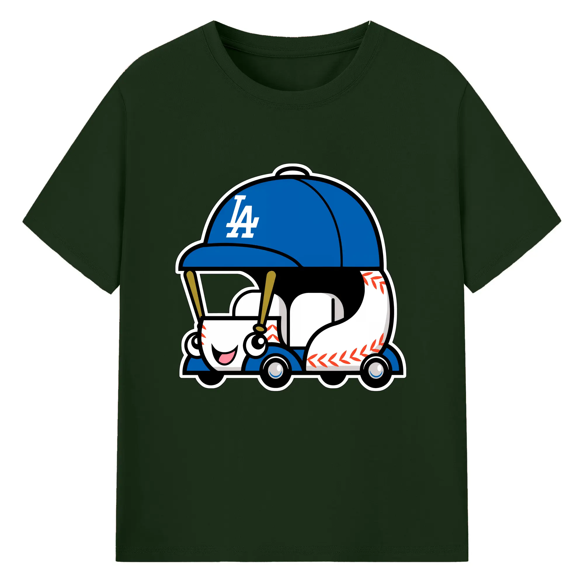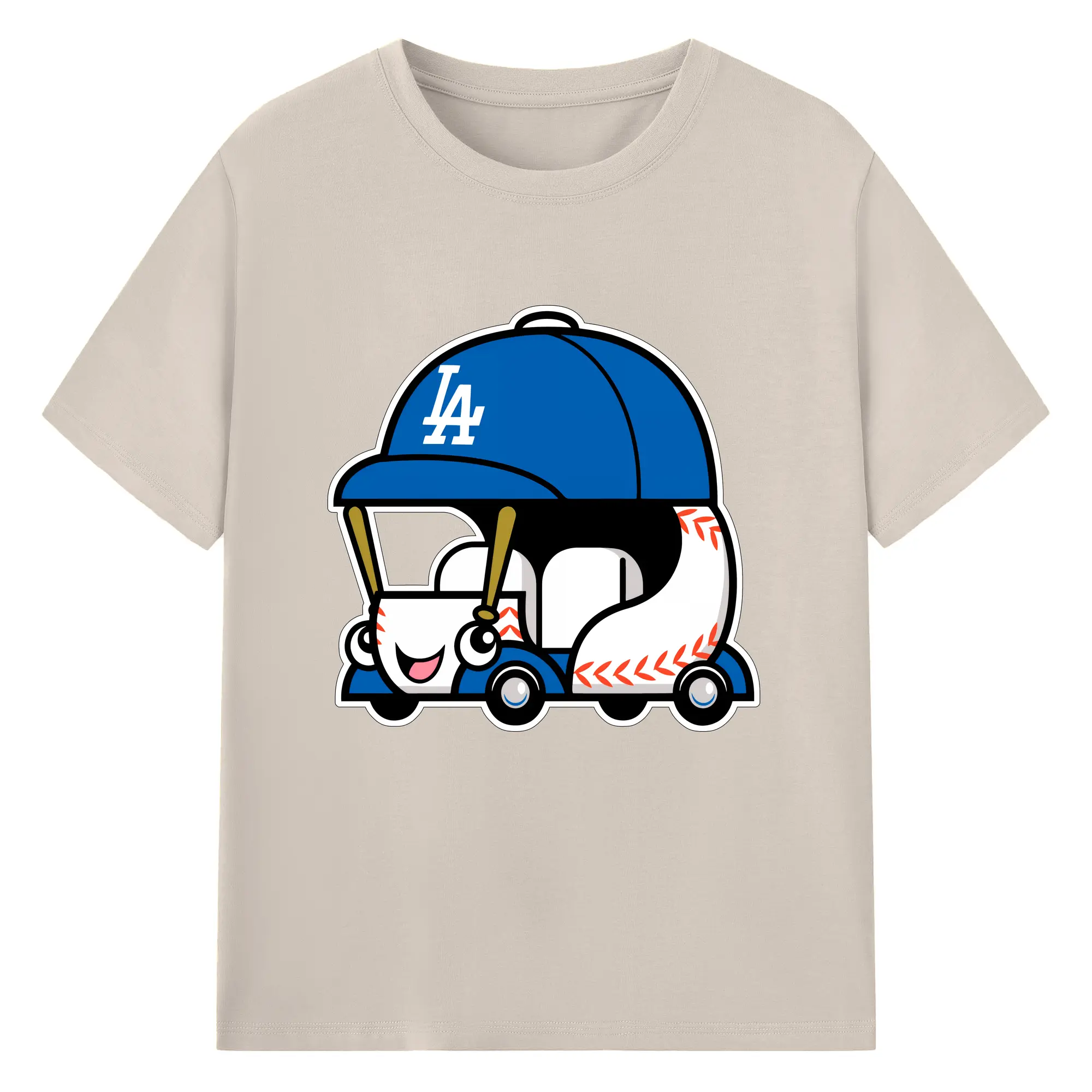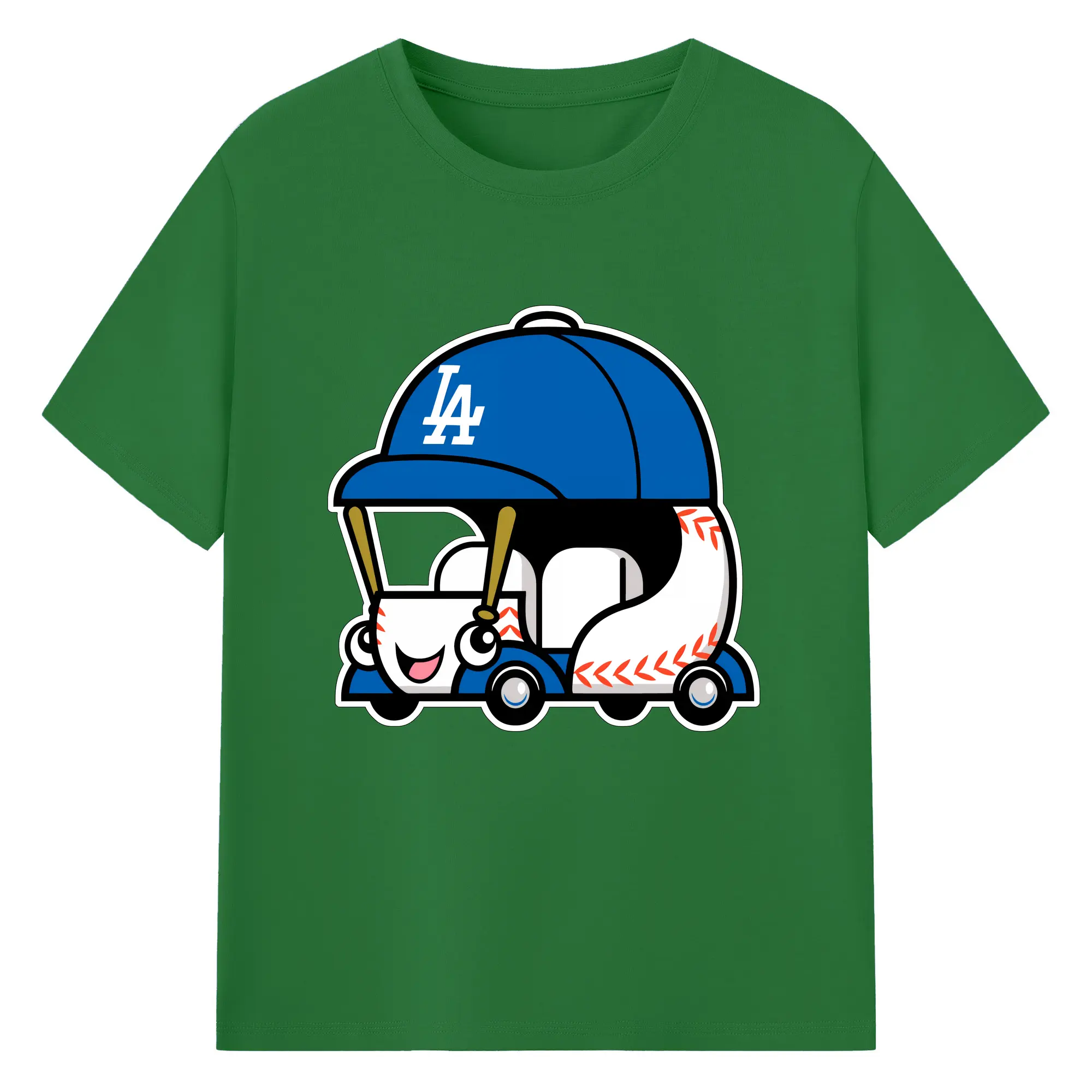 Cute Dodgers Bullpen Car Baseball - 180g Cotton T-Shirt With Front Heat Transfer Print – Soft, Lightweight, Fitted Design – Comfortable Casual Wear For Sports & Everyday Use