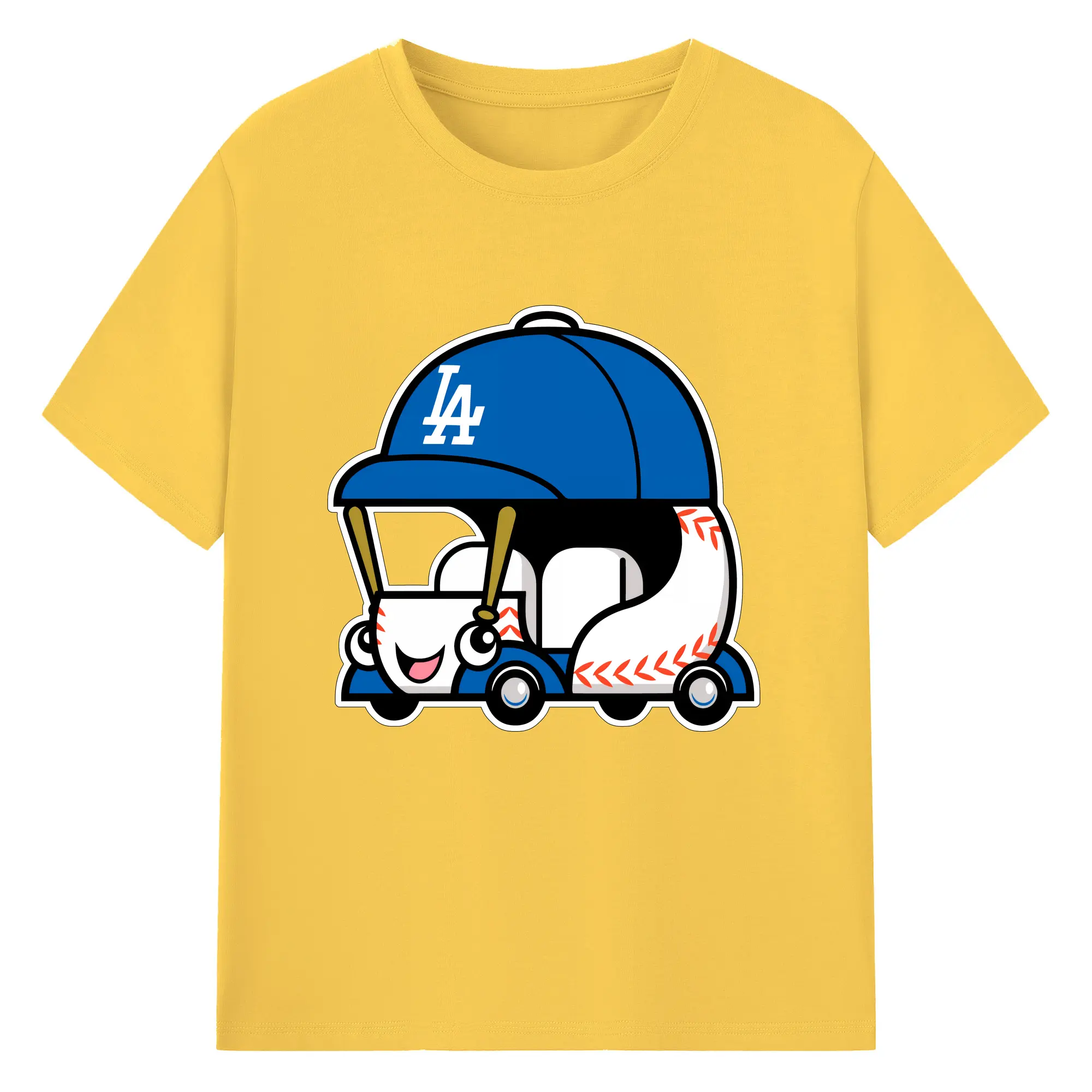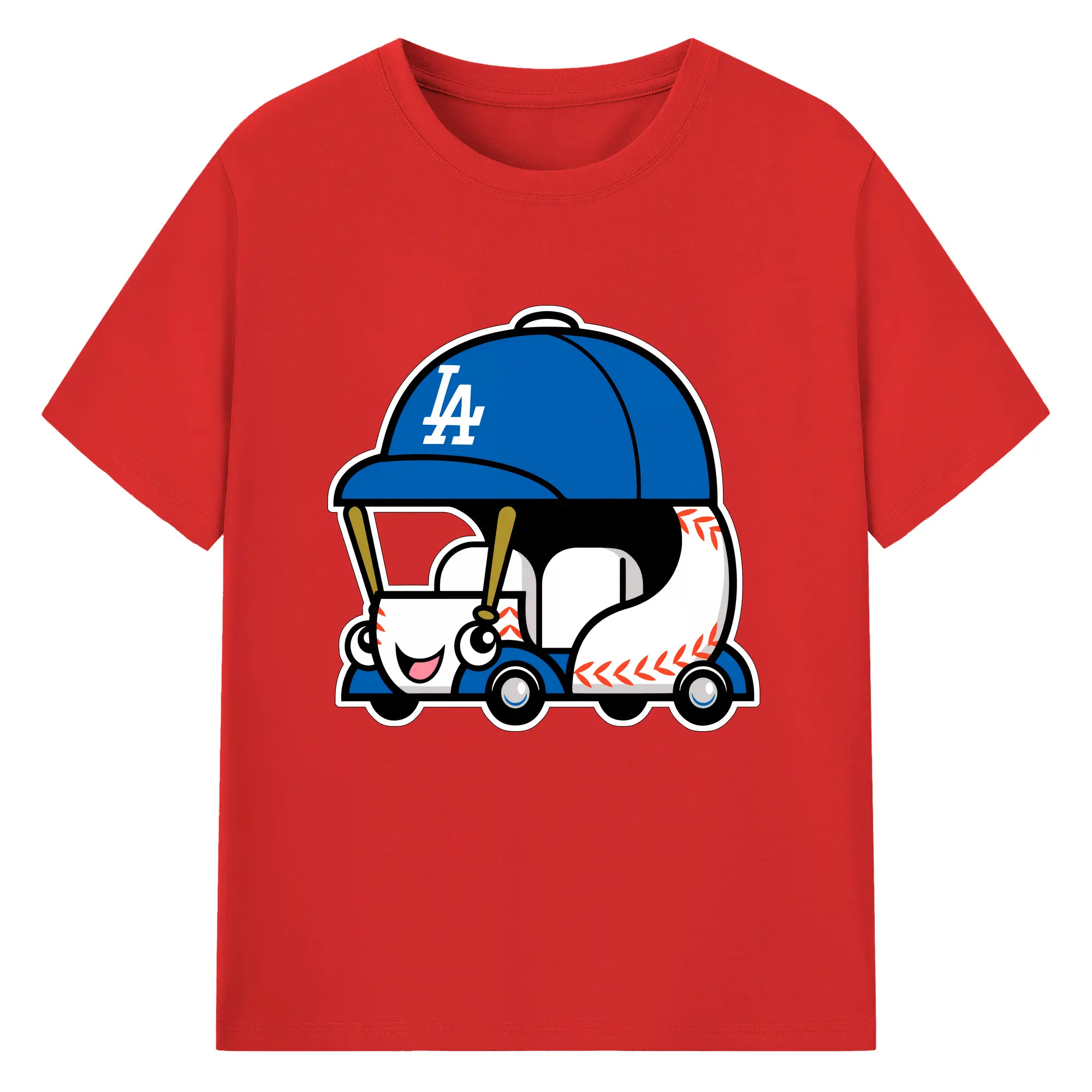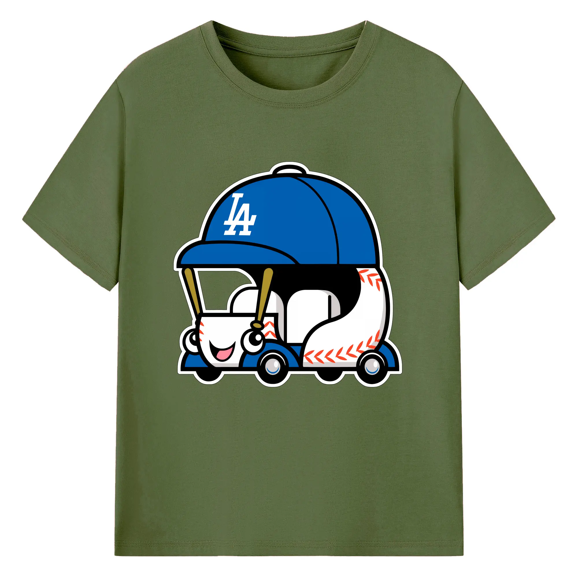 Cute Dodgers Bullpen Car Baseball - Combed Cotton T-Shirt 180g With Front Heat Transfer Print – Soft, Lightweight, Fitted Design – Stylish Casual Wear For Sports & Everyday Use