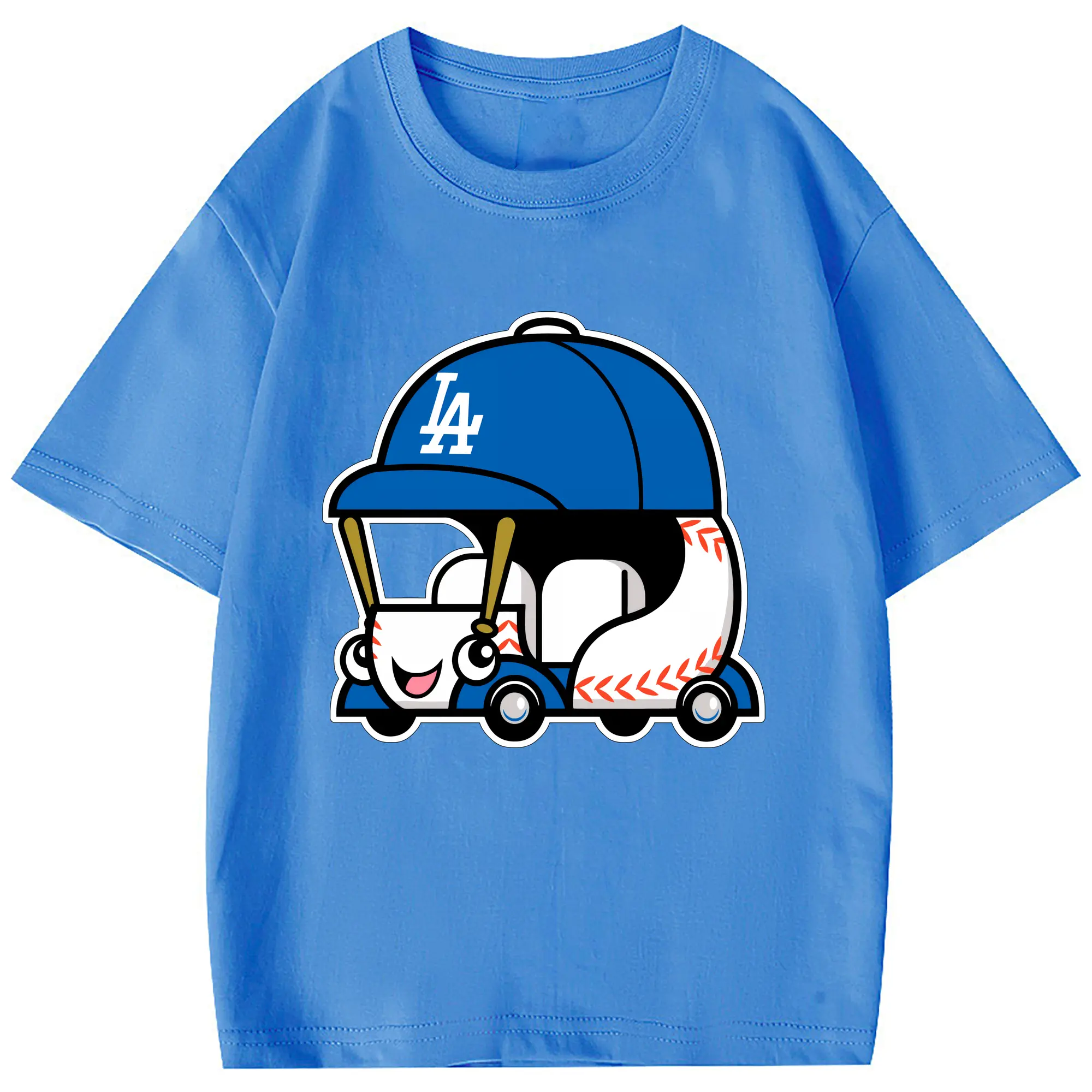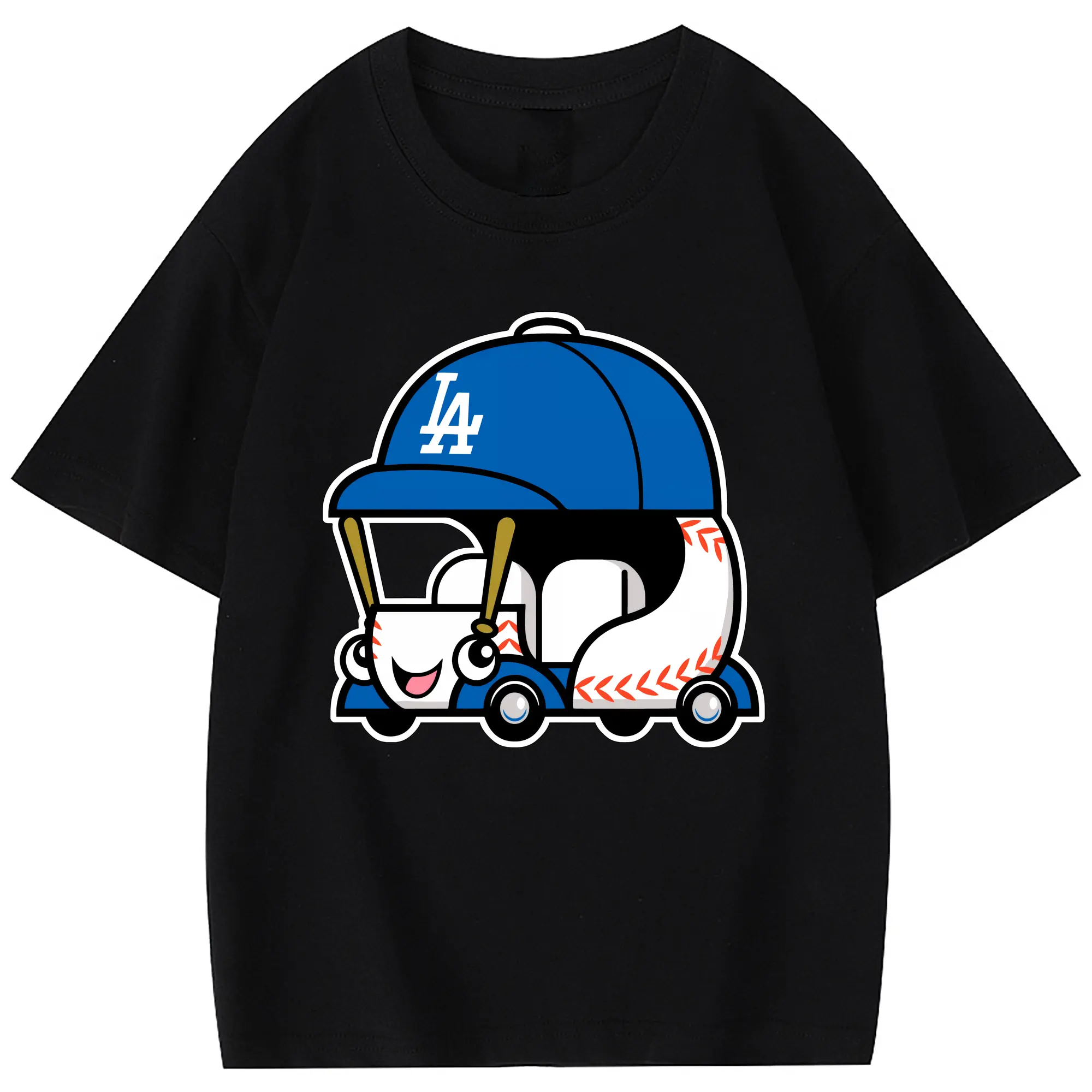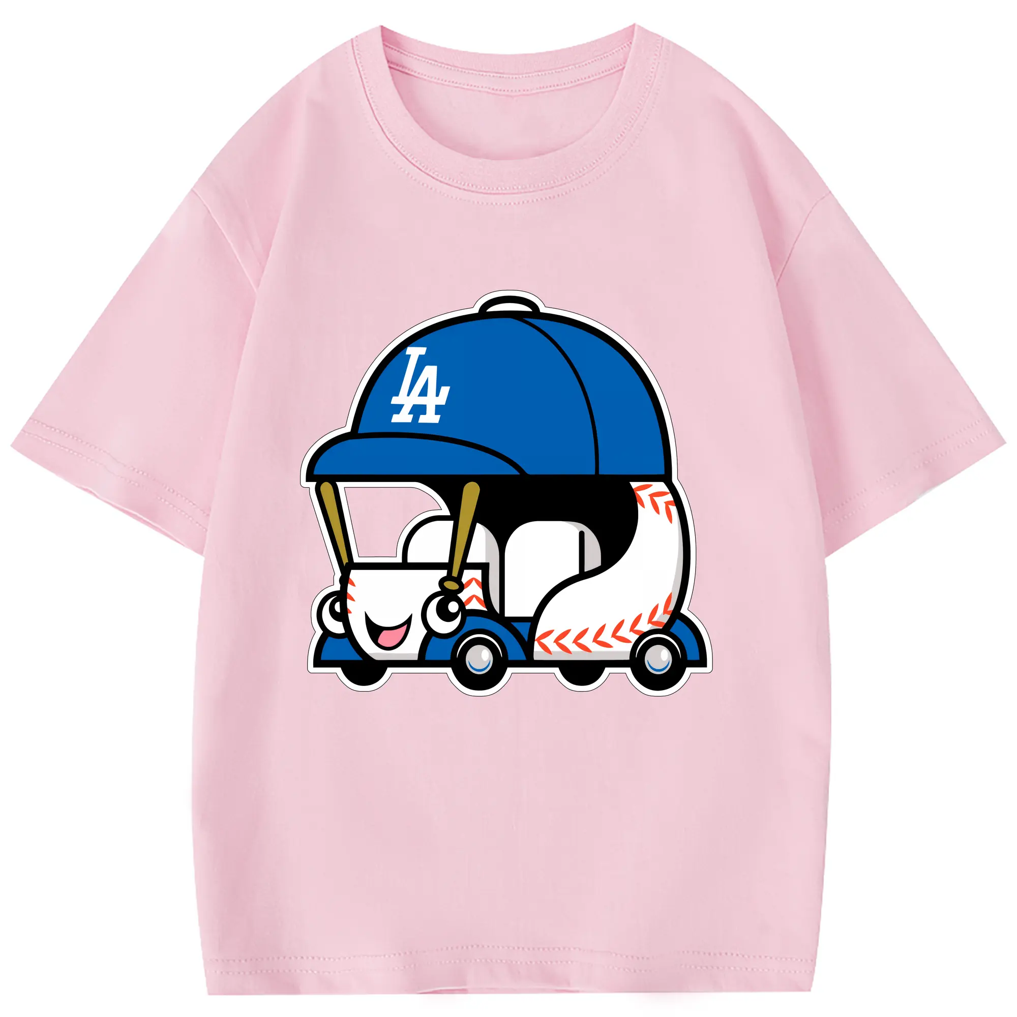 Cute Dodgers Bullpen Car Baseball - Combed Cotton Kids T-Shirt 180g With Front Heat Transfer Print – Soft, Lightweight, Side-Seamed Design – Stylish And Comfortable Casual Wear For Everyday Activities