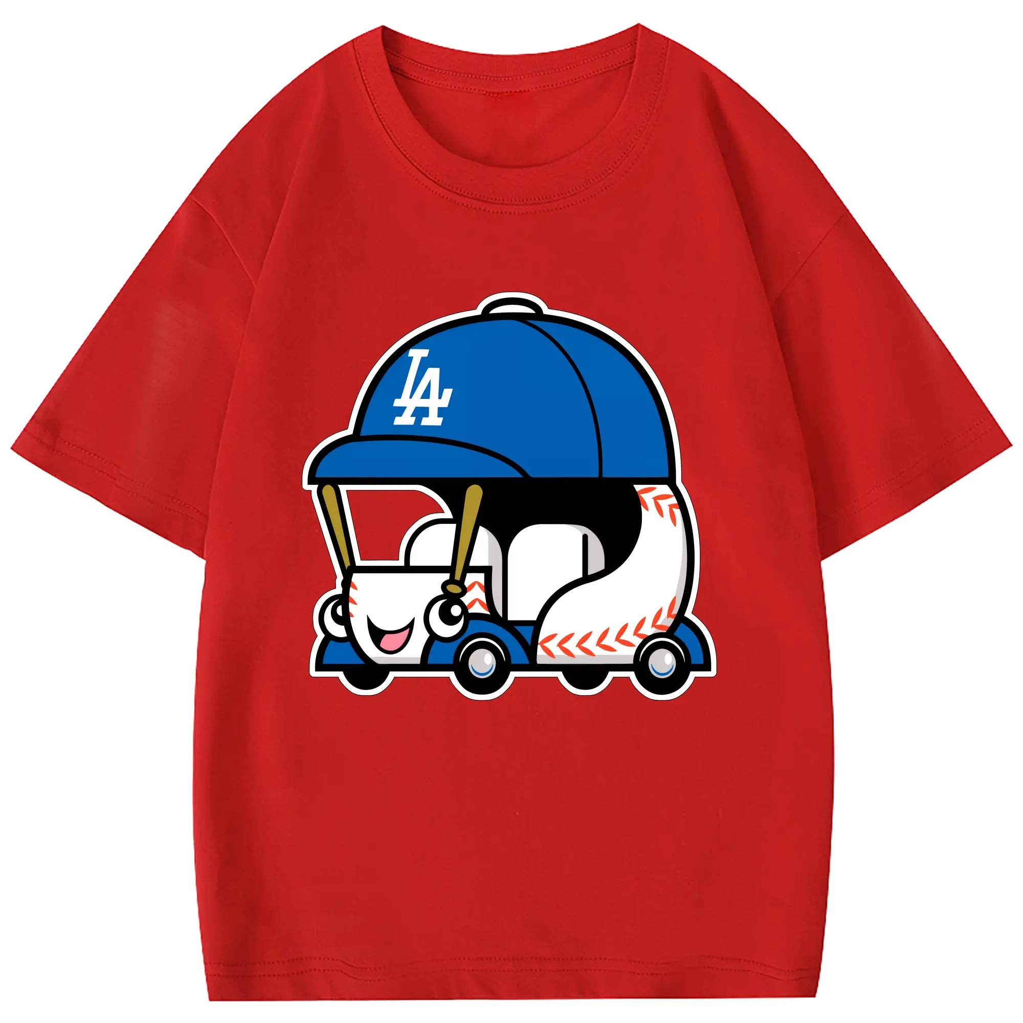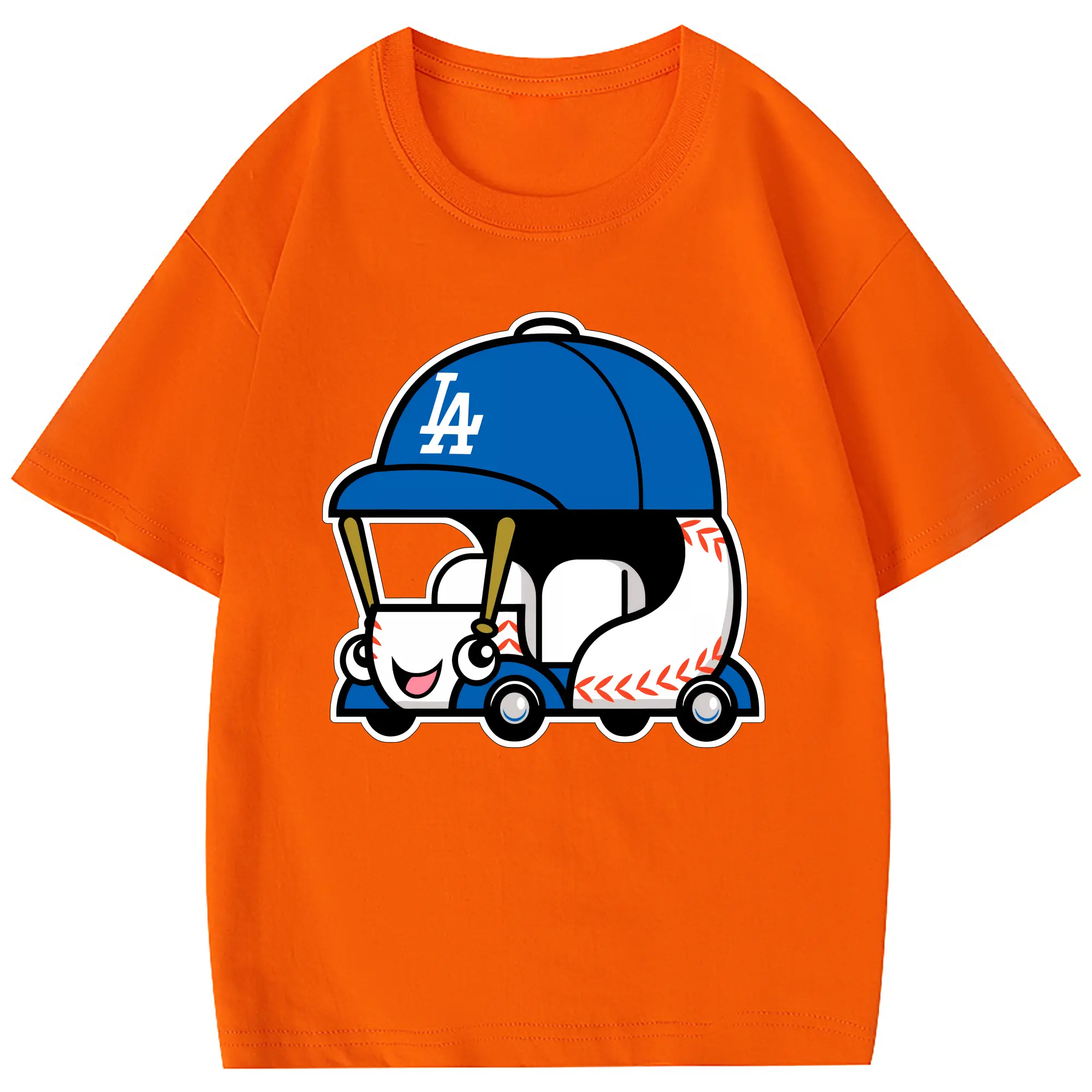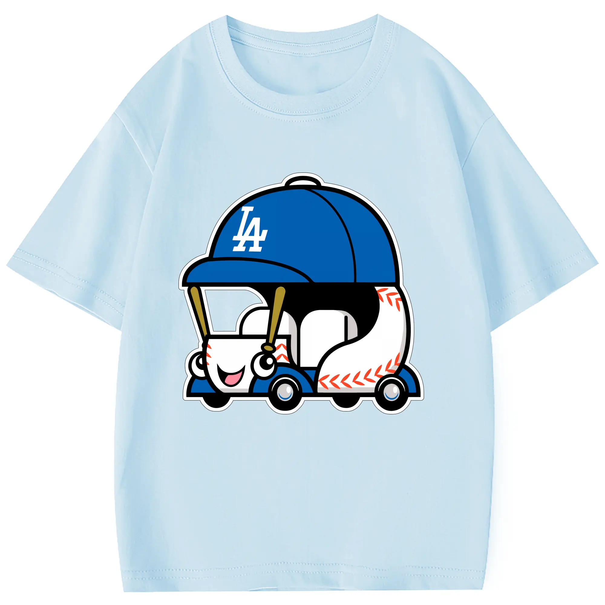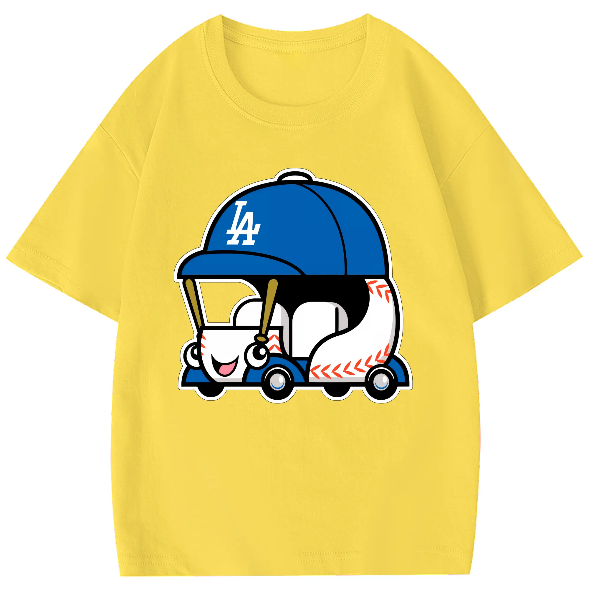 Cute Dodgers Bullpen Car Baseball - Combed Cotton Kids T-Shirt 180g With Front Heat Transfer Print – Soft, Lightweight, Side-Seamed Design – Stylish And Comfortable Casual Wear For Everyday Activities