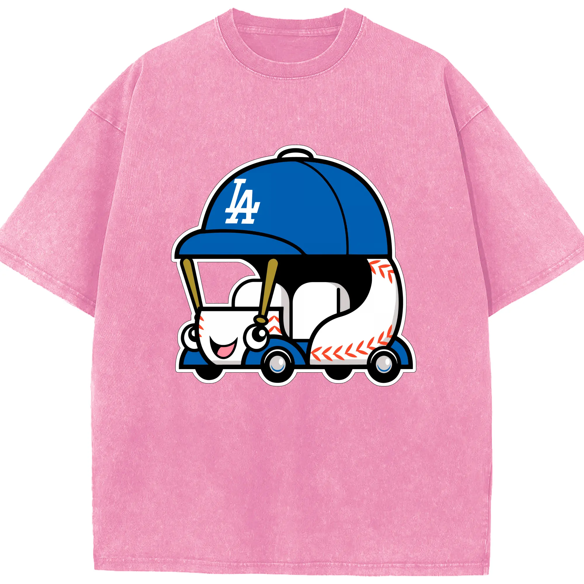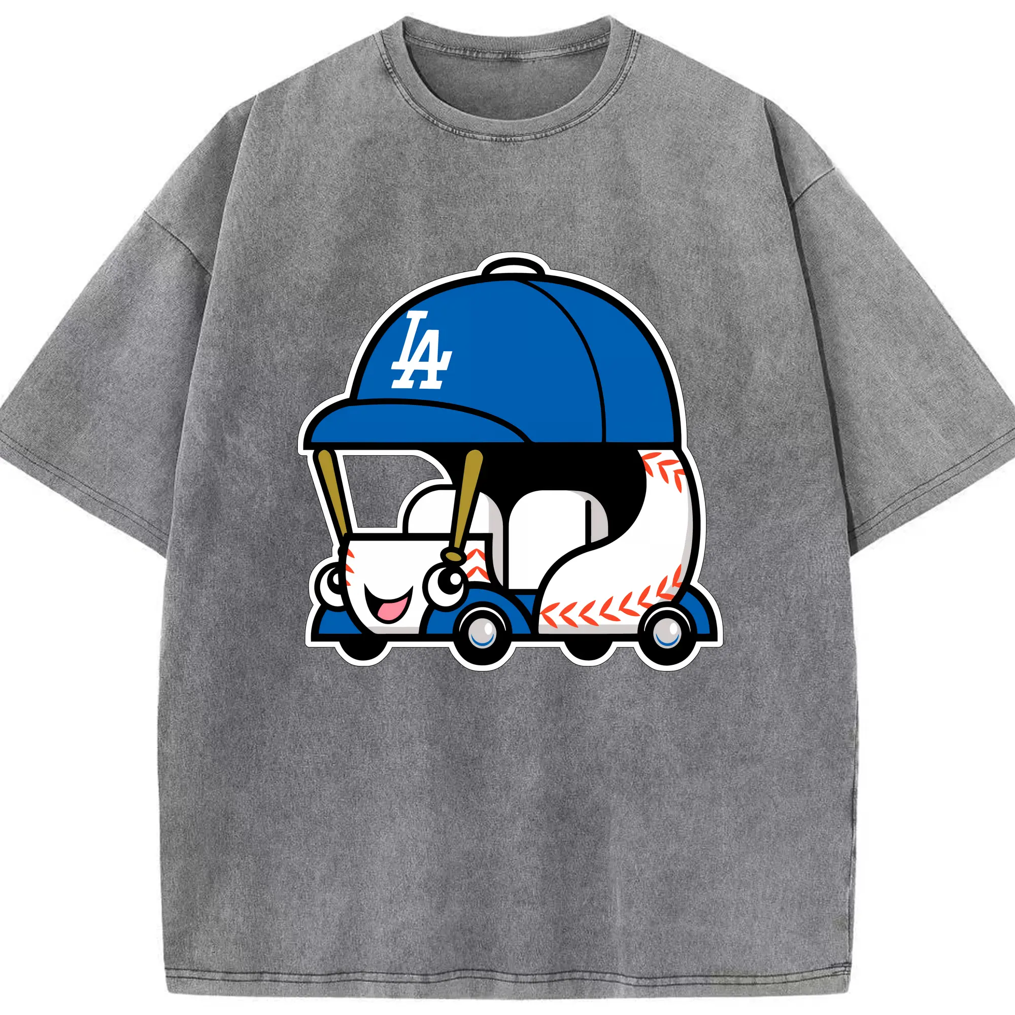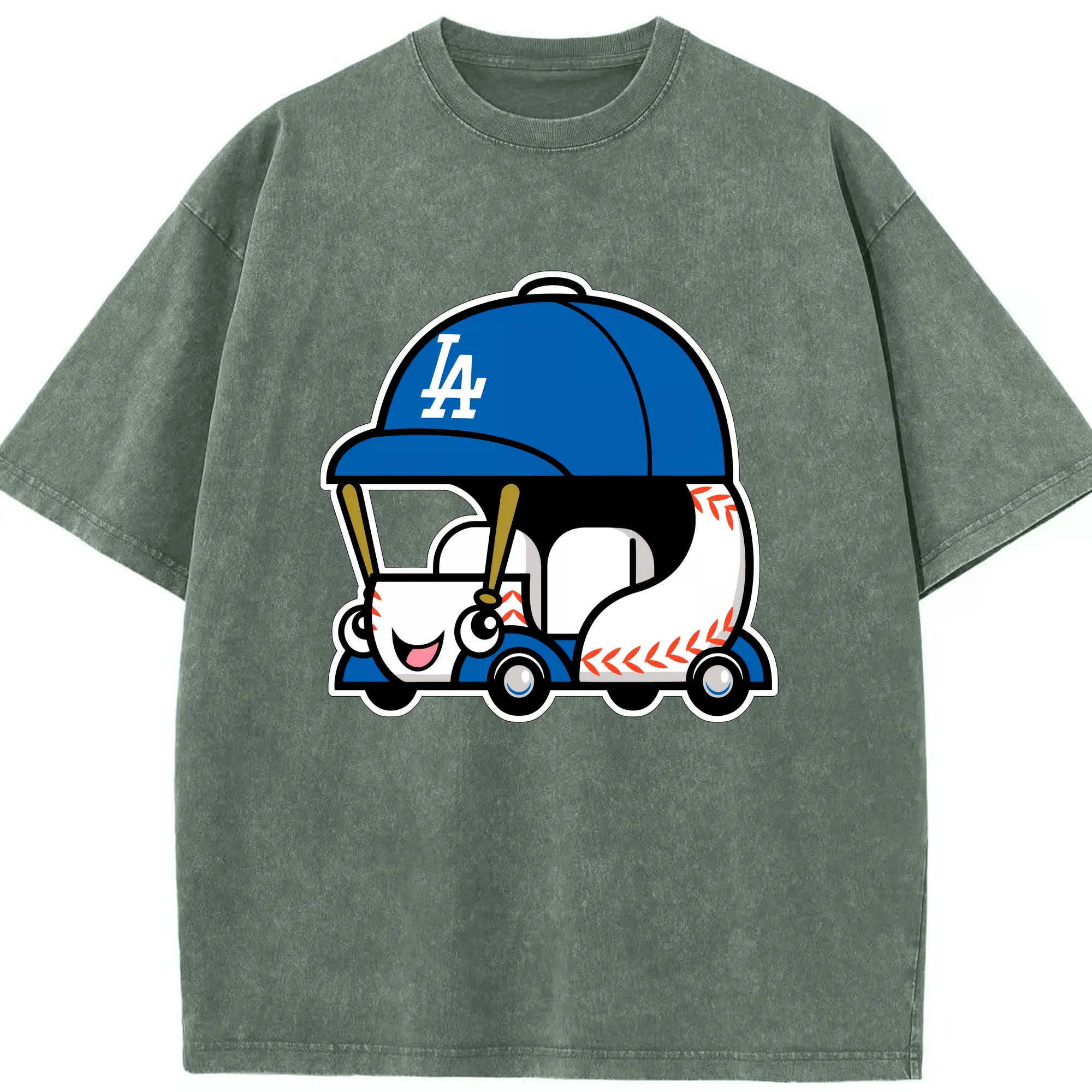 Cute Dodgers Bullpen Car Baseball - Washed Vintage Look 230g Cotton Oversized T-Shirt With Front Heat Transfer Print – Soft, Lightweight, Stylish Fit – Comfortable Casual Wear For Sports & Everyday Use