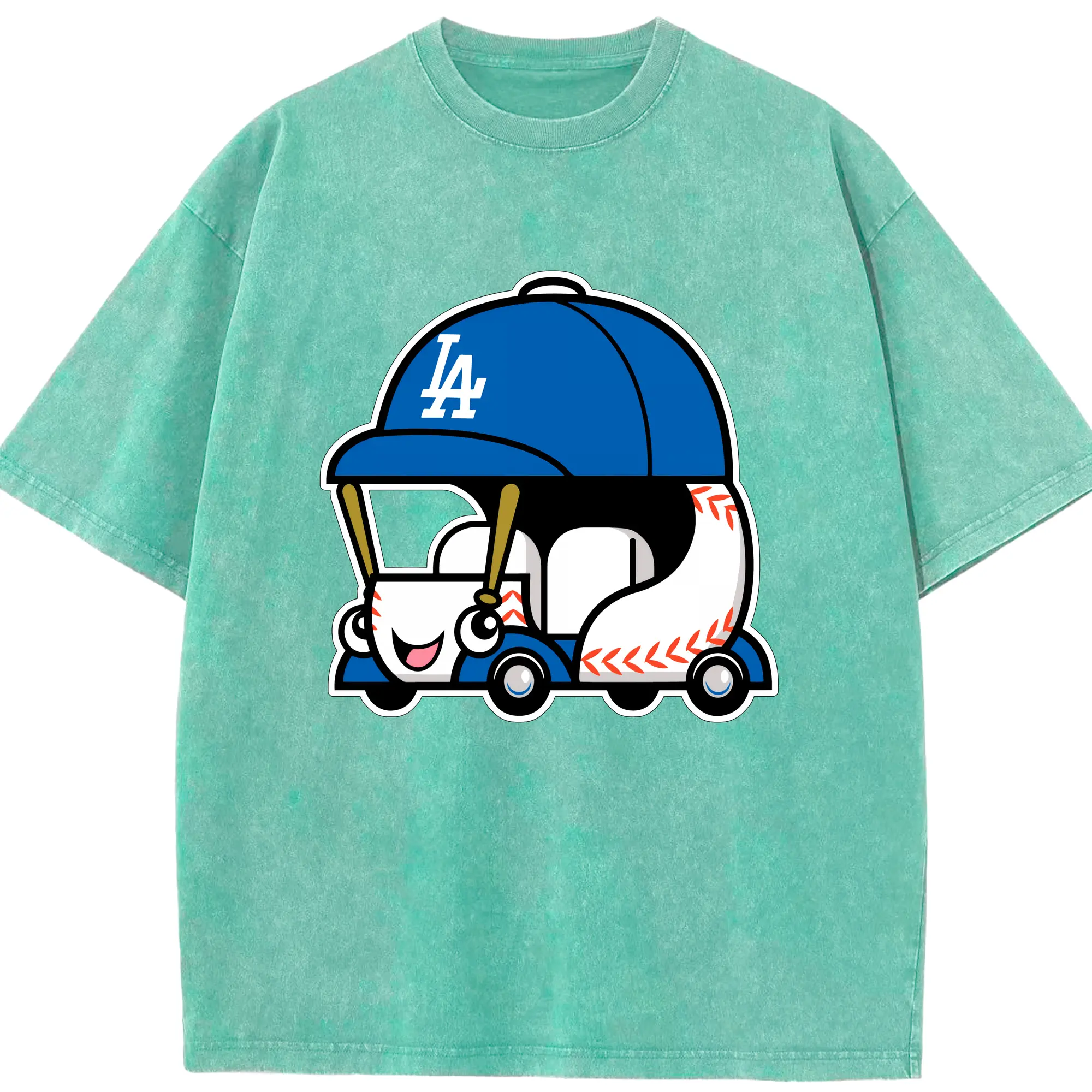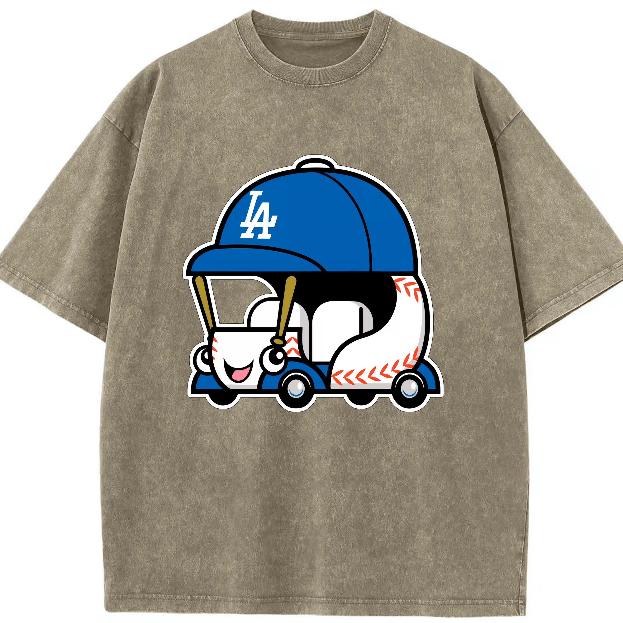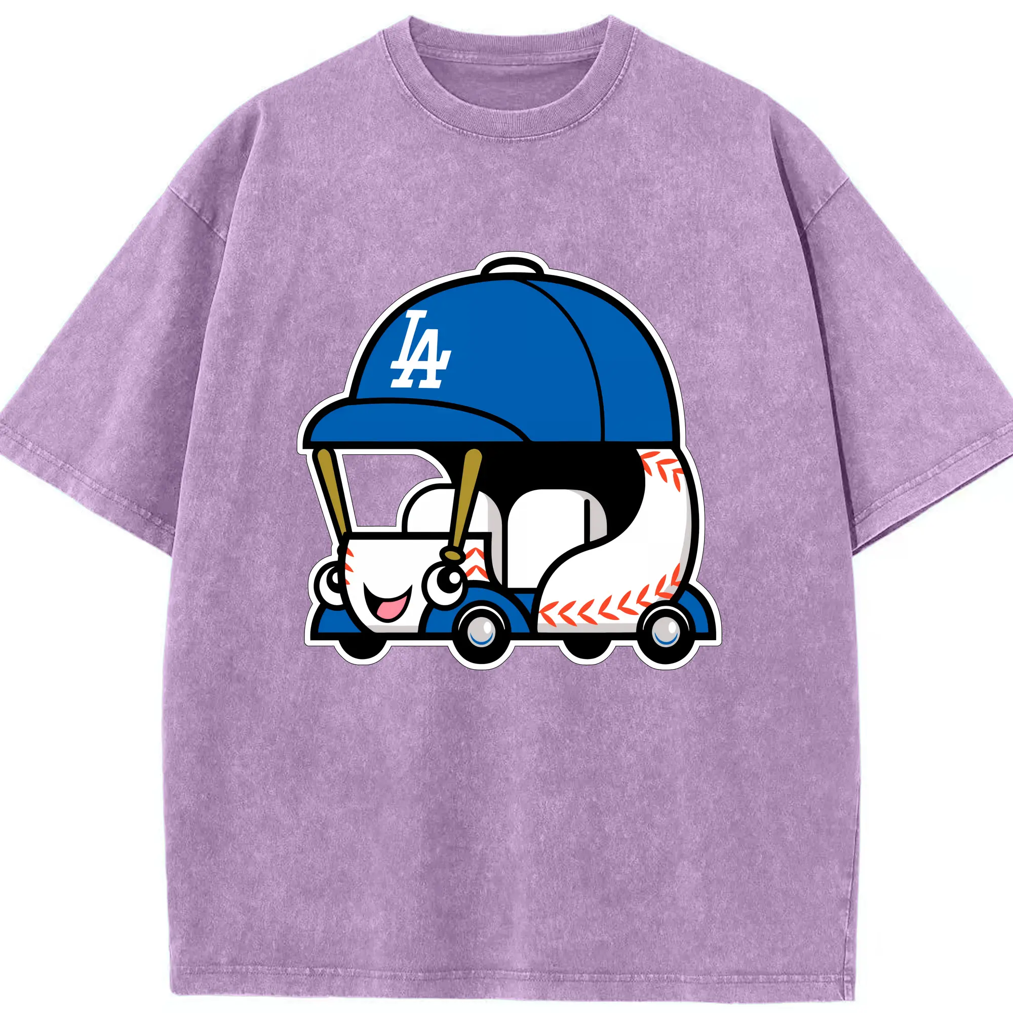 Cute Dodgers Bullpen Car Baseball - Washed Vintage Look 230g Cotton Oversized T-Shirt With Front Heat Transfer Print – Soft, Lightweight, Stylish Fit – Comfortable Casual Wear For Sports & Everyday Use