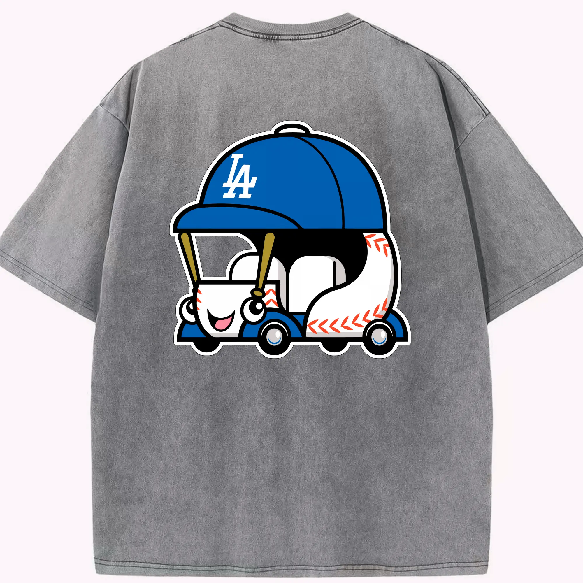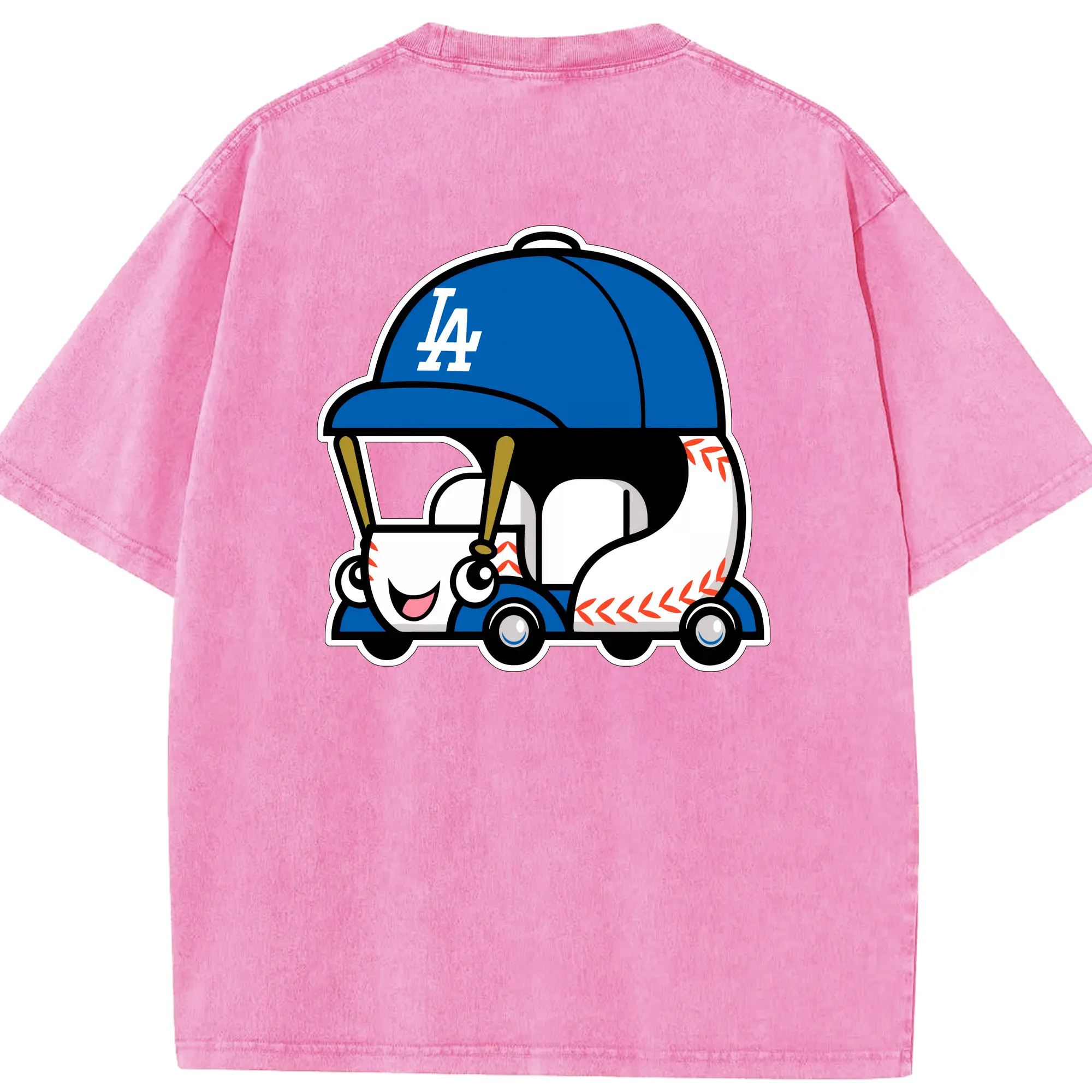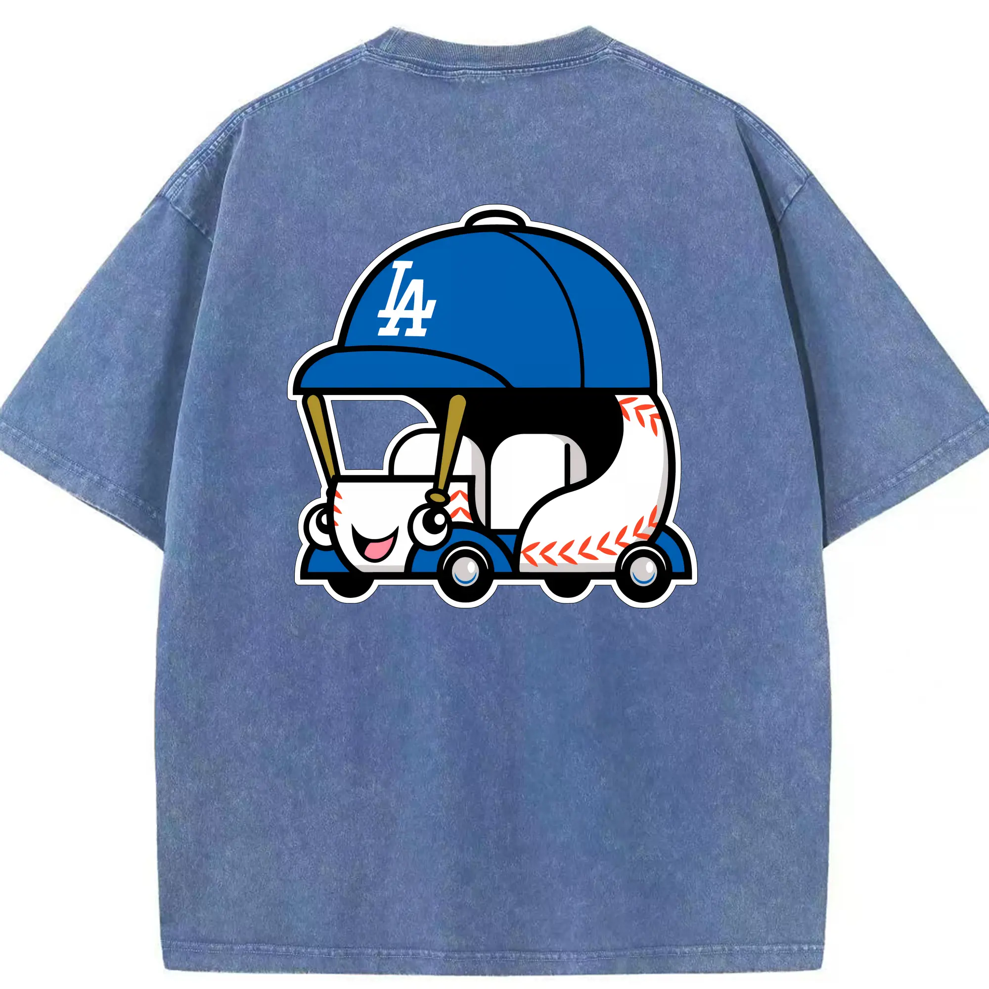 Cute Dodgers Bullpen Car Baseball - Washed Vintage 230g Cotton Oversized T-Shirt With Back Heat Transfer Print – Soft, Lightweight & Stylish – Comfortable Casual Wear For Sports & Everyday Use
