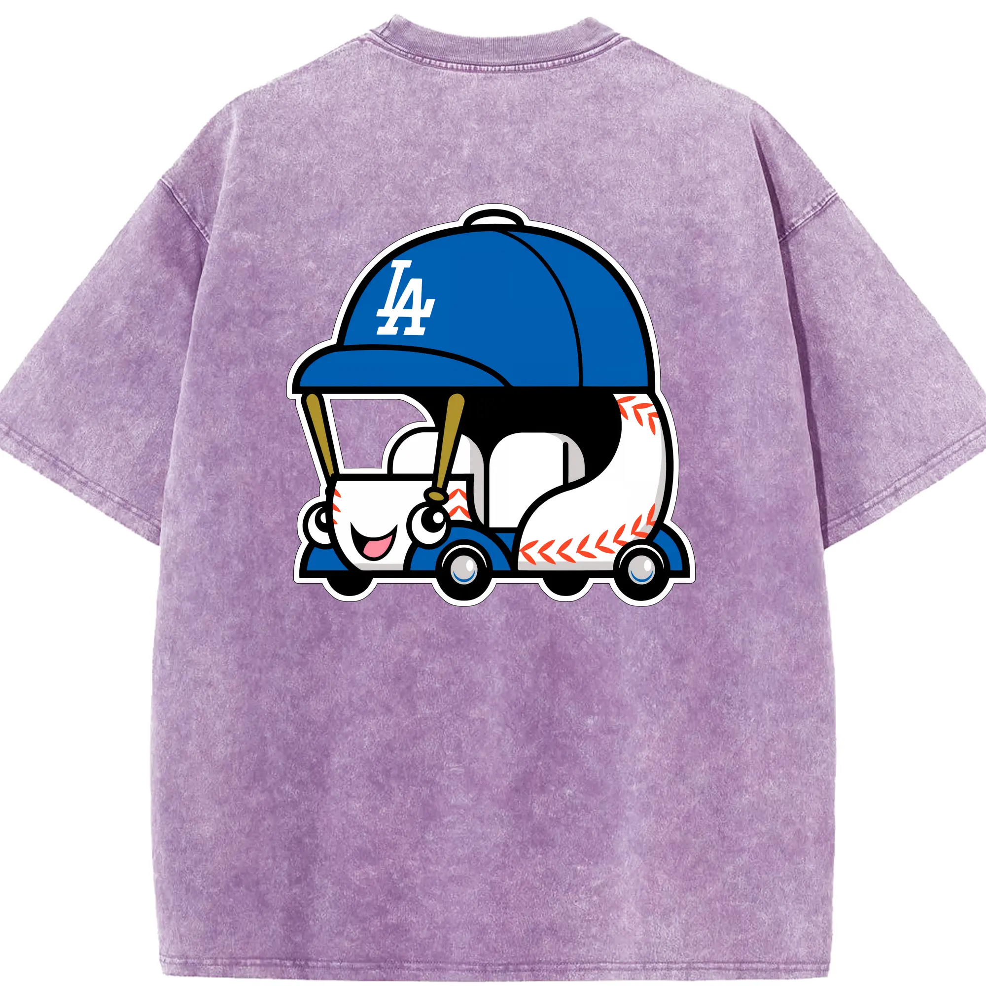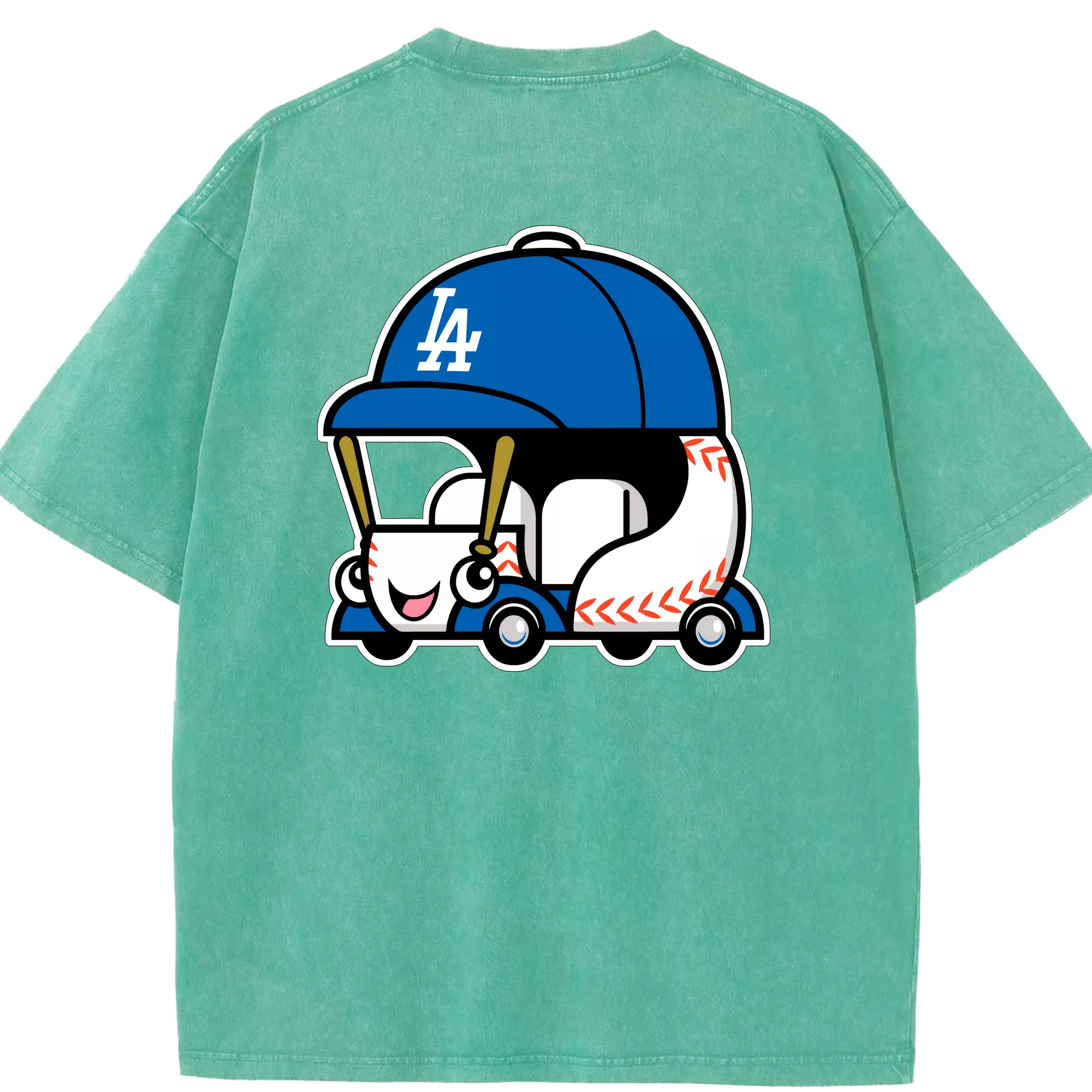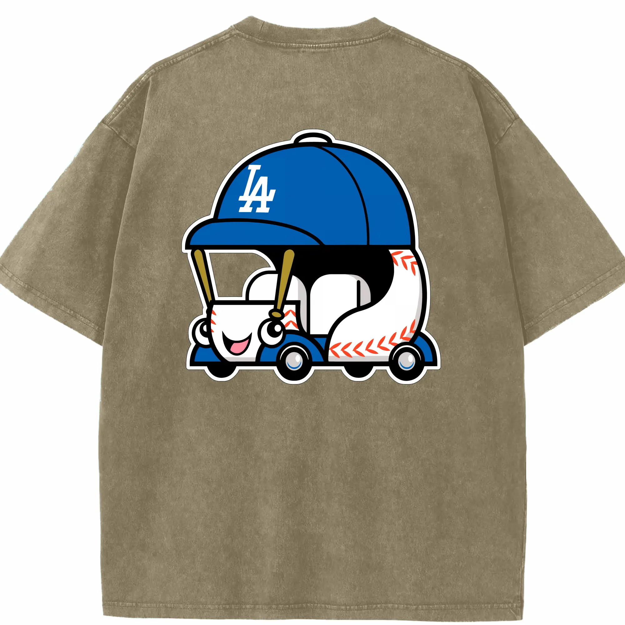 Cute Dodgers Bullpen Car Baseball - Washed Vintage 230g Cotton Oversized T-Shirt With Back Heat Transfer Print – Soft, Lightweight & Stylish – Comfortable Casual Wear For Sports & Everyday Use