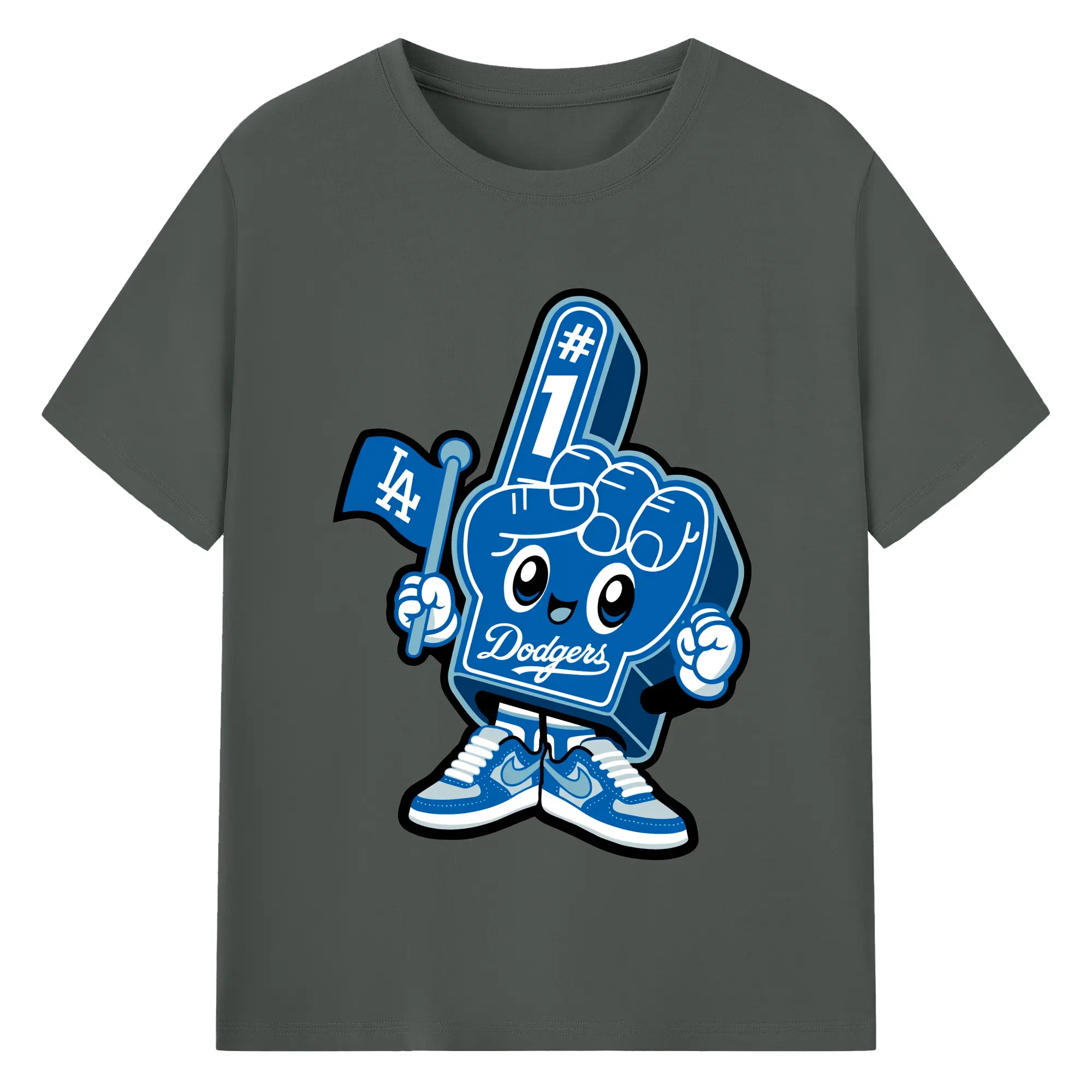 Cute Mr Dodger Foam Finger - Combed Cotton T-Shirt 180g With Front Heat Transfer Print – Soft, Lightweight, Fitted Design – Stylish Casual Wear For Sports & Everyday Use