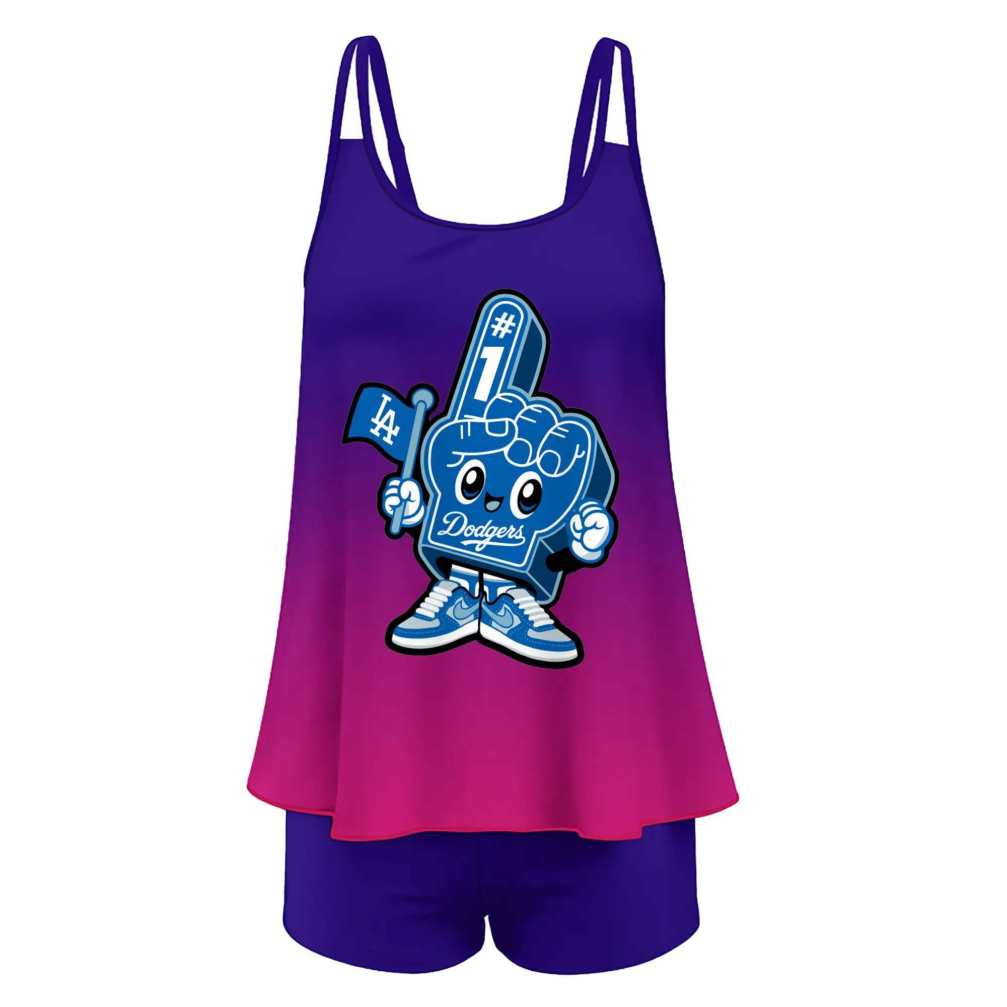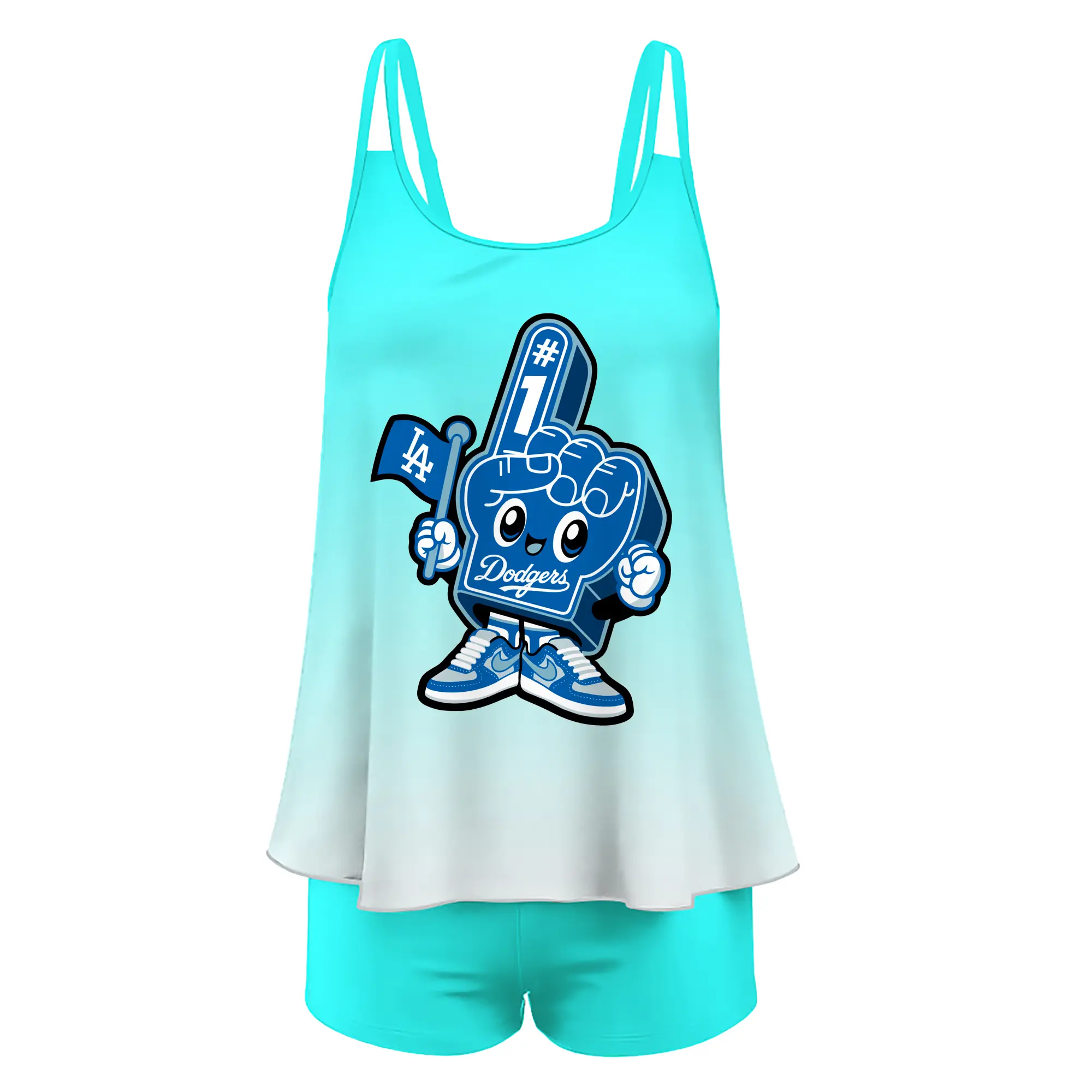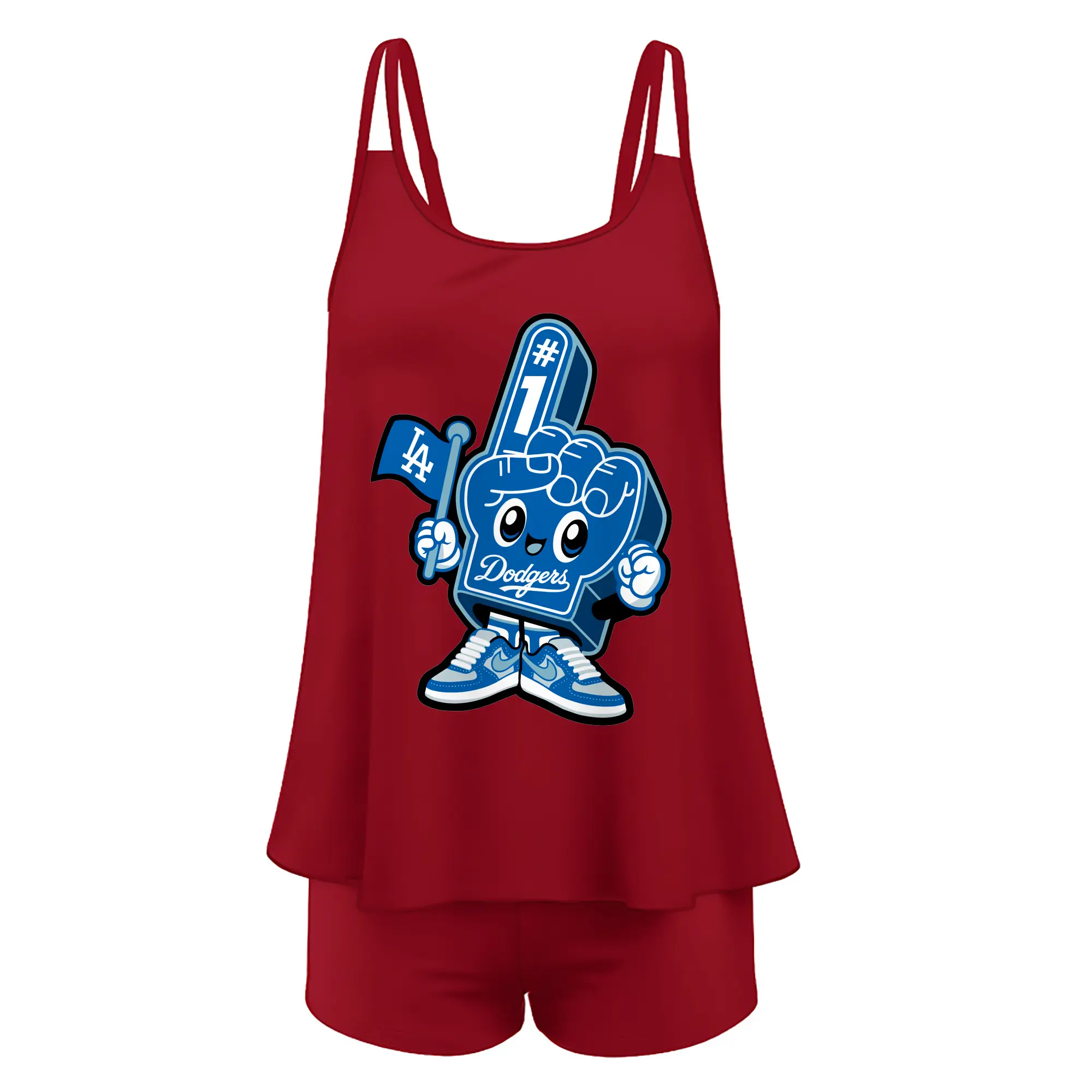 Cute Mr Dodger Foam Finger - Women’s Heat Transfer Printed Two-Piece Swimsuit Set – Sexy Double Strap Bandeau Top & Boyshort Bottoms, Soft Nylon-Spandex – Perfect for Beach, Pool & Vacation