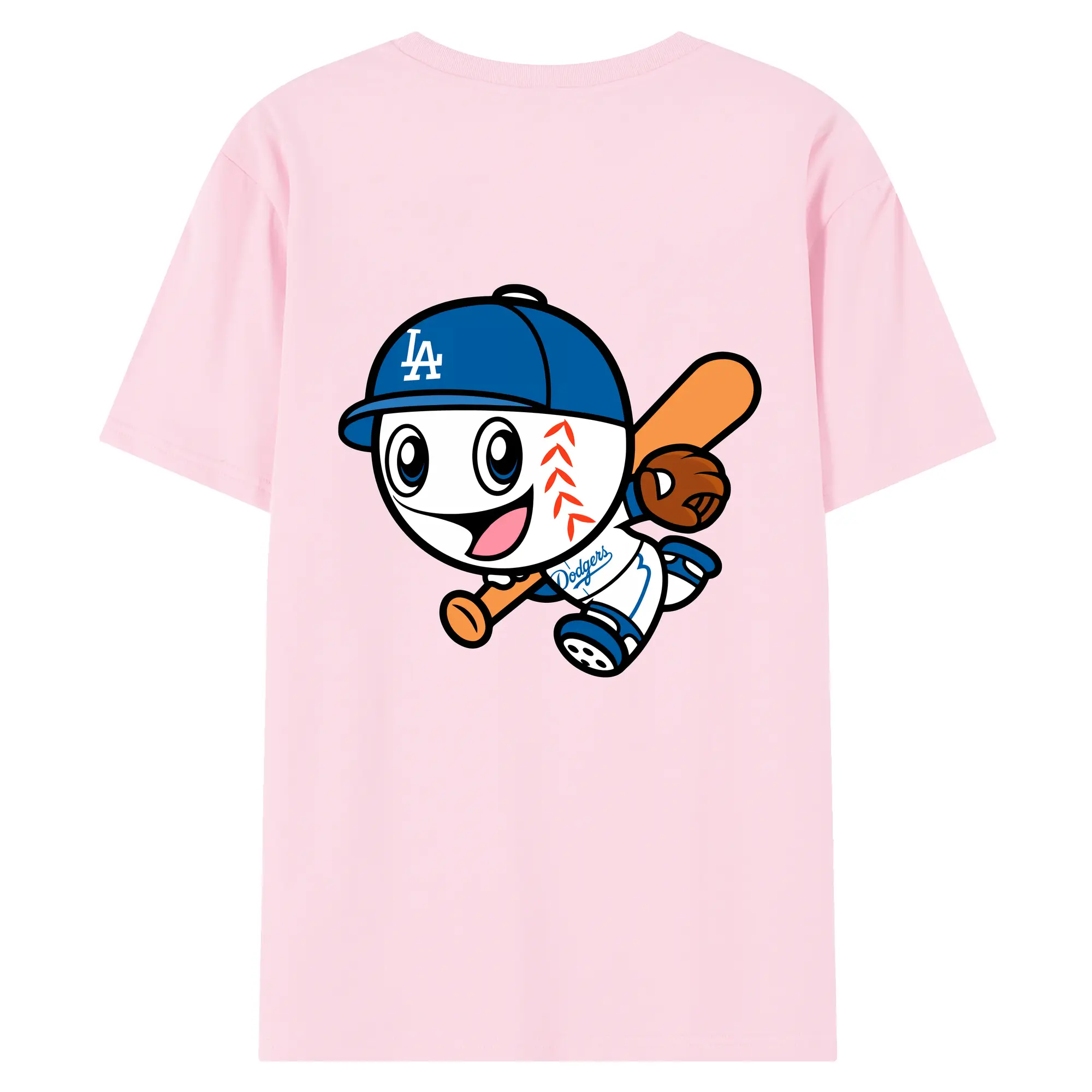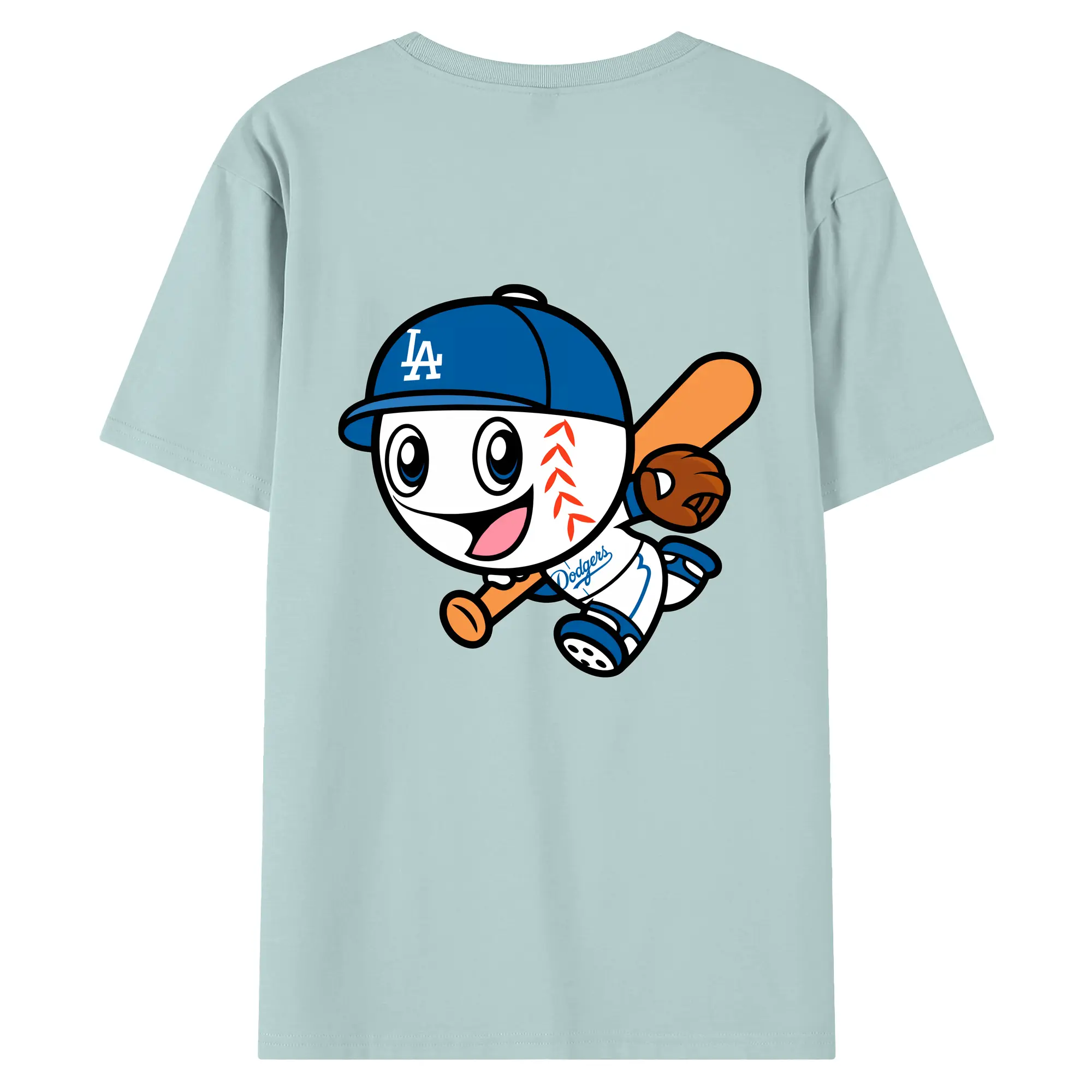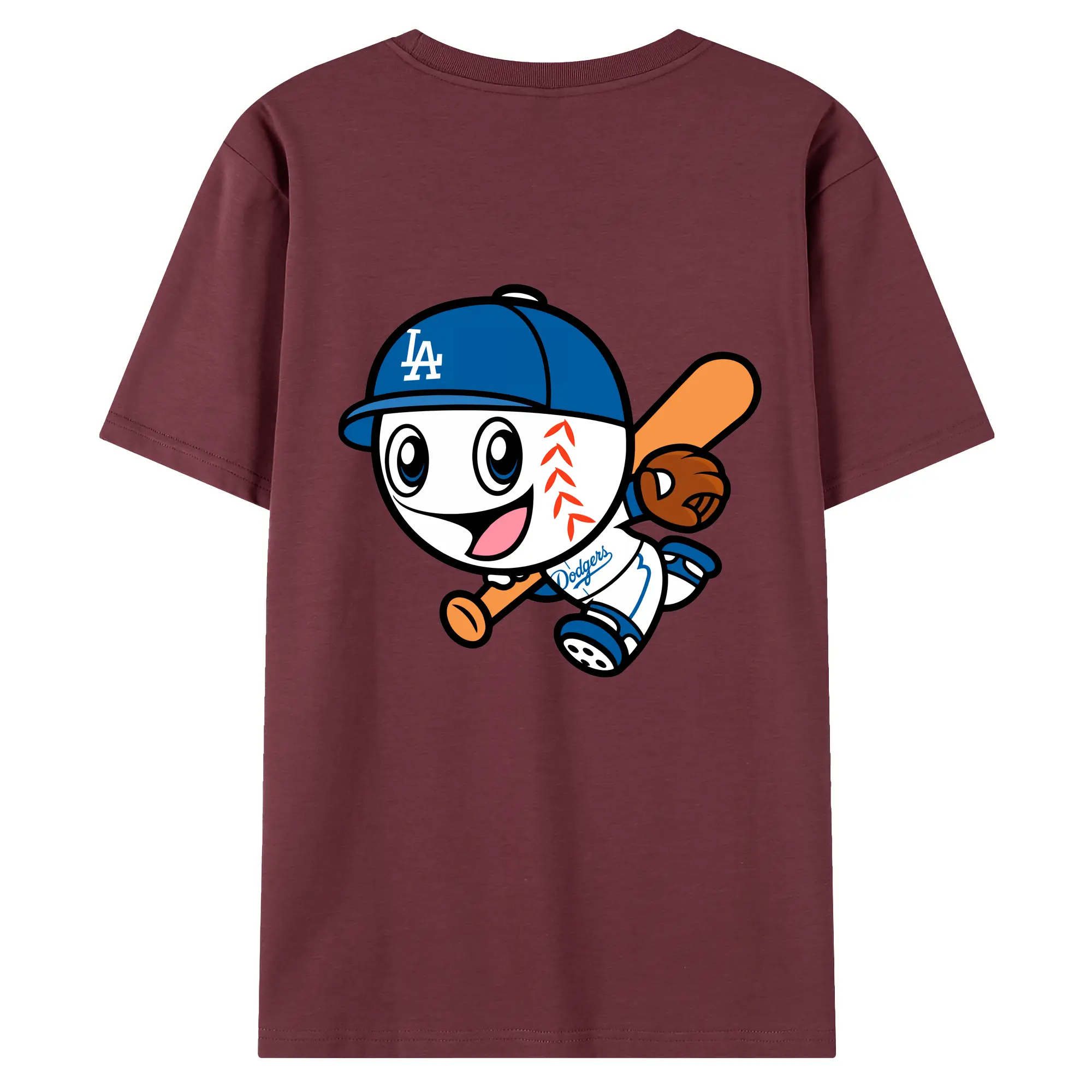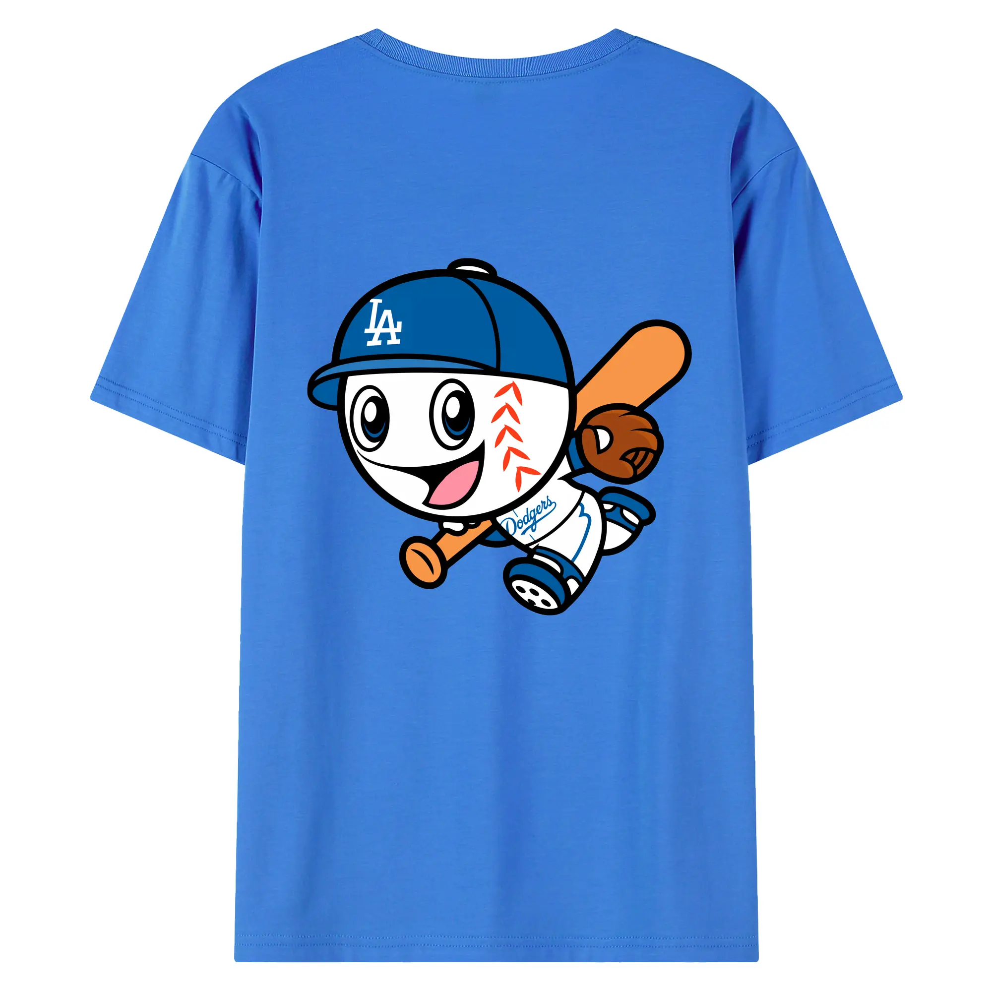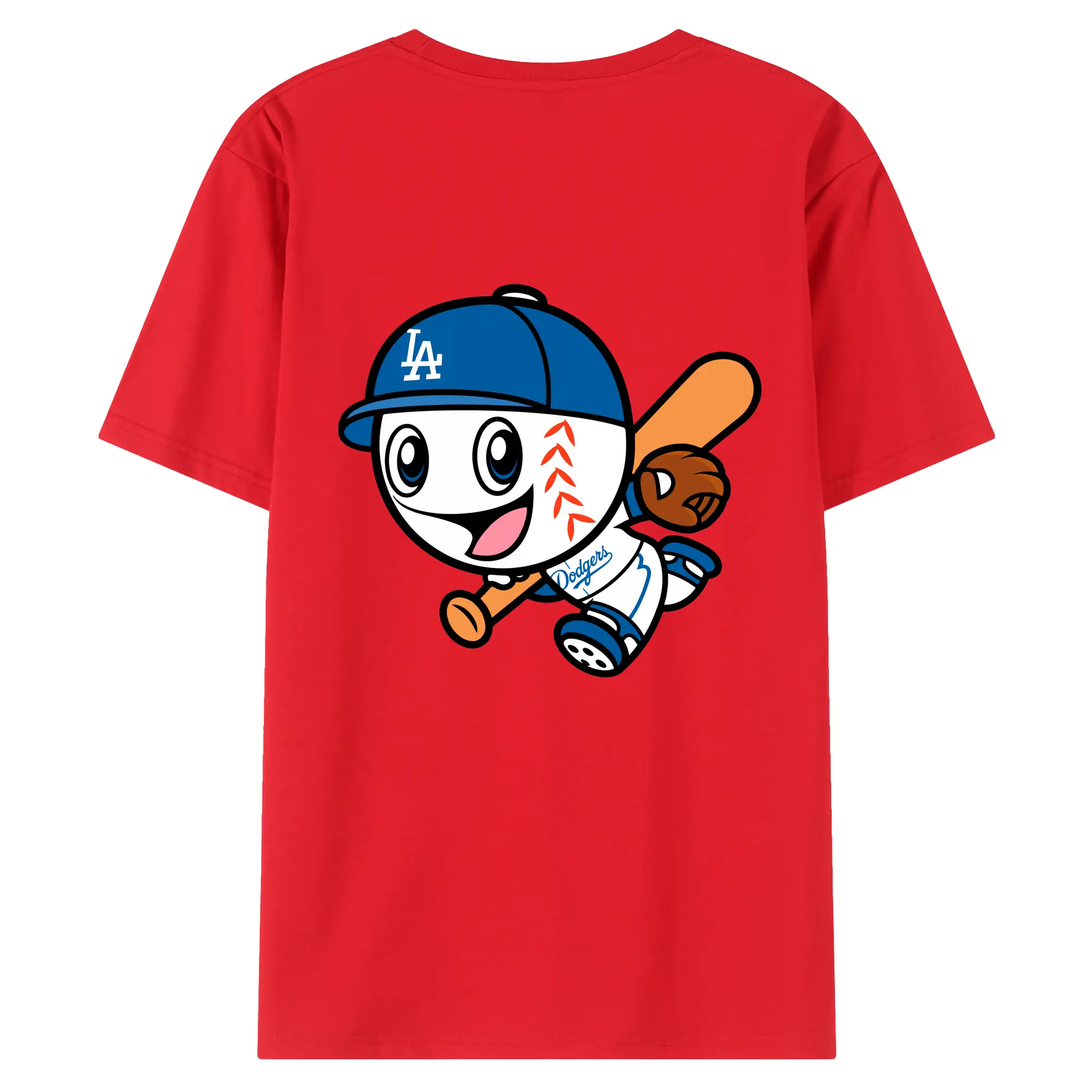 Cute Mr Dodger Running Play Baseball - 180g Combed Cotton T-Shirt With Back Heat Transfer Print – Soft, Lightweight, Fitted Design – Stylish Casual Wear For Sports & Everyday Use