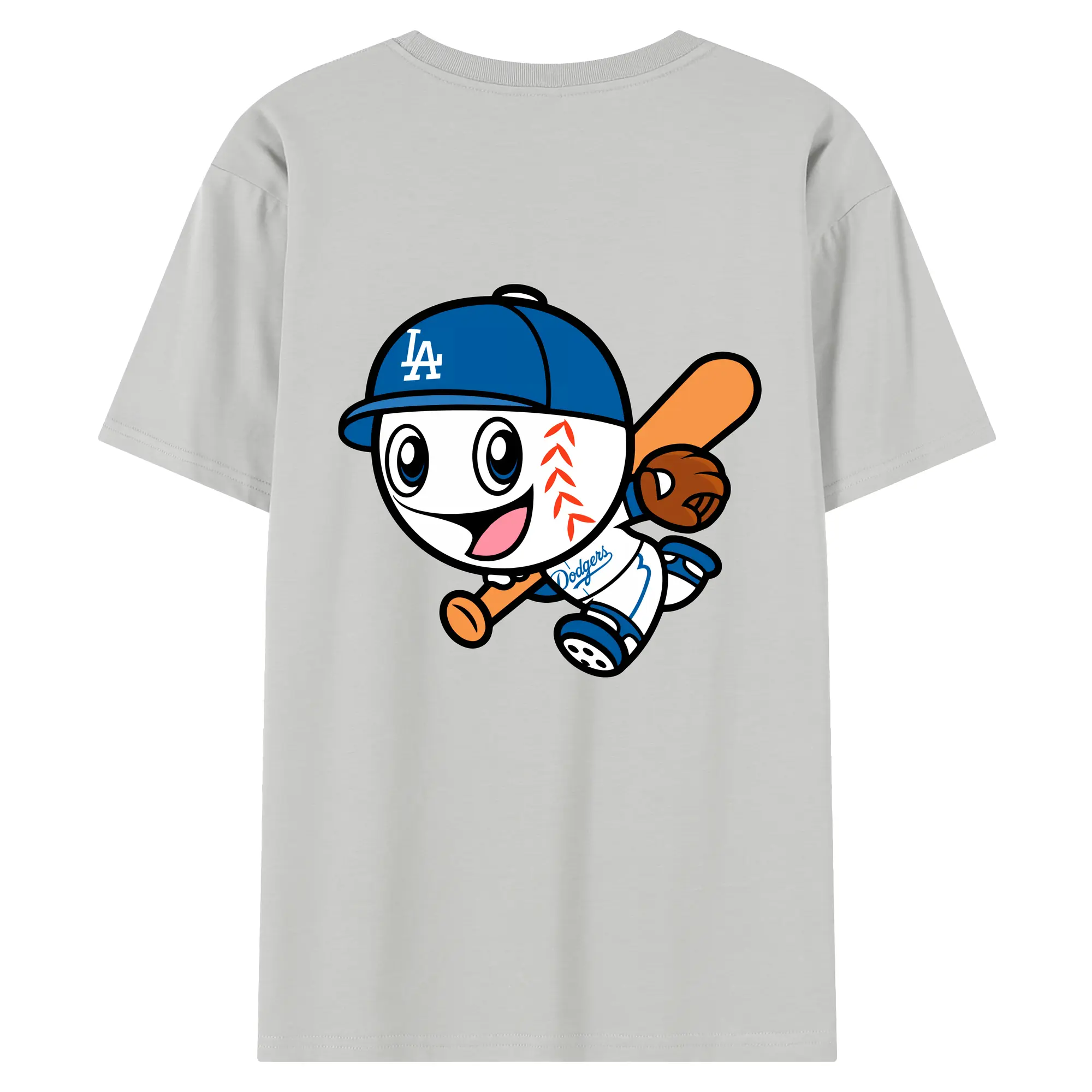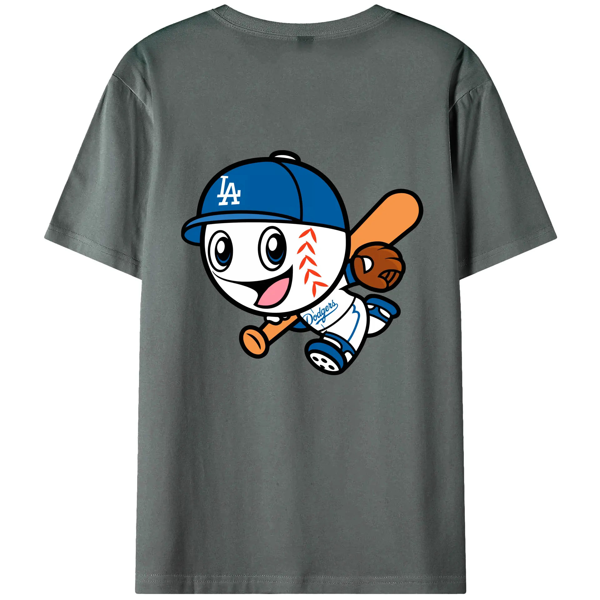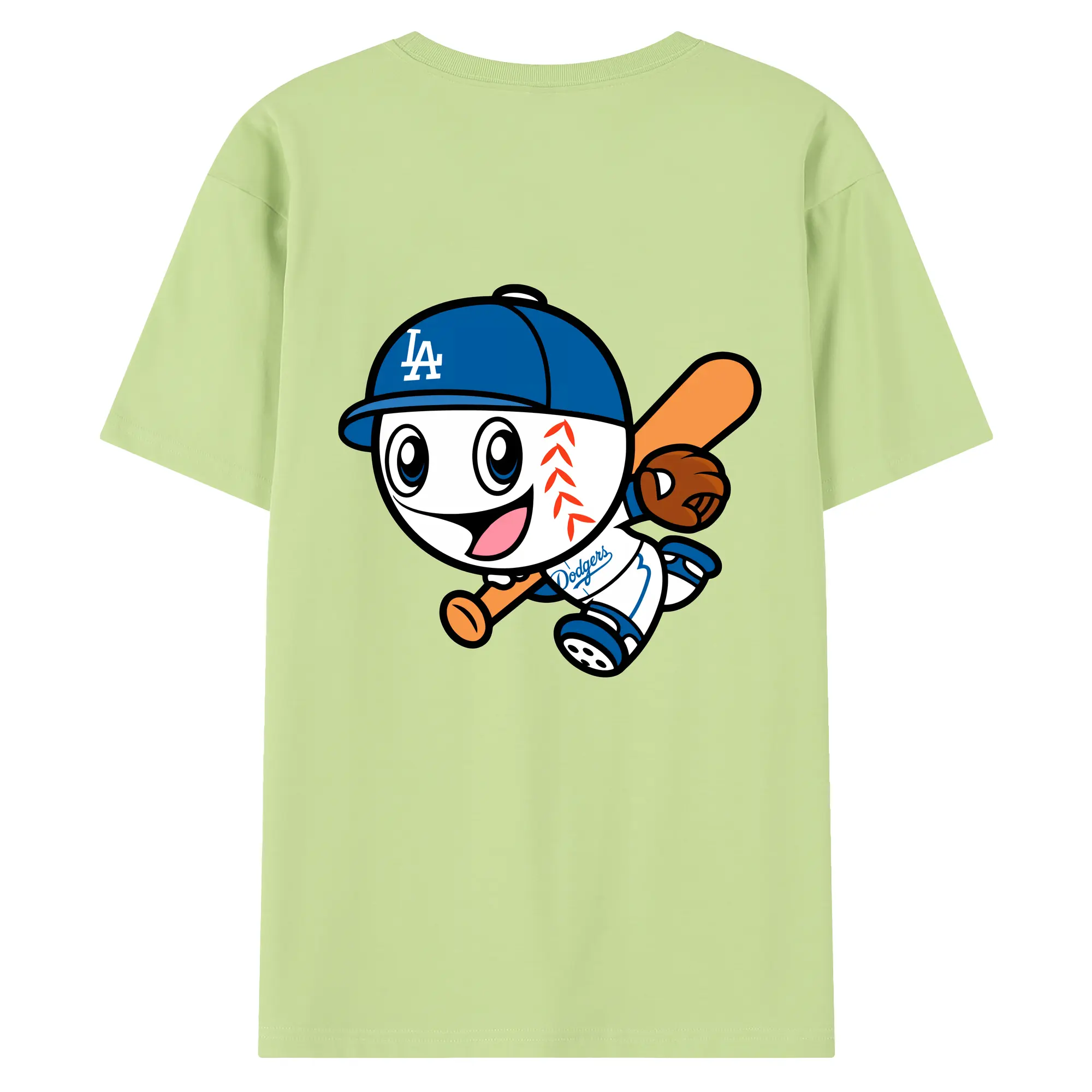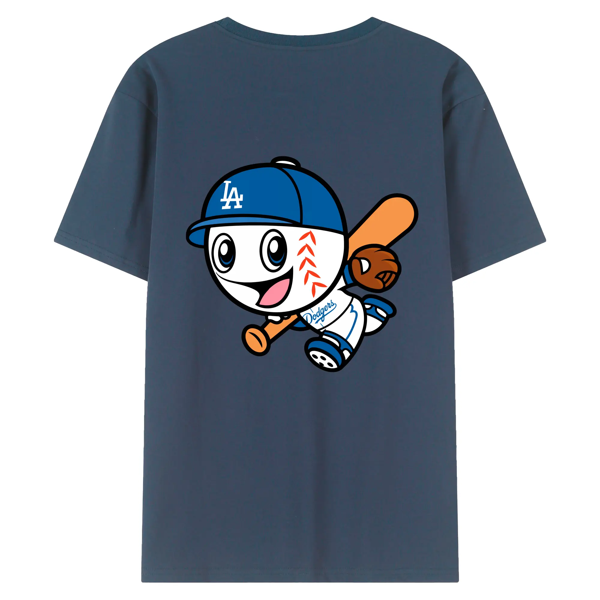 Cute Mr Dodger Running Play Baseball - 180g Combed Cotton T-Shirt With Back Heat Transfer Print – Soft, Lightweight, Fitted Design – Stylish Casual Wear For Sports & Everyday Use