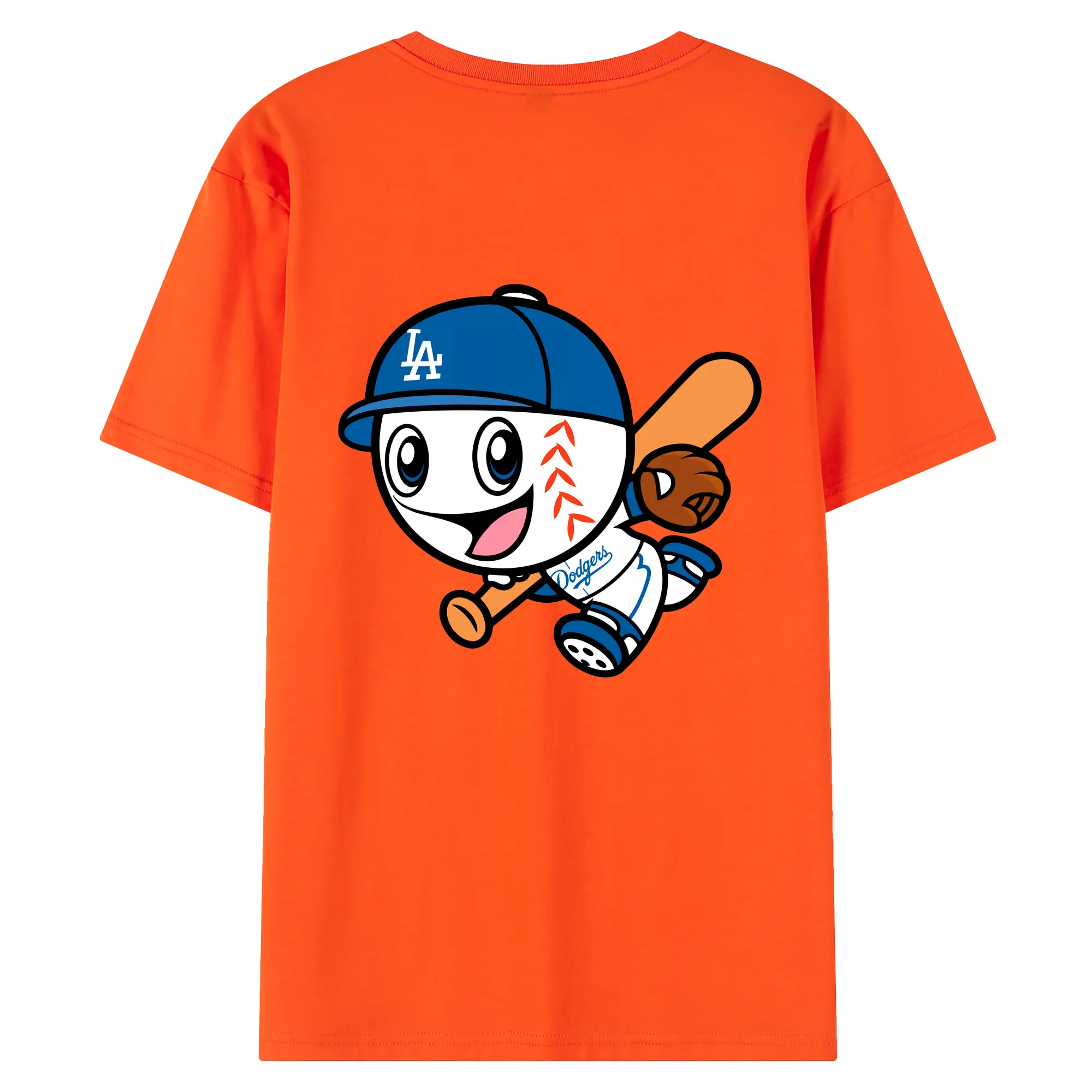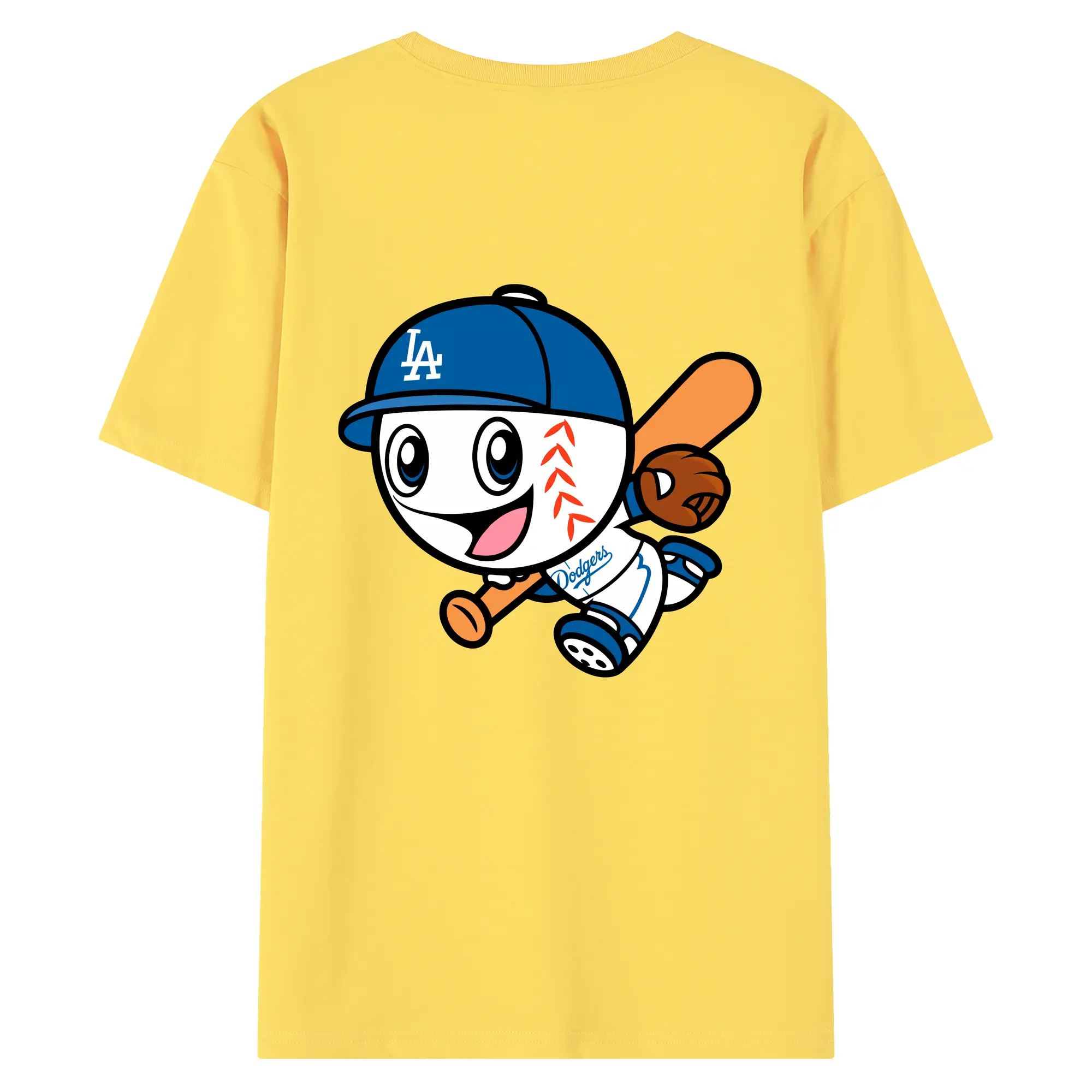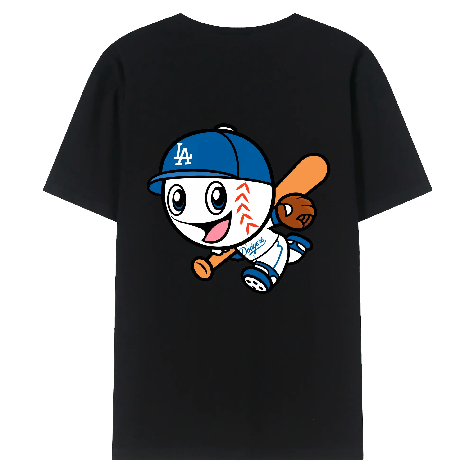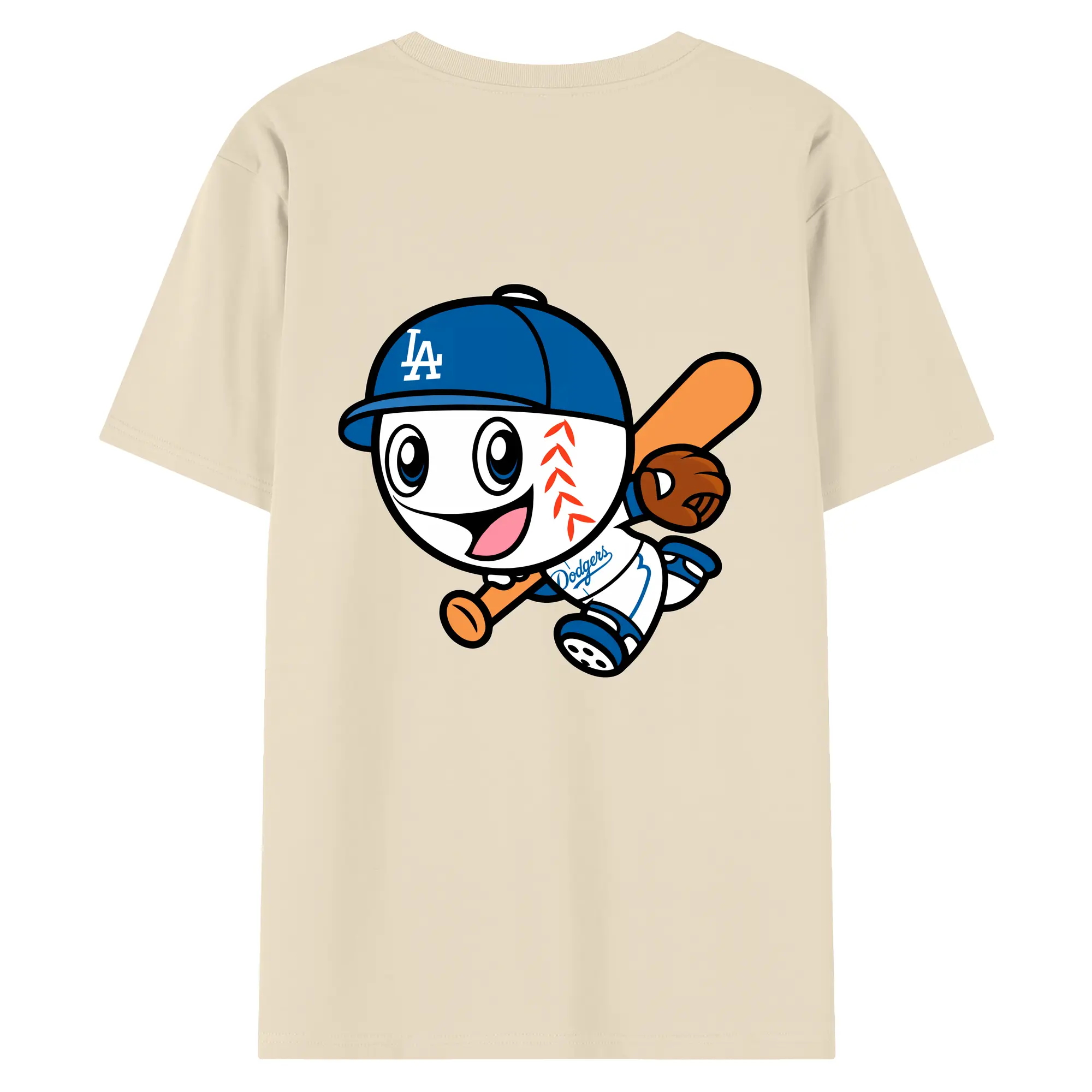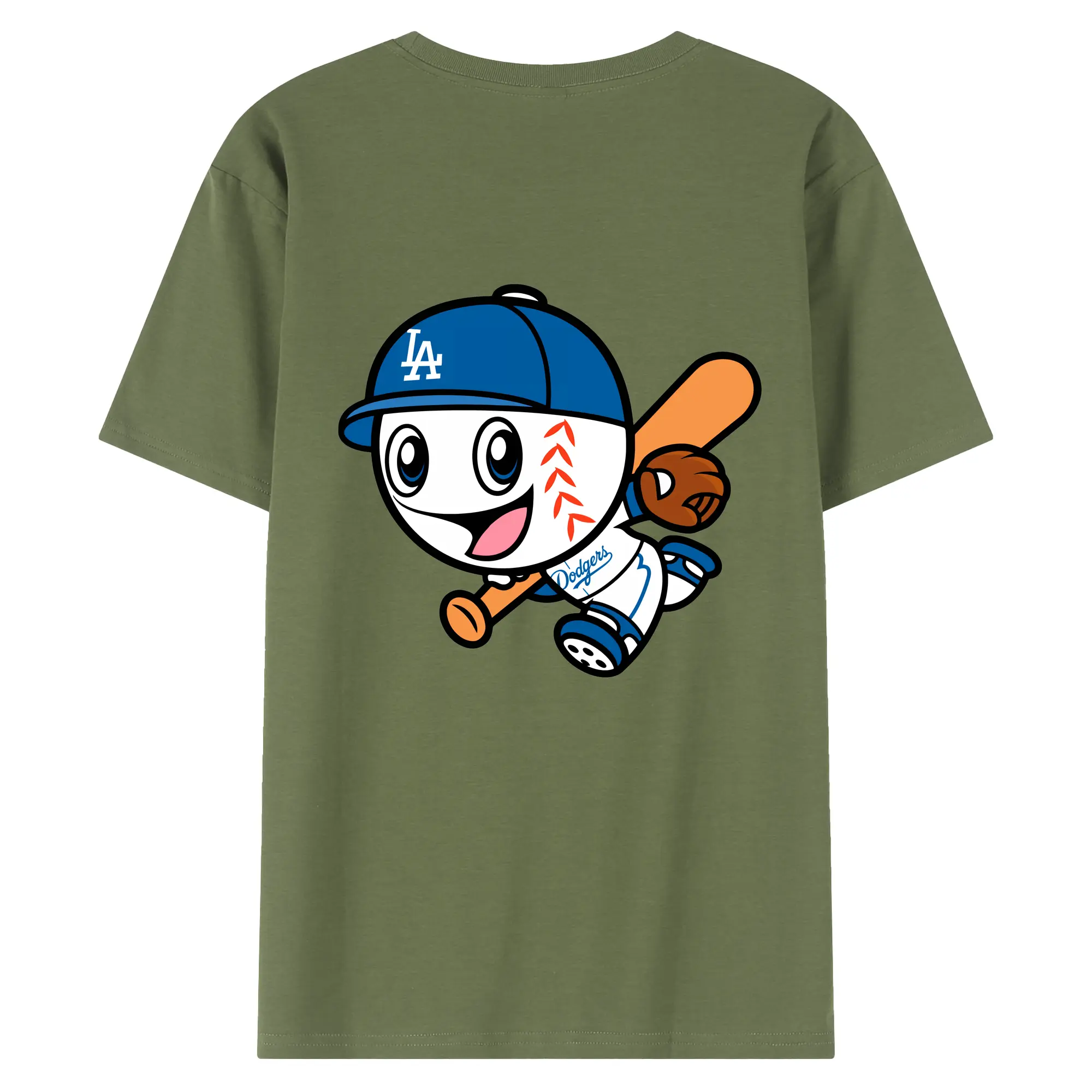 Cute Mr Dodger Running Play Baseball - 180g Combed Cotton T-Shirt With Back Heat Transfer Print – Soft, Lightweight, Fitted Design – Stylish Casual Wear For Sports & Everyday Use