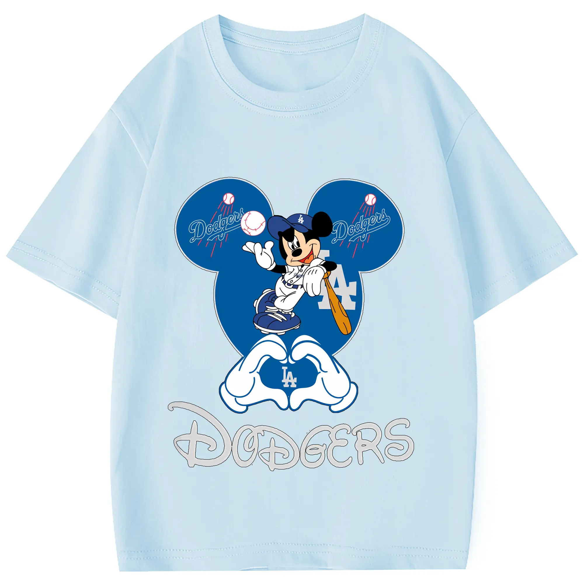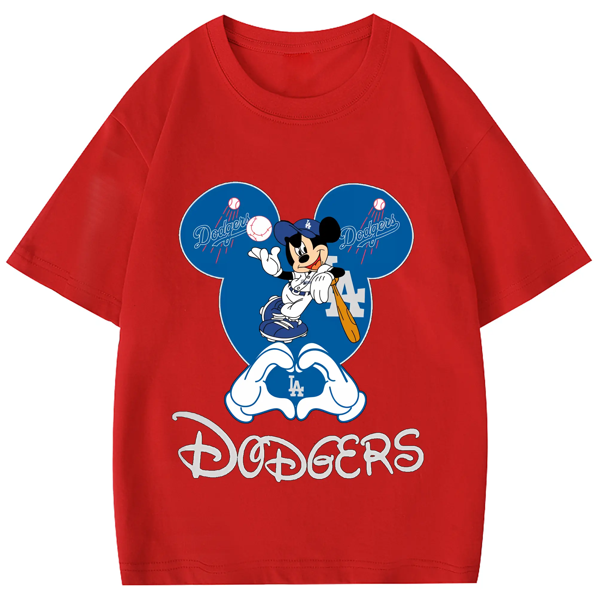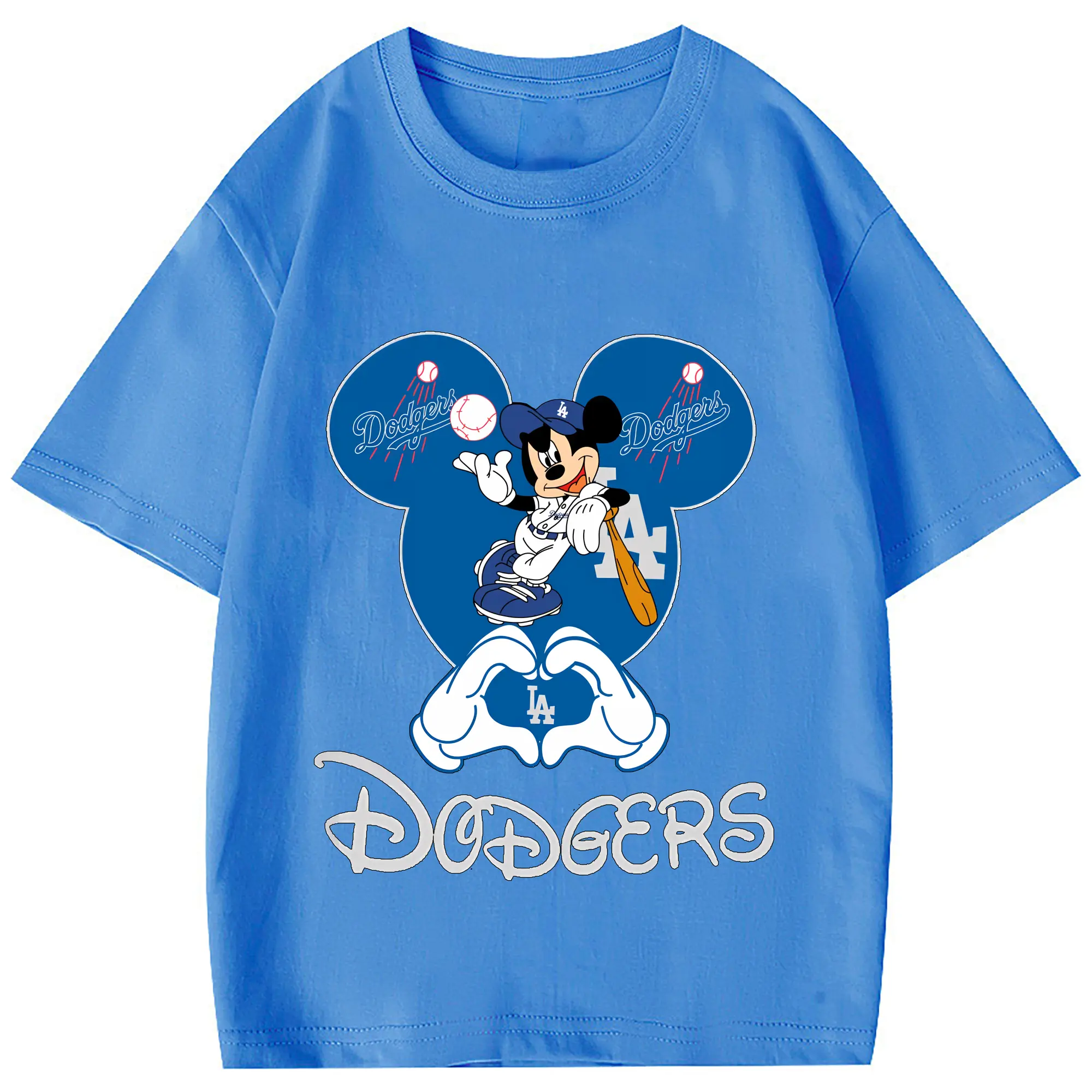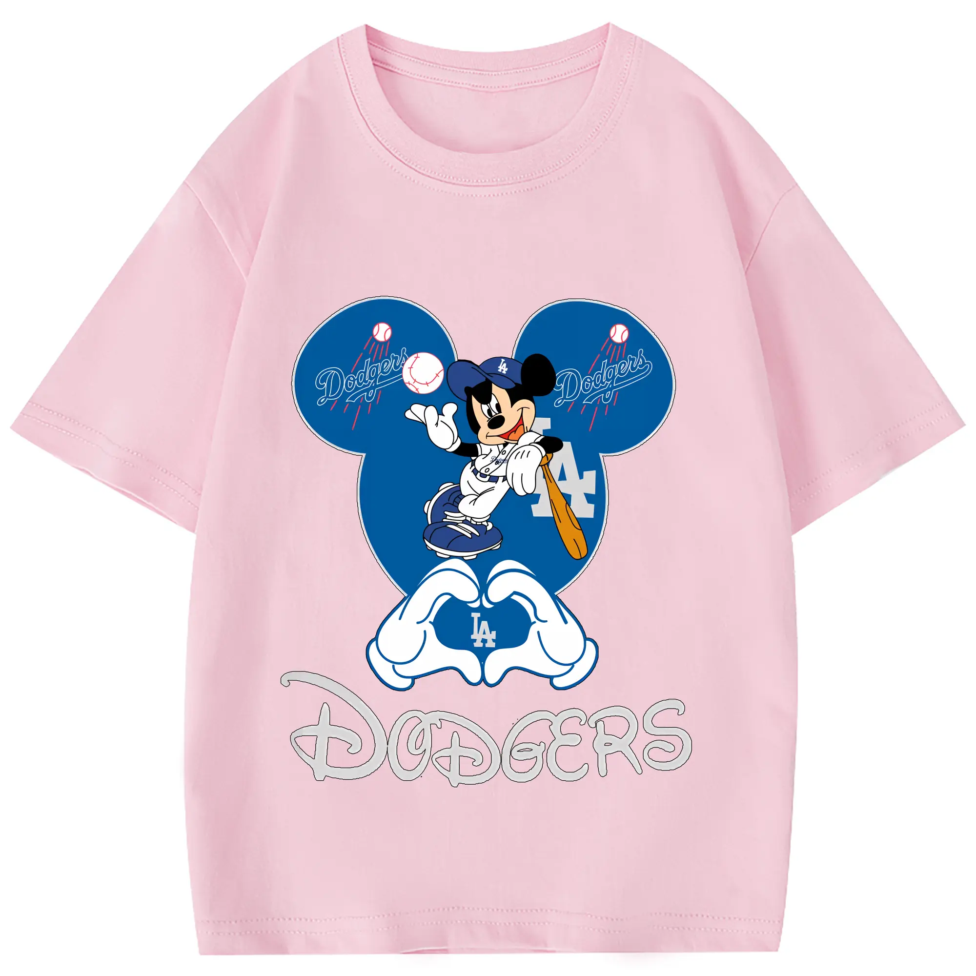 Disney Mickey Mouse Loves Los Angeles Dodgers Heart - Combed Cotton Kids T-Shirt 180g With Front Heat Transfer Print – Soft, Lightweight, Side-Seamed Design – Stylish And Comfortable Casual Wear For Everyday Activities
