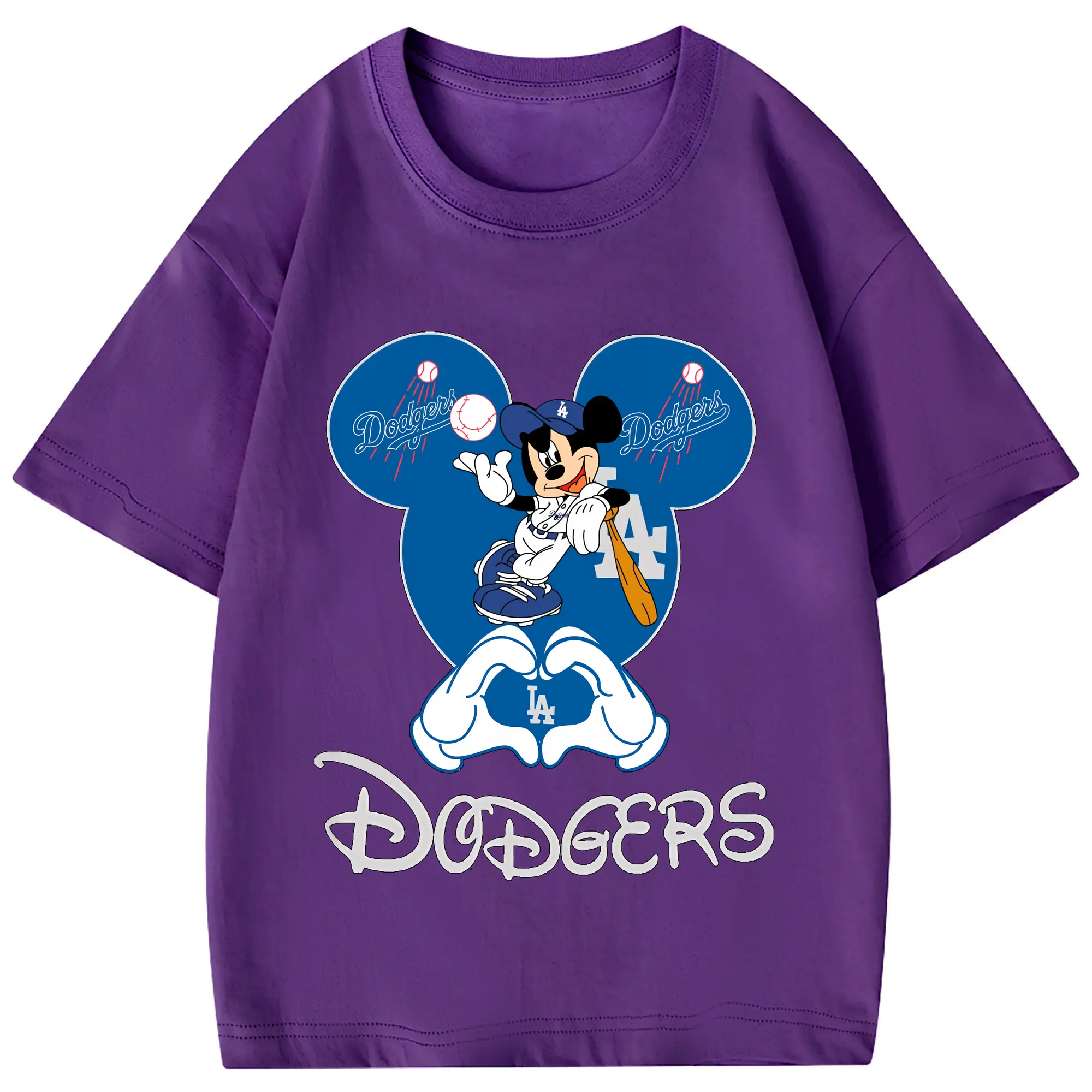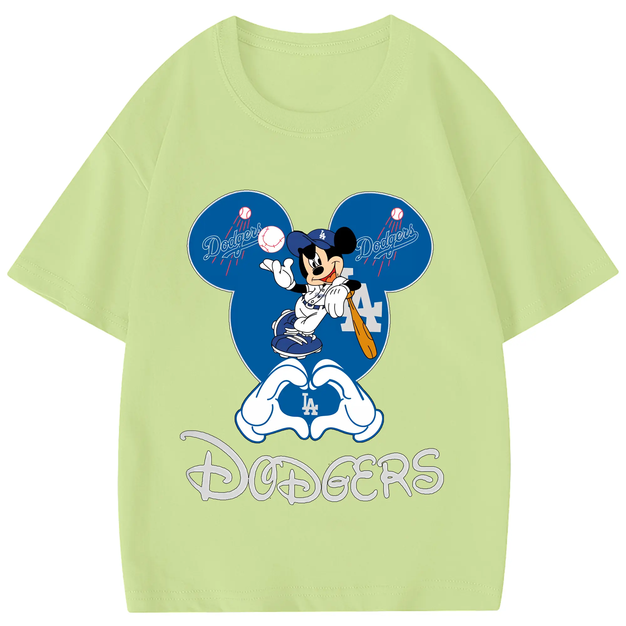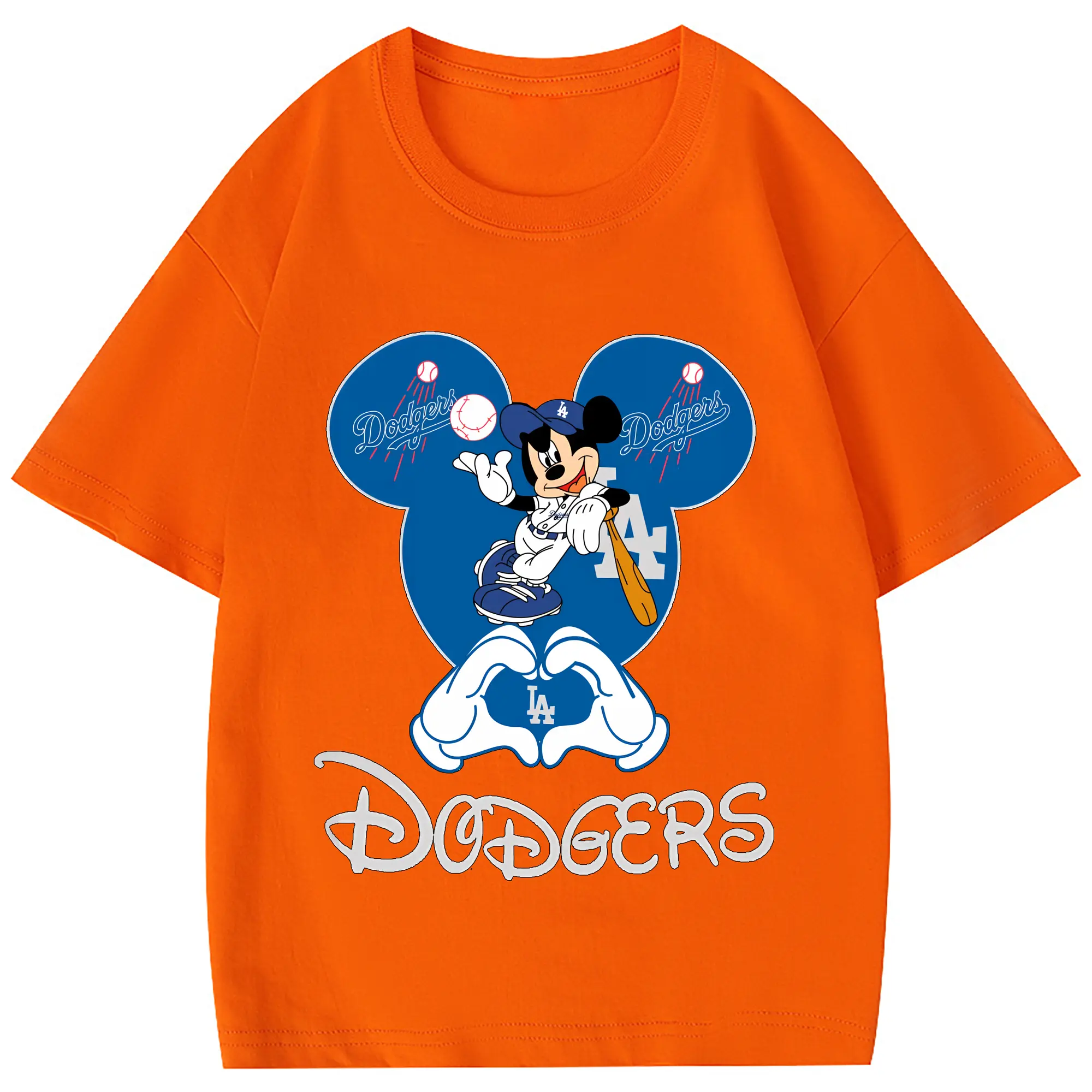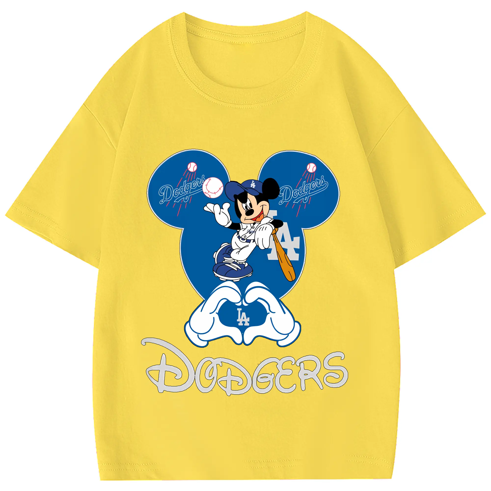 Disney Mickey Mouse Loves Los Angeles Dodgers Heart - Combed Cotton Kids T-Shirt 180g With Front Heat Transfer Print – Soft, Lightweight, Side-Seamed Design – Stylish And Comfortable Casual Wear For Everyday Activities