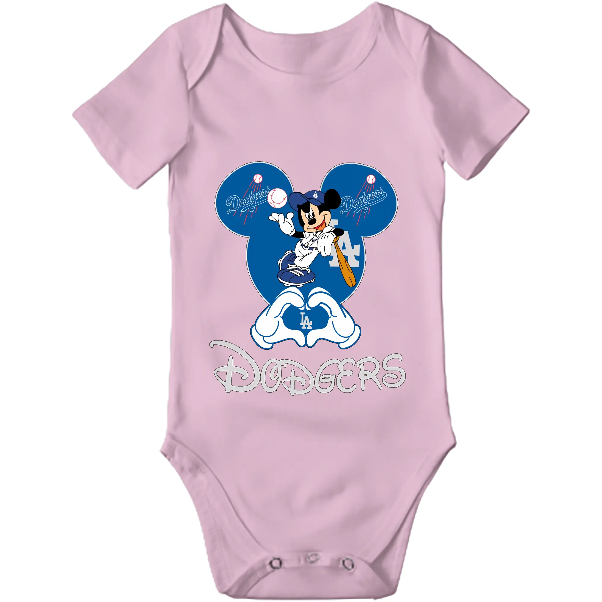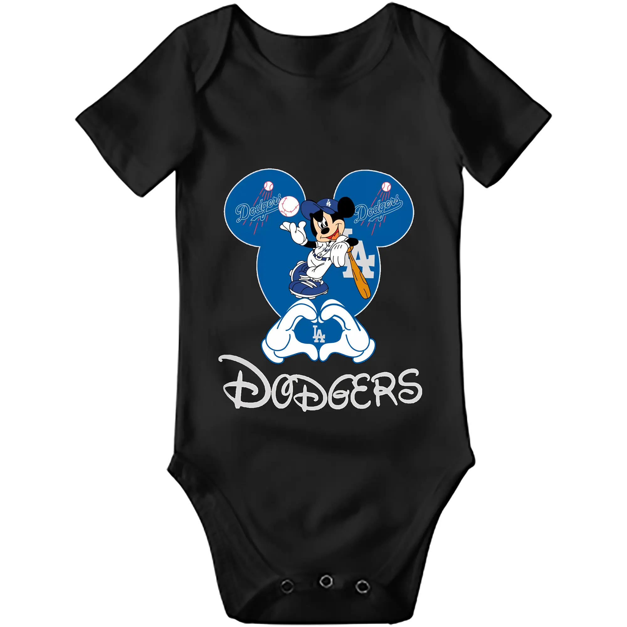 Disney Mickey Mouse Loves Los Angeles Dodgers Heart - Baby Short Sleeve Romper – 100% Cotton Soft & Breathable Digital Print Onesie With Easy Snap Closure And Envelope Shoulder – Comfortable For Daily Wear & Travel