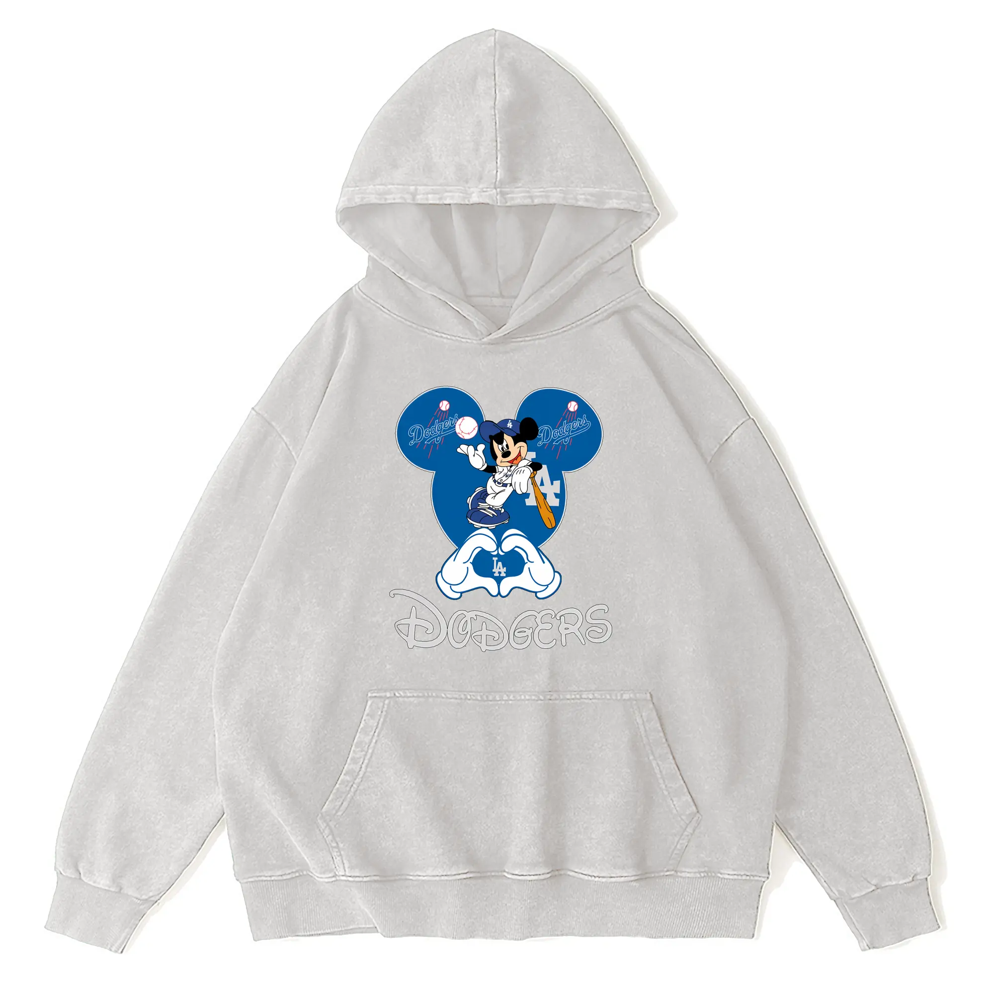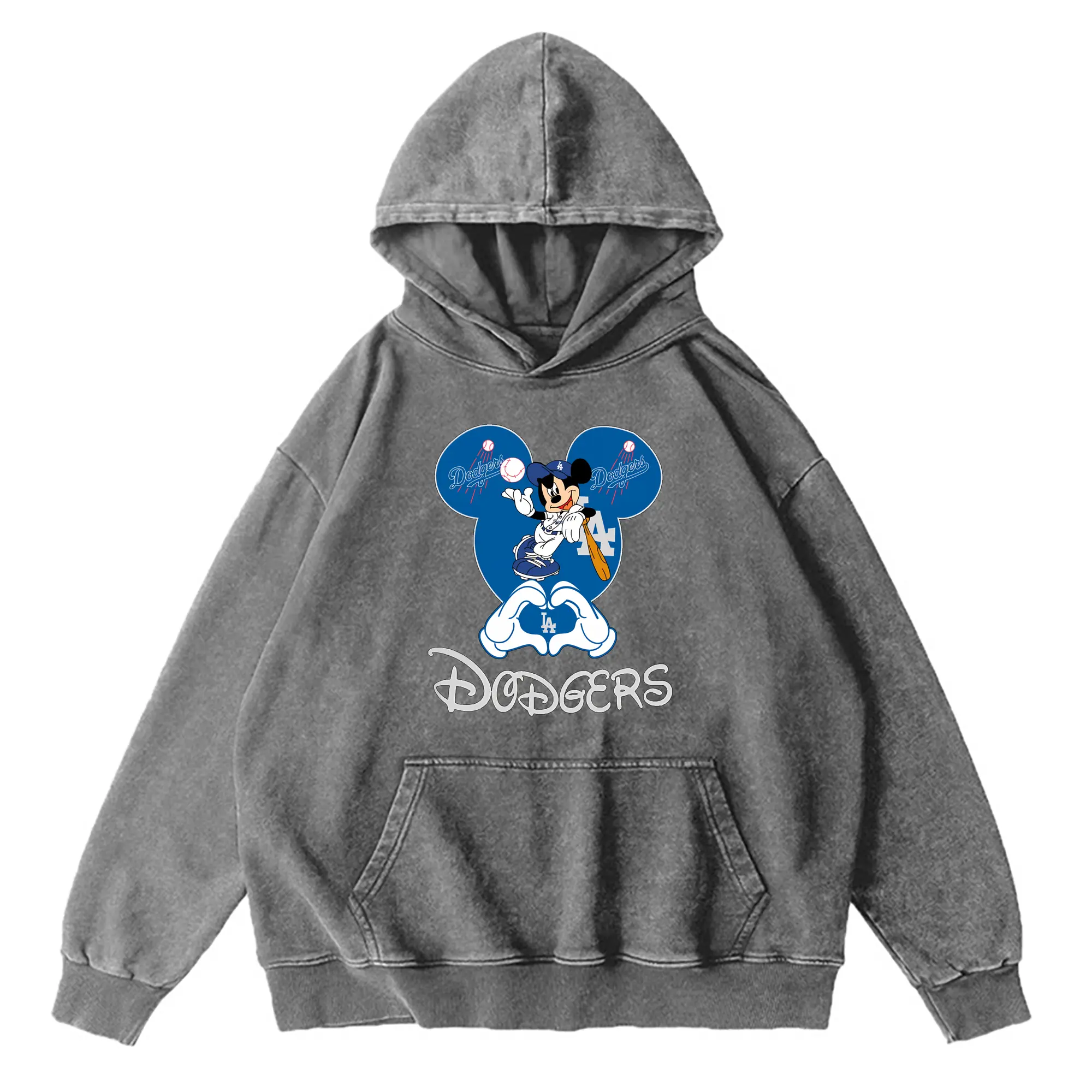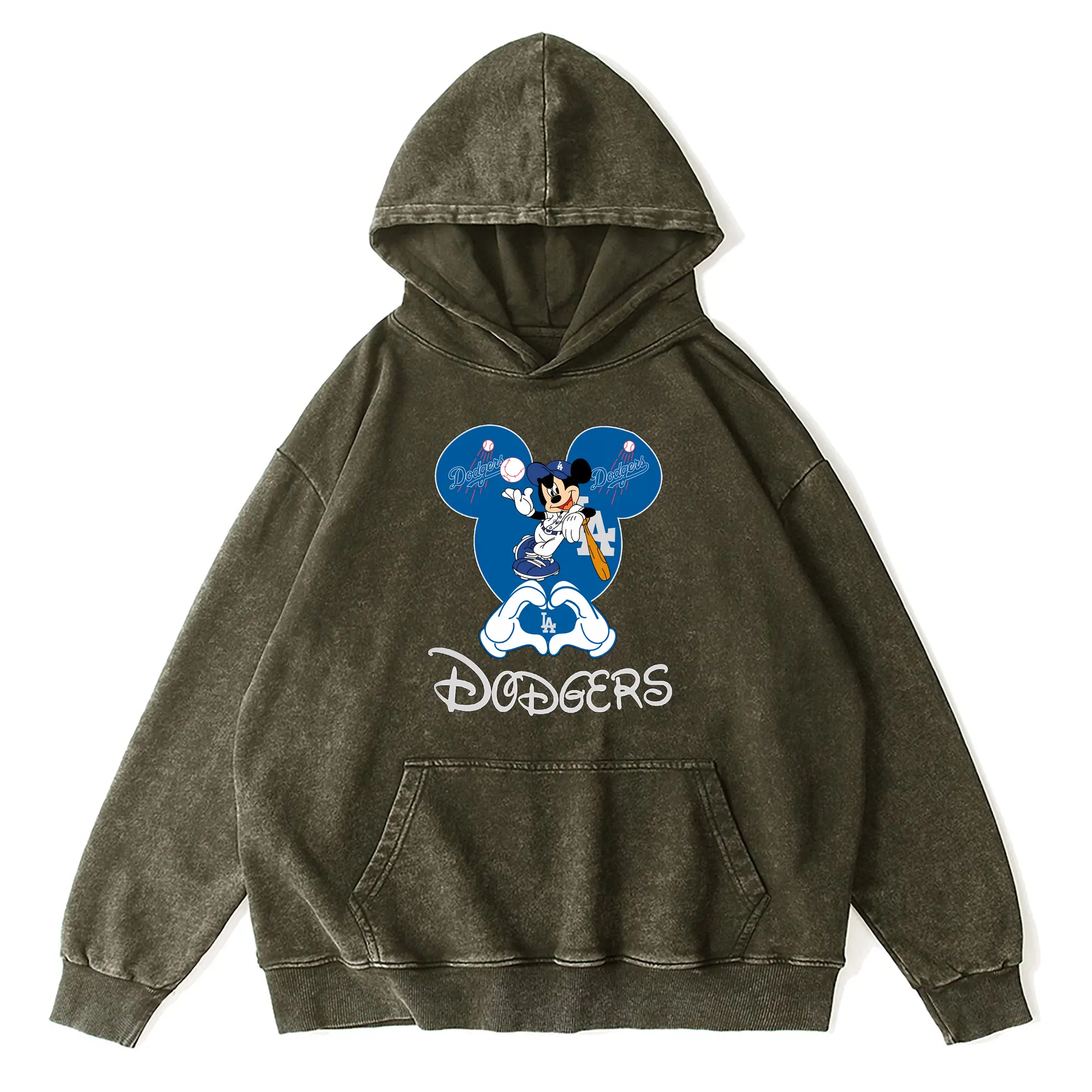 Disney Mickey Mouse Loves Los Angeles Dodgers Heart - Vintage Washed Wax-Dyed Hoodie – 80% Cotton, 20% Polyester – Soft, Durable & Stylish – Perfect For Sports, Casual & Everyday Wear