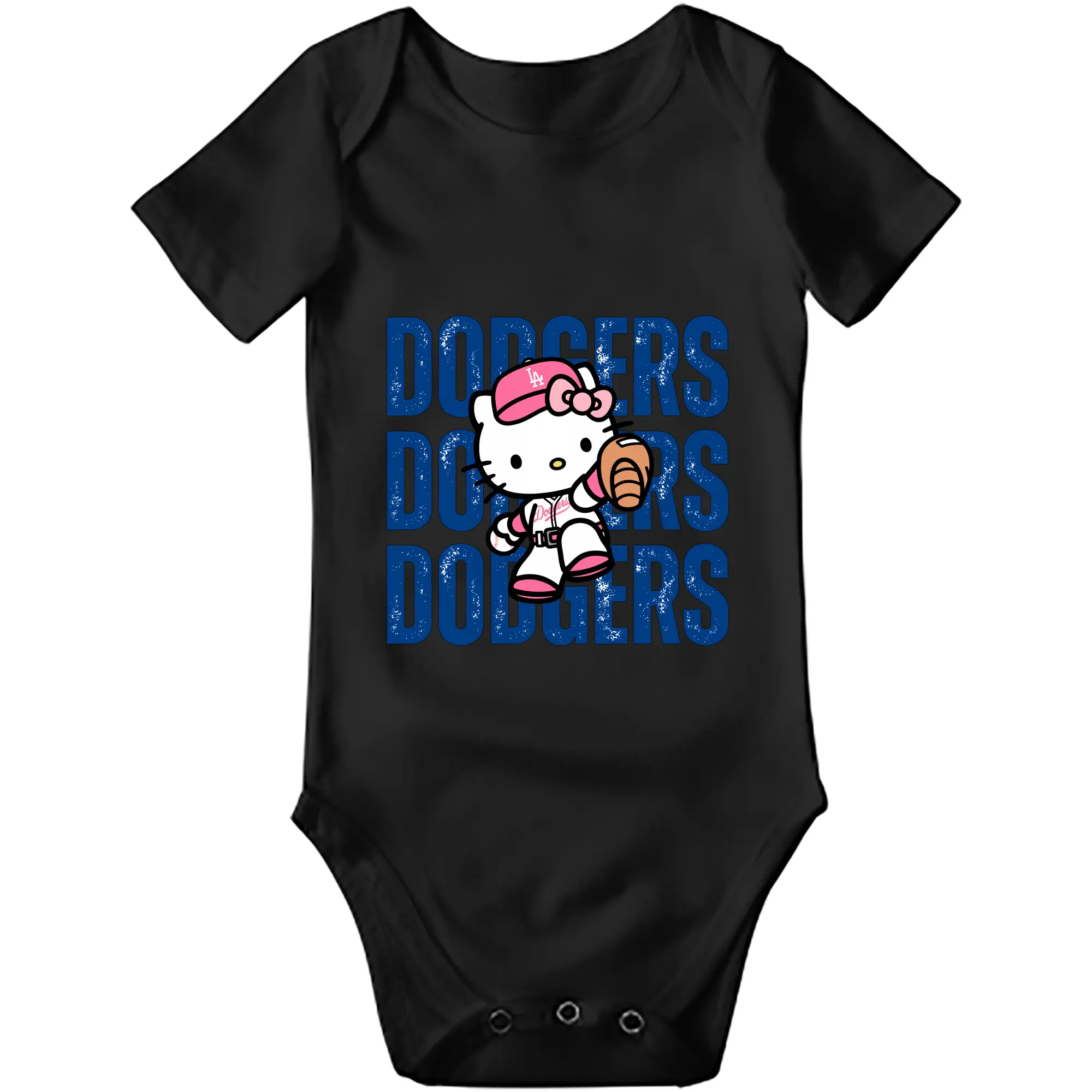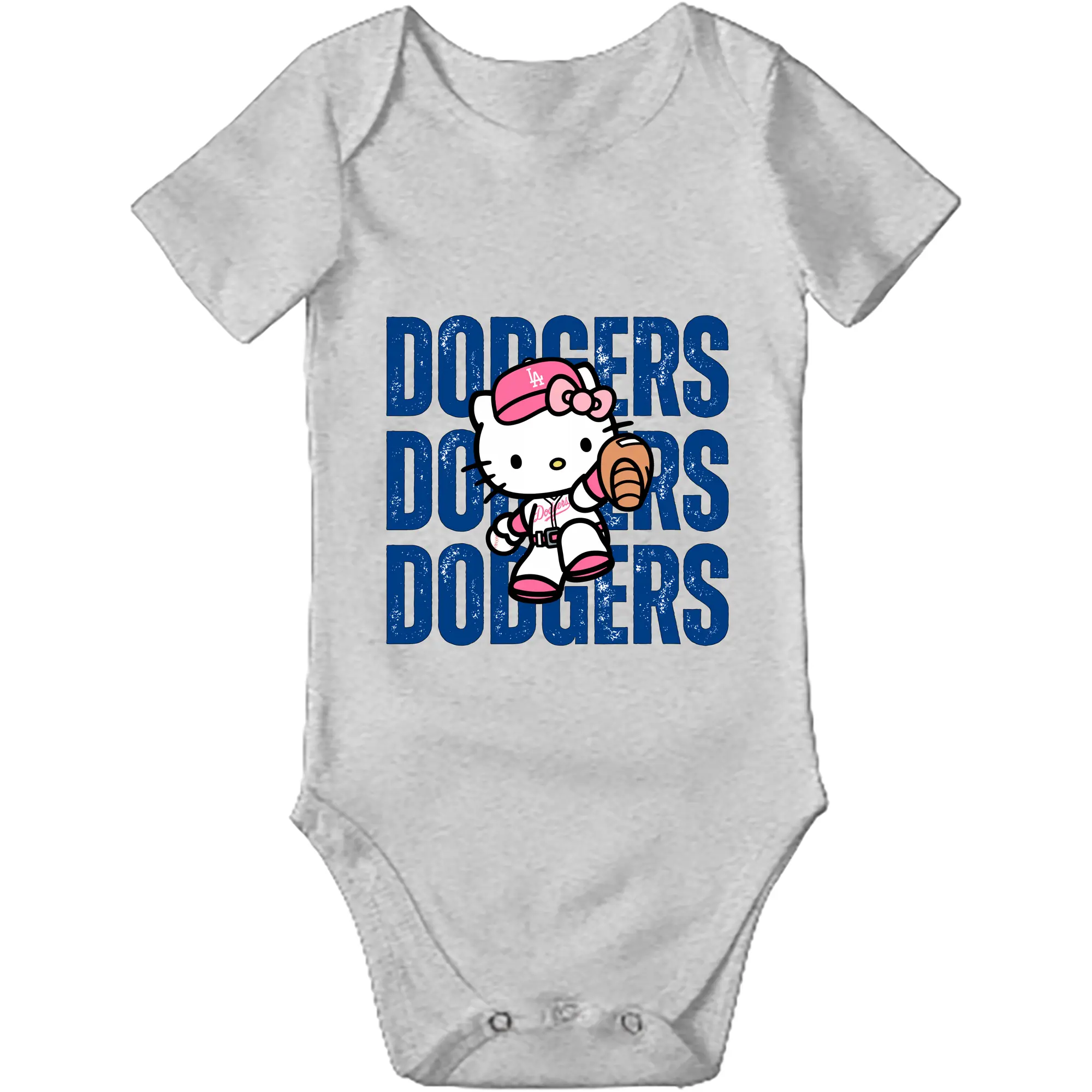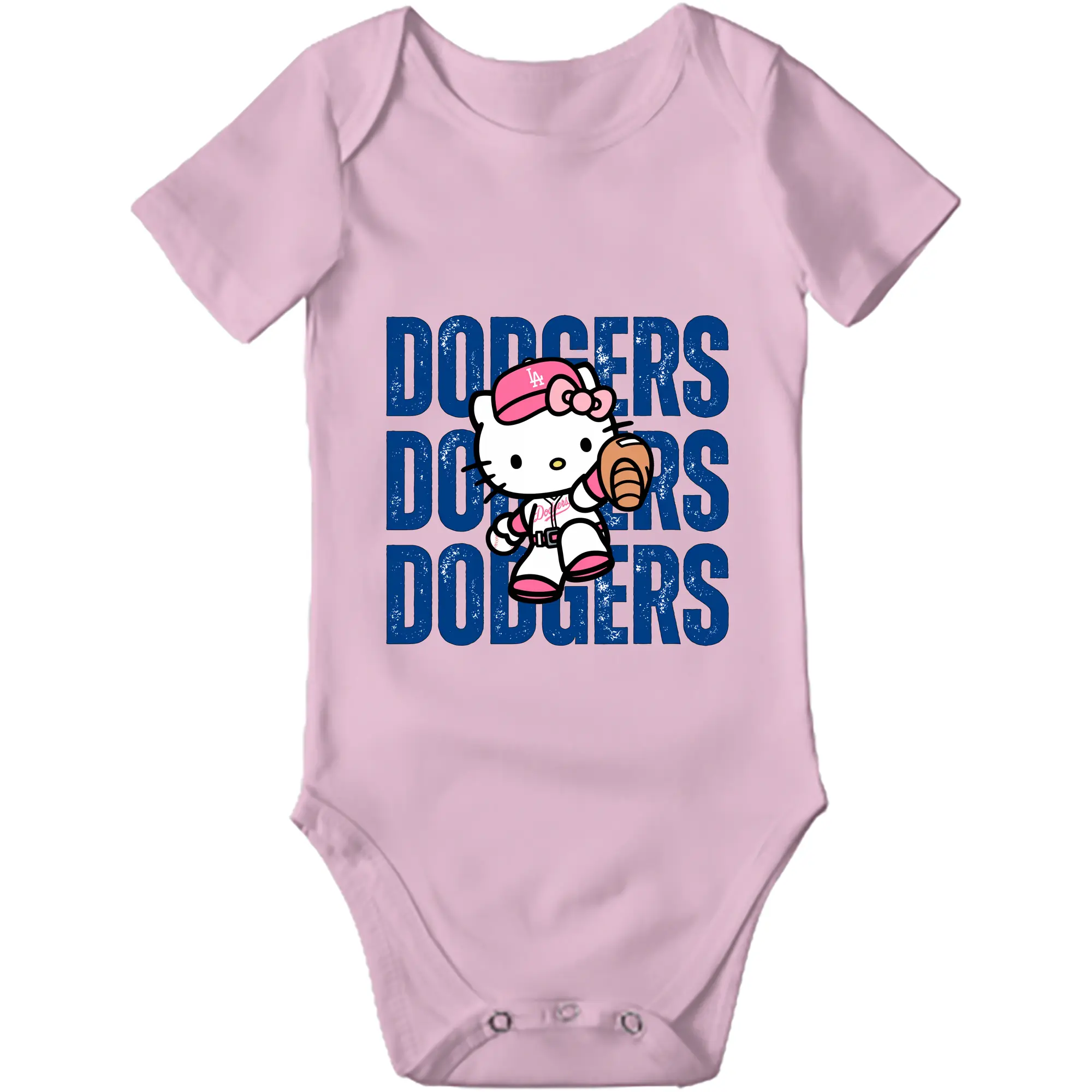 Dodgers Baseball Hello Kitty - Baby Short Sleeve Romper – 100% Cotton Soft & Breathable Digital Print Onesie With Easy Snap Closure And Envelope Shoulder – Comfortable For Daily Wear & Travel