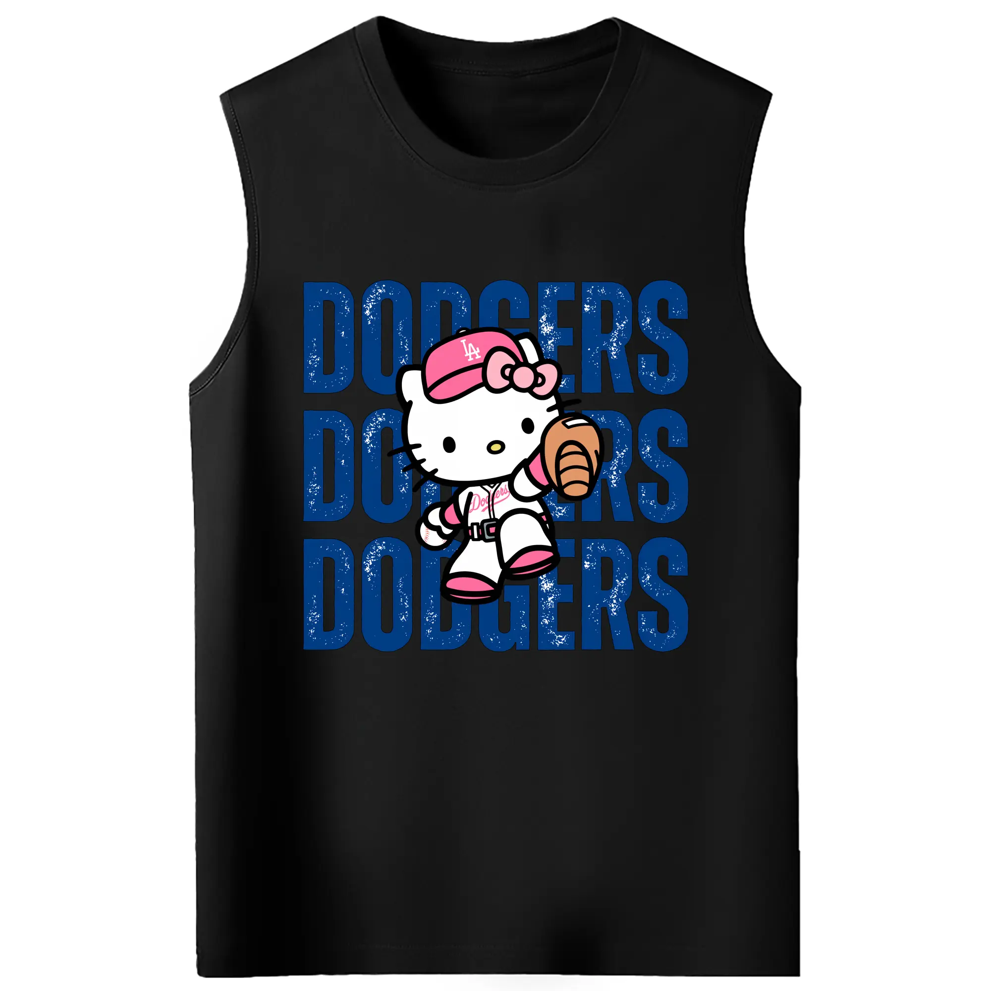 Dodgers Baseball Hello Kitty - 210g Combed Cotton Tank Top With Front Heat Transfer Print – Soft, Lightweight, Fitted Design – Stylish & Comfortable Casual Wear For Sports & Everyday Use
