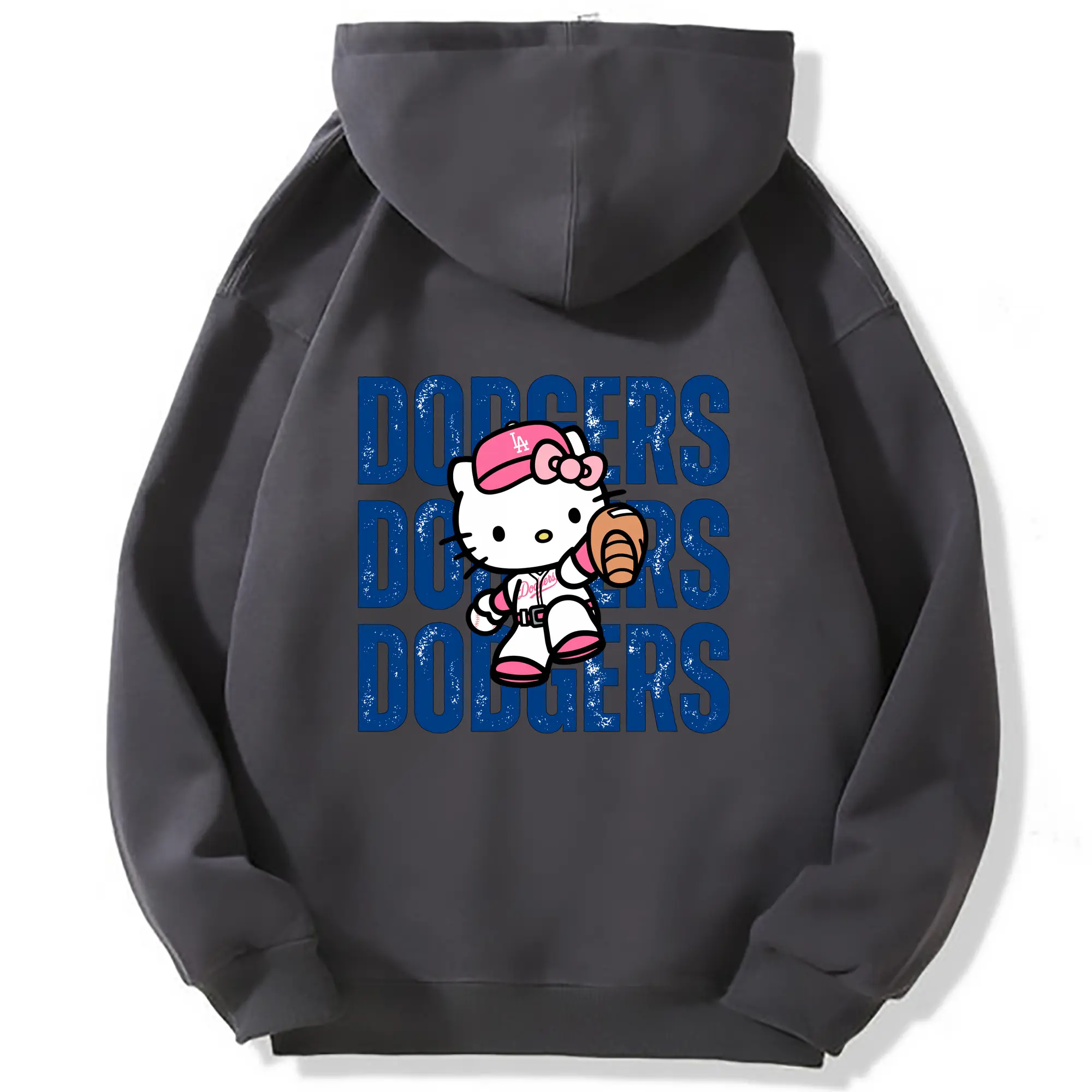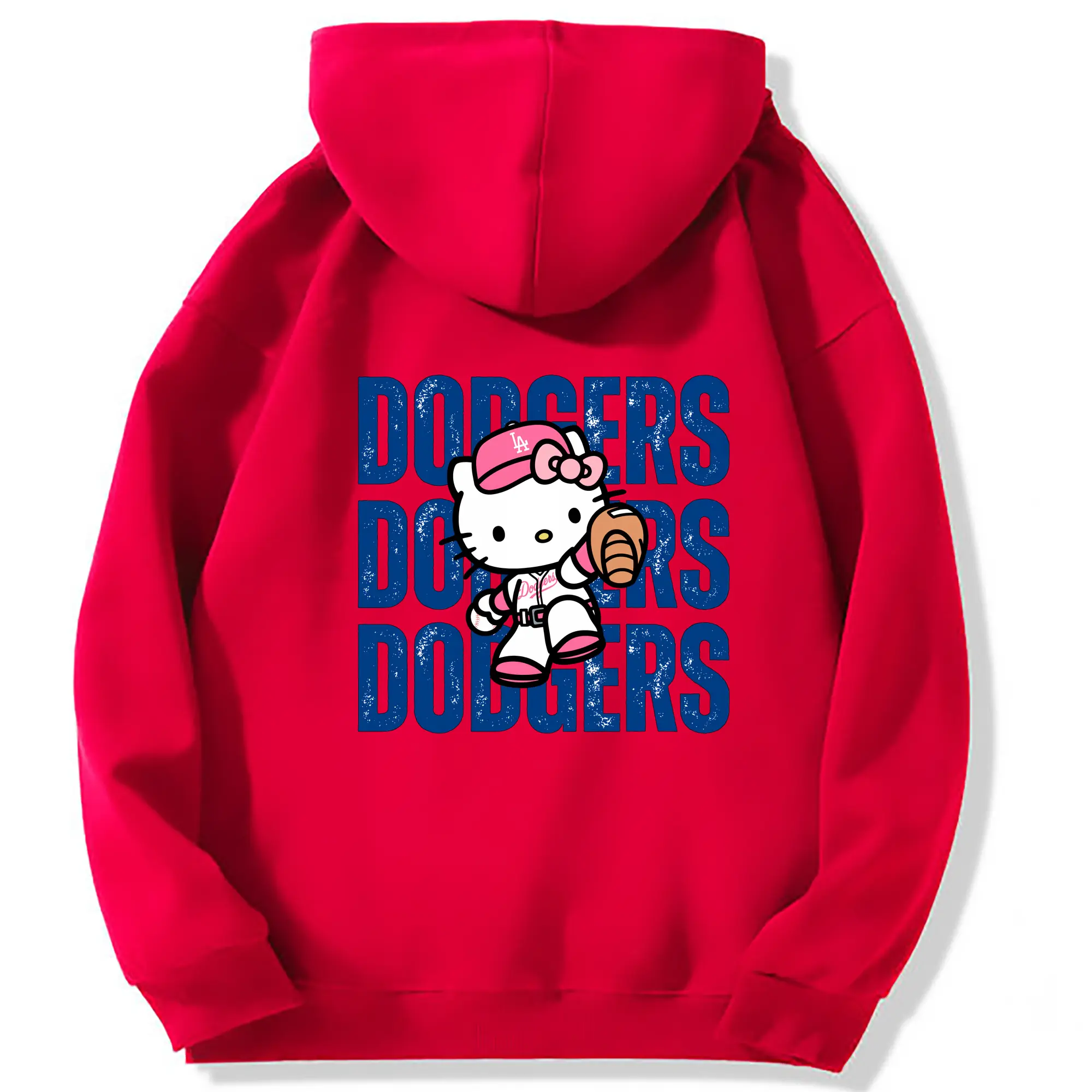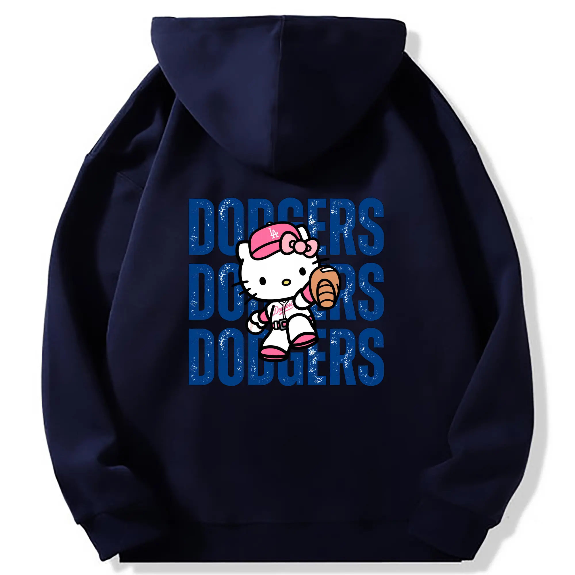 Dodgers Baseball Hello Kitty - Premium Hoodie With Back Heat Transfer Print – 56.1% Cotton, 43.9% Polyester – Soft, Durable & Stylish – Perfect For Sports, Casual & Everyday Wear