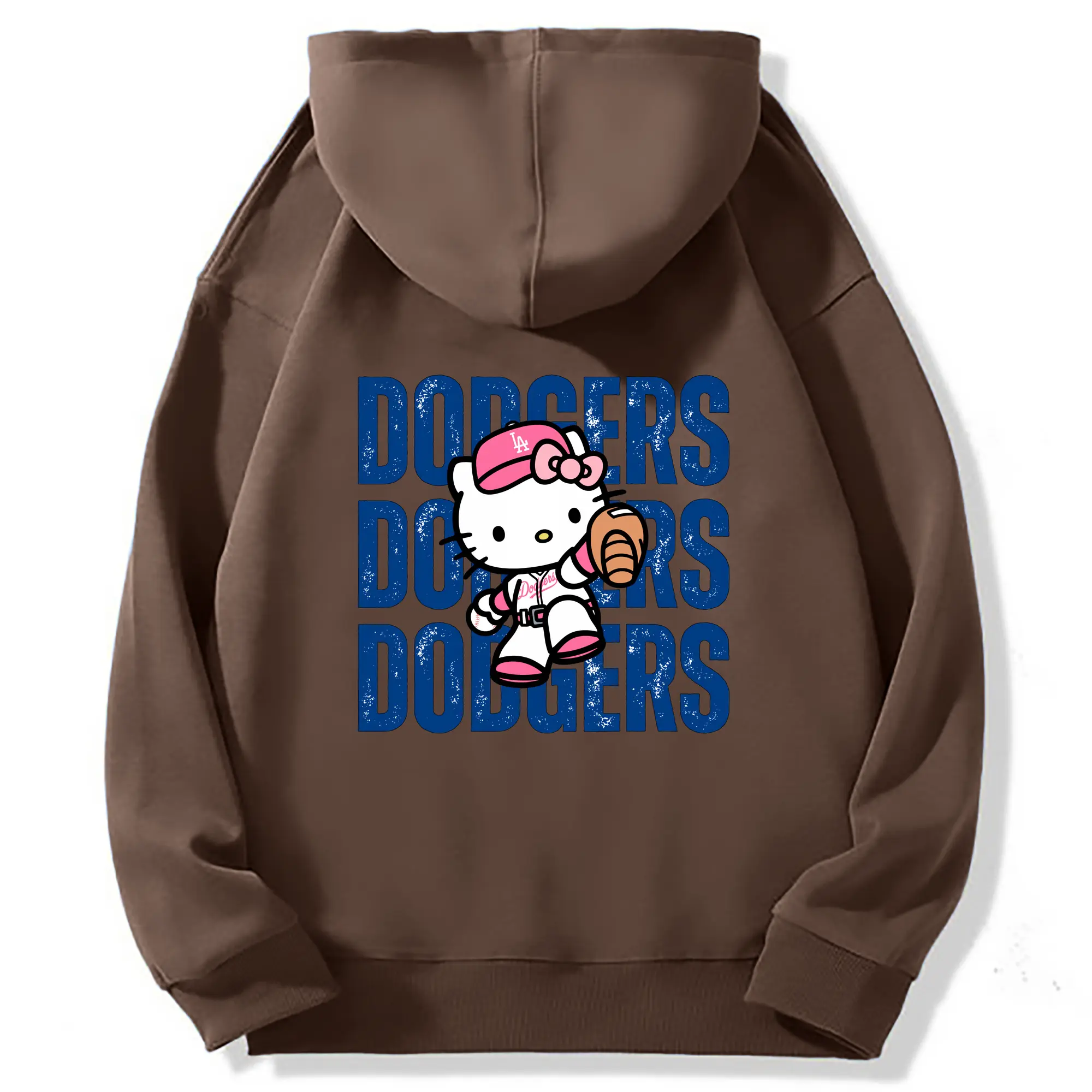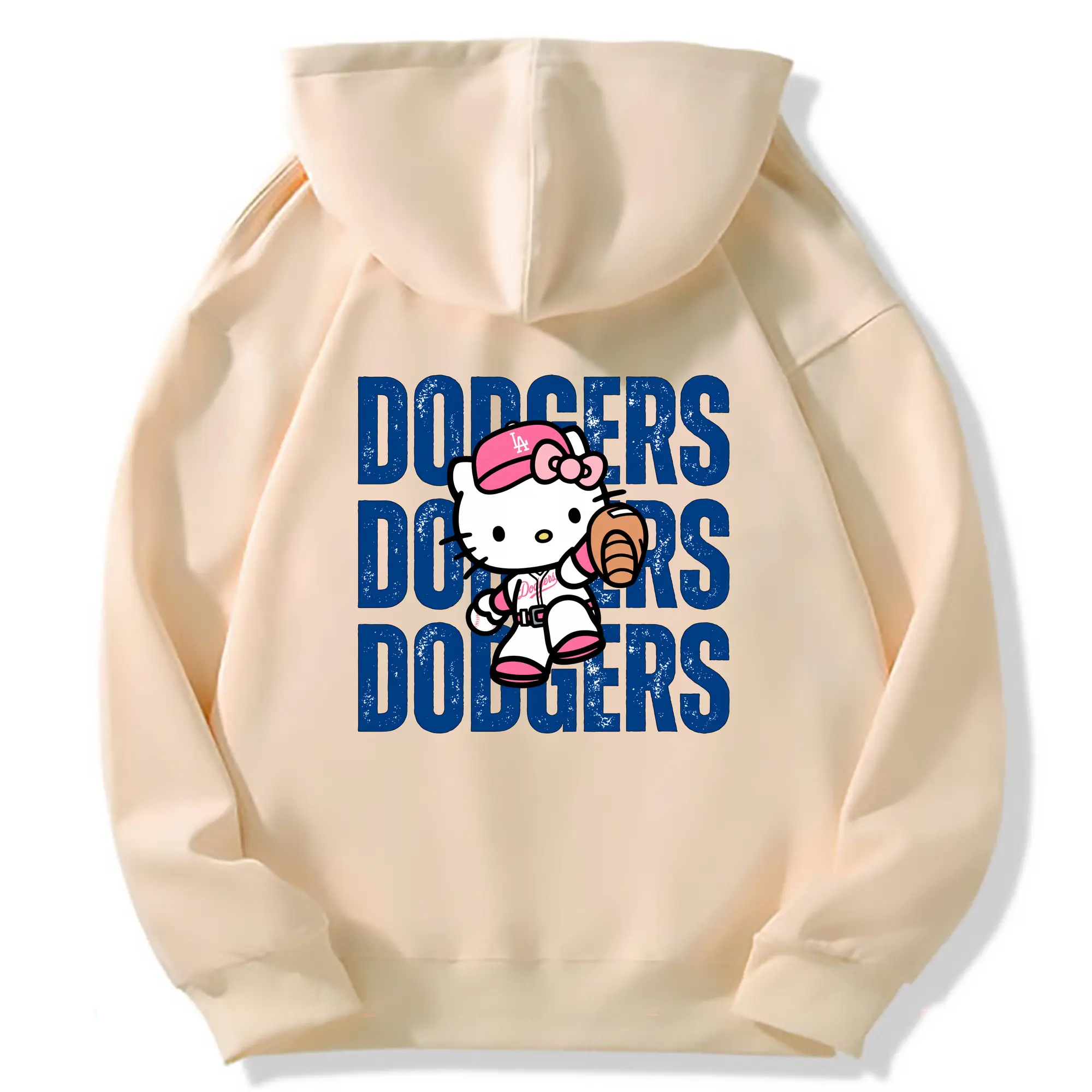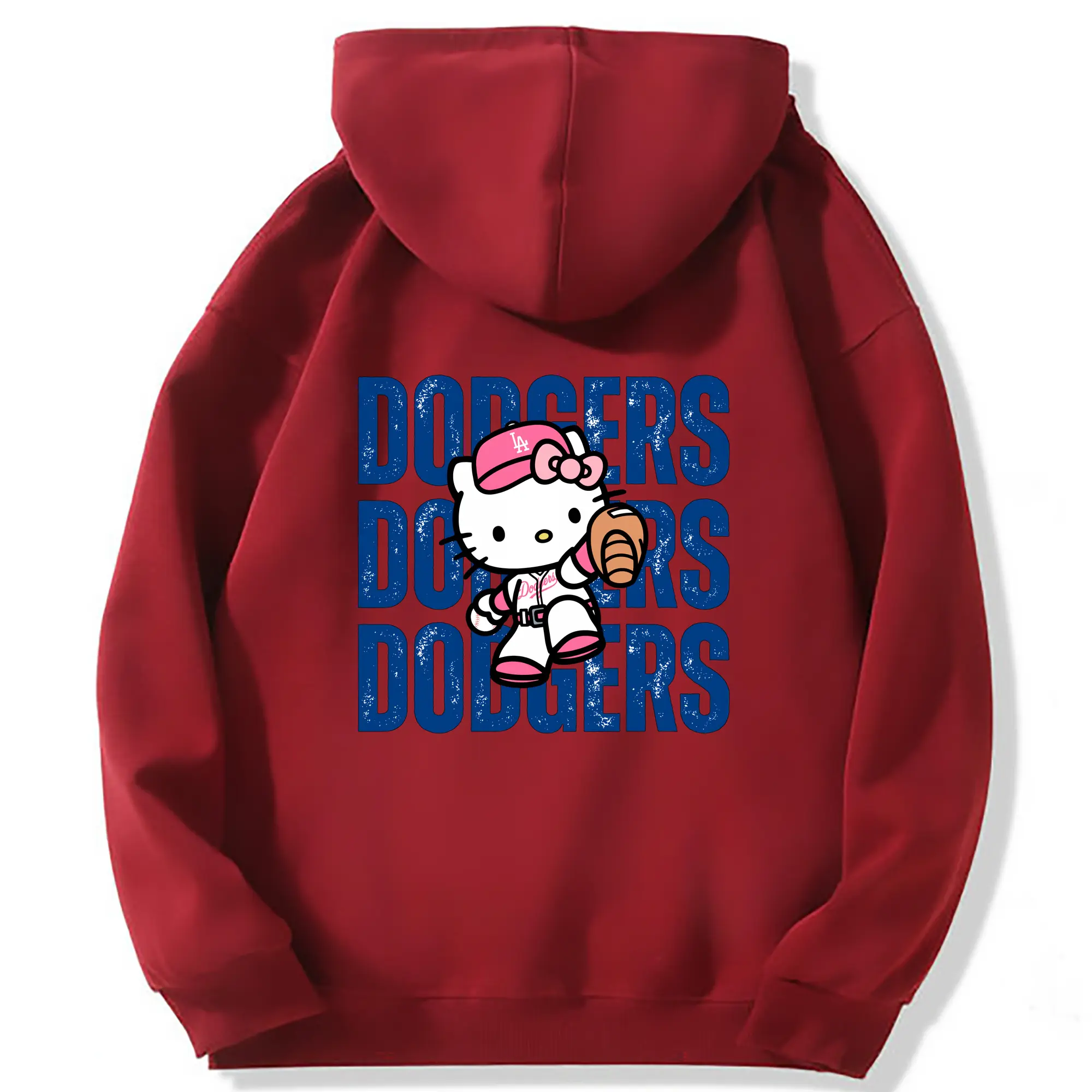 Dodgers Baseball Hello Kitty - Premium Hoodie With Back Heat Transfer Print – 56.1% Cotton, 43.9% Polyester – Soft, Durable & Stylish – Perfect For Sports, Casual & Everyday Wear