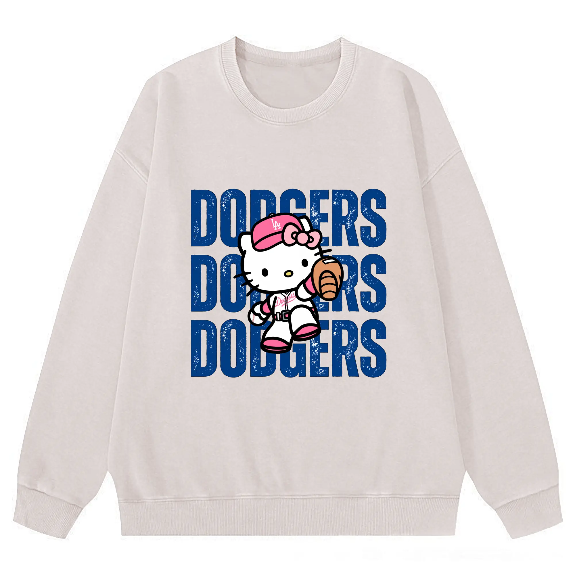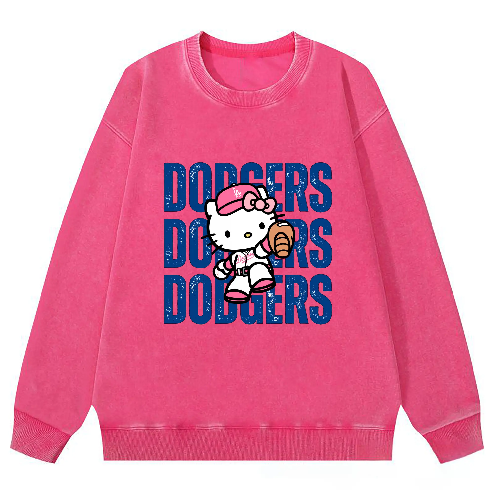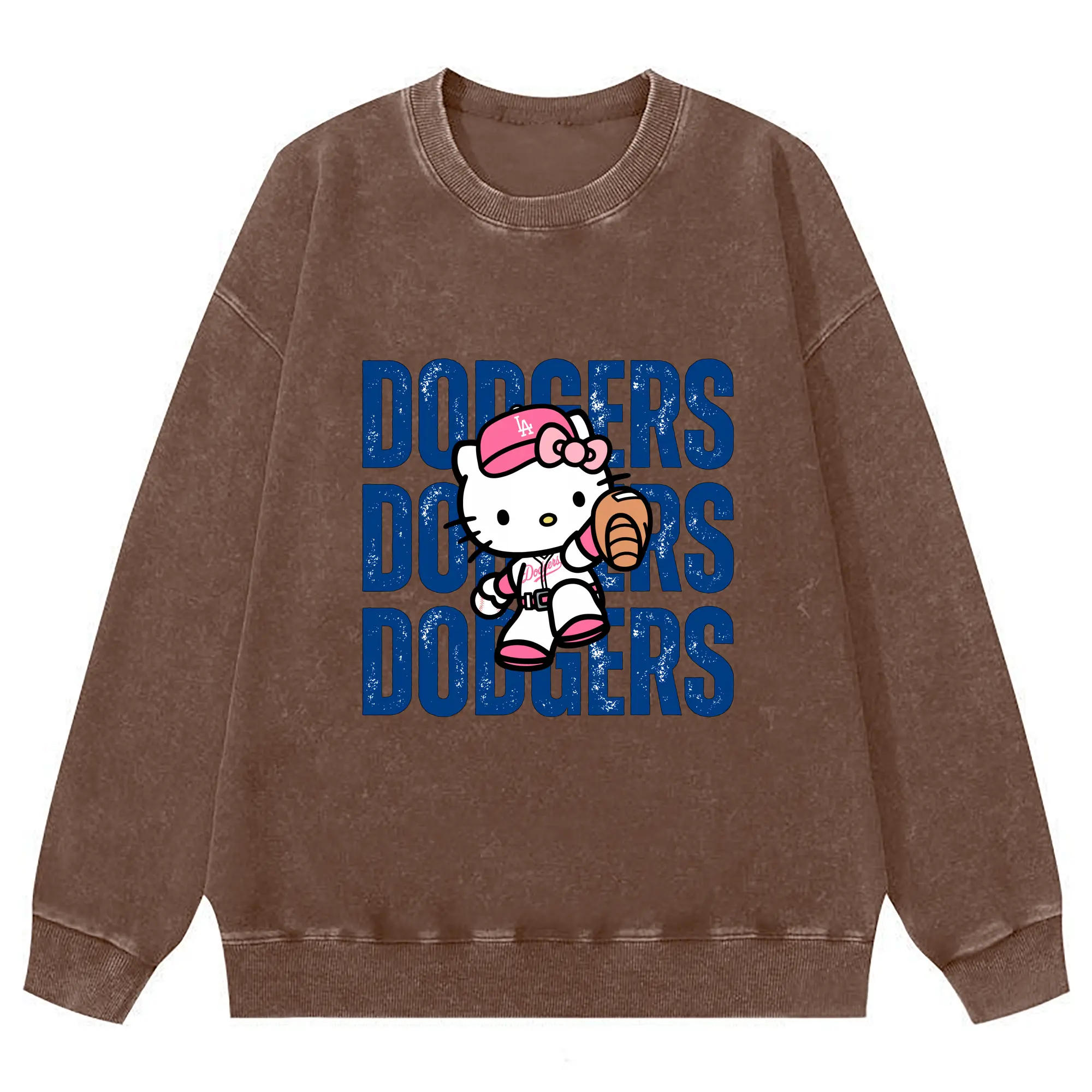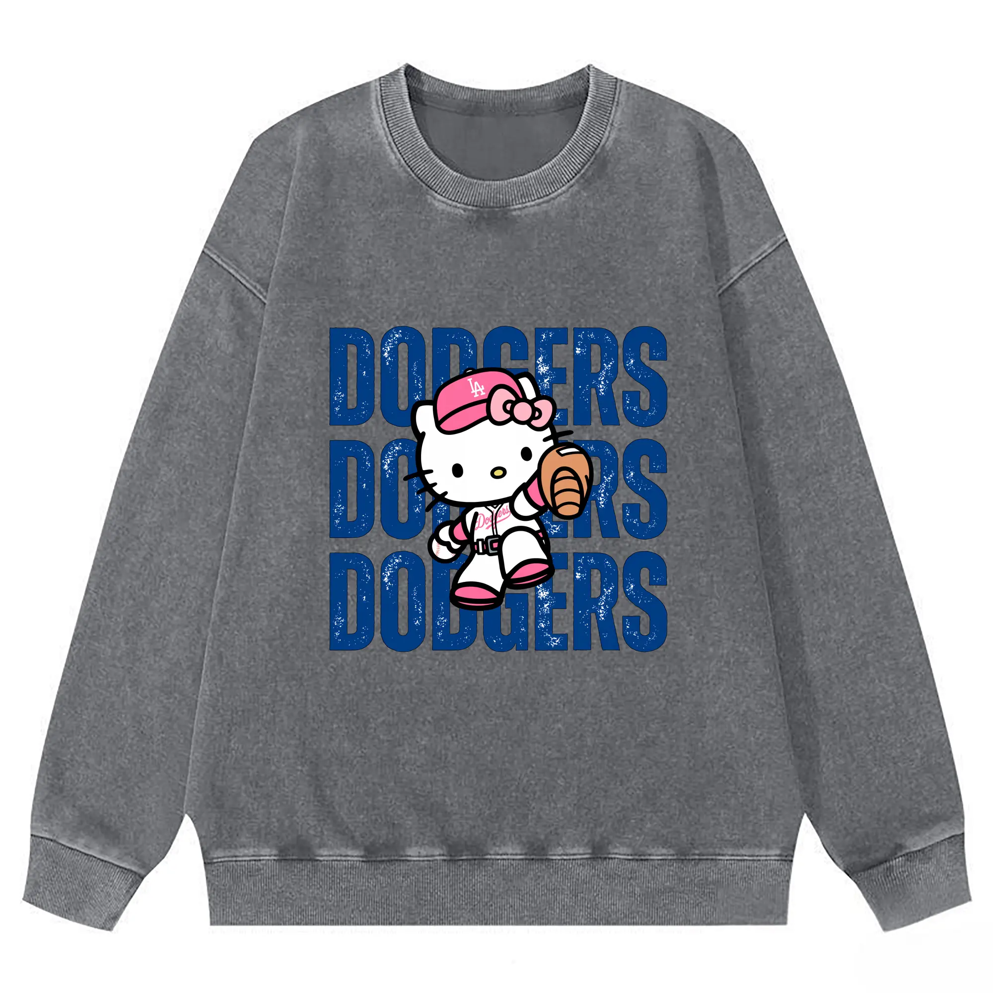 Dodgers Baseball Hello Kitty - Washed Wax-Dyed Vintage Crewneck Sweatshirt – 80% Cotton, 20% Polyester – Soft, Durable & Stylish – Ideal For Sports, Casual & Everyday Wear