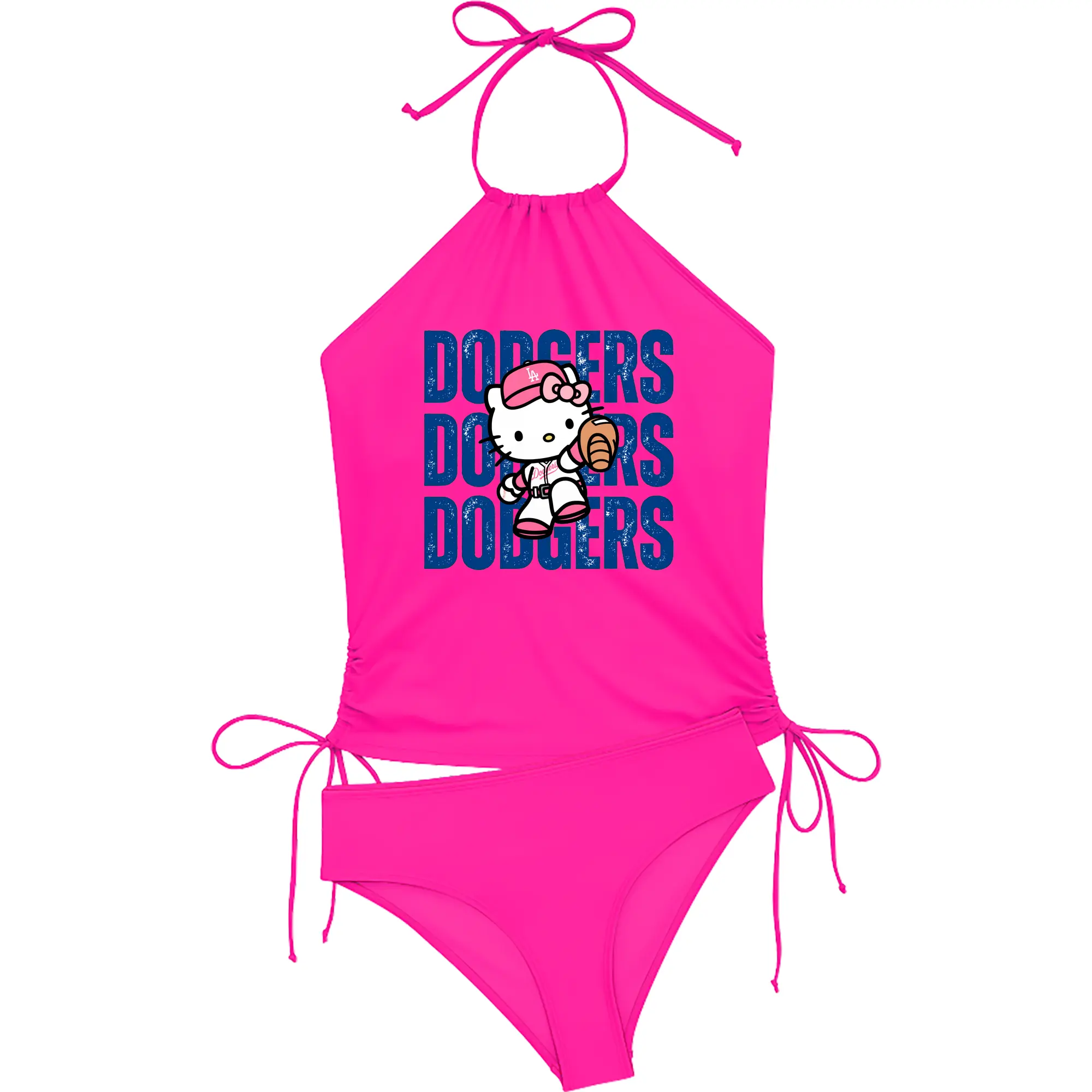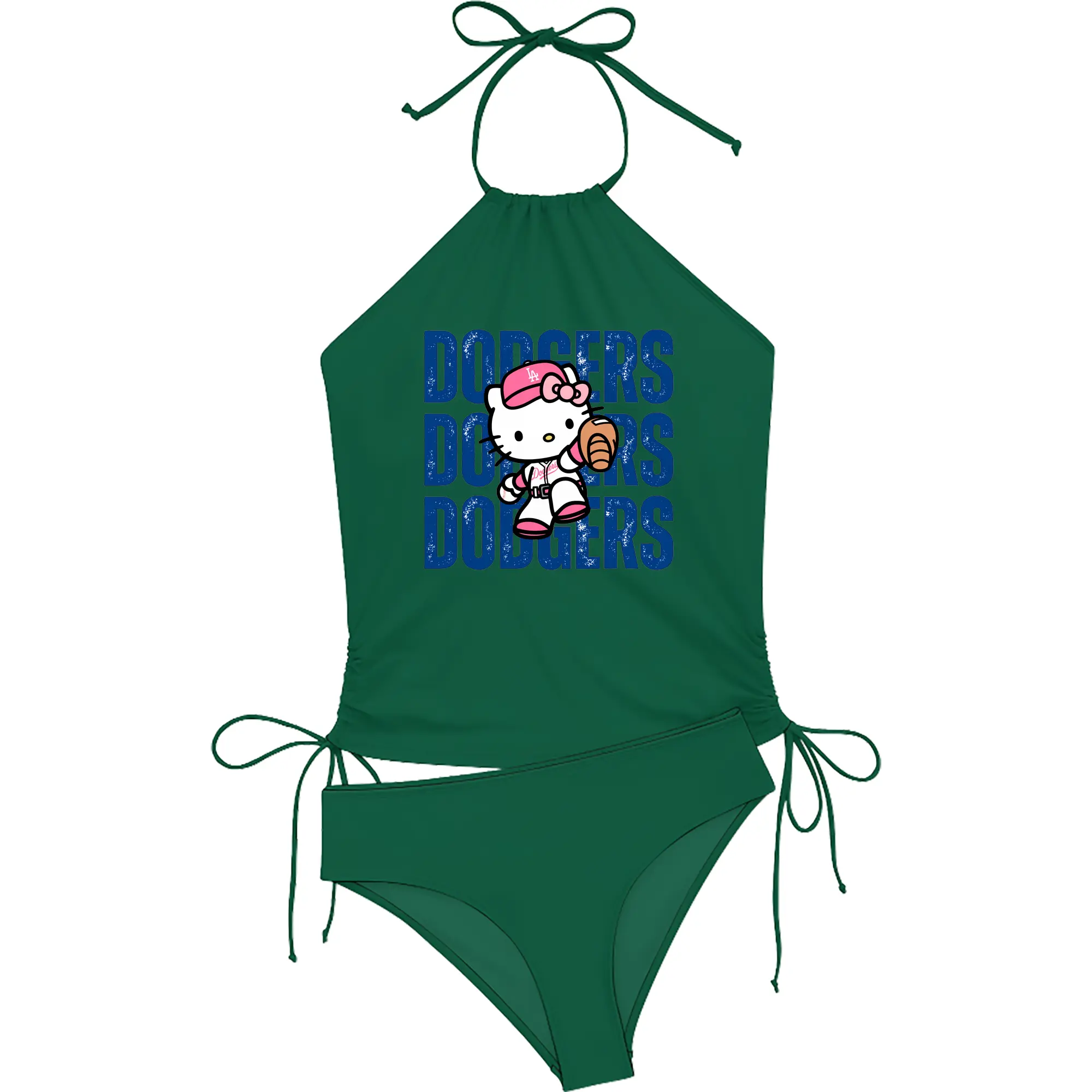 Dodgers Baseball Hello Kitty - Women's Heat Transfer Printed Two-Piece Bikini Set – Sexy One-Shoulder Top & Triangle Bottom, Soft Nylon-Spandex – Perfect for Beach, Pool & Vacation